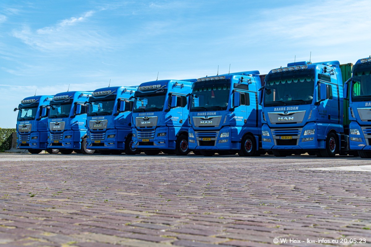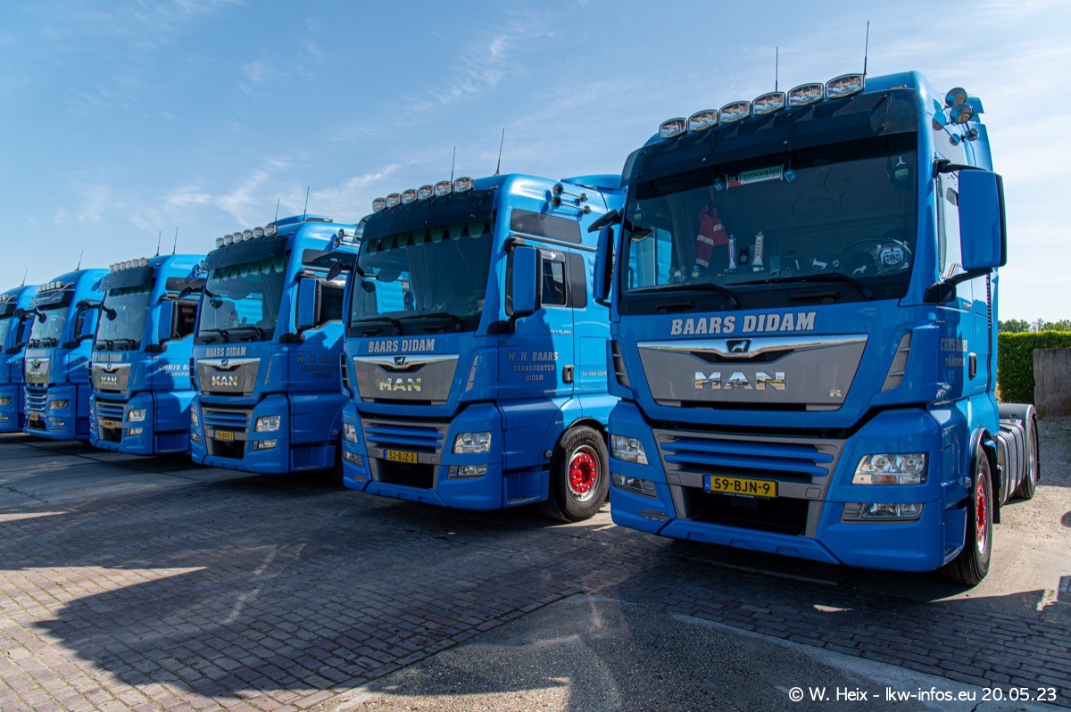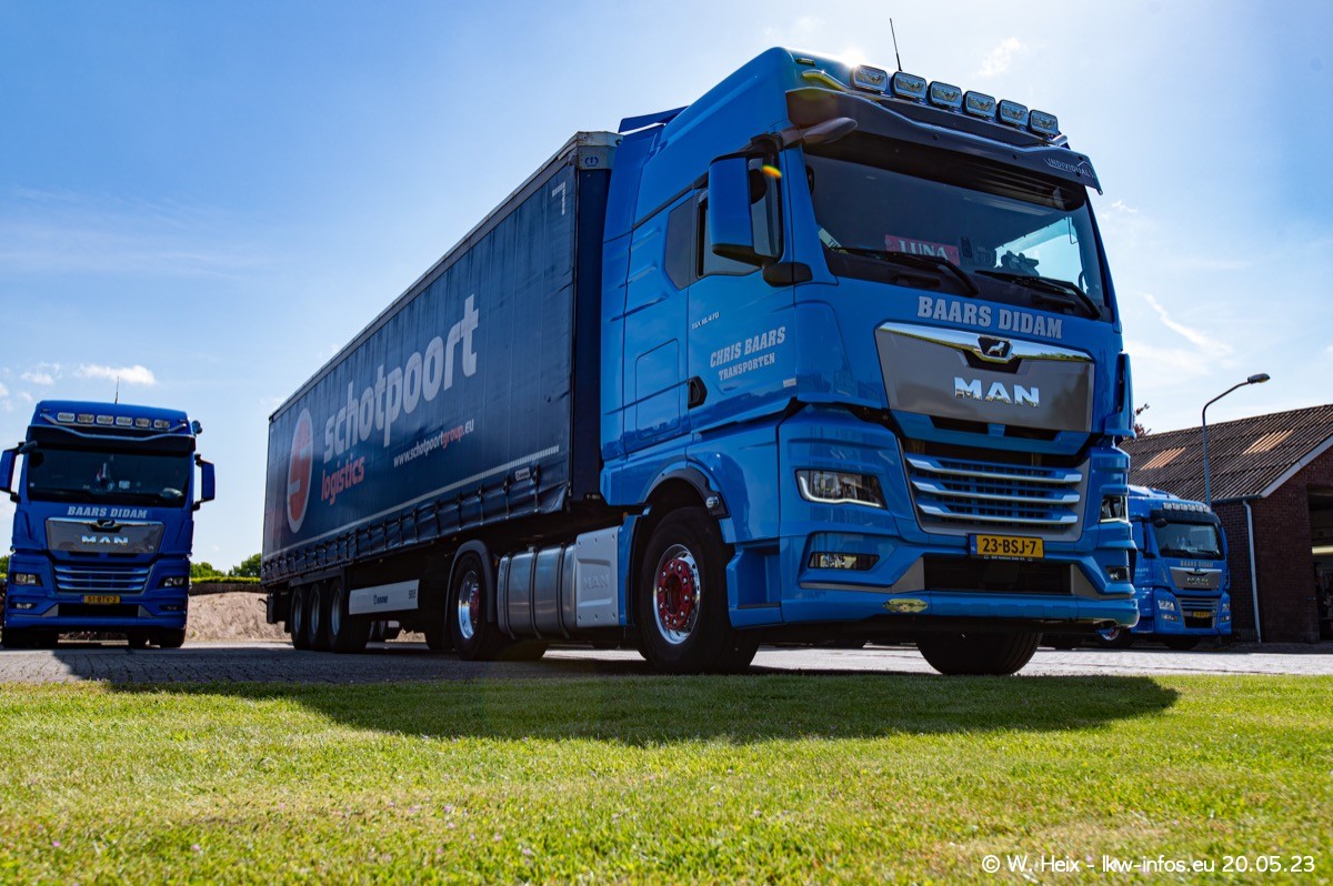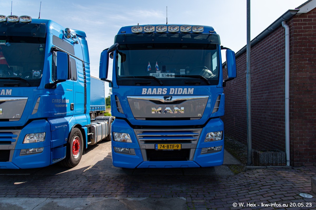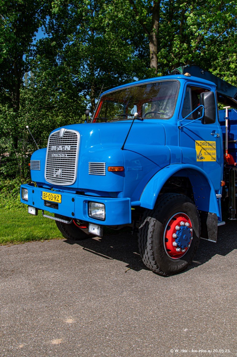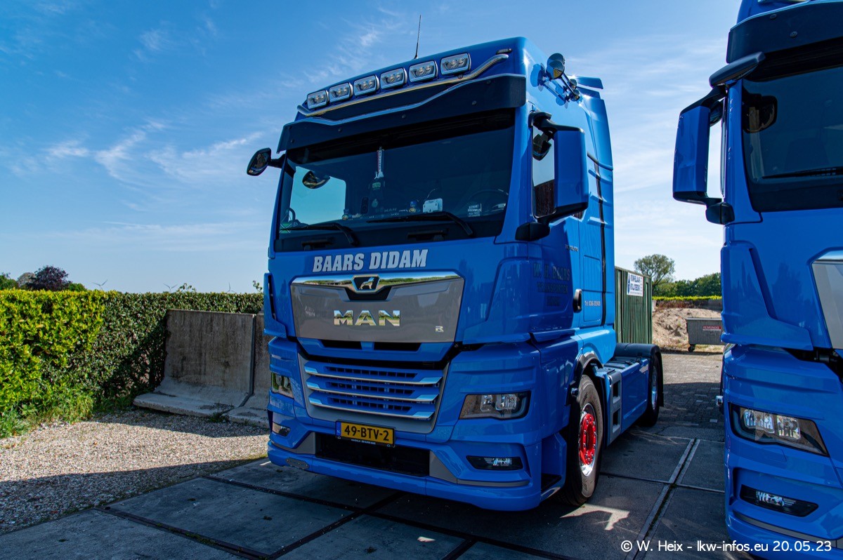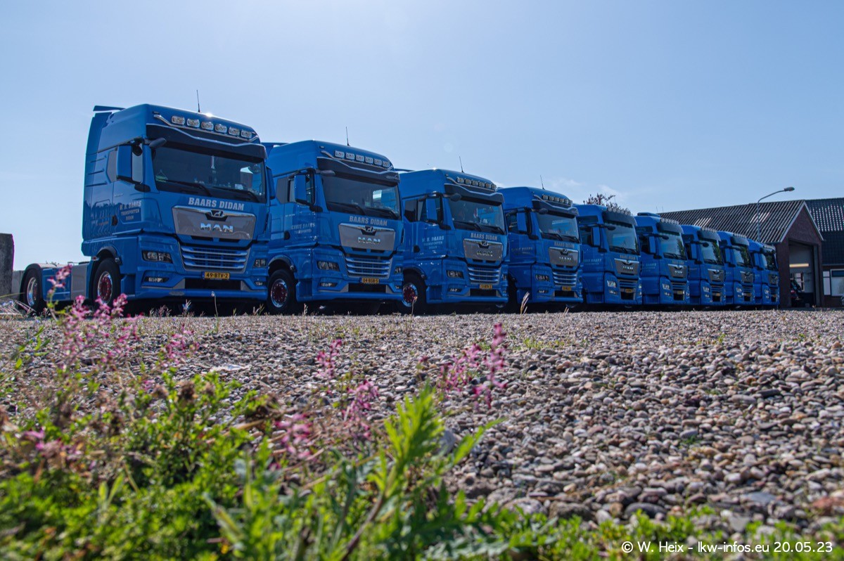 Der Fuhrpark von Baars besteht aus neun MAN, das sind vier MAN der neuen Baureihe und fünf der alten Baureihe. Die Firma ist überwiegend im Bereich Containertransport tätig. Es gibt aber auch noch zwei schöne Oldtimer. Das ist ein MAN 16.168 HAK, Baujahr 1982. Der wurde vor drei Jahren gekauft und in den eigenen Firmenfarben lackiert. Der stand auch gleich für ein kleines Fotoshooting bereit. Der zweite Oldtimer ist ein Hanomag-Henschel H 261 Allrad-Hauber. Der LKW ist von 1970 und wurde damals vom heutigen Senior-Chef neu gekauft und ist bis heute im Familienbesitz. Aktuell ist das Fahrzeug allerdings nicht fahrbereit, darum gibt es "nur" Bilder aus der Garage/Werkstatt.