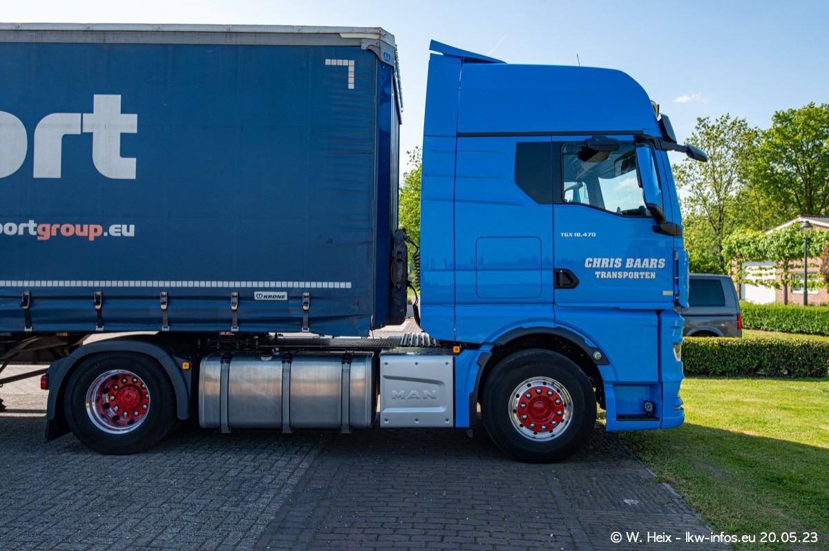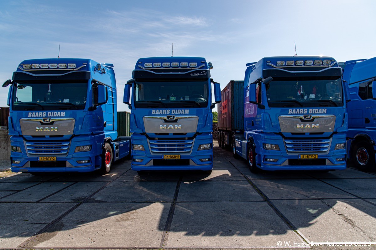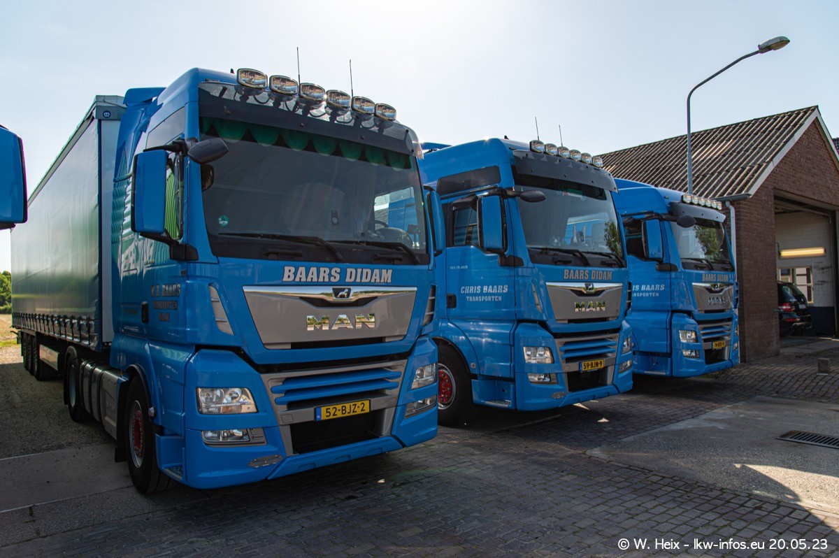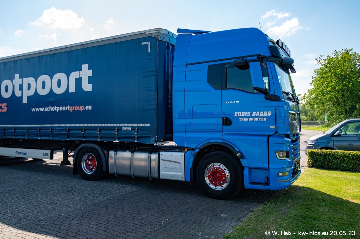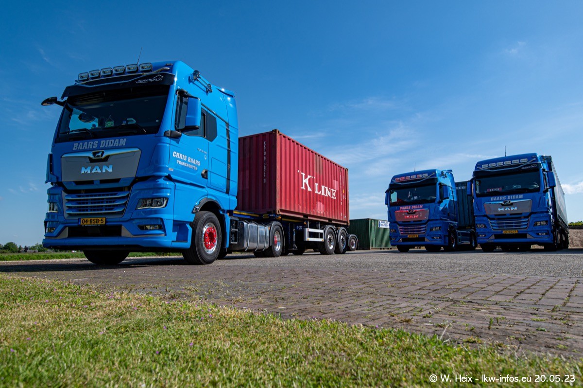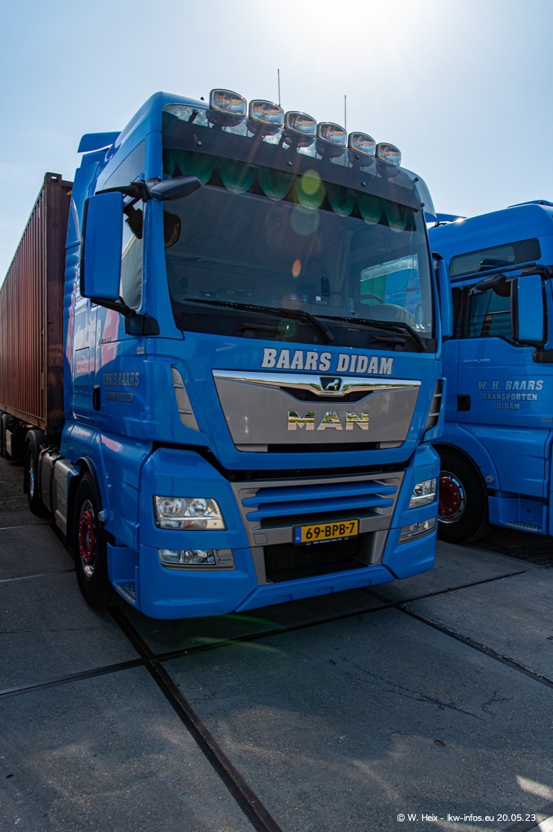 Der Fuhrpark von Baars besteht aus neun MAN, das sind vier MAN der neuen Baureihe und fünf der alten Baureihe. Die Firma ist überwiegend im Bereich Containertransport tätig. Es gibt aber auch noch zwei schöne Oldtimer. Das ist ein MAN 16.168 HAK, Baujahr 1982. Der wurde vor drei Jahren gekauft und in den eigenen Firmenfarben lackiert. Der stand auch gleich für ein kleines Fotoshooting bereit. Der zweite Oldtimer ist ein Hanomag-Henschel H 261 Allrad-Hauber. Der LKW ist von 1970 und wurde damals vom heutigen Senior-Chef neu gekauft und ist bis heute im Familienbesitz. Aktuell ist das Fahrzeug allerdings nicht fahrbereit, darum gibt es "nur" Bilder aus der Garage/Werkstatt.