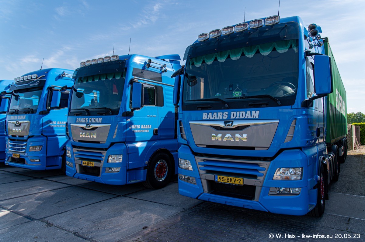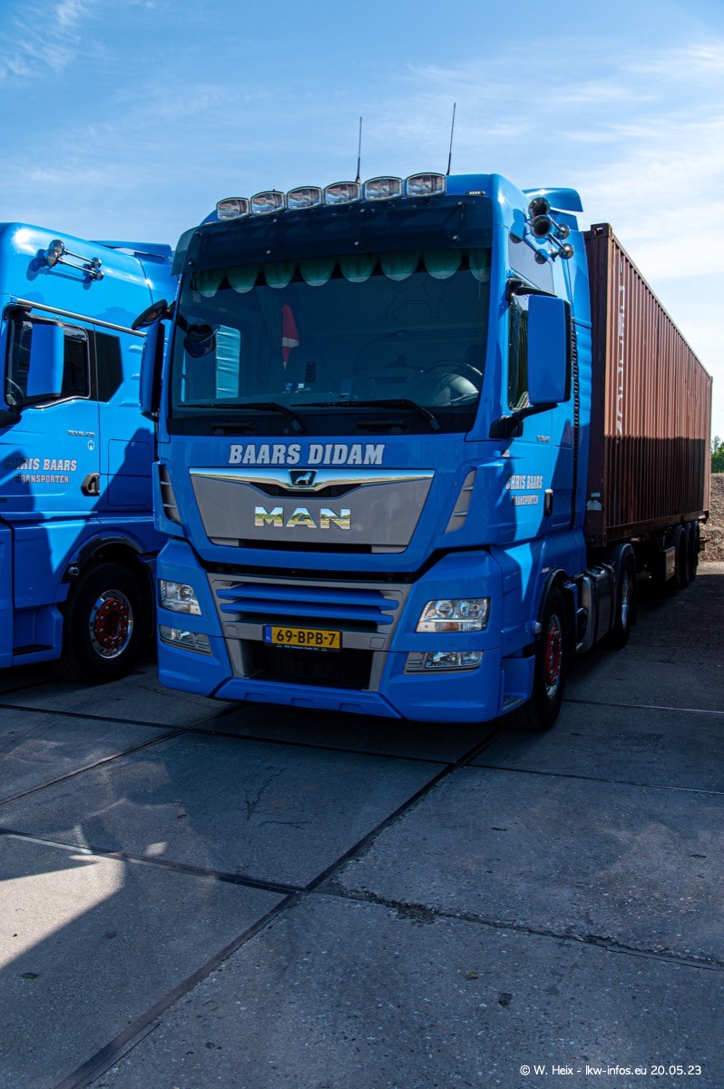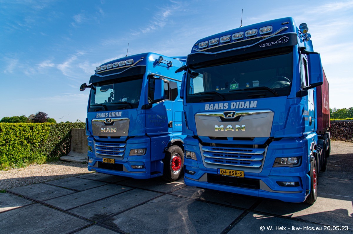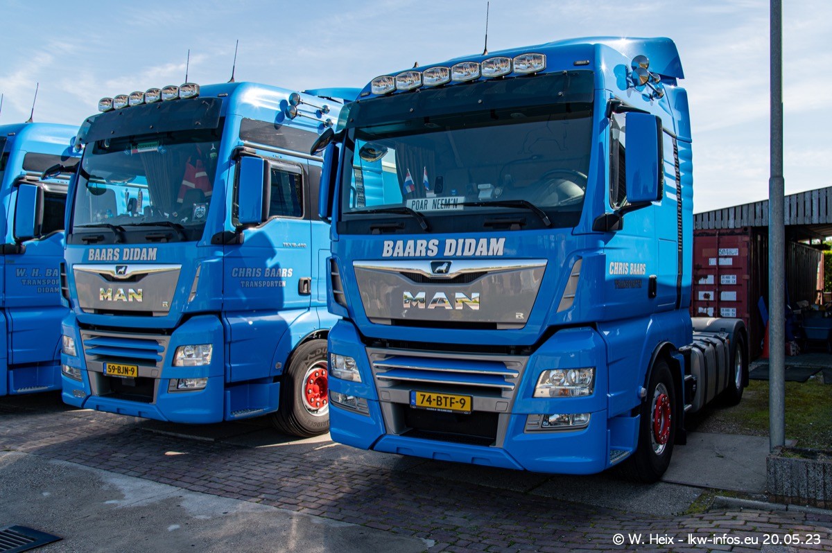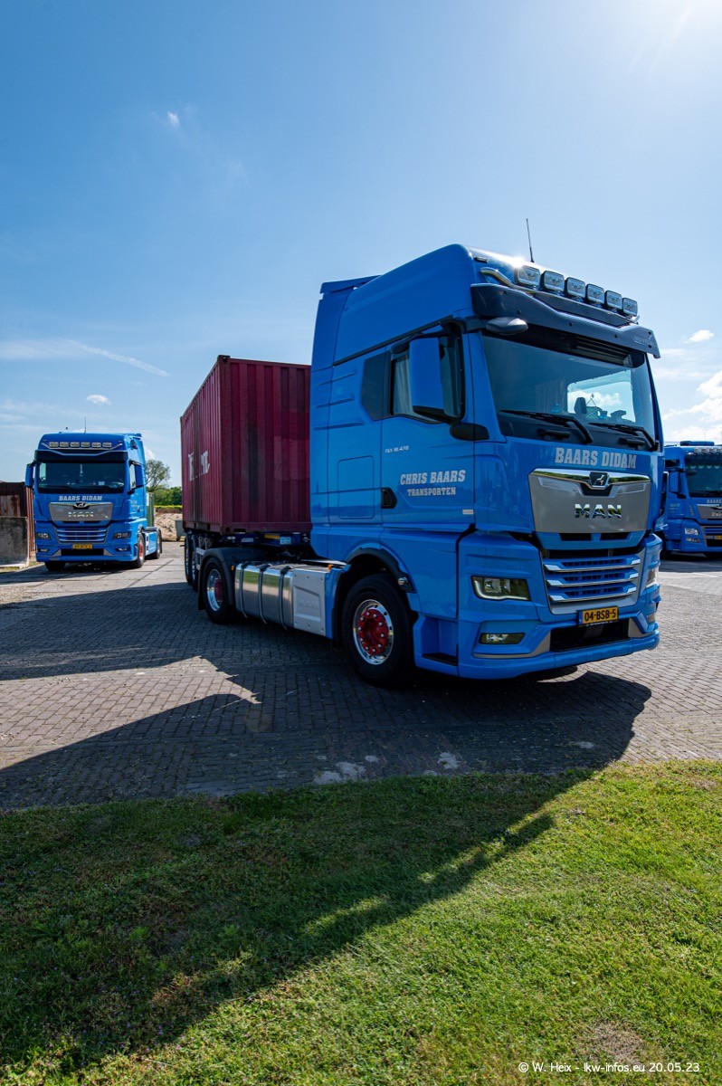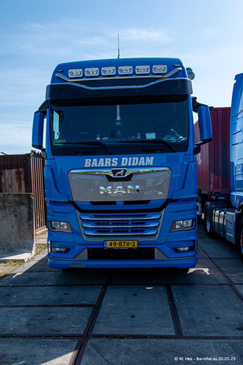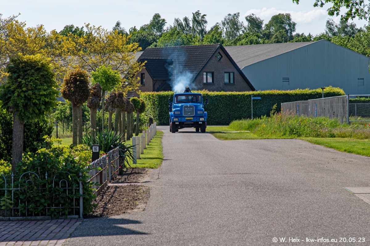 Der Fuhrpark von Baars besteht aus neun MAN, das sind vier MAN der neuen Baureihe und fünf der alten Baureihe. Die Firma ist überwiegend im Bereich Containertransport tätig. Es gibt aber auch noch zwei schöne Oldtimer. Das ist ein MAN 16.168 HAK, Baujahr 1982. Der wurde vor drei Jahren gekauft und in den eigenen Firmenfarben lackiert. Der stand auch gleich für ein kleines Fotoshooting bereit. Der zweite Oldtimer ist ein Hanomag-Henschel H 261 Allrad-Hauber. Der LKW ist von 1970 und wurde damals vom heutigen Senior-Chef neu gekauft und ist bis heute im Familienbesitz. Aktuell ist das Fahrzeug allerdings nicht fahrbereit, darum gibt es "nur" Bilder aus der Garage/Werkstatt.