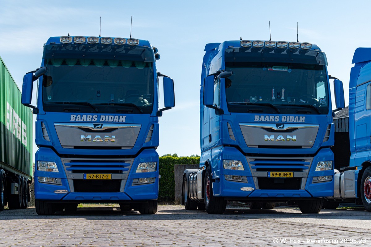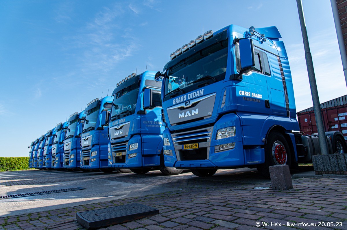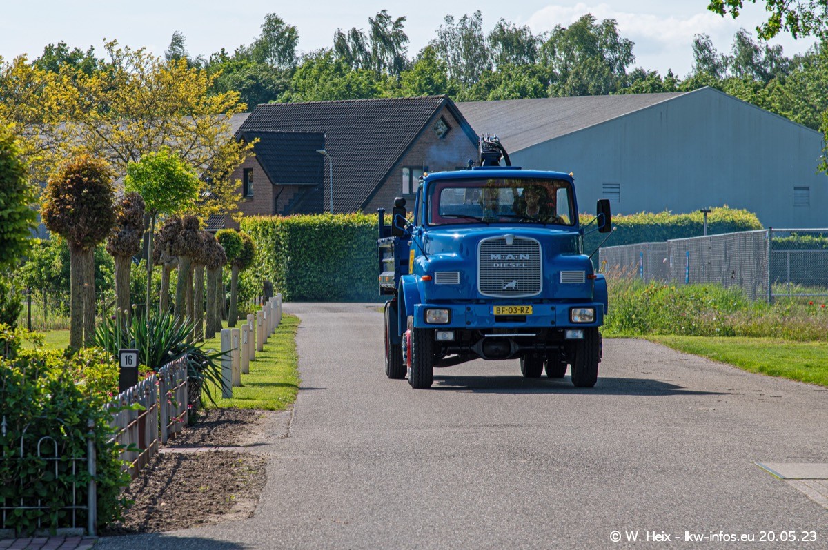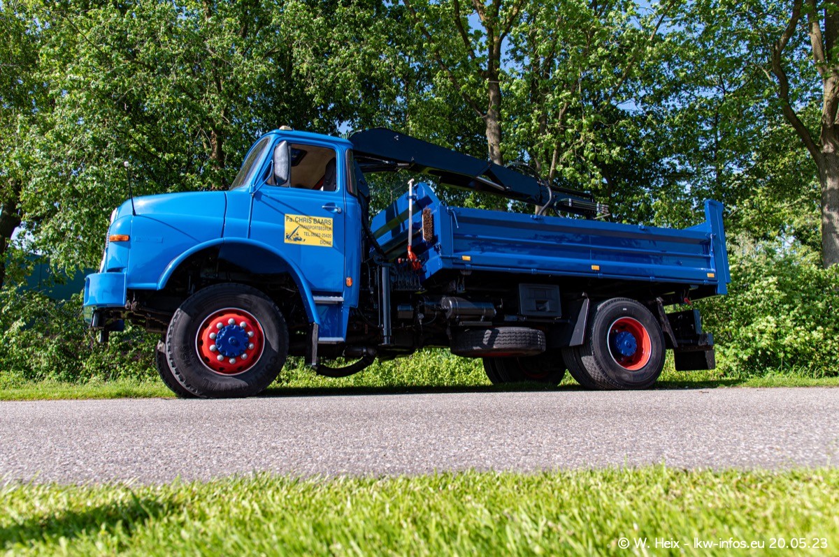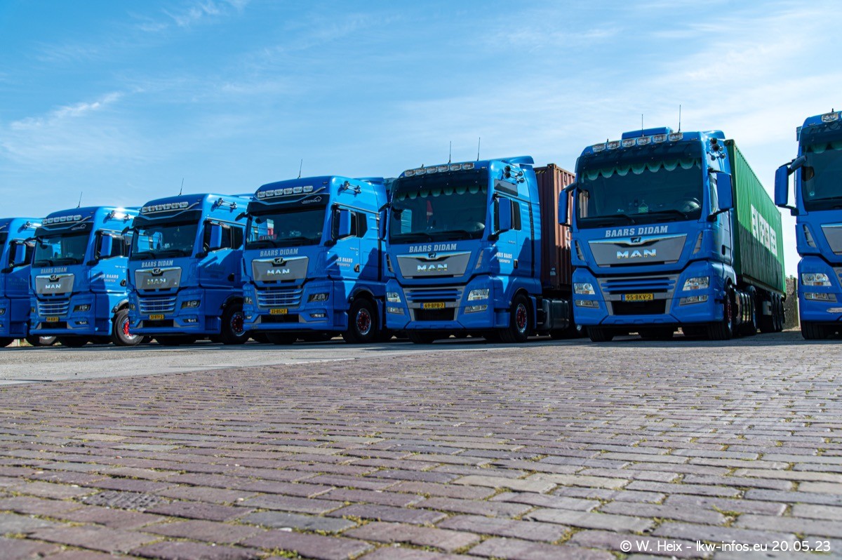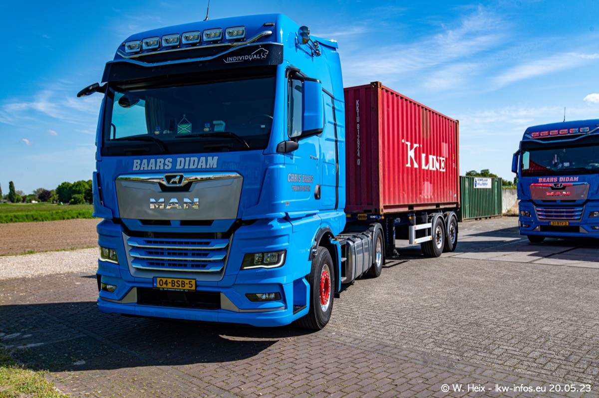 Der Fuhrpark von Baars besteht aus neun MAN, das sind vier MAN der neuen Baureihe und fünf der alten Baureihe. Die Firma ist überwiegend im Bereich Containertransport tätig. Es gibt aber auch noch zwei schöne Oldtimer. Das ist ein MAN 16.168 HAK, Baujahr 1982. Der wurde vor drei Jahren gekauft und in den eigenen Firmenfarben lackiert. Der stand auch gleich für ein kleines Fotoshooting bereit. Der zweite Oldtimer ist ein Hanomag-Henschel H 261 Allrad-Hauber. Der LKW ist von 1970 und wurde damals vom heutigen Senior-Chef neu gekauft und ist bis heute im Familienbesitz. Aktuell ist das Fahrzeug allerdings nicht fahrbereit, darum gibt es "nur" Bilder aus der Garage/Werkstatt.