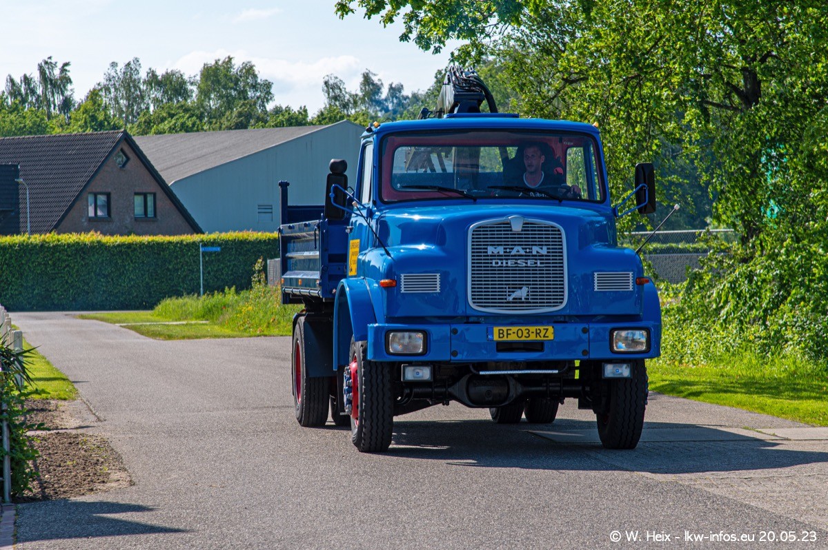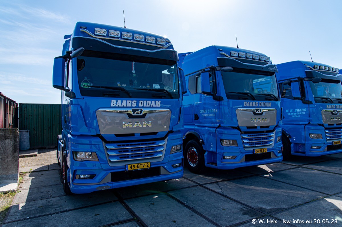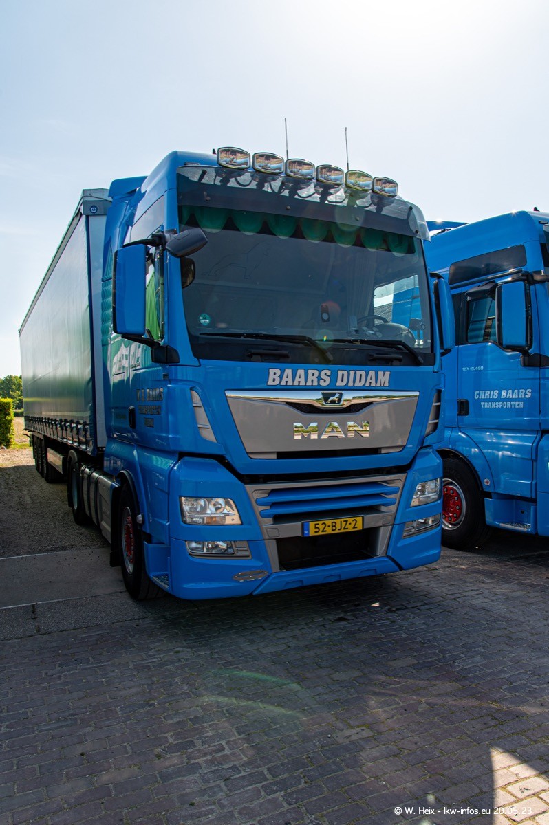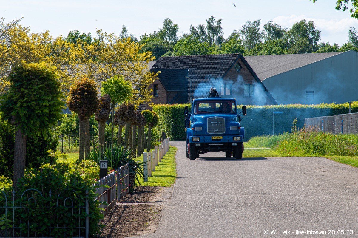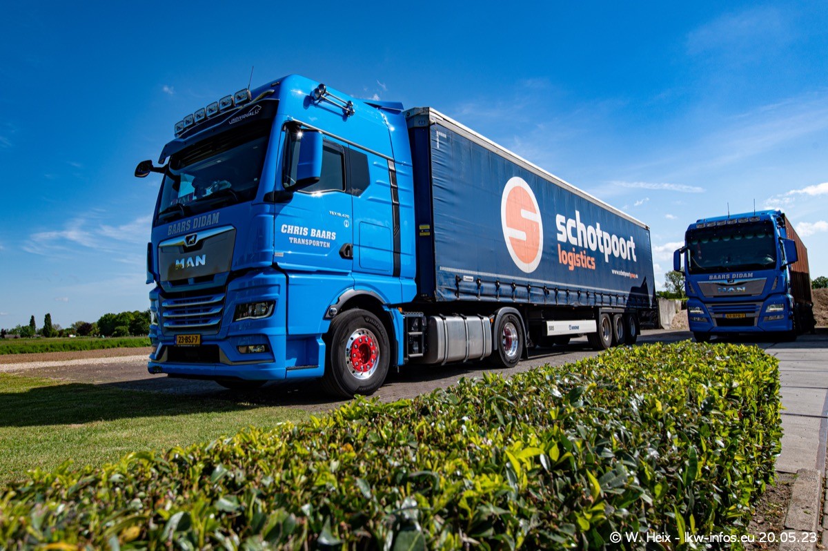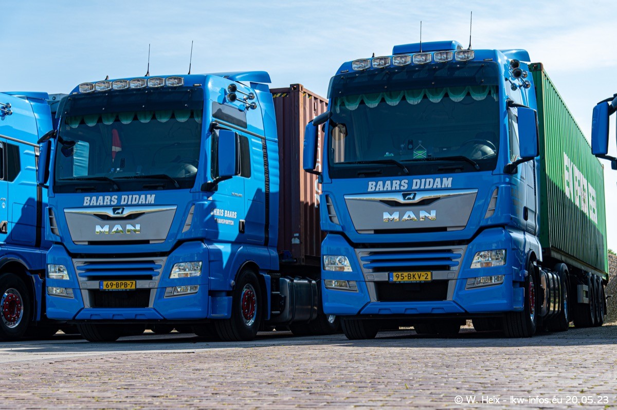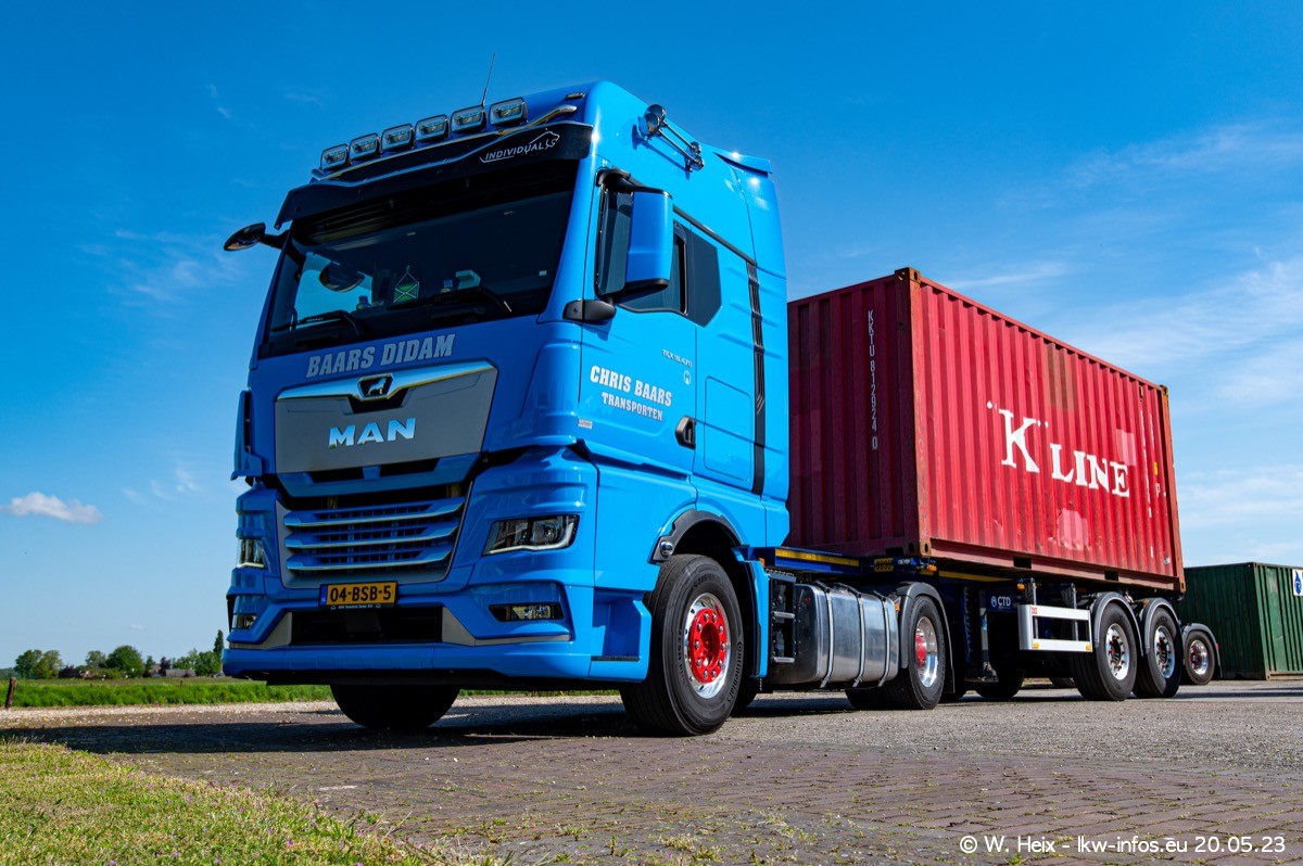 Der Fuhrpark von Baars besteht aus neun MAN, das sind vier MAN der neuen Baureihe und fünf der alten Baureihe. Die Firma ist überwiegend im Bereich Containertransport tätig. Es gibt aber auch noch zwei schöne Oldtimer. Das ist ein MAN 16.168 HAK, Baujahr 1982. Der wurde vor drei Jahren gekauft und in den eigenen Firmenfarben lackiert. Der stand auch gleich für ein kleines Fotoshooting bereit. Der zweite Oldtimer ist ein Hanomag-Henschel H 261 Allrad-Hauber. Der LKW ist von 1970 und wurde damals vom heutigen Senior-Chef neu gekauft und ist bis heute im Familienbesitz. Aktuell ist das Fahrzeug allerdings nicht fahrbereit, darum gibt es "nur" Bilder aus der Garage/Werkstatt.