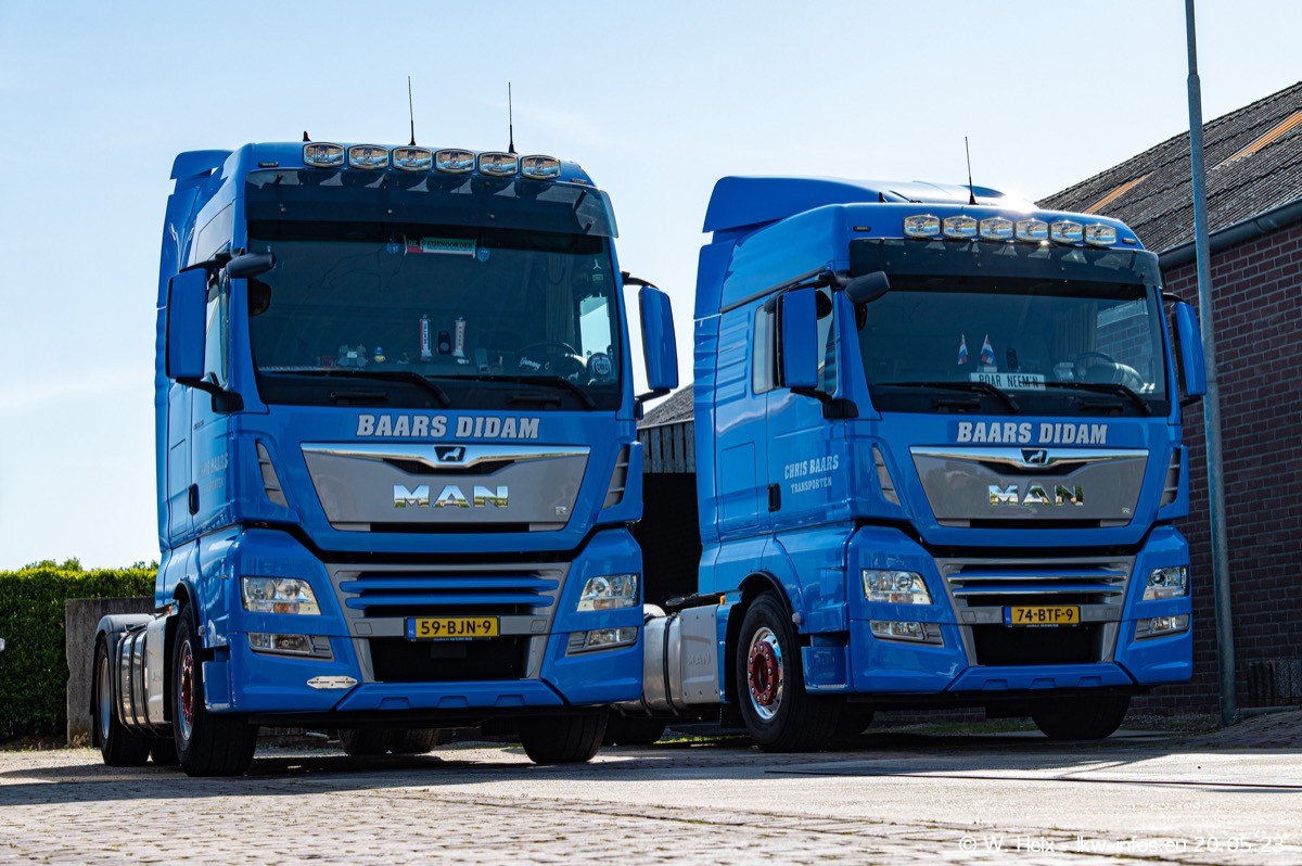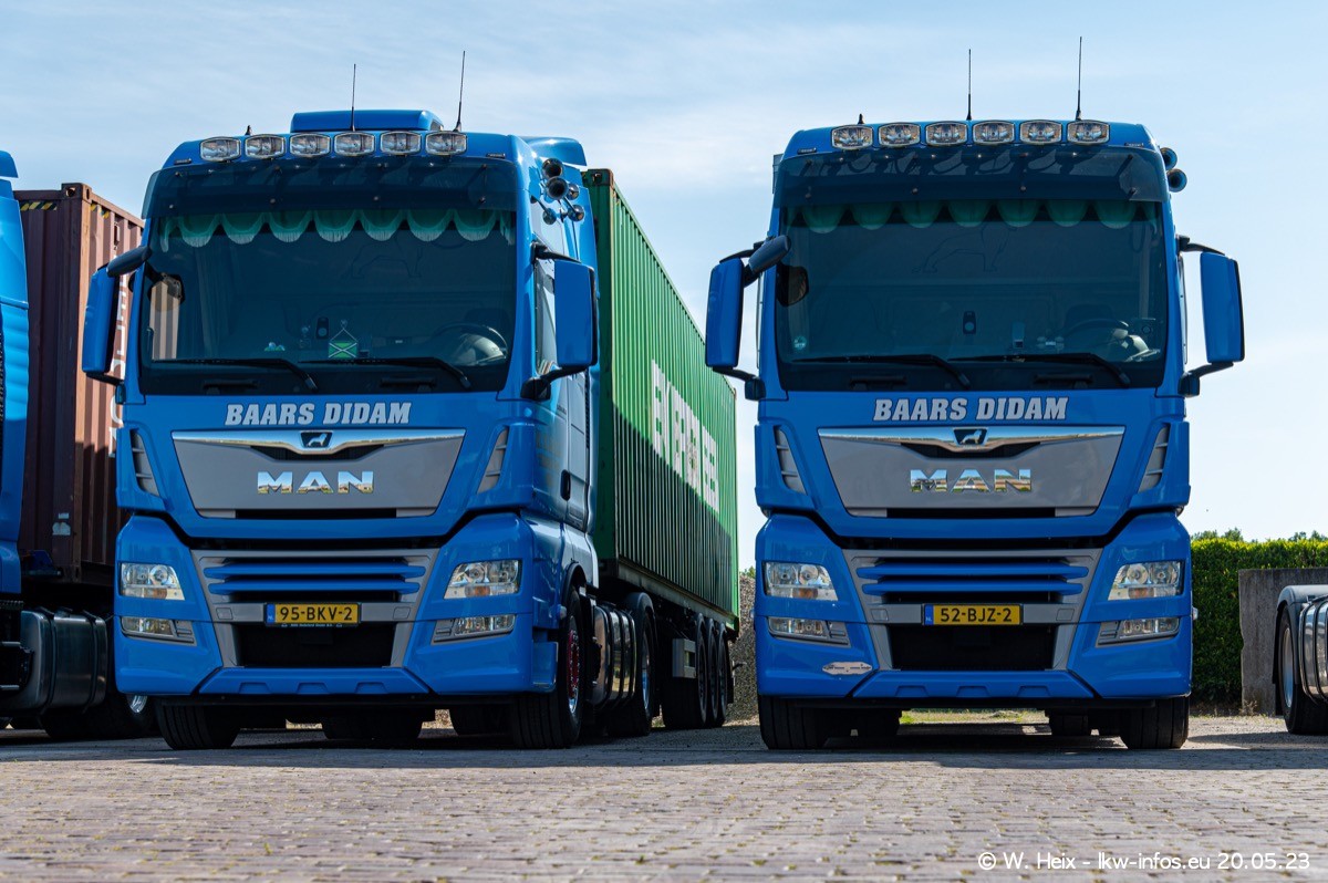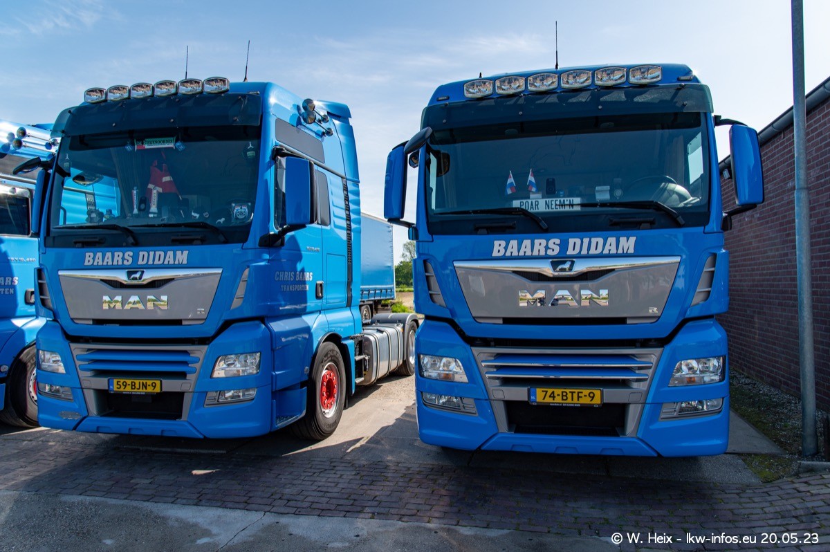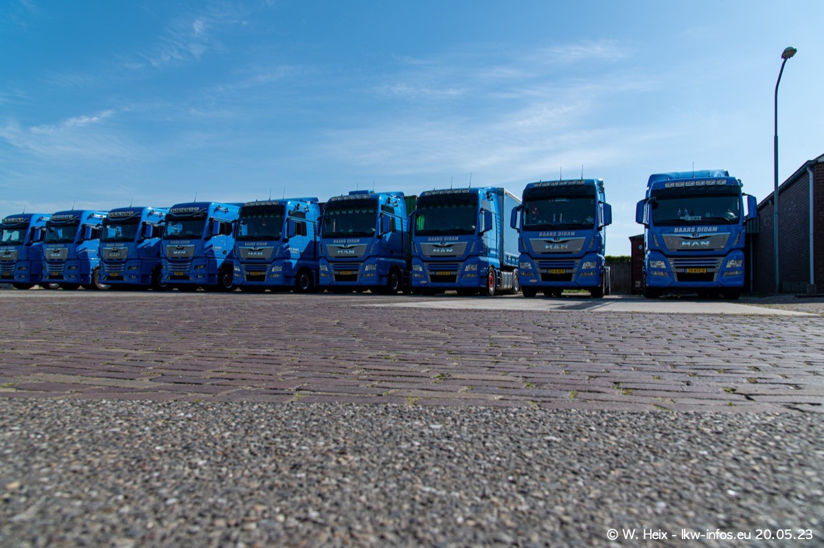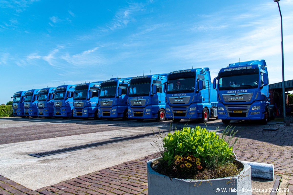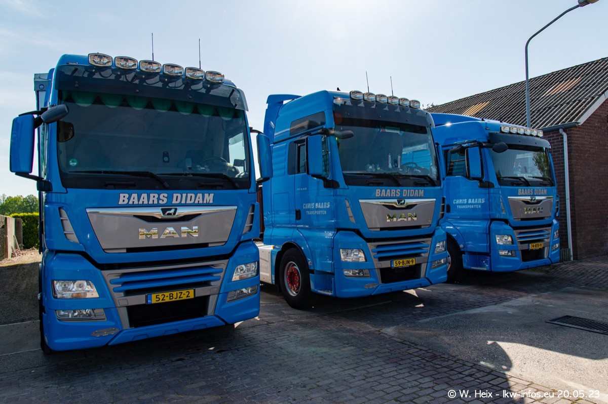 Der Fuhrpark von Baars besteht aus neun MAN, das sind vier MAN der neuen Baureihe und fünf der alten Baureihe. Die Firma ist überwiegend im Bereich Containertransport tätig. Es gibt aber auch noch zwei schöne Oldtimer. Das ist ein MAN 16.168 HAK, Baujahr 1982. Der wurde vor drei Jahren gekauft und in den eigenen Firmenfarben lackiert. Der stand auch gleich für ein kleines Fotoshooting bereit. Der zweite Oldtimer ist ein Hanomag-Henschel H 261 Allrad-Hauber. Der LKW ist von 1970 und wurde damals vom heutigen Senior-Chef neu gekauft und ist bis heute im Familienbesitz. Aktuell ist das Fahrzeug allerdings nicht fahrbereit, darum gibt es "nur" Bilder aus der Garage/Werkstatt.