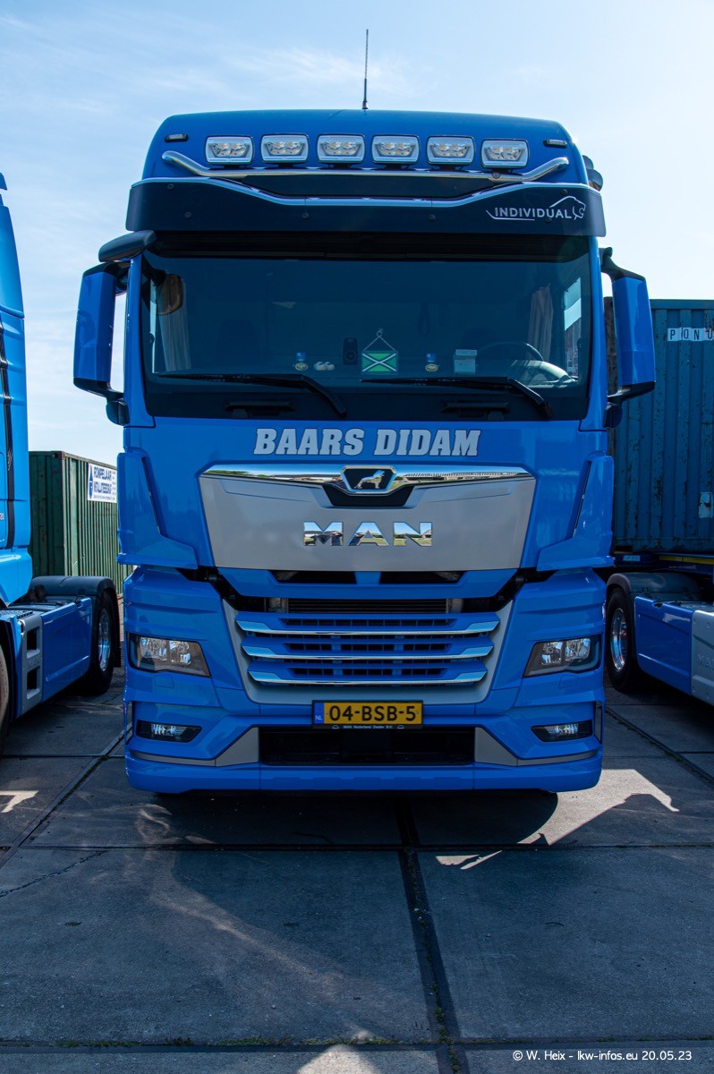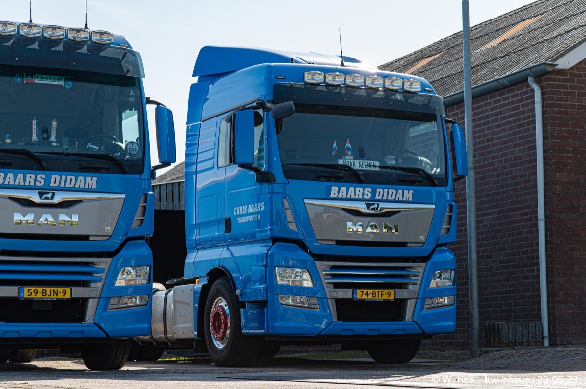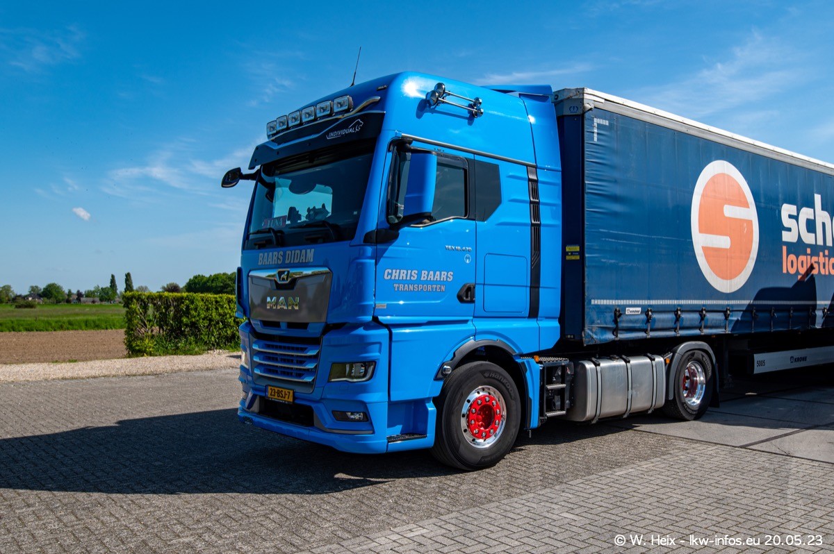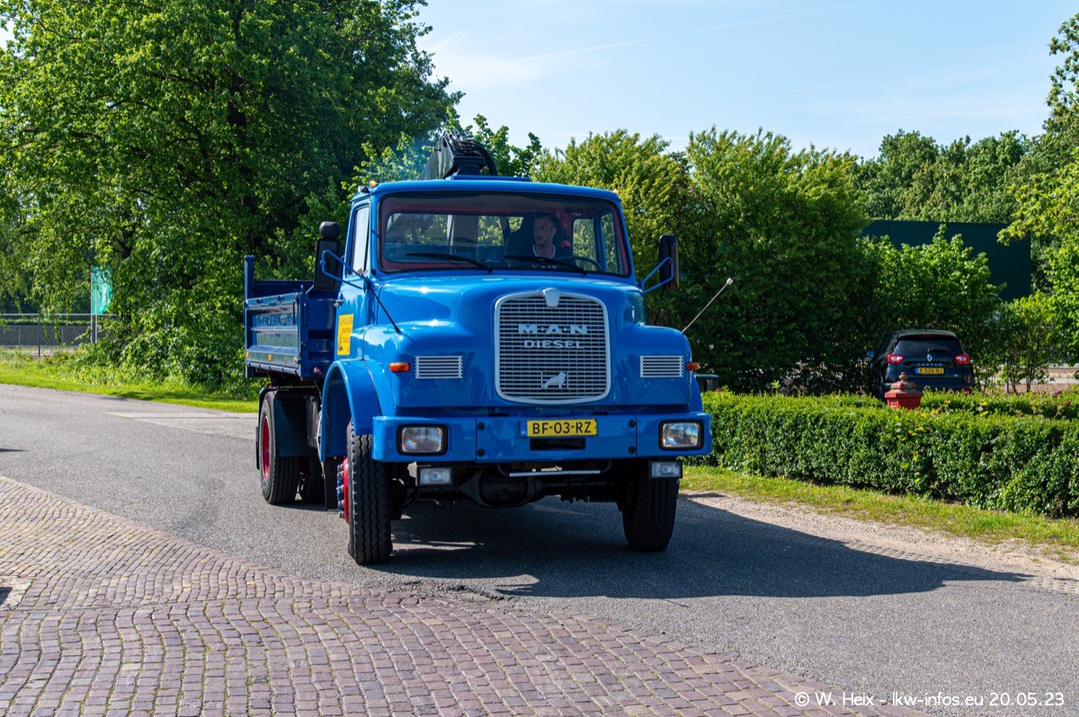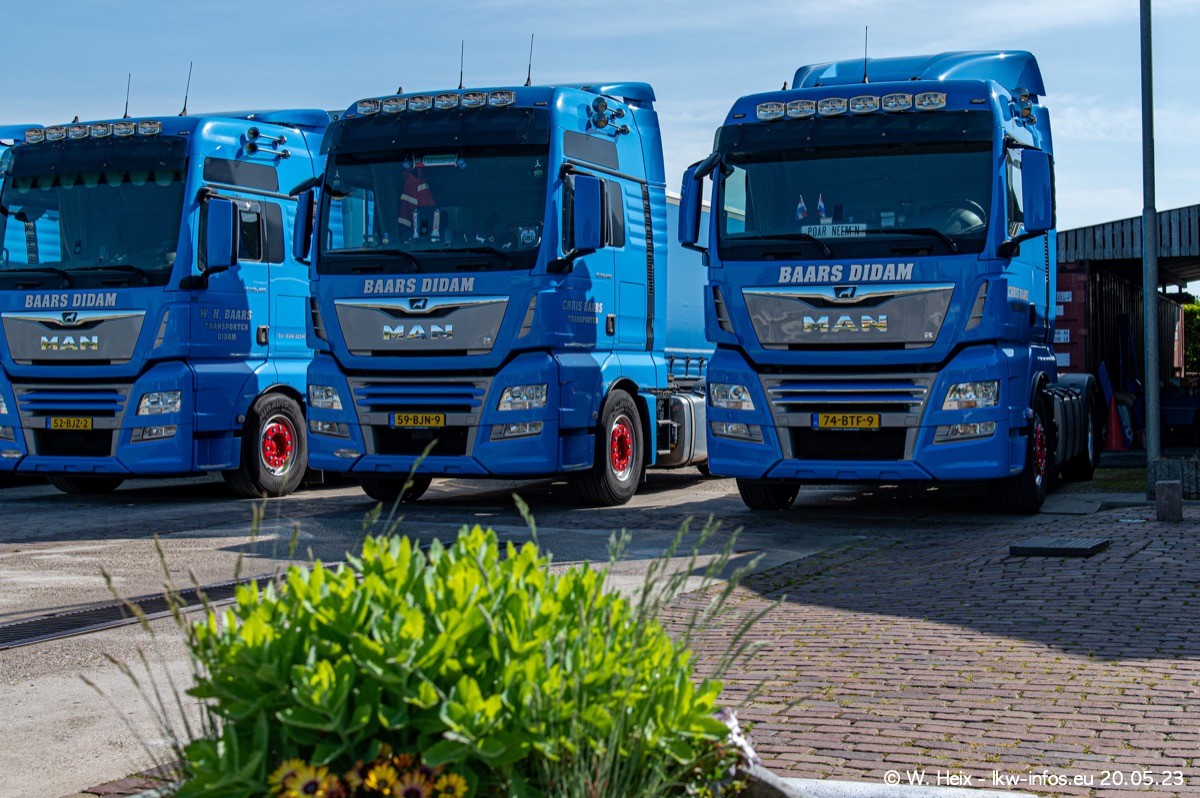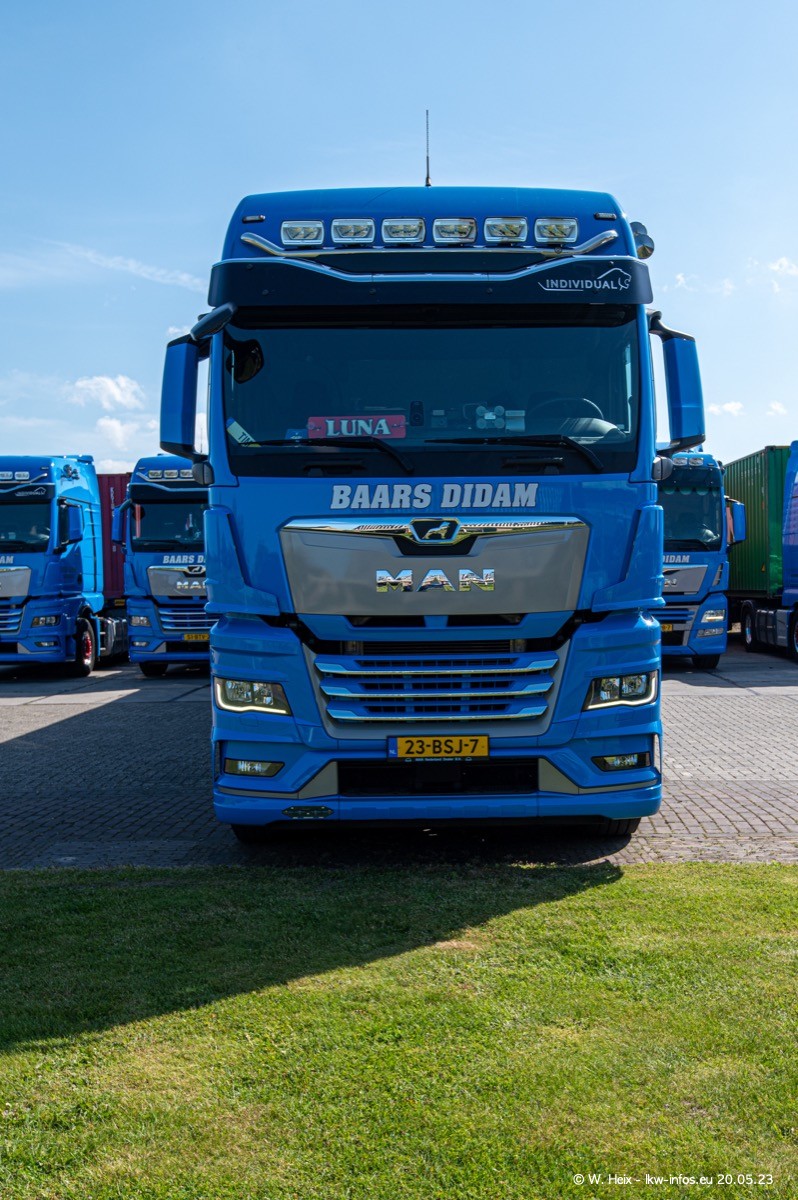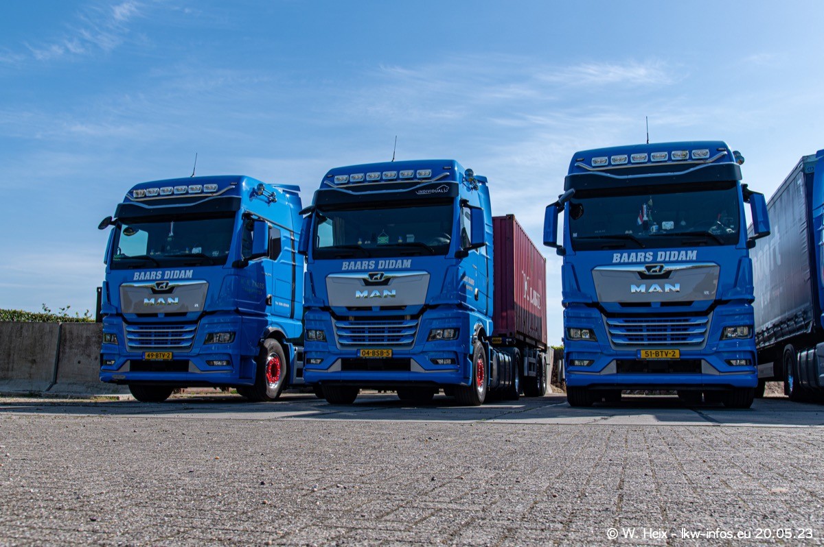 Der Fuhrpark von Baars besteht aus neun MAN, das sind vier MAN der neuen Baureihe und fünf der alten Baureihe. Die Firma ist überwiegend im Bereich Containertransport tätig. Es gibt aber auch noch zwei schöne Oldtimer. Das ist ein MAN 16.168 HAK, Baujahr 1982. Der wurde vor drei Jahren gekauft und in den eigenen Firmenfarben lackiert. Der stand auch gleich für ein kleines Fotoshooting bereit. Der zweite Oldtimer ist ein Hanomag-Henschel H 261 Allrad-Hauber. Der LKW ist von 1970 und wurde damals vom heutigen Senior-Chef neu gekauft und ist bis heute im Familienbesitz. Aktuell ist das Fahrzeug allerdings nicht fahrbereit, darum gibt es "nur" Bilder aus der Garage/Werkstatt.