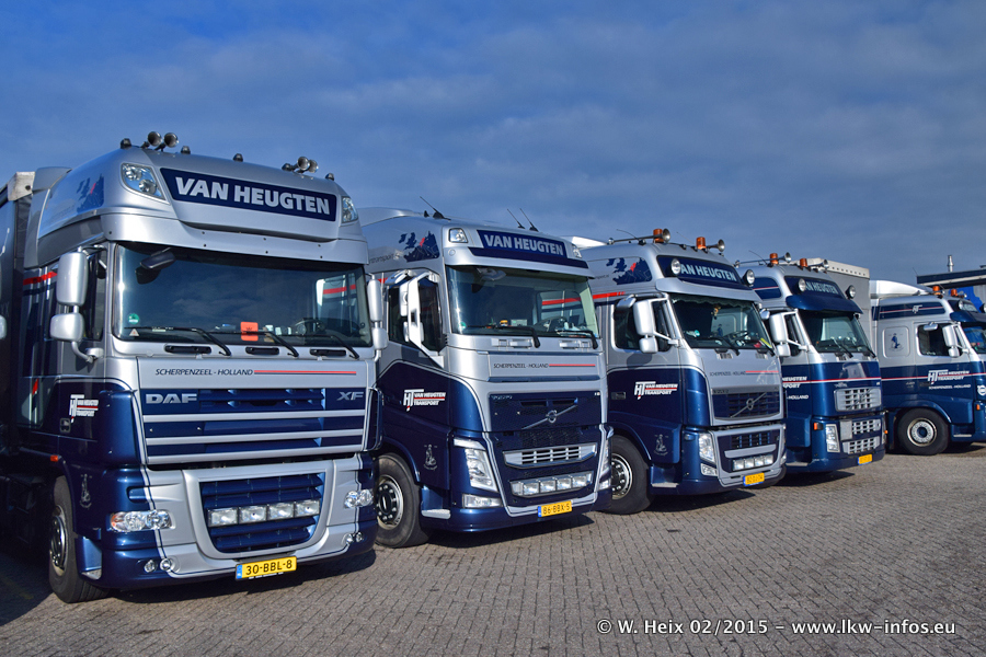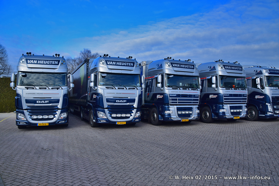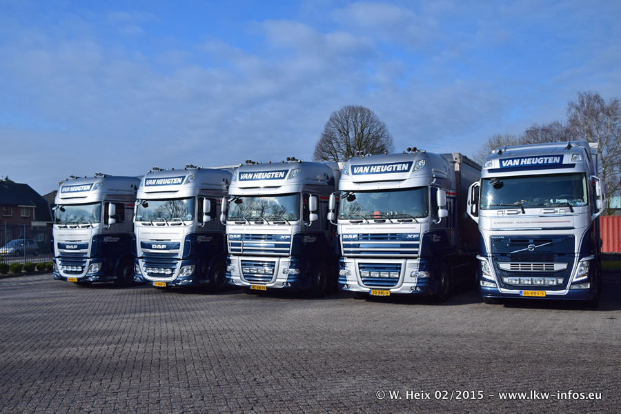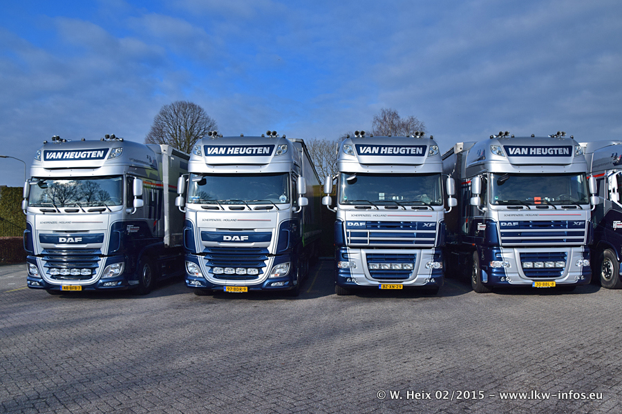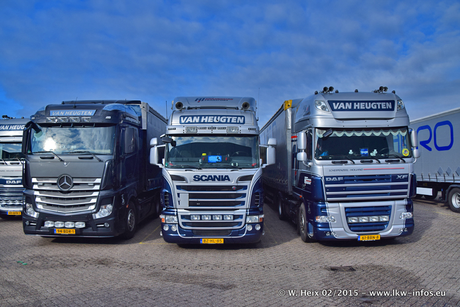 Seit meinem letzten Besuch bei van Heugten im Januar 2014 sind folgende LKW neu in den Fuhrpark gekommen: 4x DAF New XF 105 Euro 6, 2x Scania R Streamline, 1x Mercedes-Benz Actros 4. In den nächsten Wochen wird der Fuhrpark mit meinem MAN TGX Euro 6 weiter modernisiert.