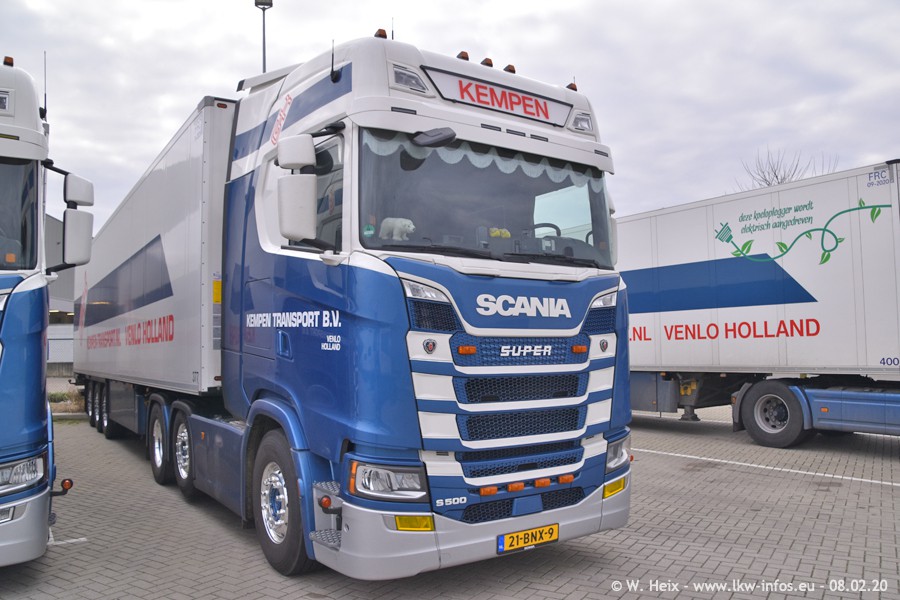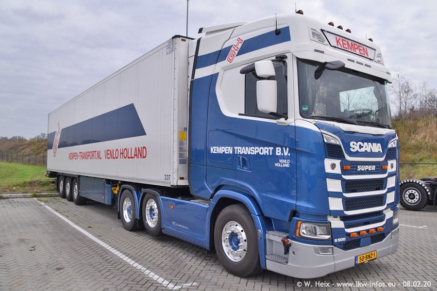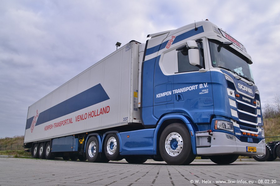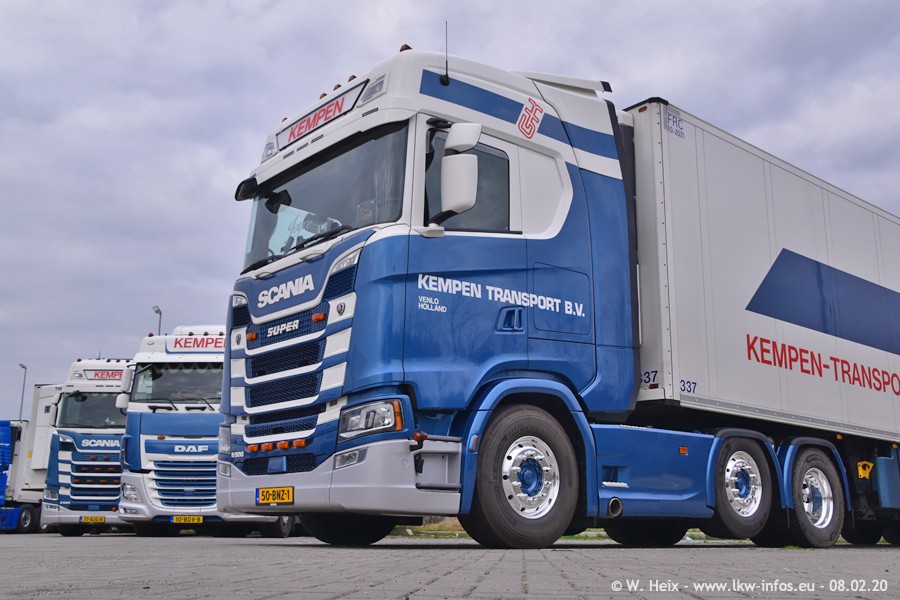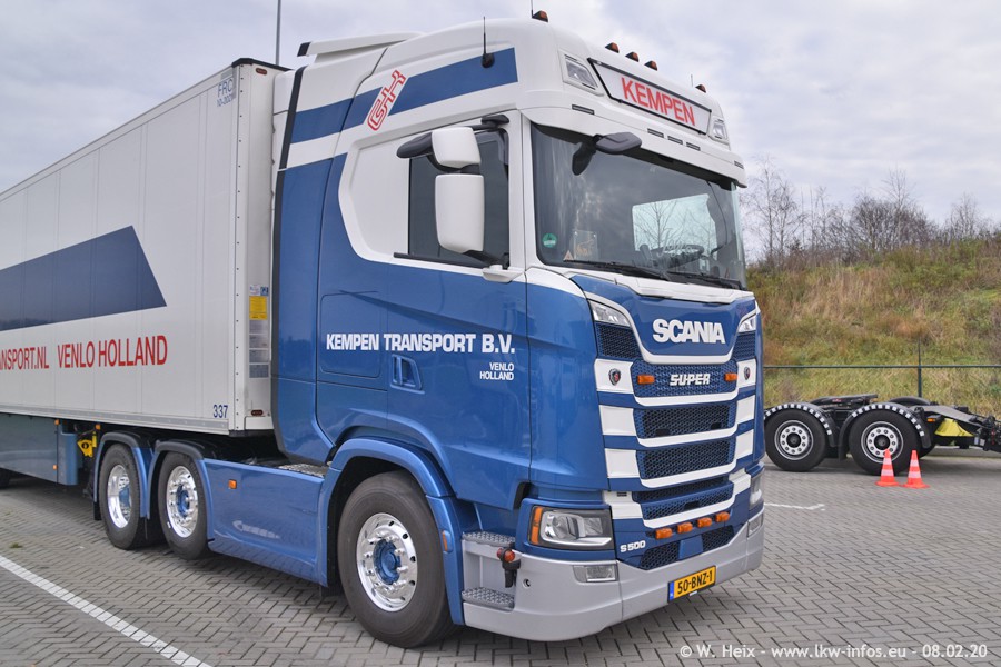 In den letzten Wochen hat Kempen Transport rund 10 weitere neuen SCANIA S 500 NextGen bekommen. Dazu kommt einer der ersten SCANIA S 540 NextGen (kein V8!) sowie der oder die ersten Mercedes-Benz New Actros 4. Diese neuen Fahrzeuge waren leider nicht da, dafür aber einige der neuen S 500 NextGen, zu erkennen an den Kennzeichen mit den Buchstabenkombinationen "BN...". Die Galerie zeigt auch wieder Fahrzeuge von Chartern (Subunternehmern).