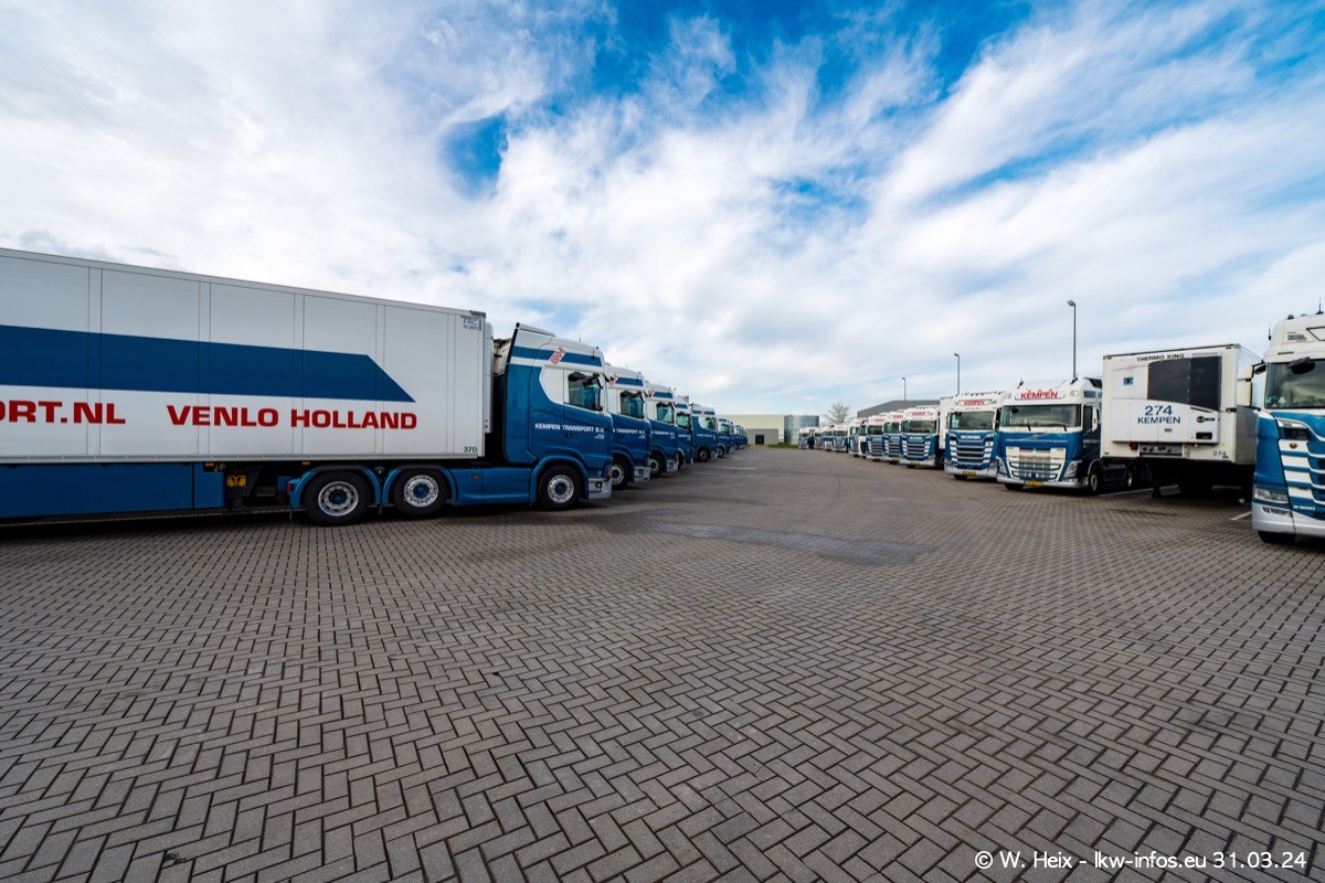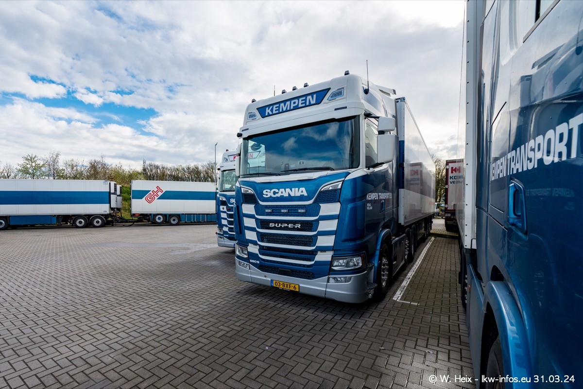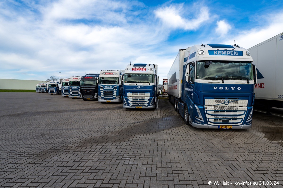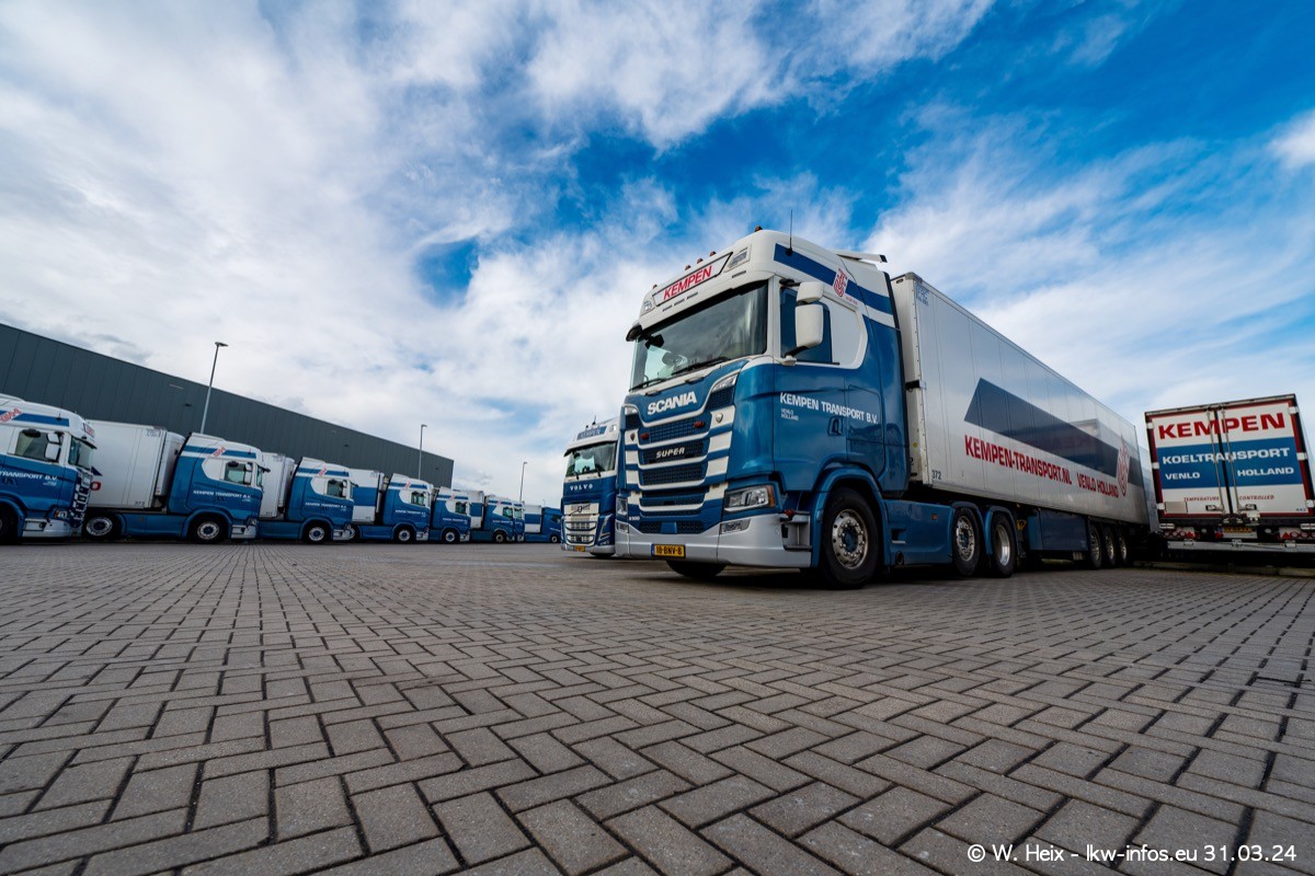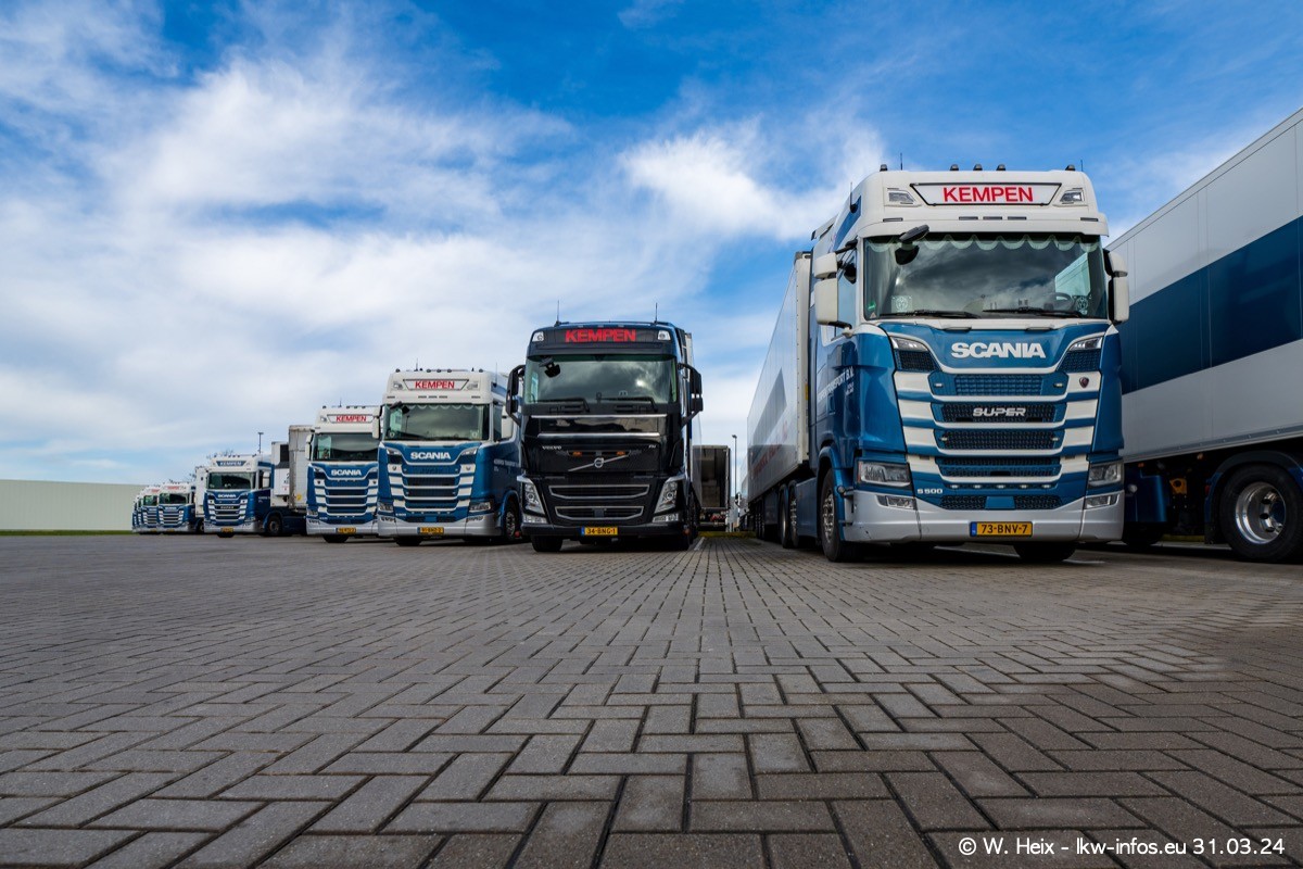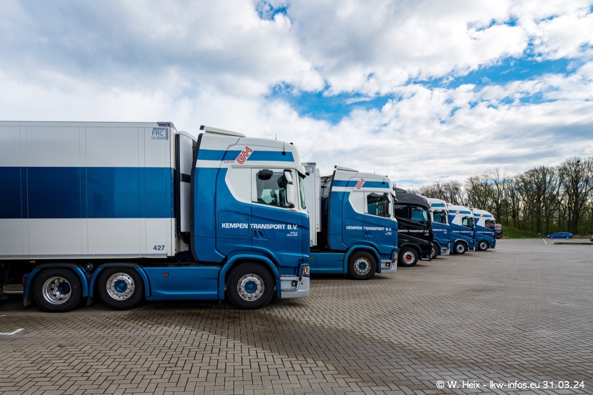 In diesem Jahr sind schon insgesamt mindestens 10 neue LKW in den Fuhrpark gekommen. Alle neuen LKW sind seit 2024 daran zu erkennen, dass aon der Fromt oben am Dach der Kempen-Schriftzug jetzt weiß ist in einem blauen Feld. Bisher war dieser immer rot auf weiß. Es waren so gut wie alle LKW zuzhause und standen auch wieder auf den Nachbargrundstücken. Diesmal konnte ich keinen SCANIA R Streamline und keinen DAF XF mehr sehen bis auf den neuen blauen DAF XG+ natürlich. Vermutlich sind jetzt alle alten SCANIA und DAF ersetzt durch VOLVO FH 5 und SCANIA R/S NextGen. Es sind natürlich auch wieder Bilder von den Chartern (Subunternehmern) in den Galerien enthalten. Auch hier tut sich immer weider mal was.