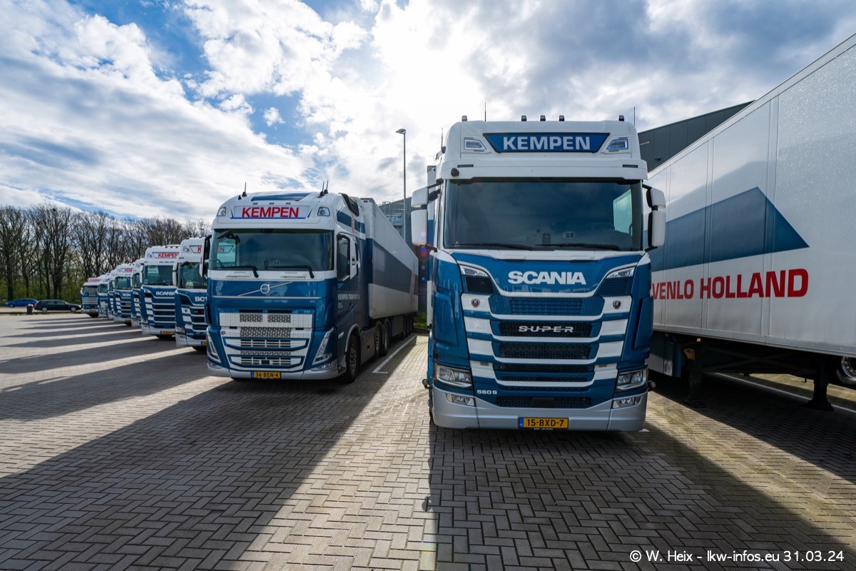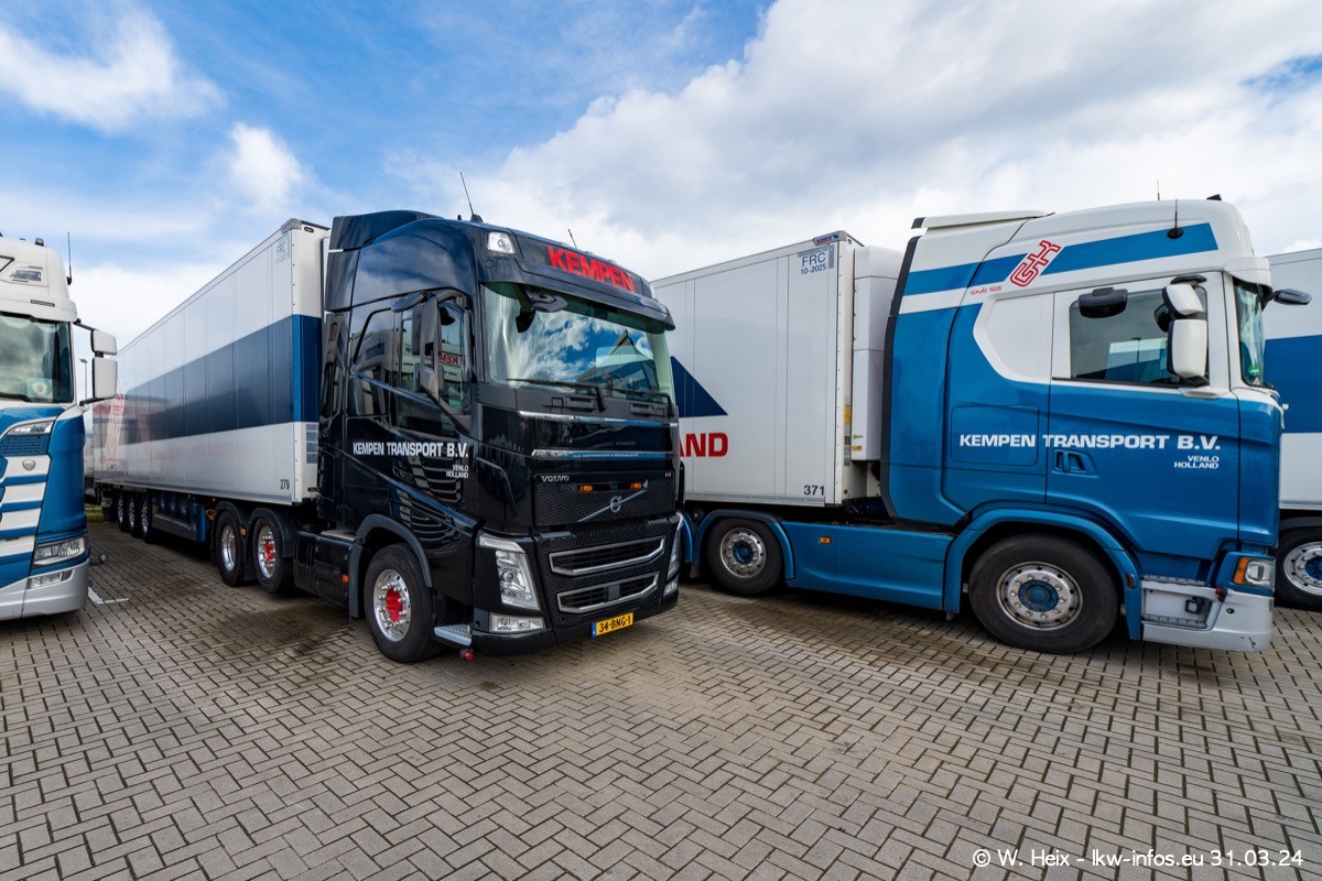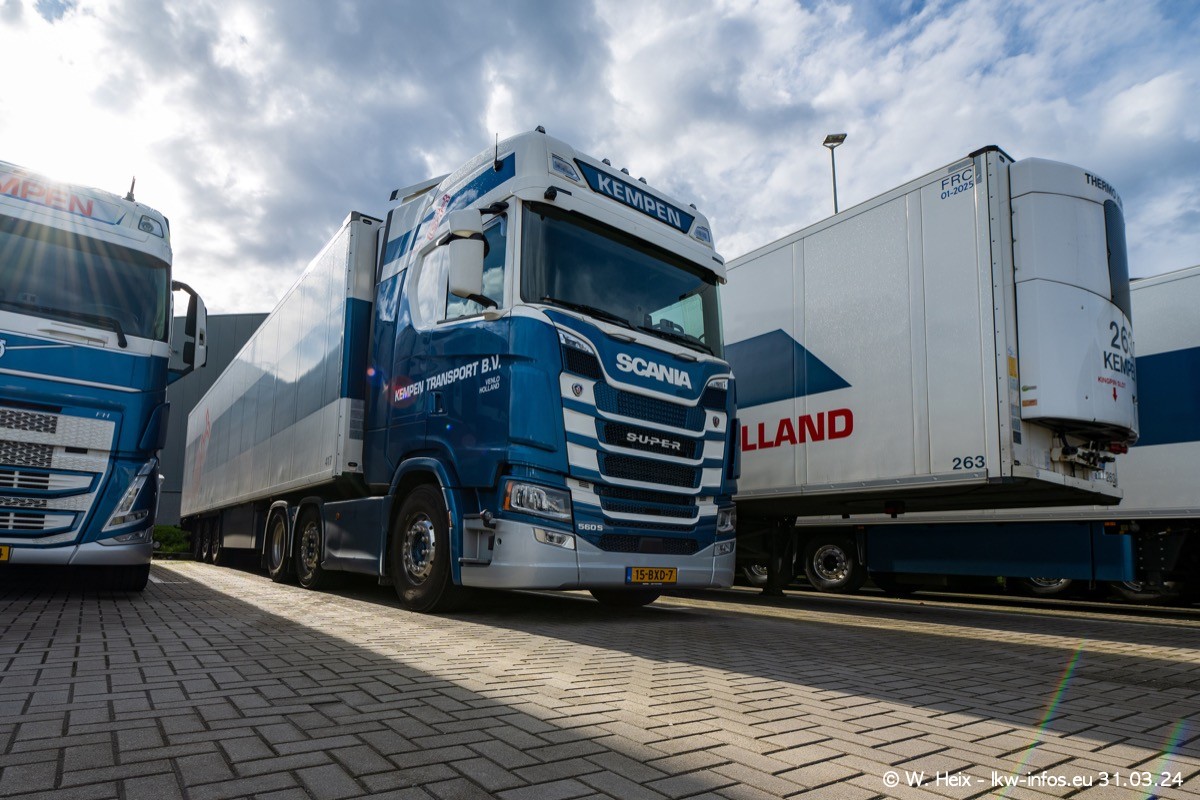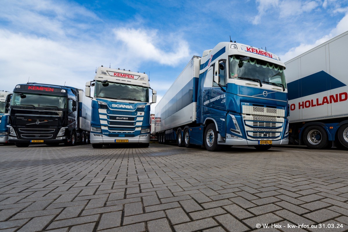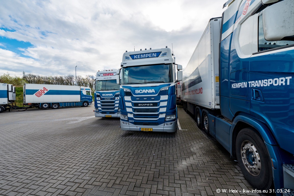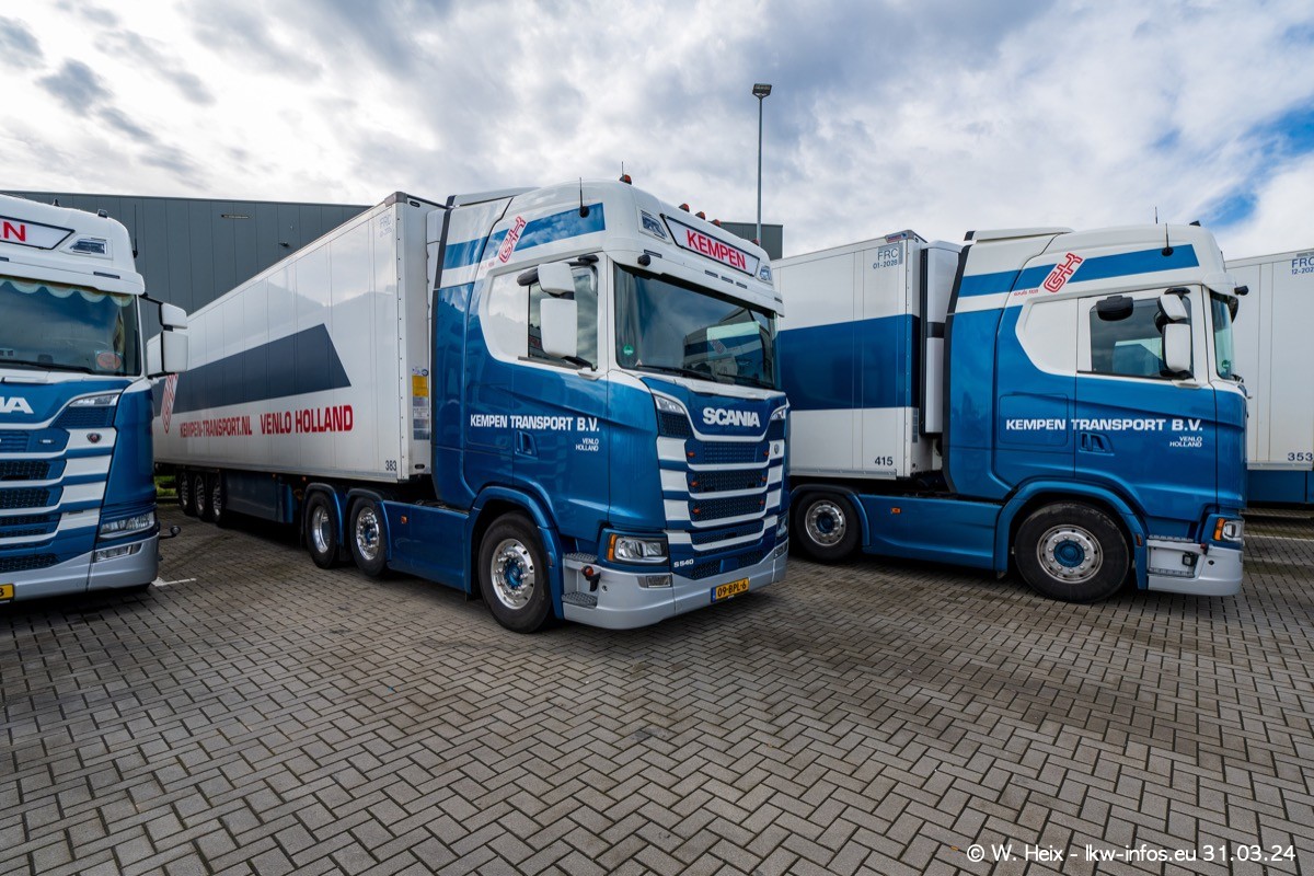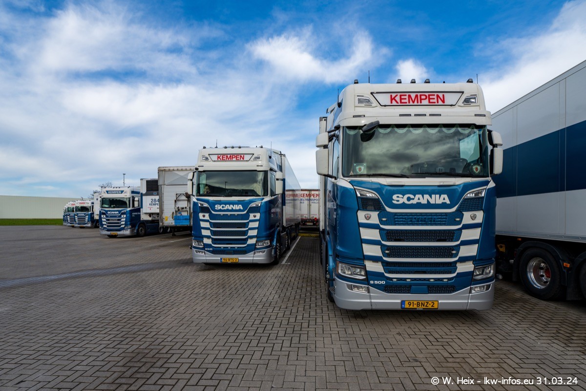 In diesem Jahr sind schon insgesamt mindestens 10 neue LKW in den Fuhrpark gekommen. Alle neuen LKW sind seit 2024 daran zu erkennen, dass aon der Fromt oben am Dach der Kempen-Schriftzug jetzt weiß ist in einem blauen Feld. Bisher war dieser immer rot auf weiß. Es waren so gut wie alle LKW zuzhause und standen auch wieder auf den Nachbargrundstücken. Diesmal konnte ich keinen SCANIA R Streamline und keinen DAF XF mehr sehen bis auf den neuen blauen DAF XG+ natürlich. Vermutlich sind jetzt alle alten SCANIA und DAF ersetzt durch VOLVO FH 5 und SCANIA R/S NextGen. Es sind natürlich auch wieder Bilder von den Chartern (Subunternehmern) in den Galerien enthalten. Auch hier tut sich immer weider mal was.