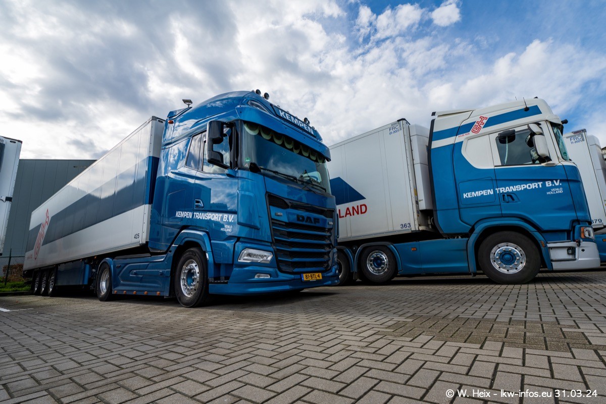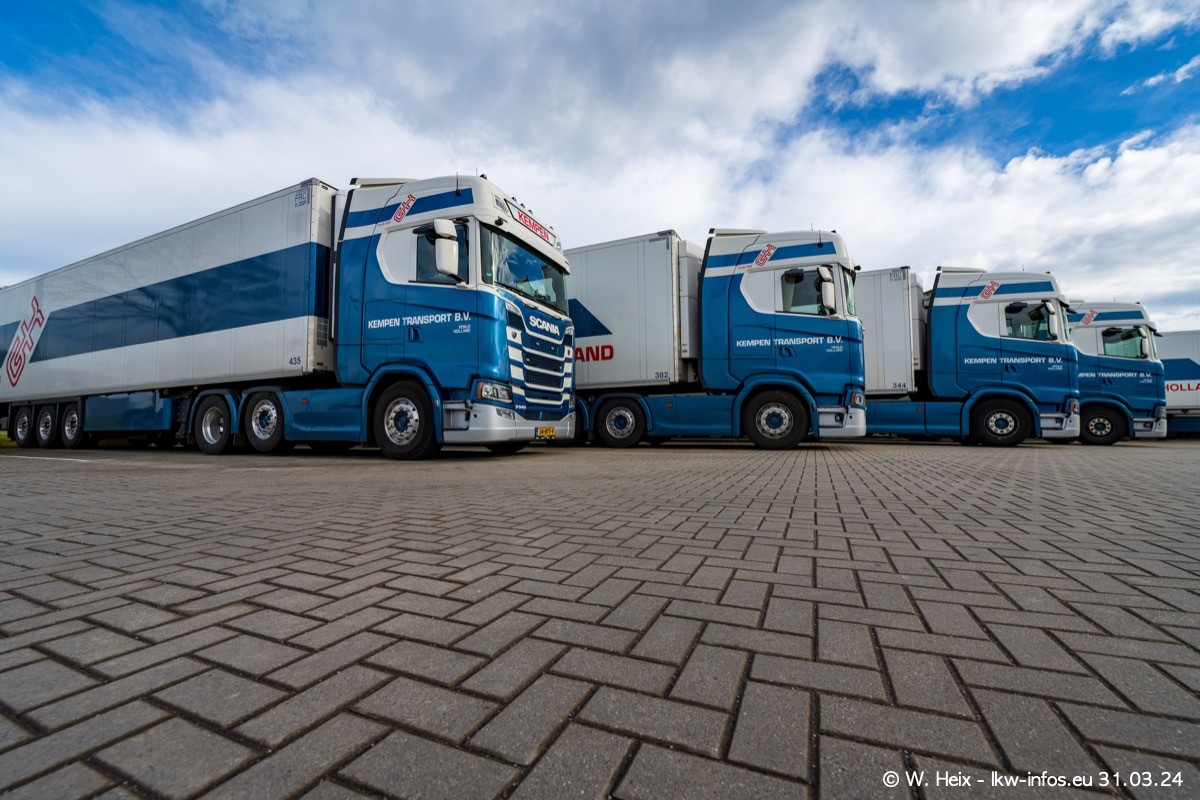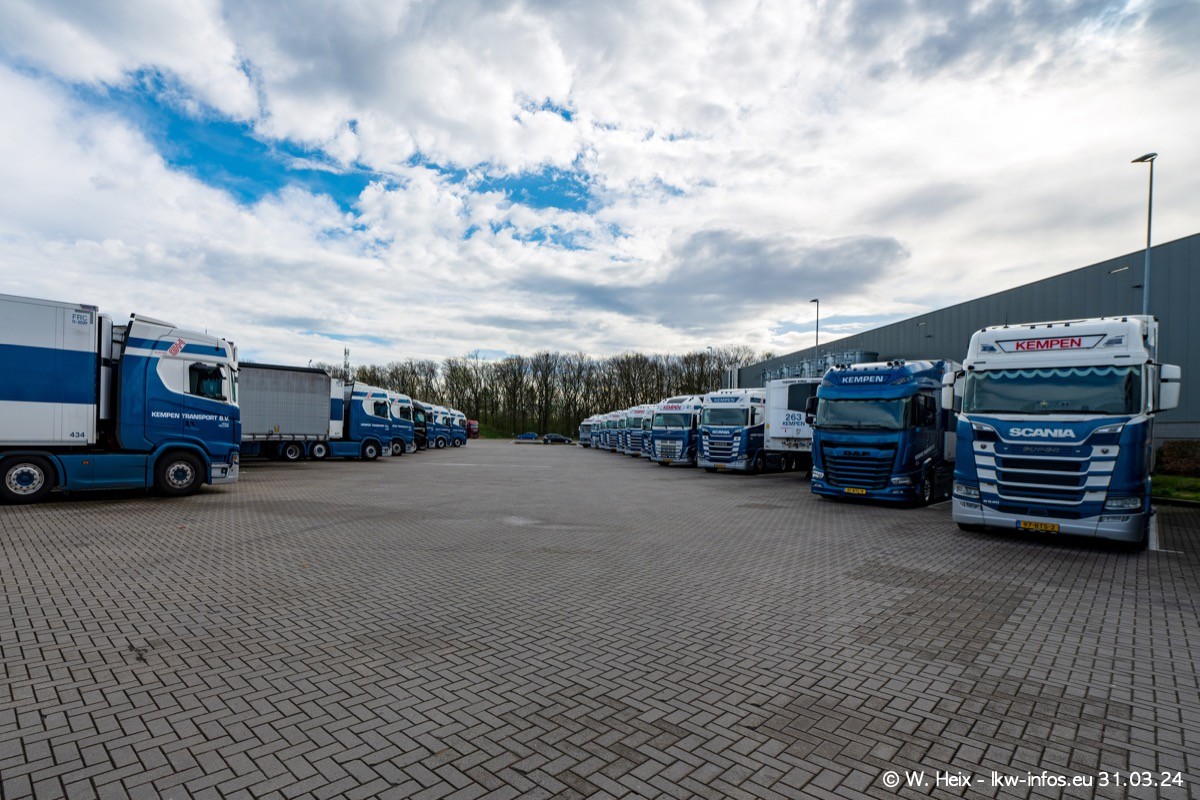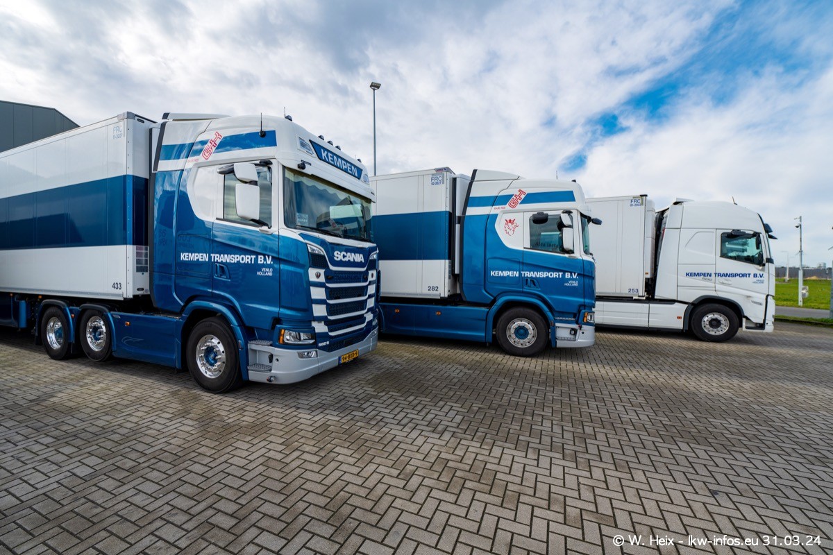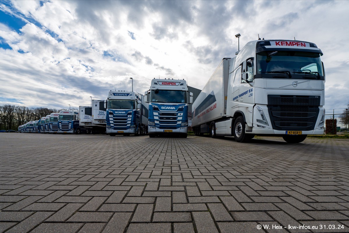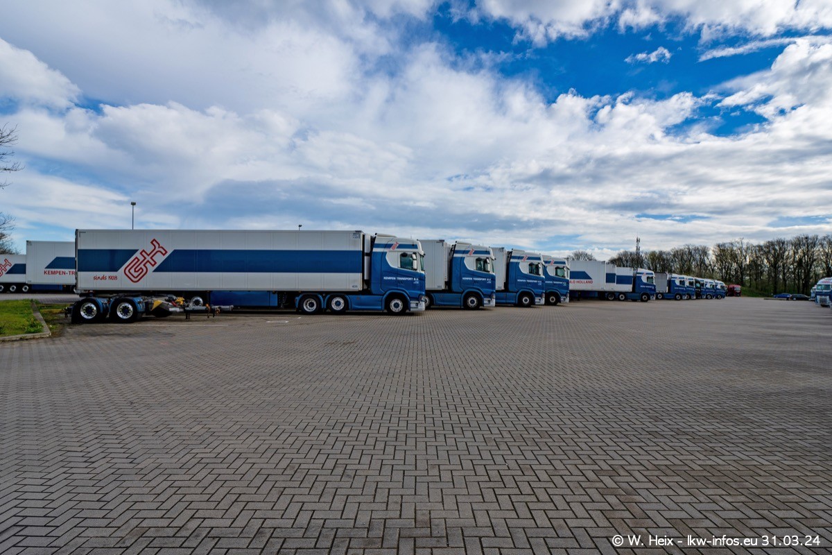 In diesem Jahr sind schon insgesamt mindestens 10 neue LKW in den Fuhrpark gekommen. Alle neuen LKW sind seit 2024 daran zu erkennen, dass aon der Fromt oben am Dach der Kempen-Schriftzug jetzt weiß ist in einem blauen Feld. Bisher war dieser immer rot auf weiß. Es waren so gut wie alle LKW zuzhause und standen auch wieder auf den Nachbargrundstücken. Diesmal konnte ich keinen SCANIA R Streamline und keinen DAF XF mehr sehen bis auf den neuen blauen DAF XG+ natürlich. Vermutlich sind jetzt alle alten SCANIA und DAF ersetzt durch VOLVO FH 5 und SCANIA R/S NextGen. Es sind natürlich auch wieder Bilder von den Chartern (Subunternehmern) in den Galerien enthalten. Auch hier tut sich immer weider mal was.