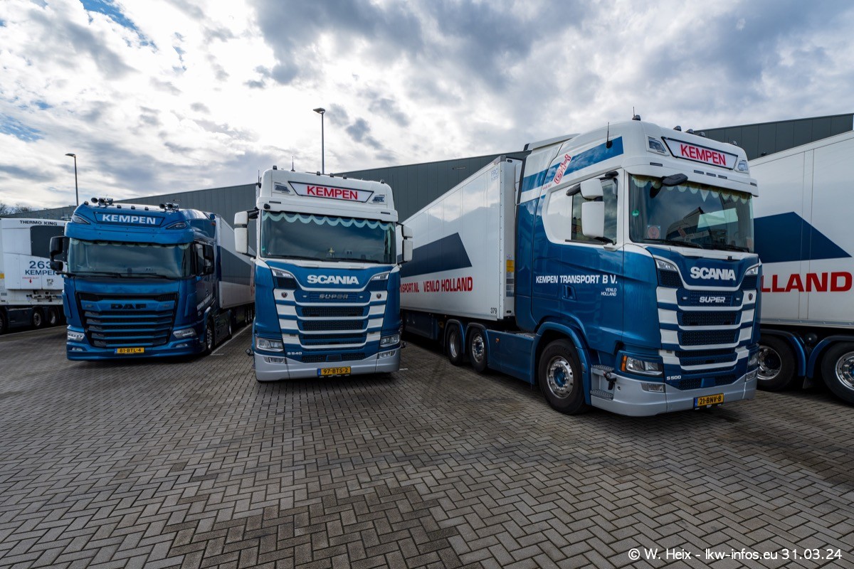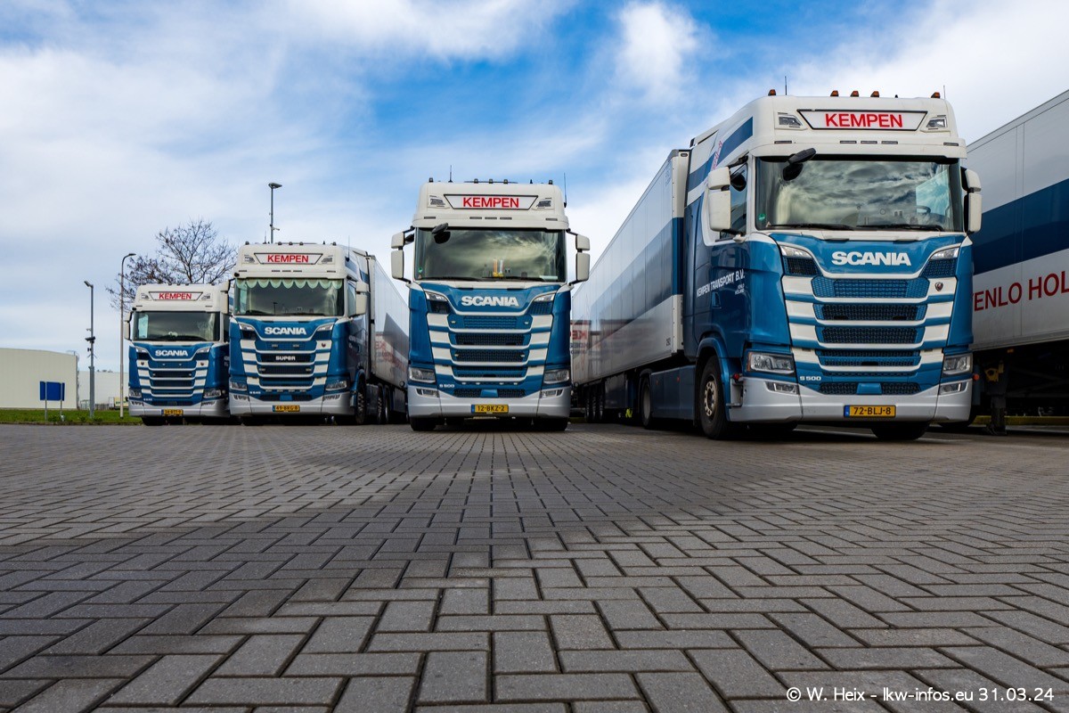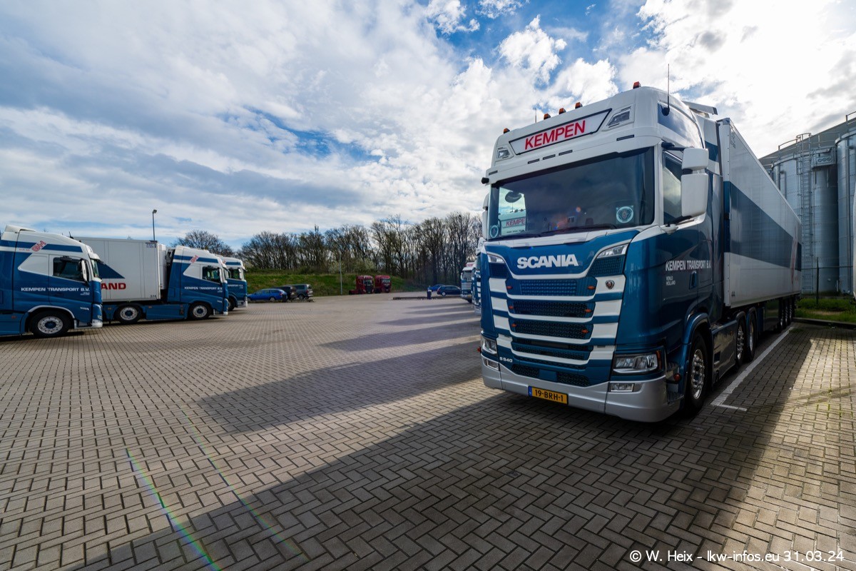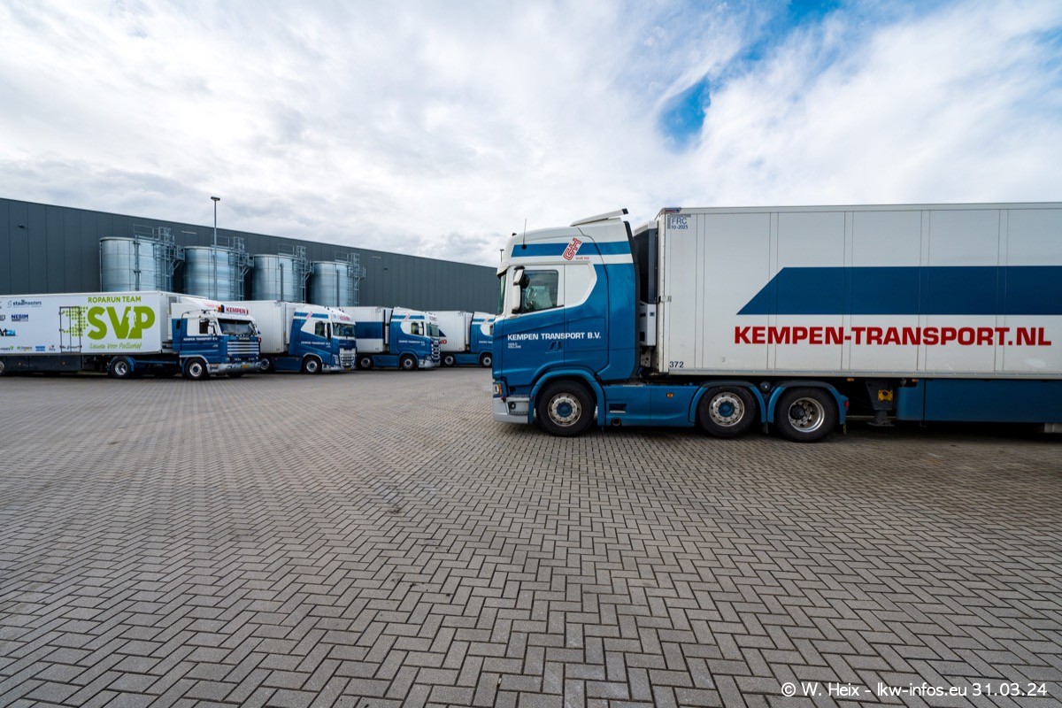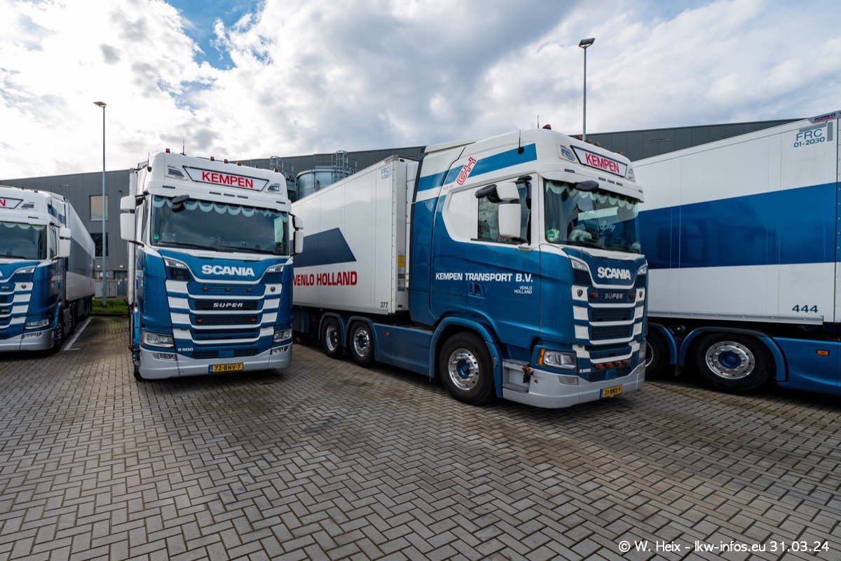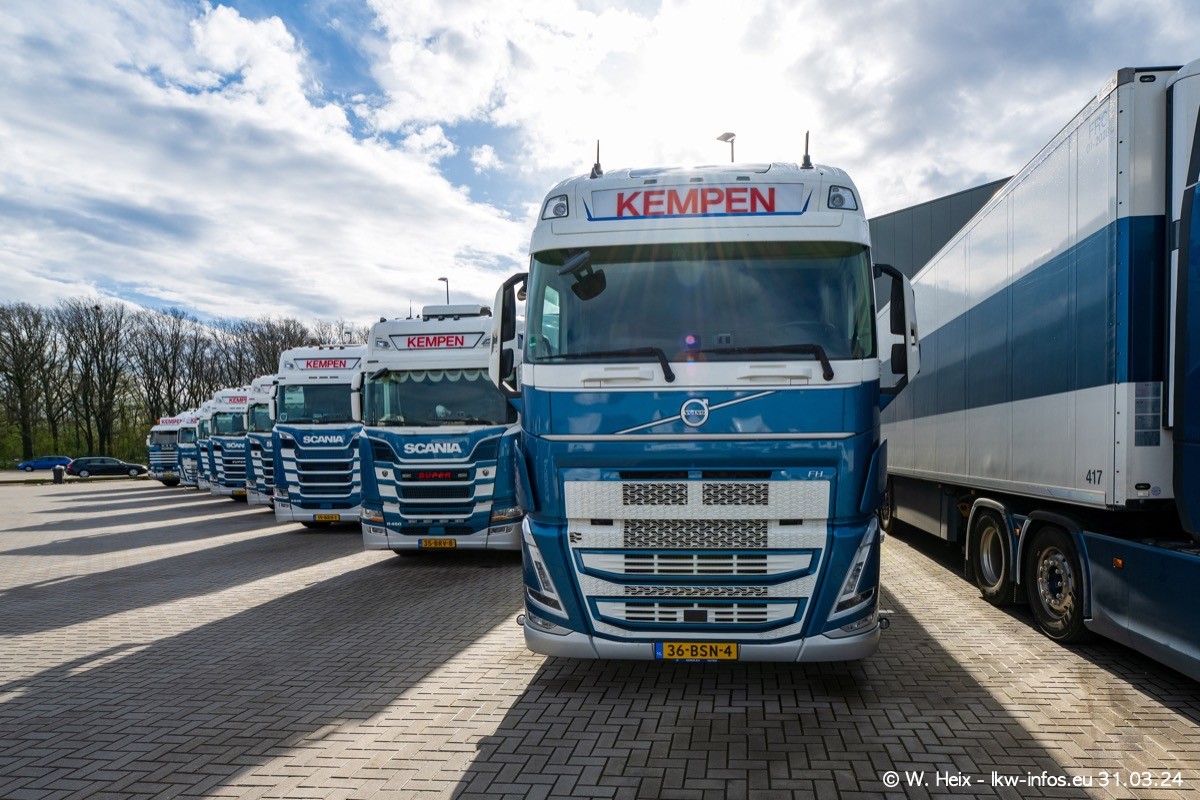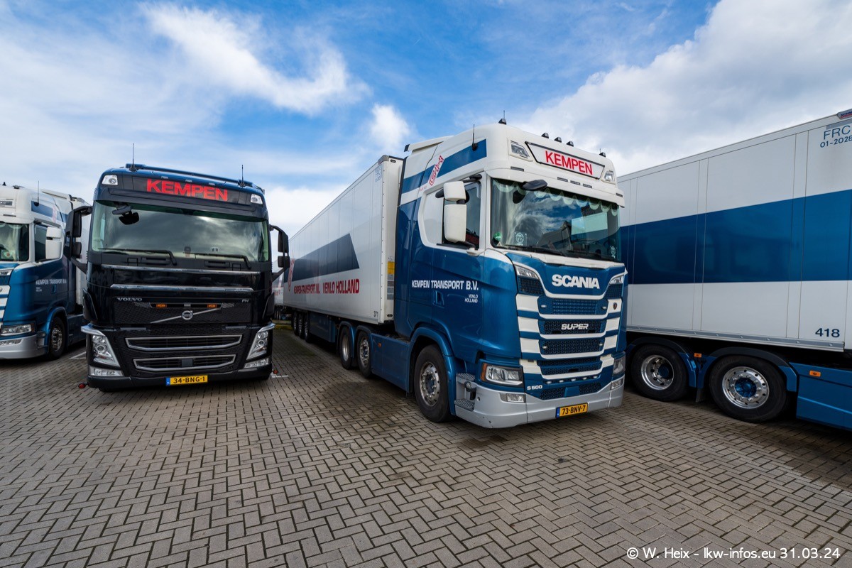 In diesem Jahr sind schon insgesamt mindestens 10 neue LKW in den Fuhrpark gekommen. Alle neuen LKW sind seit 2024 daran zu erkennen, dass aon der Fromt oben am Dach der Kempen-Schriftzug jetzt weiß ist in einem blauen Feld. Bisher war dieser immer rot auf weiß. Es waren so gut wie alle LKW zuzhause und standen auch wieder auf den Nachbargrundstücken. Diesmal konnte ich keinen SCANIA R Streamline und keinen DAF XF mehr sehen bis auf den neuen blauen DAF XG+ natürlich. Vermutlich sind jetzt alle alten SCANIA und DAF ersetzt durch VOLVO FH 5 und SCANIA R/S NextGen. Es sind natürlich auch wieder Bilder von den Chartern (Subunternehmern) in den Galerien enthalten. Auch hier tut sich immer weider mal was.