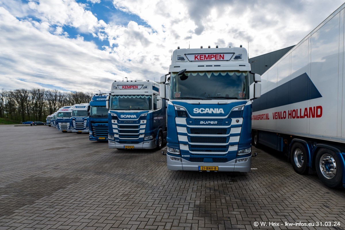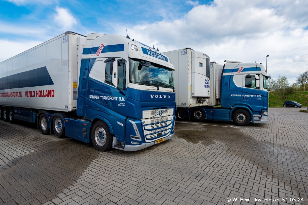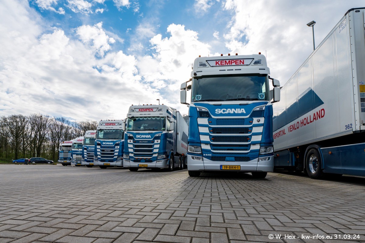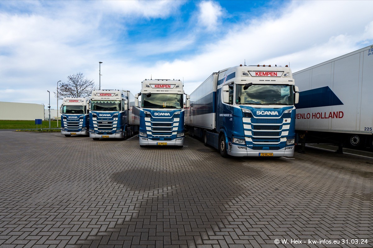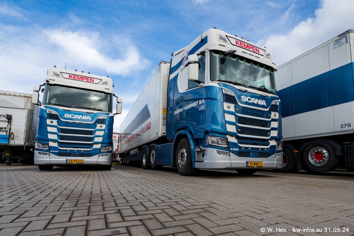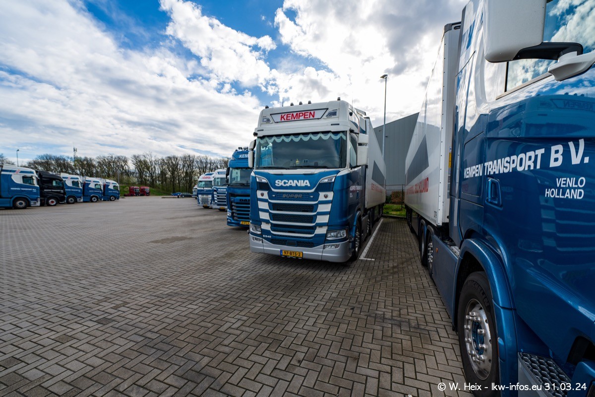 In diesem Jahr sind schon insgesamt mindestens 10 neue LKW in den Fuhrpark gekommen. Alle neuen LKW sind seit 2024 daran zu erkennen, dass aon der Fromt oben am Dach der Kempen-Schriftzug jetzt weiß ist in einem blauen Feld. Bisher war dieser immer rot auf weiß. Es waren so gut wie alle LKW zuzhause und standen auch wieder auf den Nachbargrundstücken. Diesmal konnte ich keinen SCANIA R Streamline und keinen DAF XF mehr sehen bis auf den neuen blauen DAF XG+ natürlich. Vermutlich sind jetzt alle alten SCANIA und DAF ersetzt durch VOLVO FH 5 und SCANIA R/S NextGen. Es sind natürlich auch wieder Bilder von den Chartern (Subunternehmern) in den Galerien enthalten. Auch hier tut sich immer weider mal was.