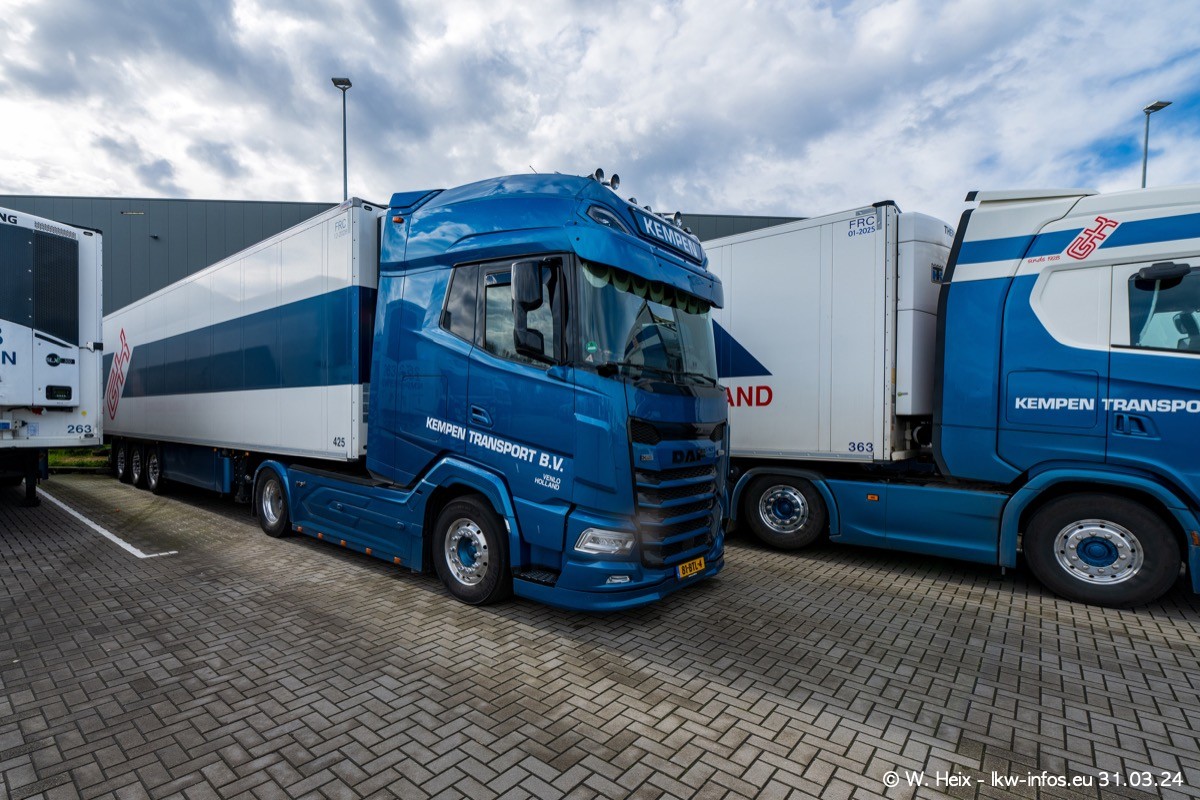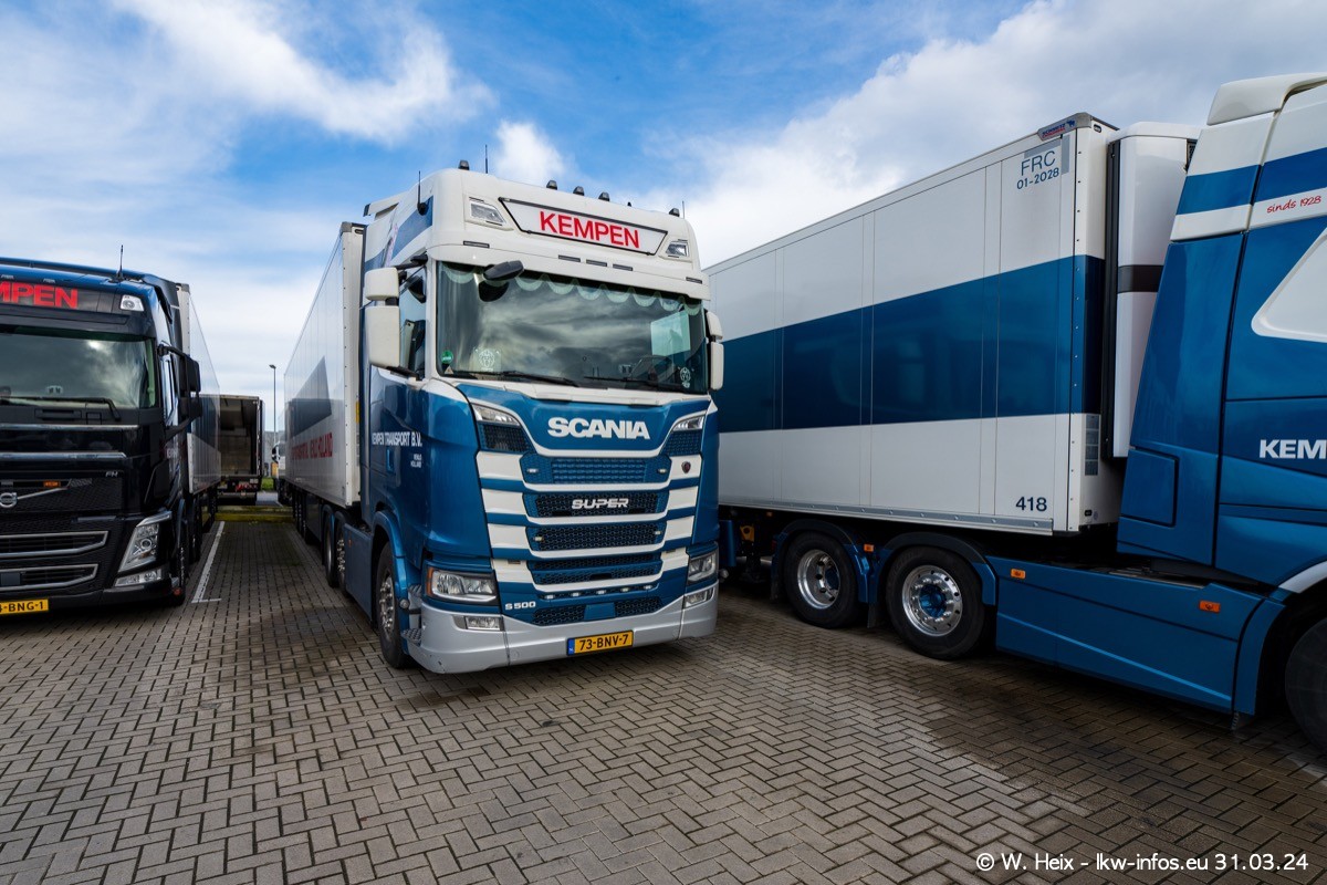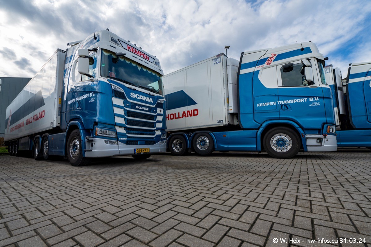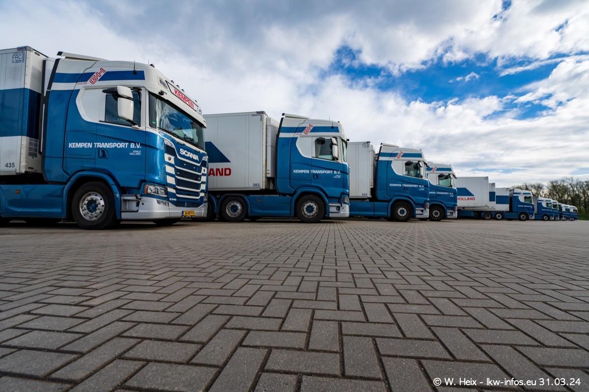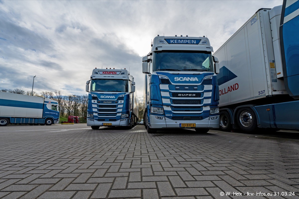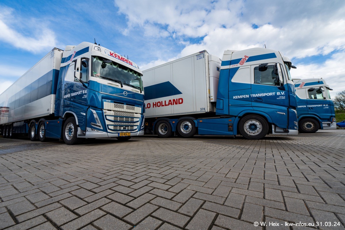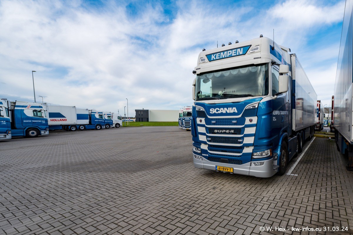 In diesem Jahr sind schon insgesamt mindestens 10 neue LKW in den Fuhrpark gekommen. Alle neuen LKW sind seit 2024 daran zu erkennen, dass aon der Fromt oben am Dach der Kempen-Schriftzug jetzt weiß ist in einem blauen Feld. Bisher war dieser immer rot auf weiß. Es waren so gut wie alle LKW zuzhause und standen auch wieder auf den Nachbargrundstücken. Diesmal konnte ich keinen SCANIA R Streamline und keinen DAF XF mehr sehen bis auf den neuen blauen DAF XG+ natürlich. Vermutlich sind jetzt alle alten SCANIA und DAF ersetzt durch VOLVO FH 5 und SCANIA R/S NextGen. Es sind natürlich auch wieder Bilder von den Chartern (Subunternehmern) in den Galerien enthalten. Auch hier tut sich immer weider mal was.