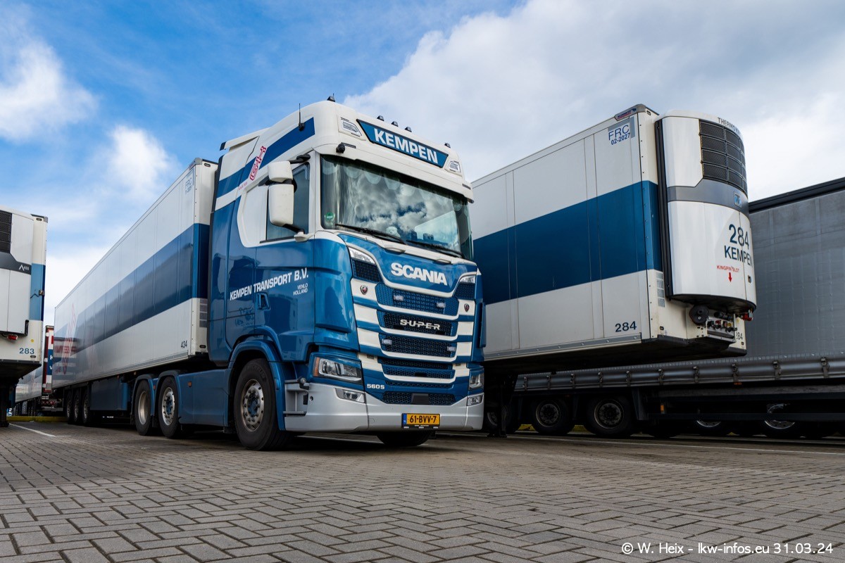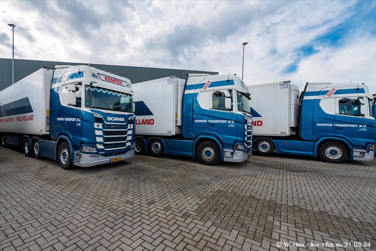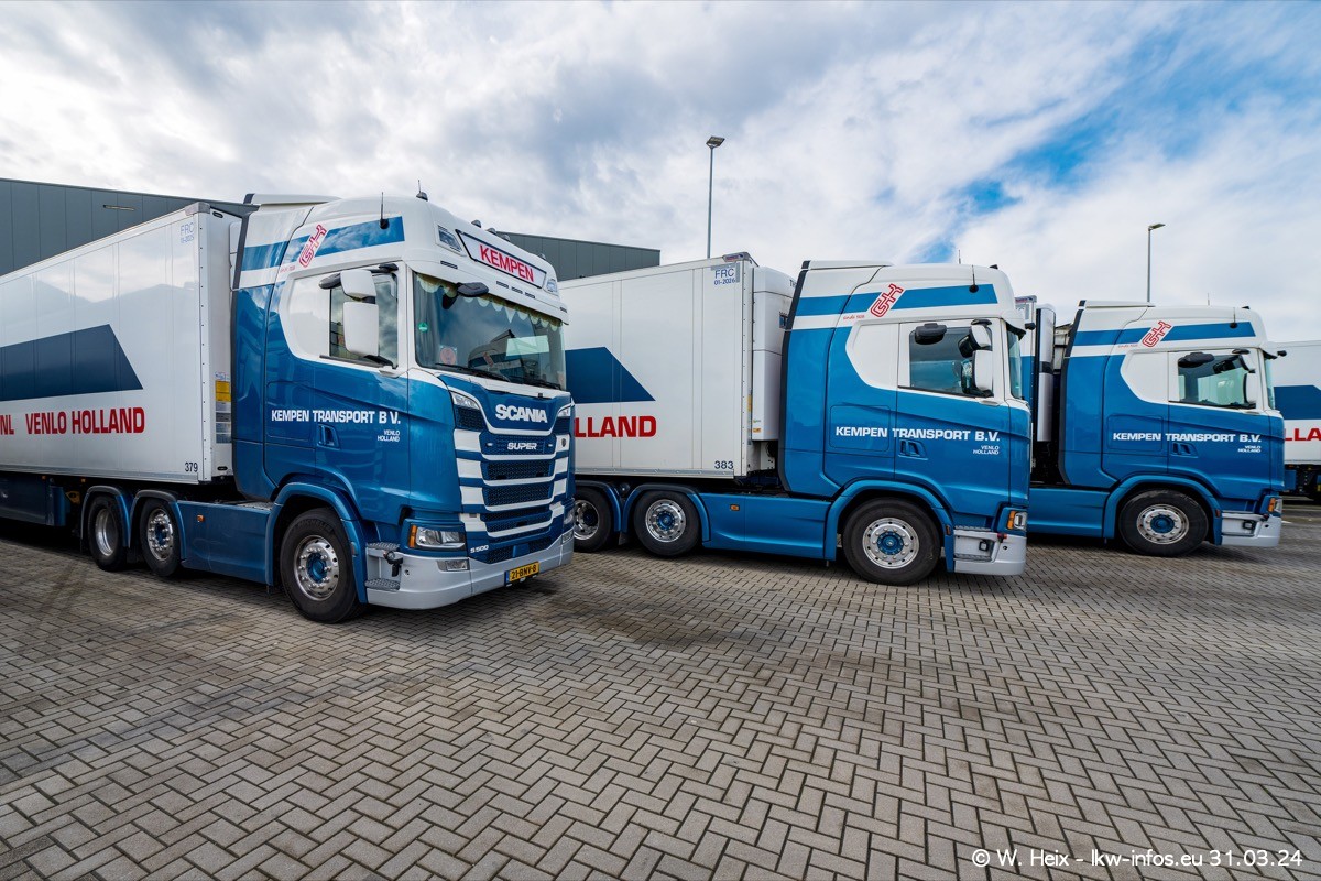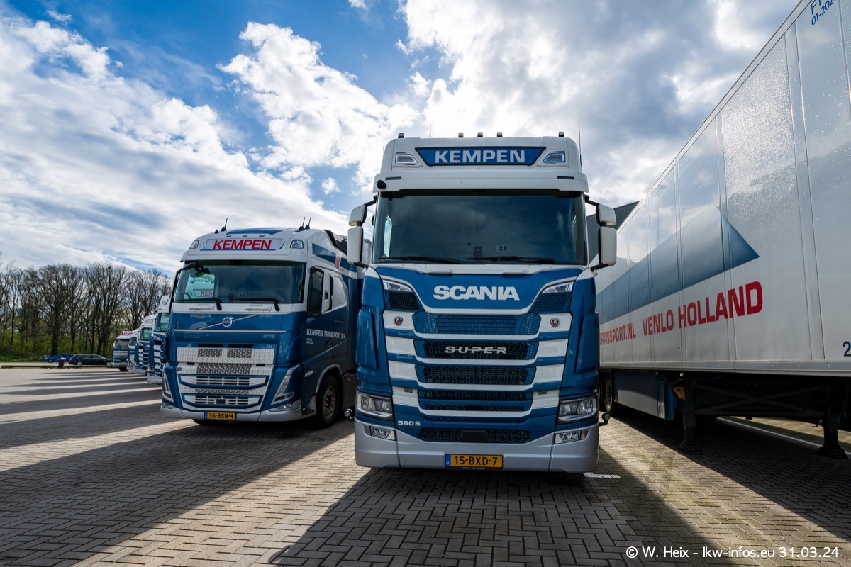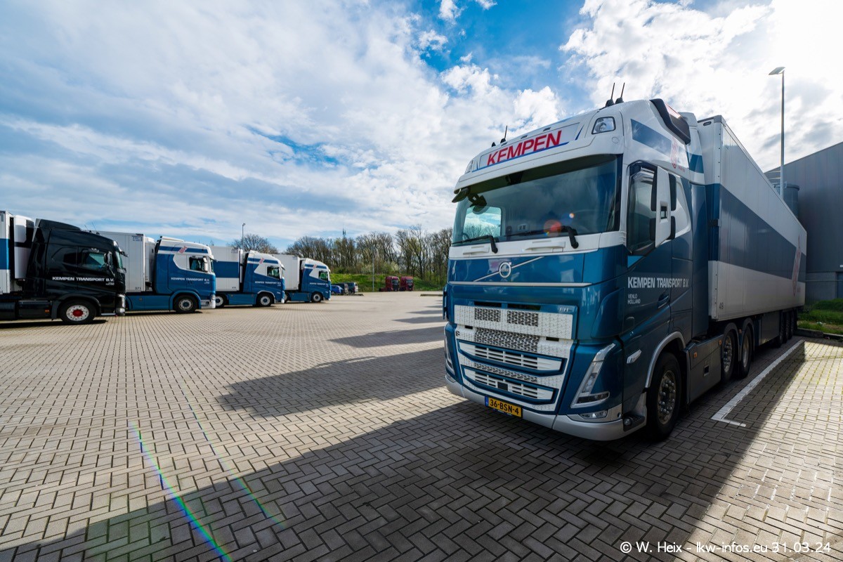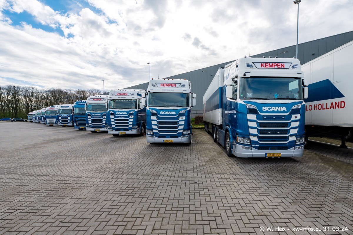 In diesem Jahr sind schon insgesamt mindestens 10 neue LKW in den Fuhrpark gekommen. Alle neuen LKW sind seit 2024 daran zu erkennen, dass aon der Fromt oben am Dach der Kempen-Schriftzug jetzt weiß ist in einem blauen Feld. Bisher war dieser immer rot auf weiß. Es waren so gut wie alle LKW zuzhause und standen auch wieder auf den Nachbargrundstücken. Diesmal konnte ich keinen SCANIA R Streamline und keinen DAF XF mehr sehen bis auf den neuen blauen DAF XG+ natürlich. Vermutlich sind jetzt alle alten SCANIA und DAF ersetzt durch VOLVO FH 5 und SCANIA R/S NextGen. Es sind natürlich auch wieder Bilder von den Chartern (Subunternehmern) in den Galerien enthalten. Auch hier tut sich immer weider mal was.