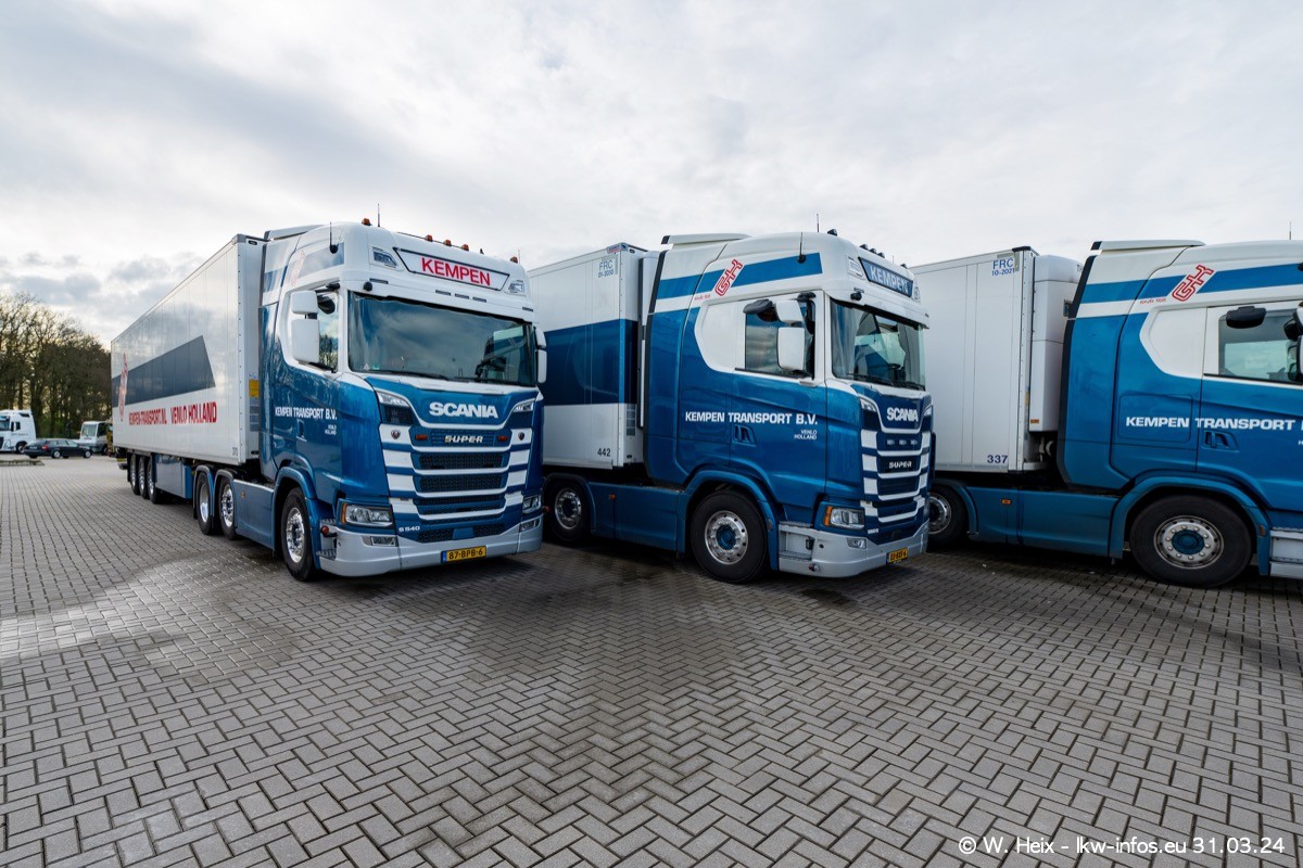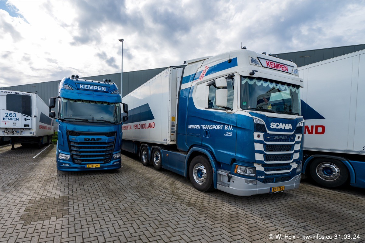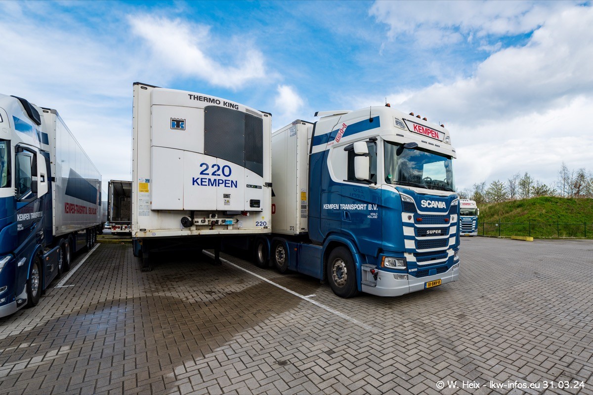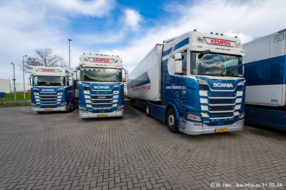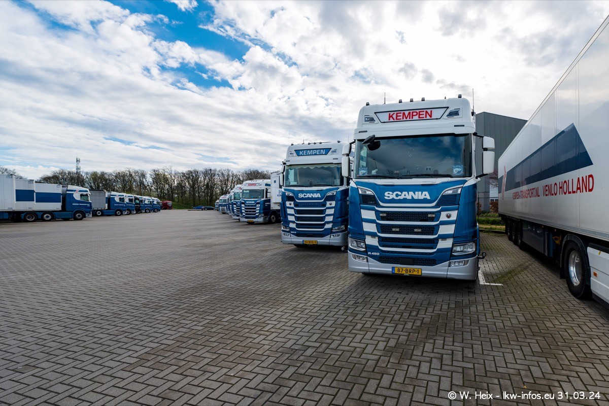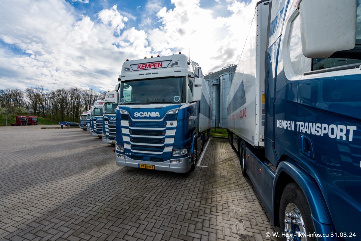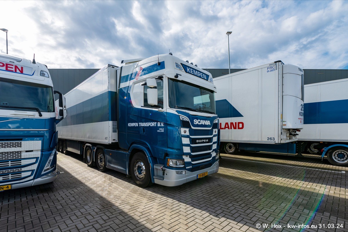 In diesem Jahr sind schon insgesamt mindestens 10 neue LKW in den Fuhrpark gekommen. Alle neuen LKW sind seit 2024 daran zu erkennen, dass aon der Fromt oben am Dach der Kempen-Schriftzug jetzt weiß ist in einem blauen Feld. Bisher war dieser immer rot auf weiß. Es waren so gut wie alle LKW zuzhause und standen auch wieder auf den Nachbargrundstücken. Diesmal konnte ich keinen SCANIA R Streamline und keinen DAF XF mehr sehen bis auf den neuen blauen DAF XG+ natürlich. Vermutlich sind jetzt alle alten SCANIA und DAF ersetzt durch VOLVO FH 5 und SCANIA R/S NextGen. Es sind natürlich auch wieder Bilder von den Chartern (Subunternehmern) in den Galerien enthalten. Auch hier tut sich immer weider mal was.