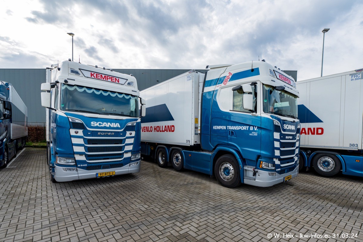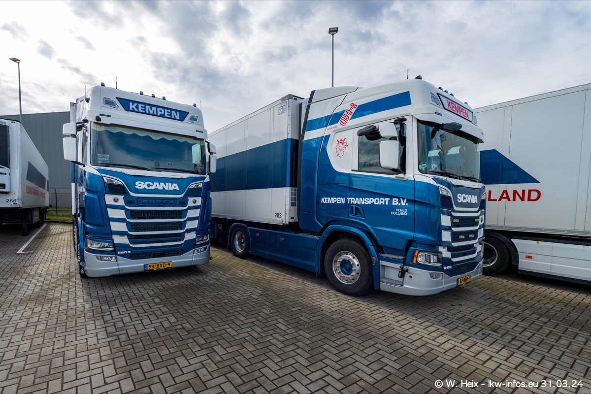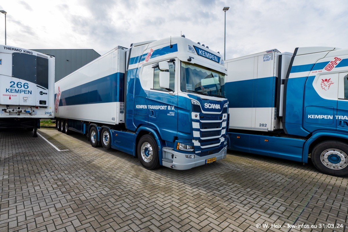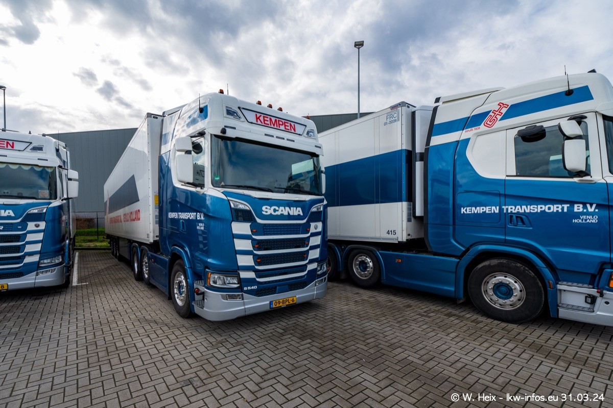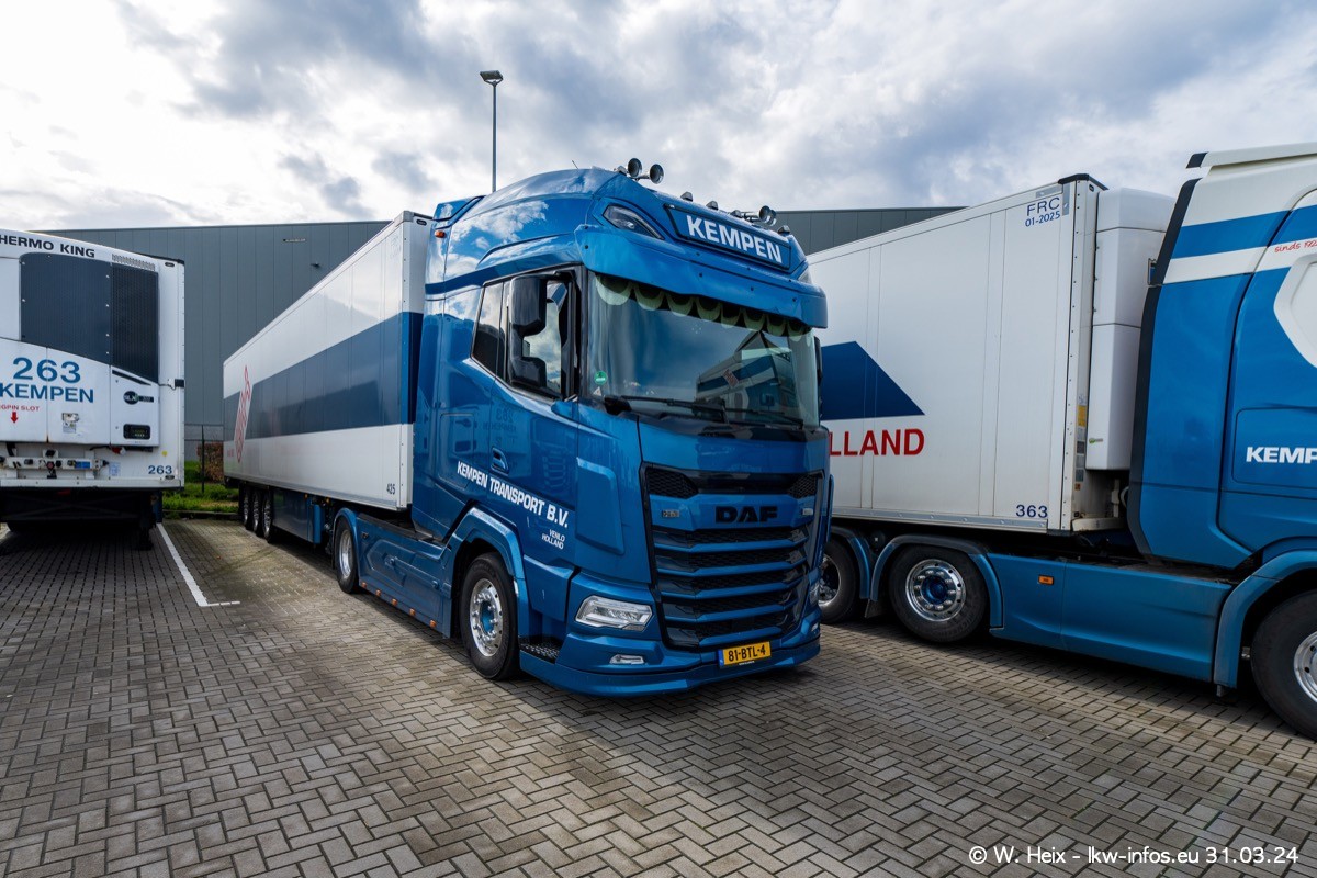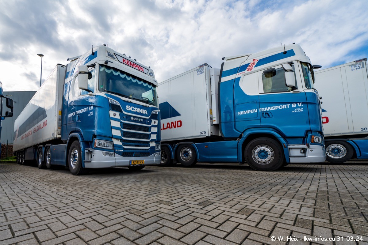 In diesem Jahr sind schon insgesamt mindestens 10 neue LKW in den Fuhrpark gekommen. Alle neuen LKW sind seit 2024 daran zu erkennen, dass aon der Fromt oben am Dach der Kempen-Schriftzug jetzt weiß ist in einem blauen Feld. Bisher war dieser immer rot auf weiß. Es waren so gut wie alle LKW zuzhause und standen auch wieder auf den Nachbargrundstücken. Diesmal konnte ich keinen SCANIA R Streamline und keinen DAF XF mehr sehen bis auf den neuen blauen DAF XG+ natürlich. Vermutlich sind jetzt alle alten SCANIA und DAF ersetzt durch VOLVO FH 5 und SCANIA R/S NextGen. Es sind natürlich auch wieder Bilder von den Chartern (Subunternehmern) in den Galerien enthalten. Auch hier tut sich immer weider mal was.