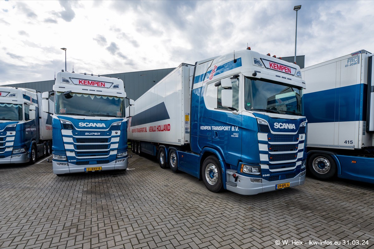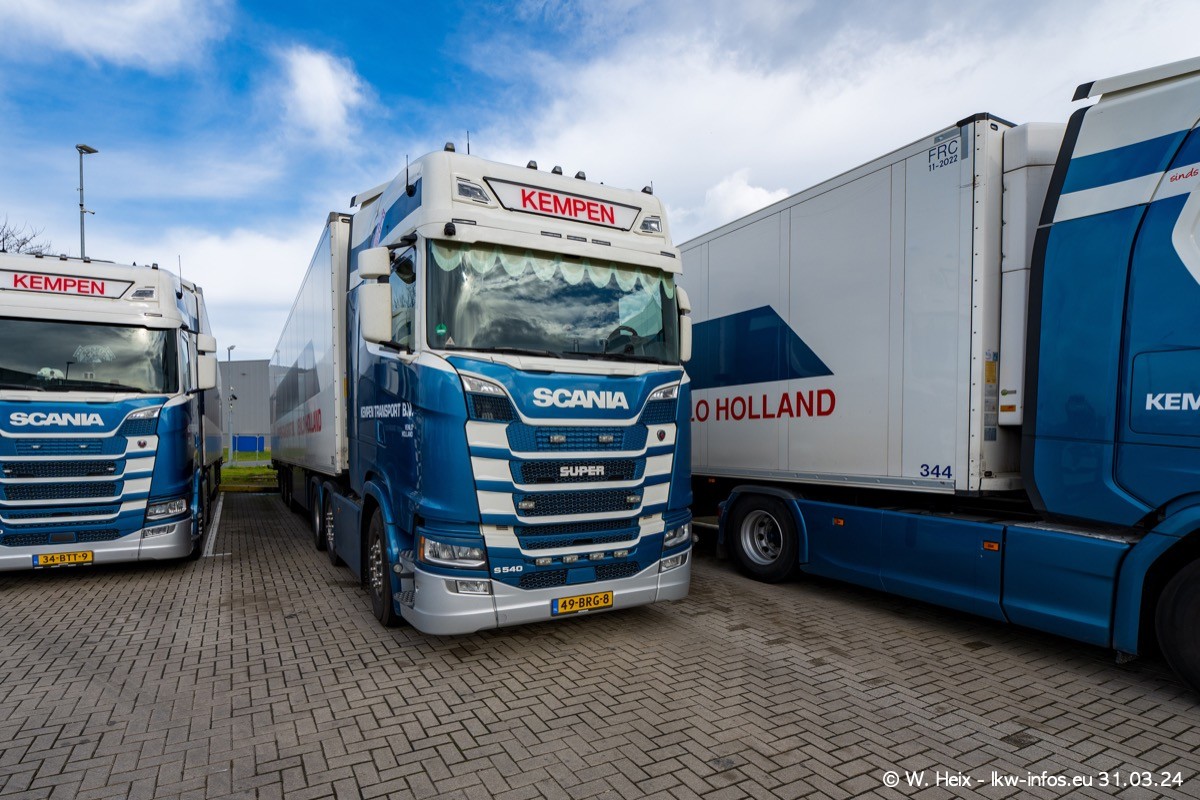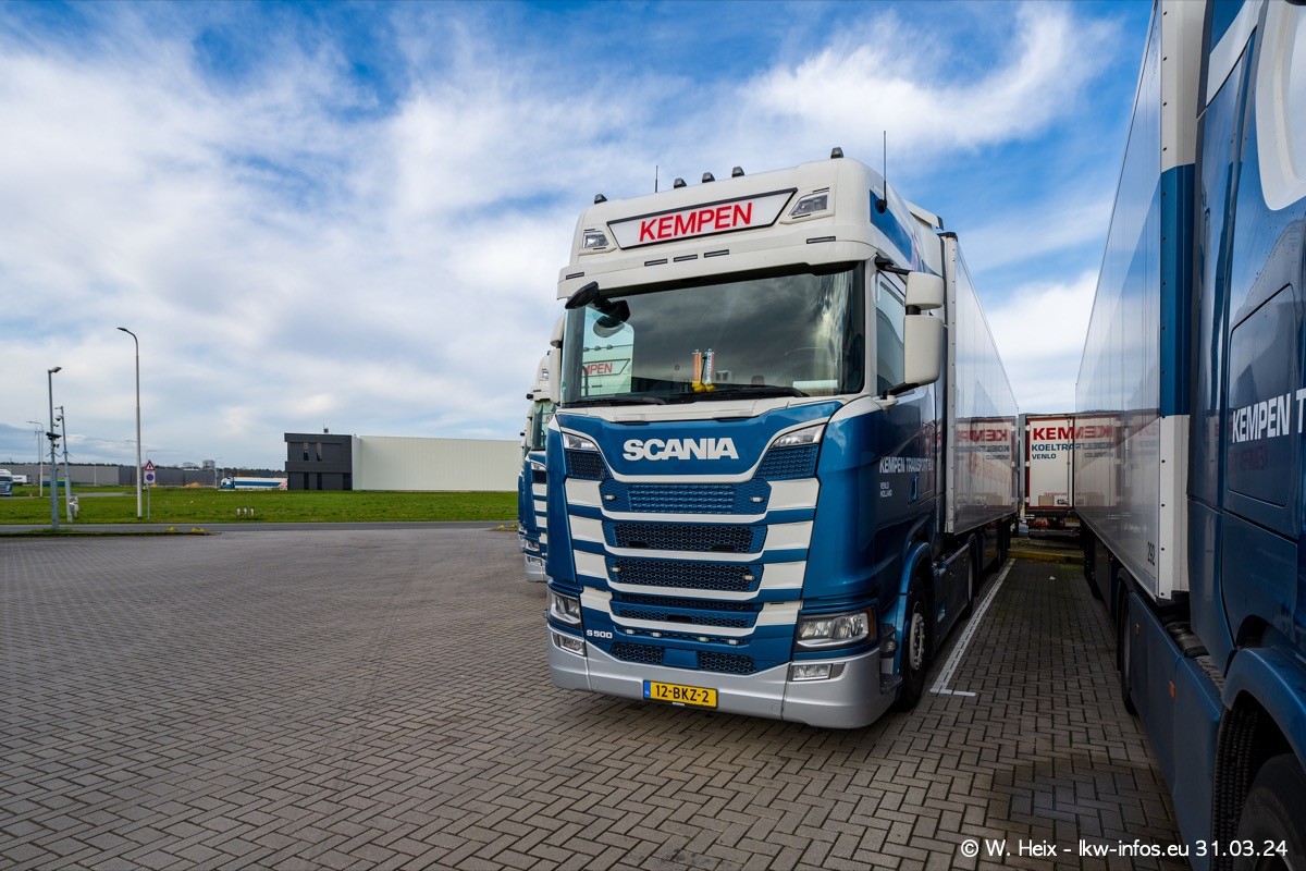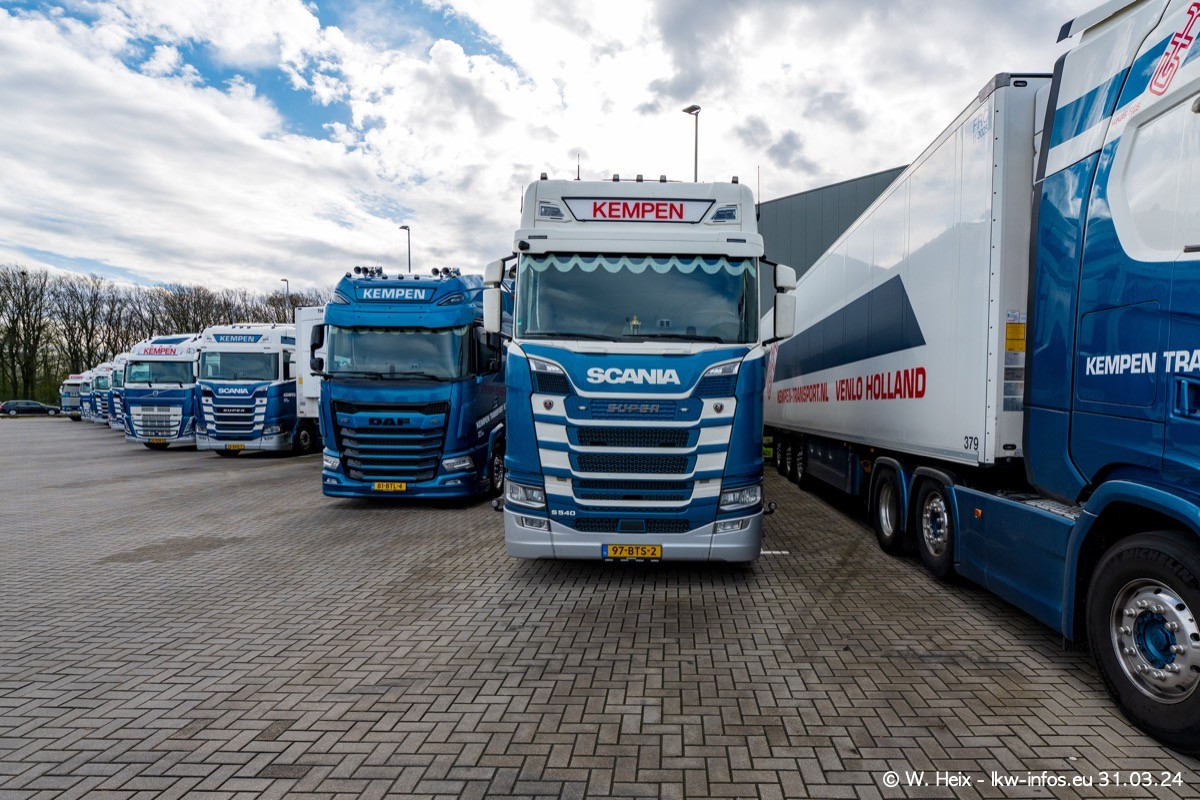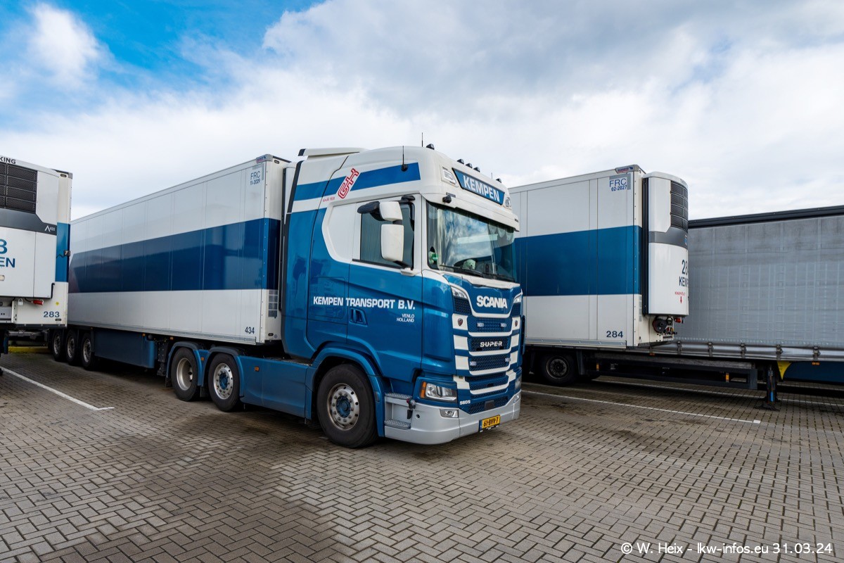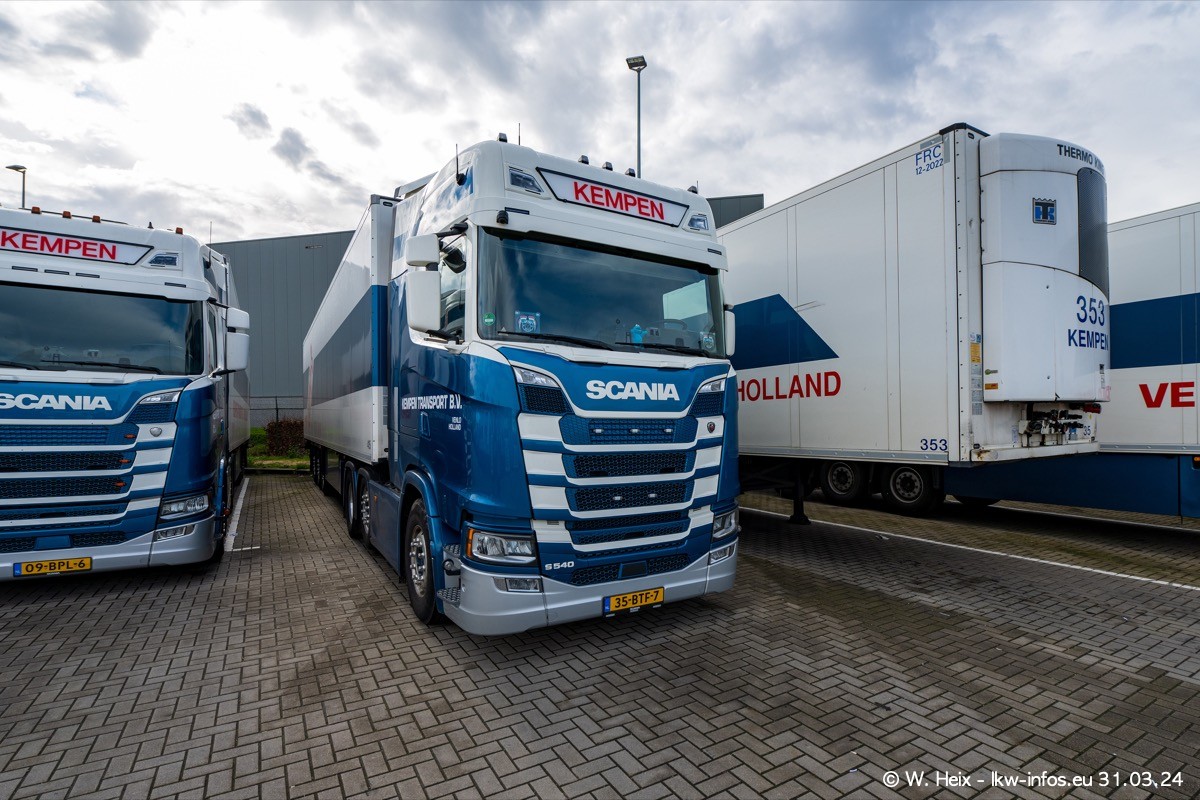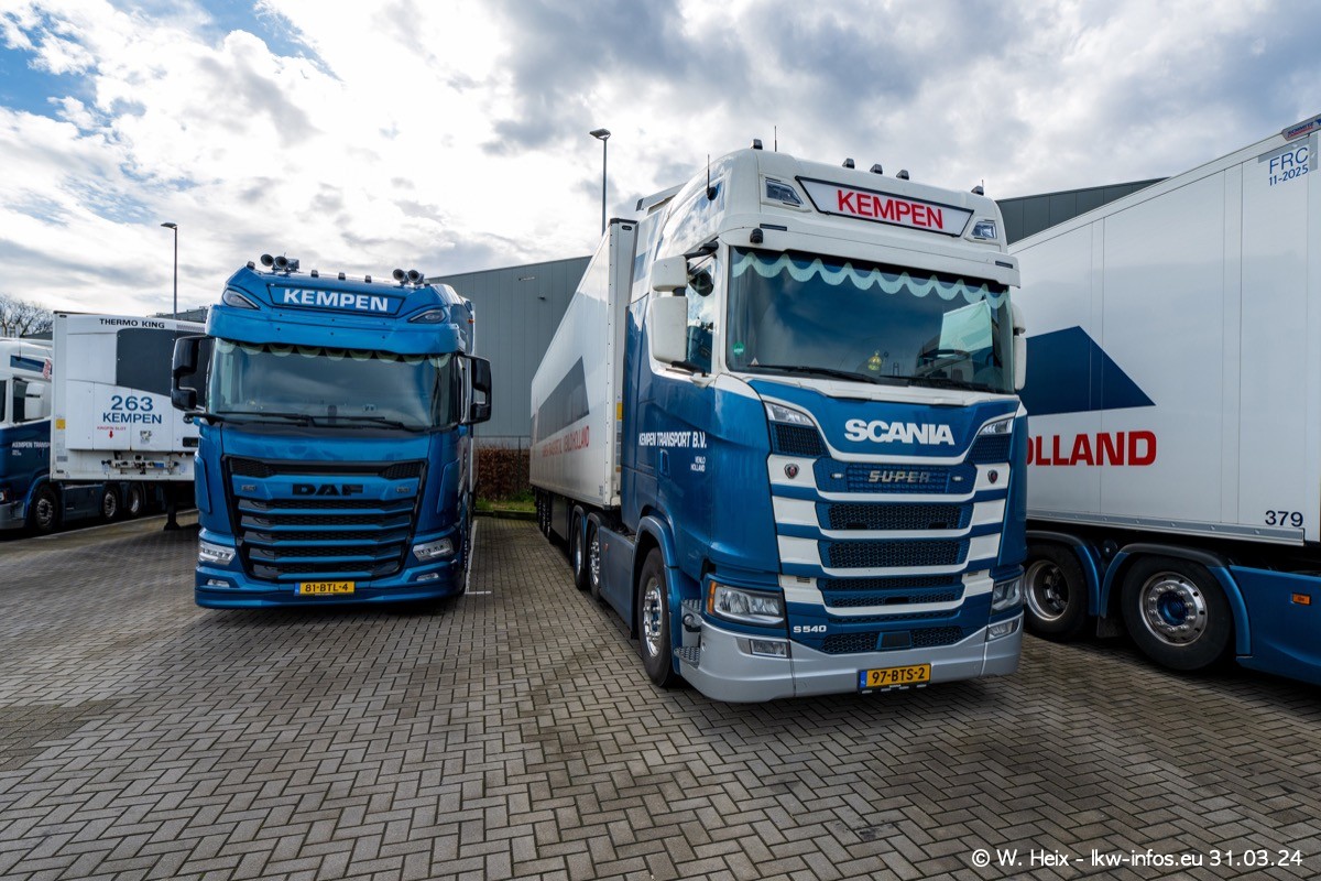 In diesem Jahr sind schon insgesamt mindestens 10 neue LKW in den Fuhrpark gekommen. Alle neuen LKW sind seit 2024 daran zu erkennen, dass aon der Fromt oben am Dach der Kempen-Schriftzug jetzt weiß ist in einem blauen Feld. Bisher war dieser immer rot auf weiß. Es waren so gut wie alle LKW zuzhause und standen auch wieder auf den Nachbargrundstücken. Diesmal konnte ich keinen SCANIA R Streamline und keinen DAF XF mehr sehen bis auf den neuen blauen DAF XG+ natürlich. Vermutlich sind jetzt alle alten SCANIA und DAF ersetzt durch VOLVO FH 5 und SCANIA R/S NextGen. Es sind natürlich auch wieder Bilder von den Chartern (Subunternehmern) in den Galerien enthalten. Auch hier tut sich immer weider mal was.