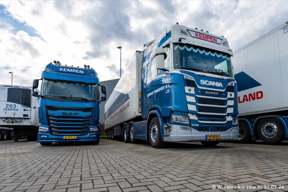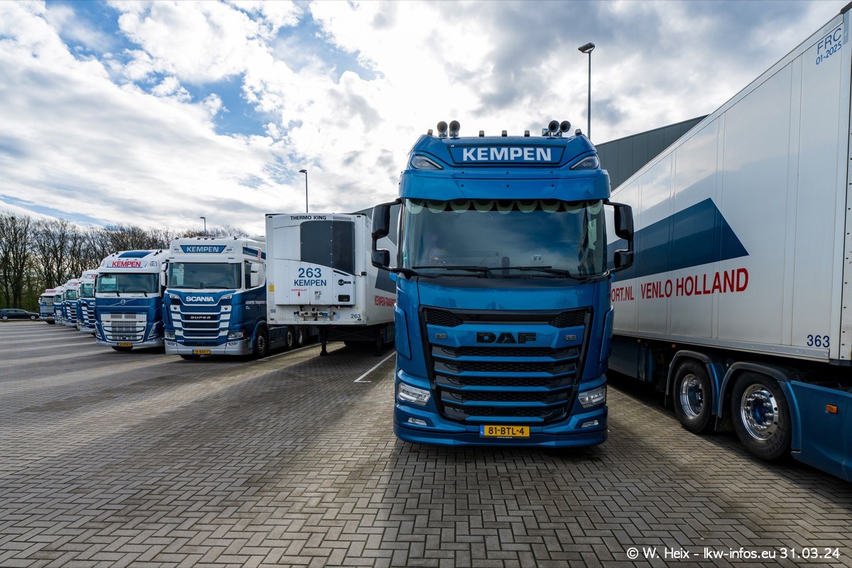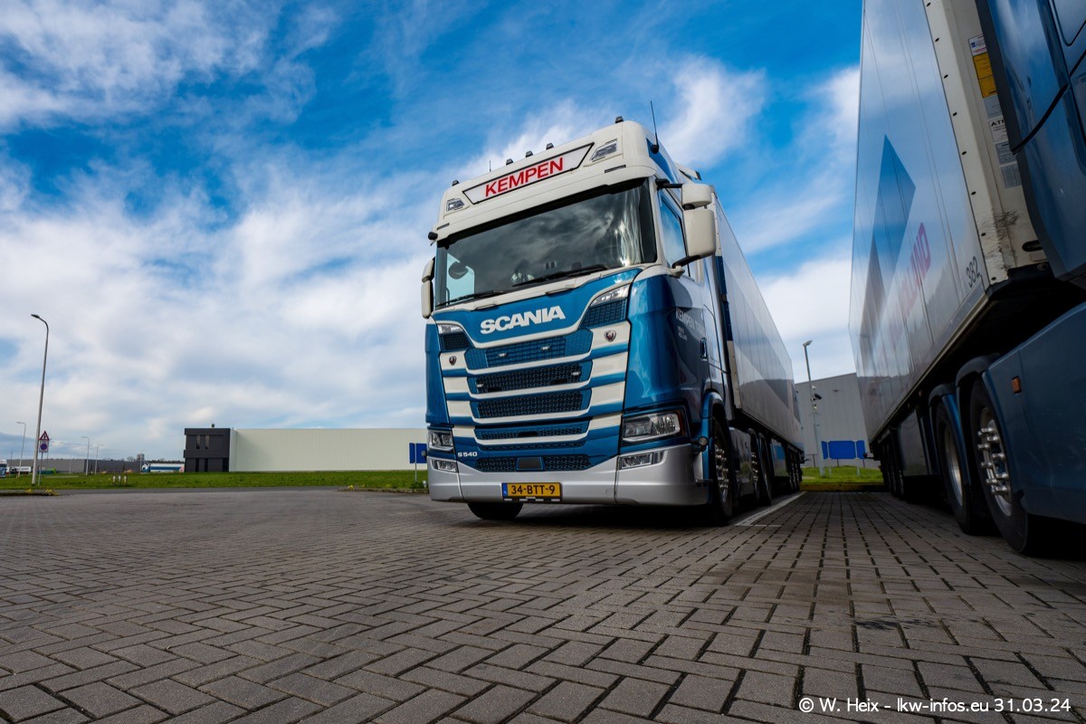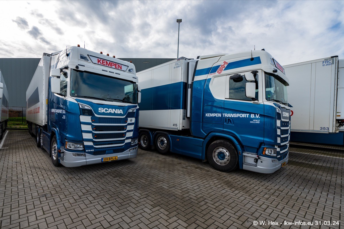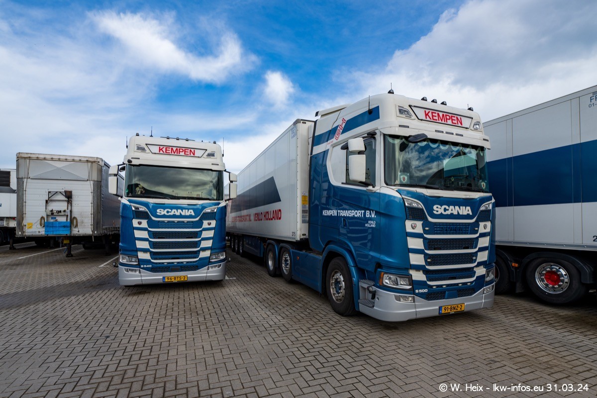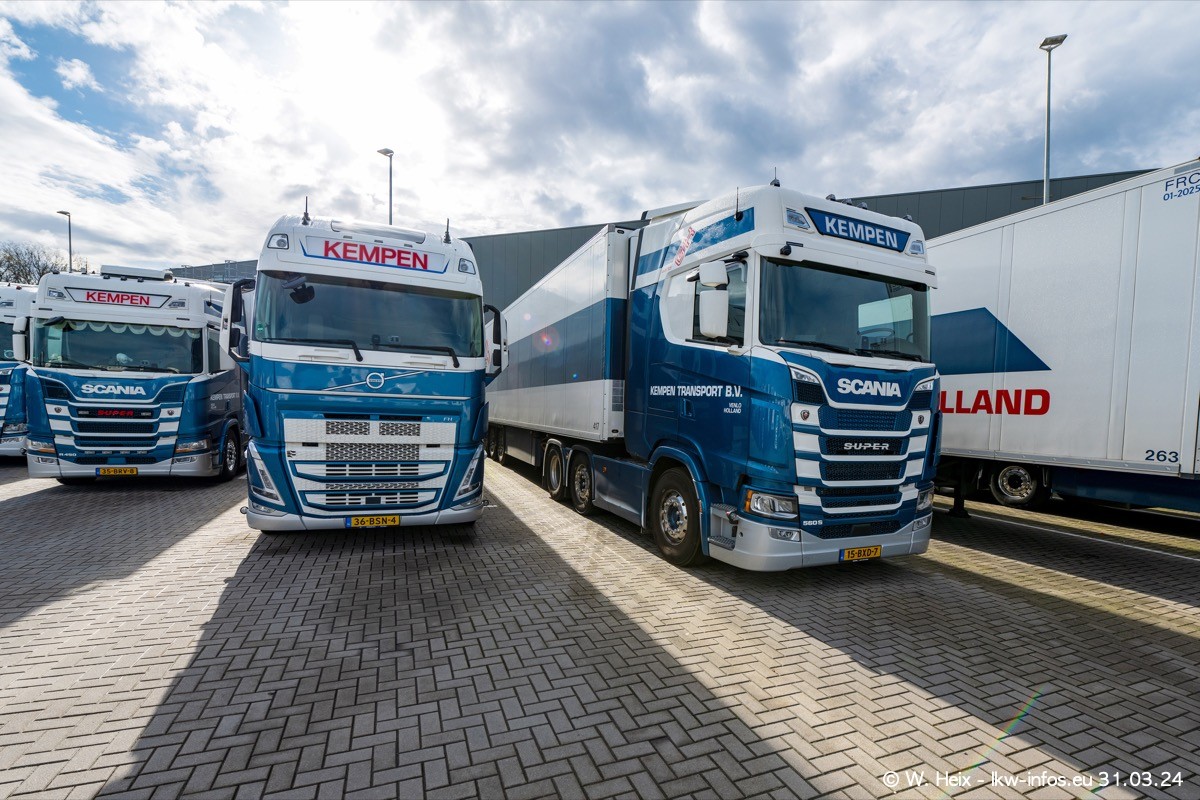 In diesem Jahr sind schon insgesamt mindestens 10 neue LKW in den Fuhrpark gekommen. Alle neuen LKW sind seit 2024 daran zu erkennen, dass aon der Fromt oben am Dach der Kempen-Schriftzug jetzt weiß ist in einem blauen Feld. Bisher war dieser immer rot auf weiß. Es waren so gut wie alle LKW zuzhause und standen auch wieder auf den Nachbargrundstücken. Diesmal konnte ich keinen SCANIA R Streamline und keinen DAF XF mehr sehen bis auf den neuen blauen DAF XG+ natürlich. Vermutlich sind jetzt alle alten SCANIA und DAF ersetzt durch VOLVO FH 5 und SCANIA R/S NextGen. Es sind natürlich auch wieder Bilder von den Chartern (Subunternehmern) in den Galerien enthalten. Auch hier tut sich immer weider mal was.
