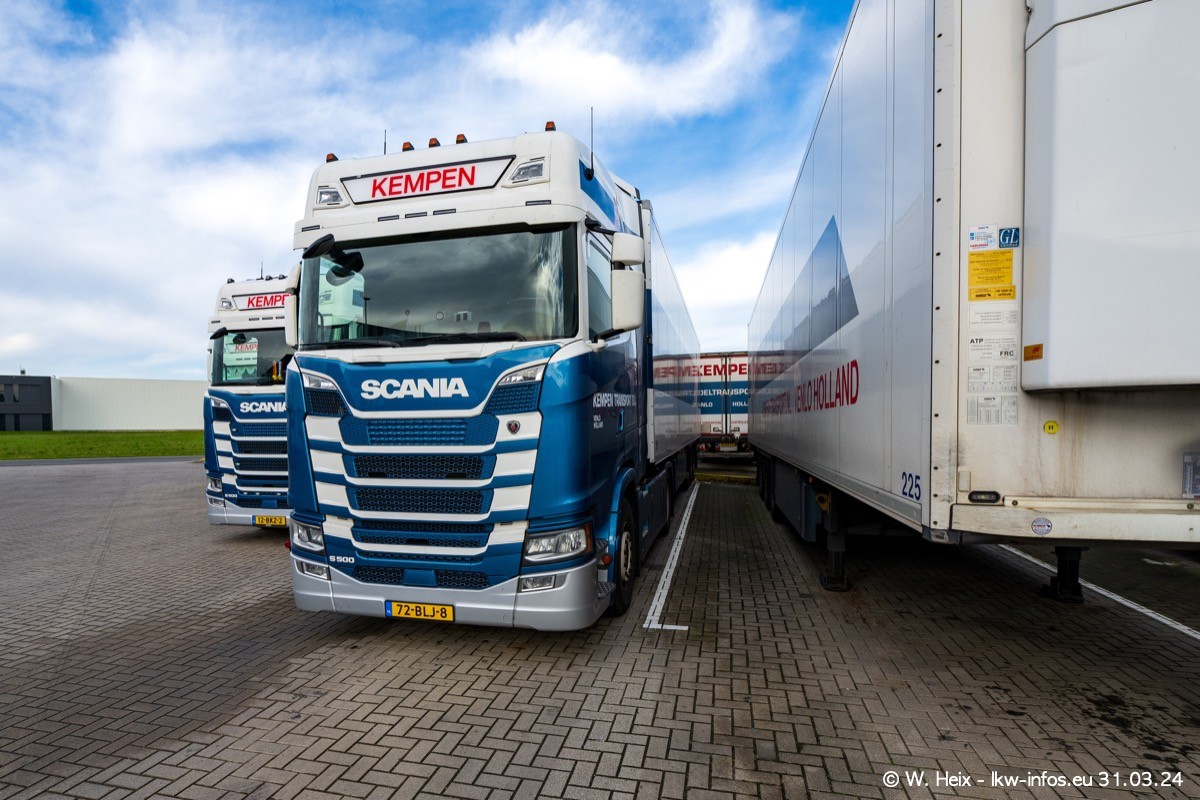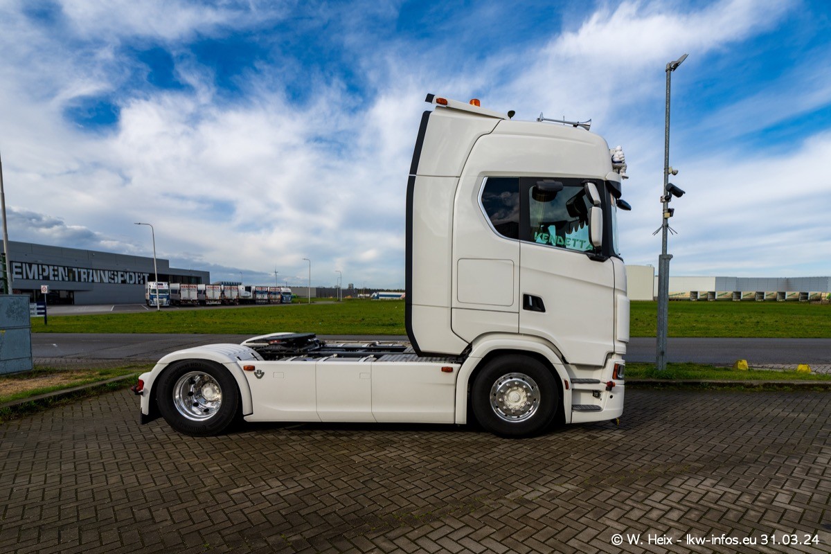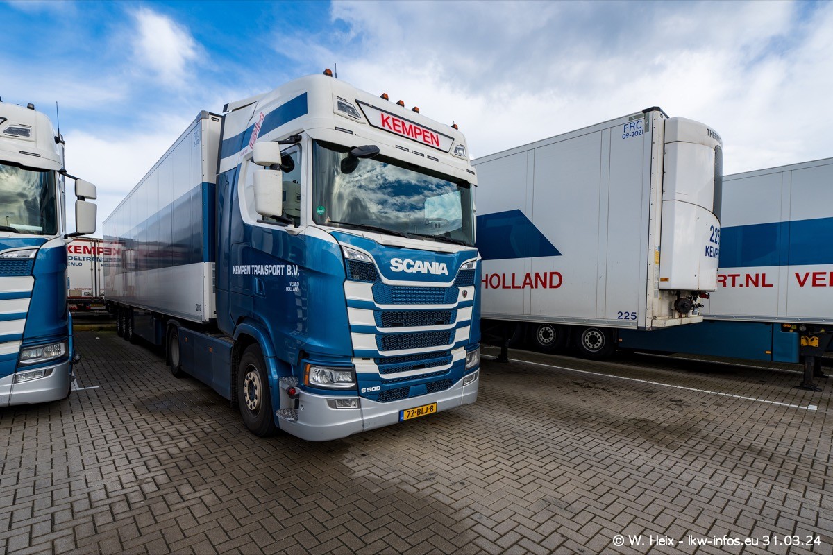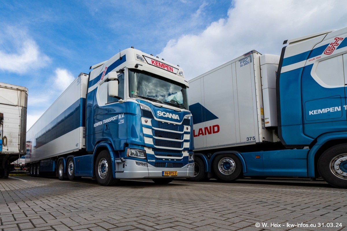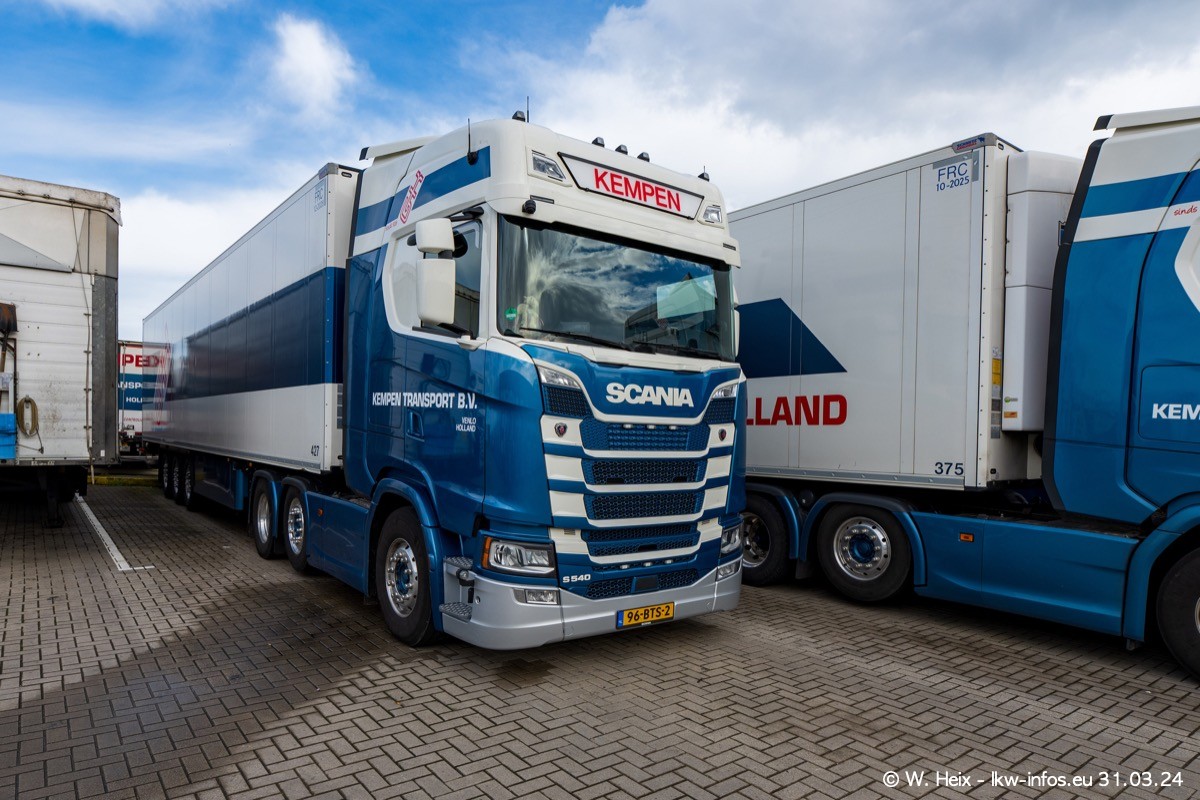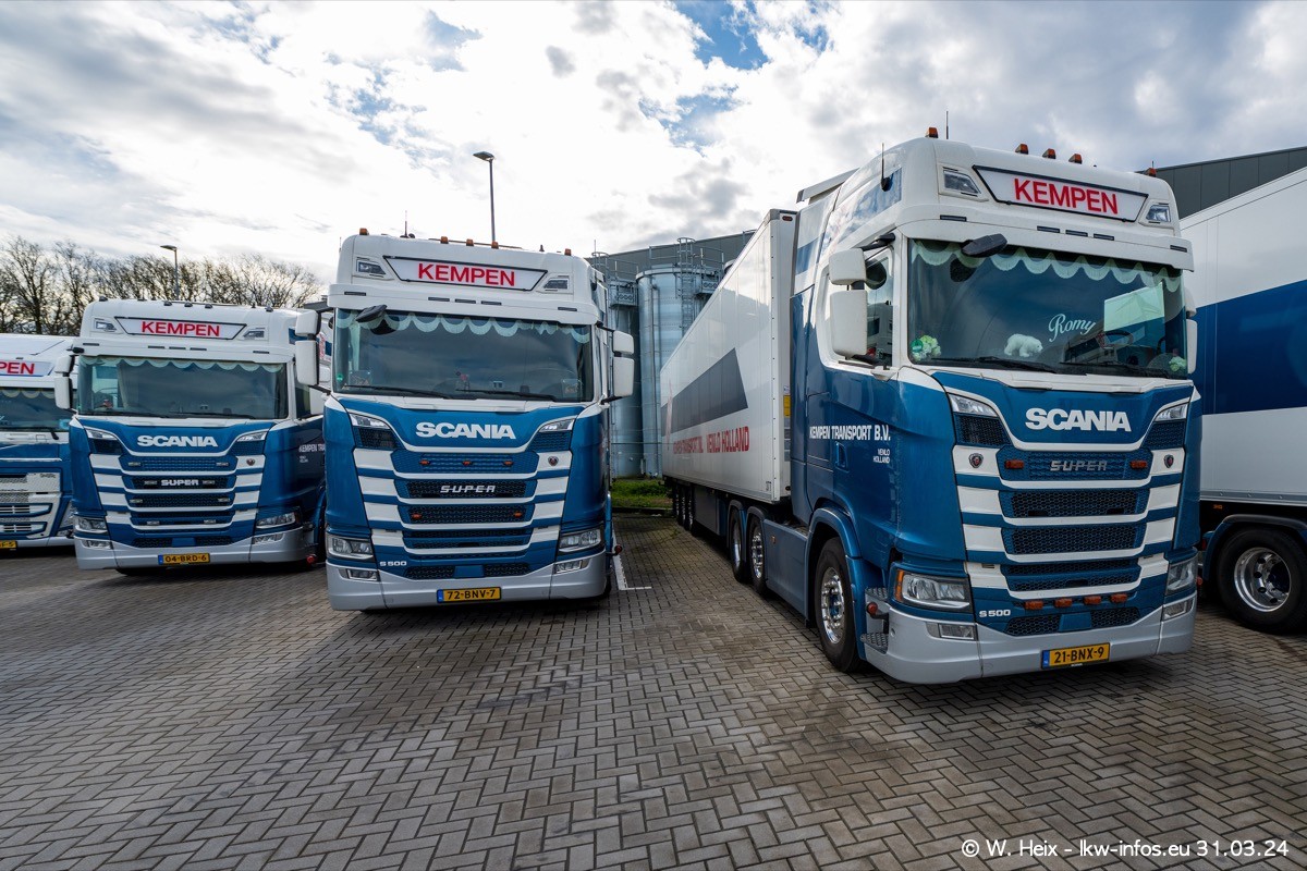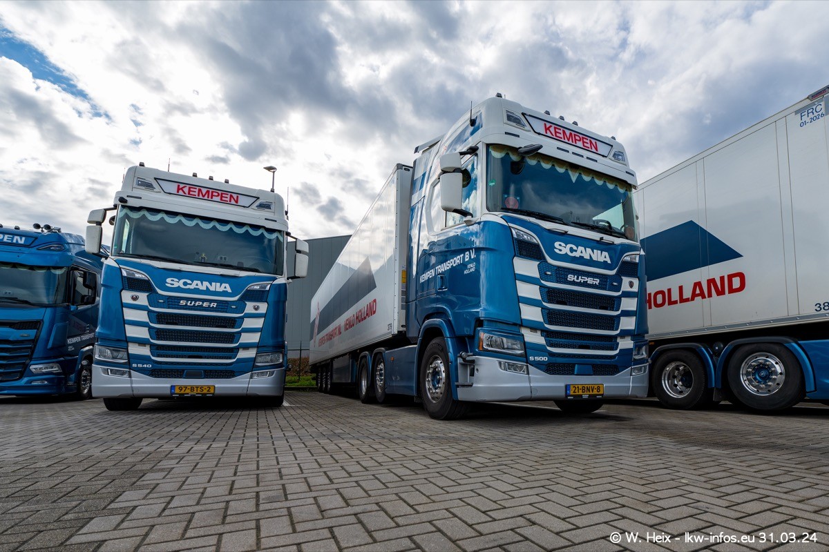 In diesem Jahr sind schon insgesamt mindestens 10 neue LKW in den Fuhrpark gekommen. Alle neuen LKW sind seit 2024 daran zu erkennen, dass aon der Fromt oben am Dach der Kempen-Schriftzug jetzt weiß ist in einem blauen Feld. Bisher war dieser immer rot auf weiß. Es waren so gut wie alle LKW zuzhause und standen auch wieder auf den Nachbargrundstücken. Diesmal konnte ich keinen SCANIA R Streamline und keinen DAF XF mehr sehen bis auf den neuen blauen DAF XG+ natürlich. Vermutlich sind jetzt alle alten SCANIA und DAF ersetzt durch VOLVO FH 5 und SCANIA R/S NextGen. Es sind natürlich auch wieder Bilder von den Chartern (Subunternehmern) in den Galerien enthalten. Auch hier tut sich immer weider mal was.