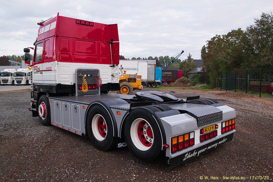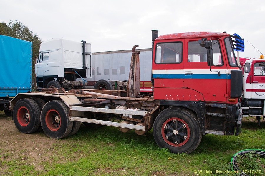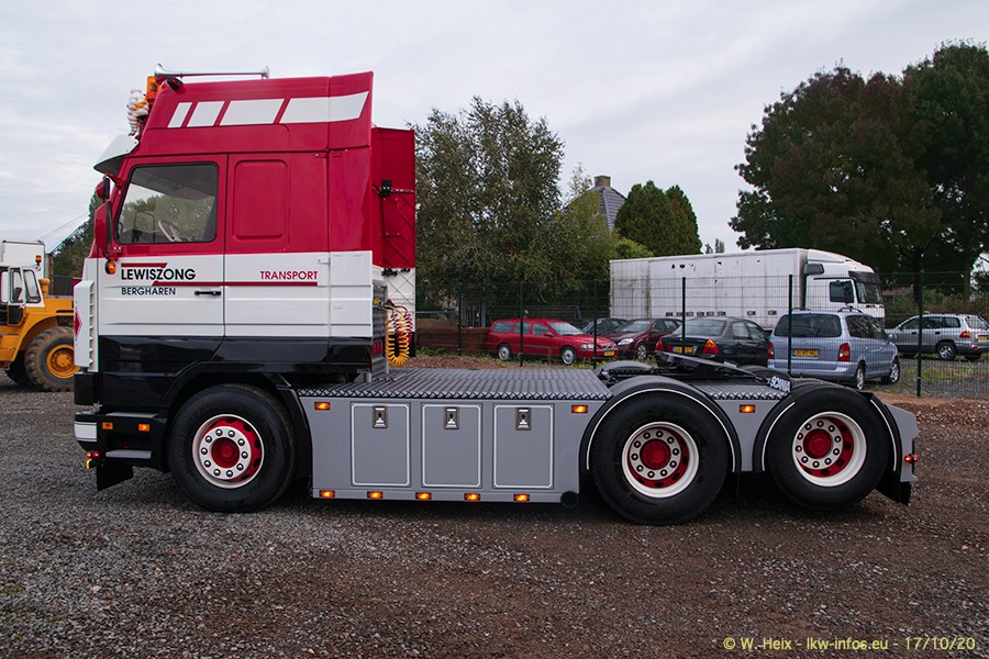 Schon beim letzten Besuch bei Lewiszong Ende Juli hatten wir ein weiteres Treffen für den Herbst besprochen.In der Zwischenzeit ist auch der SCANIA 143 H 500 V8 fertig. Zusammen mit dem SCANIA 144 L 530 V8 sind die beiden Youngtimer neu bei Lewiszong und auch Teil des Fotoshootings und des Films. Einige der Oldtimer-LKW auf dem Firmenhof sind nicht restauriert bzw. sind die Teil des Fahrzeughandels, werden also verkauft. Neu und fast fertig ist der DAF A 2000 Baujahr 1961. Hier müssen nur noch die Felgen/Räder angepasst werden sowie einige restliche Kleinigkeiten. Die Bilder in der Galerie erschienen auf den ersten Blick vielleicht unsortiert, sind aber genauso in der Reihenfolge zu sehenm, wie ich diese gemacht habe, denn zwishendurch war ich immer wieder mal in der Halle, wo die Fahrzeuge stehen. Und gerade bei diesem Besuch mussten so einige Oldtimer ans Tageslicht, damit die bieden VOLVO F88 und F10 raus konnten, auf die ich es diesmal "abgesehen hatte".