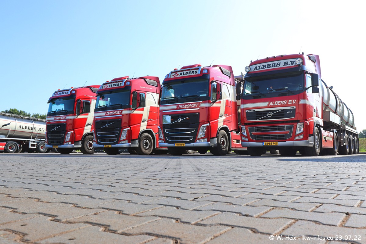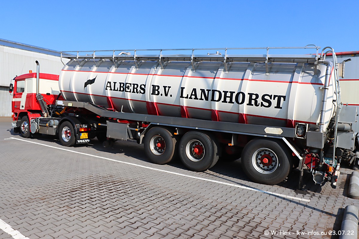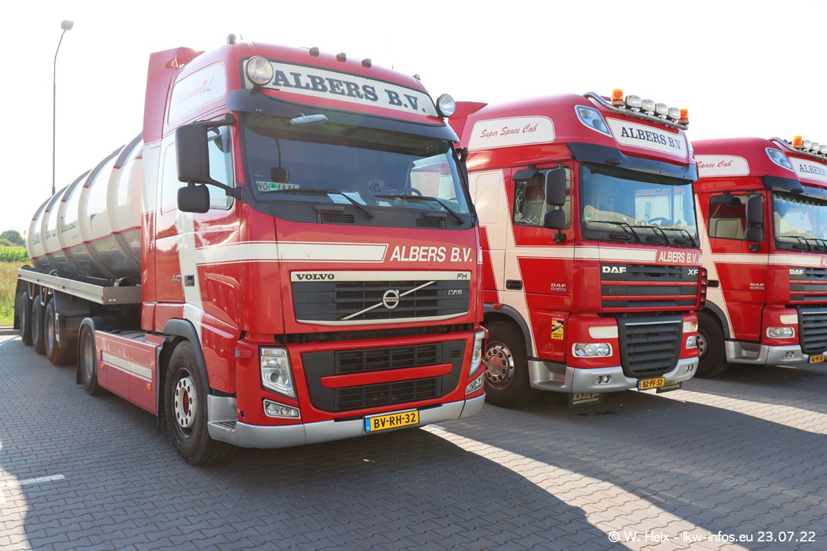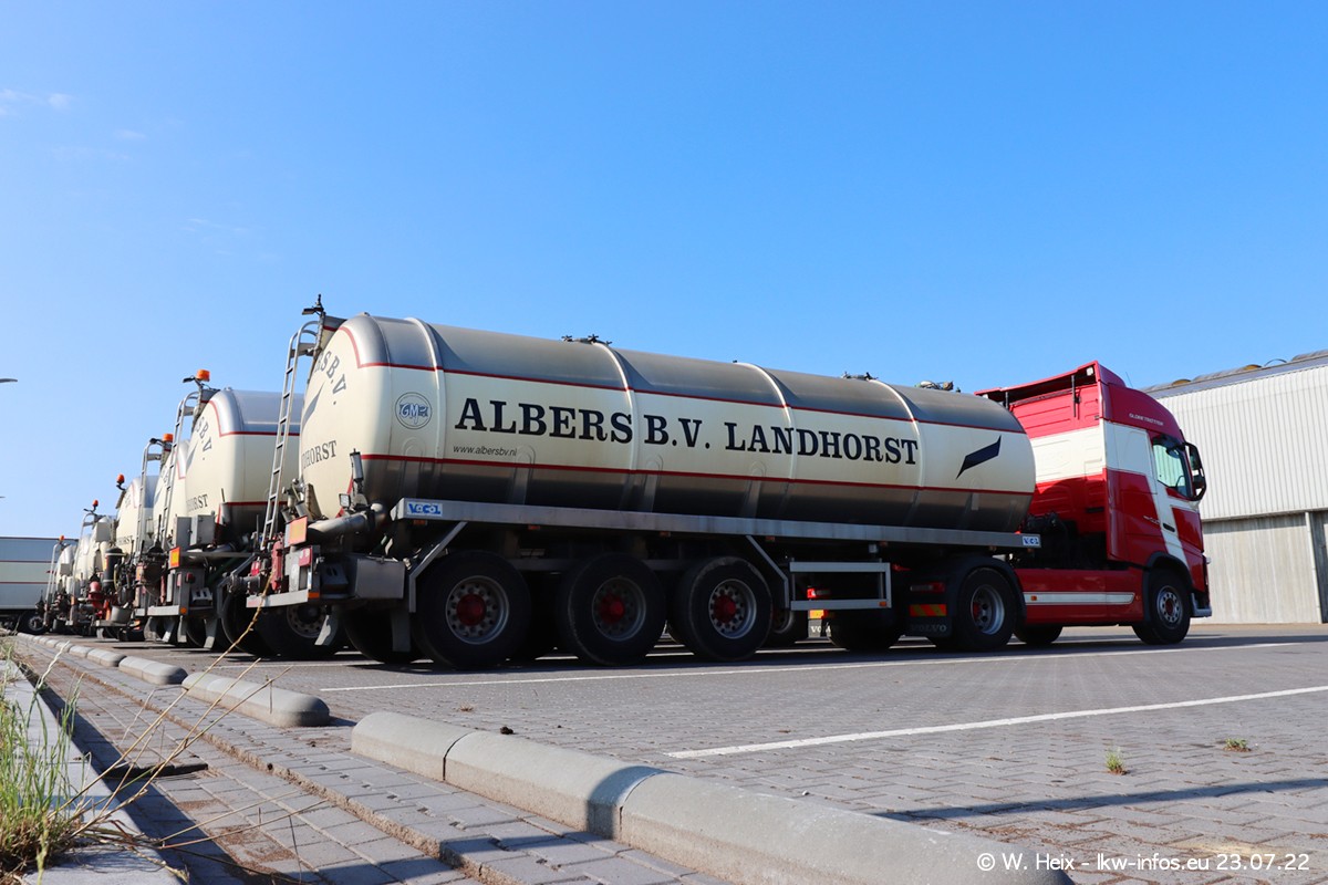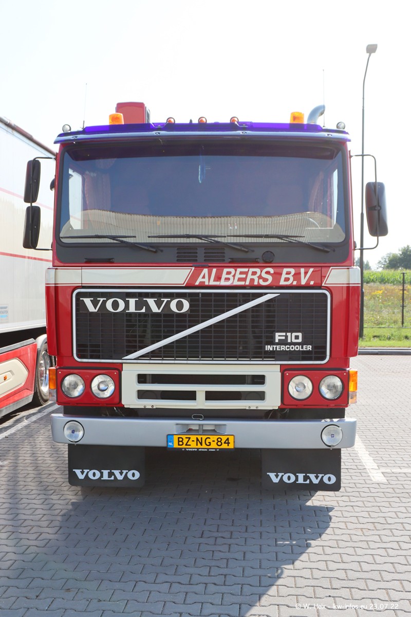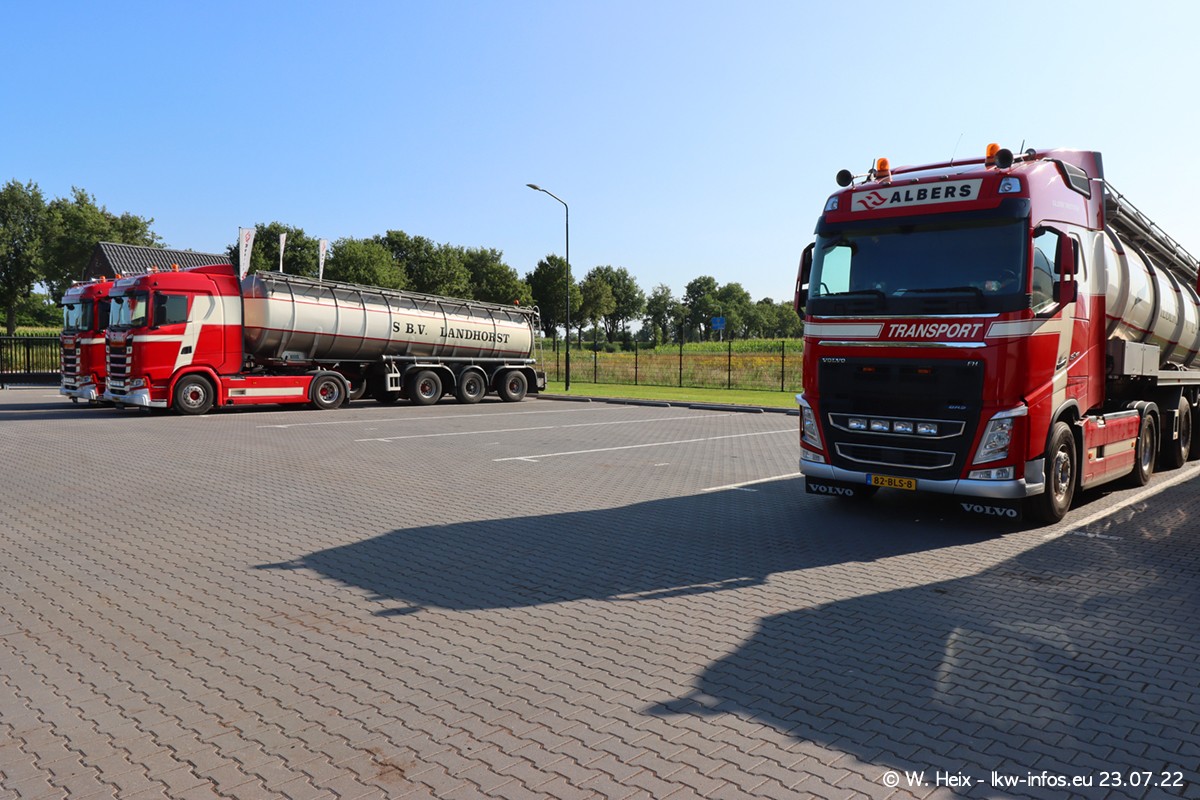 Ende 2021 ist der Fuhrpark von landhorst umgezogen nach Zeeland. Hier gibt es deutlich mehr Platz für die Fahrzeuge. Am Wochenende stehen alle LKW in einer Reihe, sortiert nach Hersteller und Alter. Ein großer Teil der LKW war zuhause. Schön, dass auch der alte VOLVO F10 samt passendem Auflieger mit auf dem Hof stand. Da die Fahrzeuge früh morgens wegen der Sonne genau falsch herum auf dem Gelände standen, war es etwas schwierig mit dem Fotografieren. Aber die Bilder sind trotzdem gut geworden.