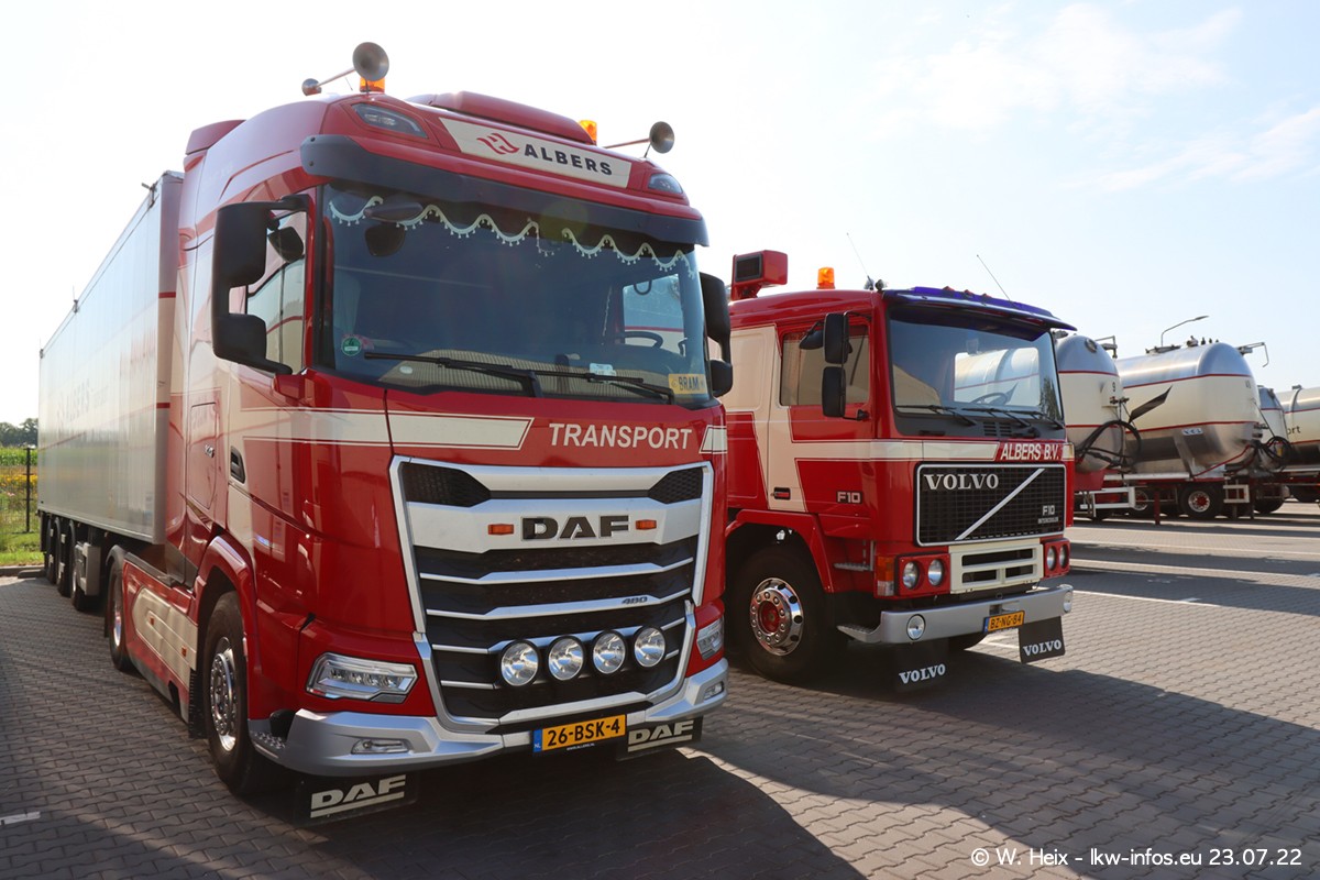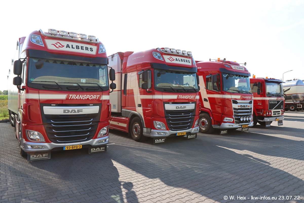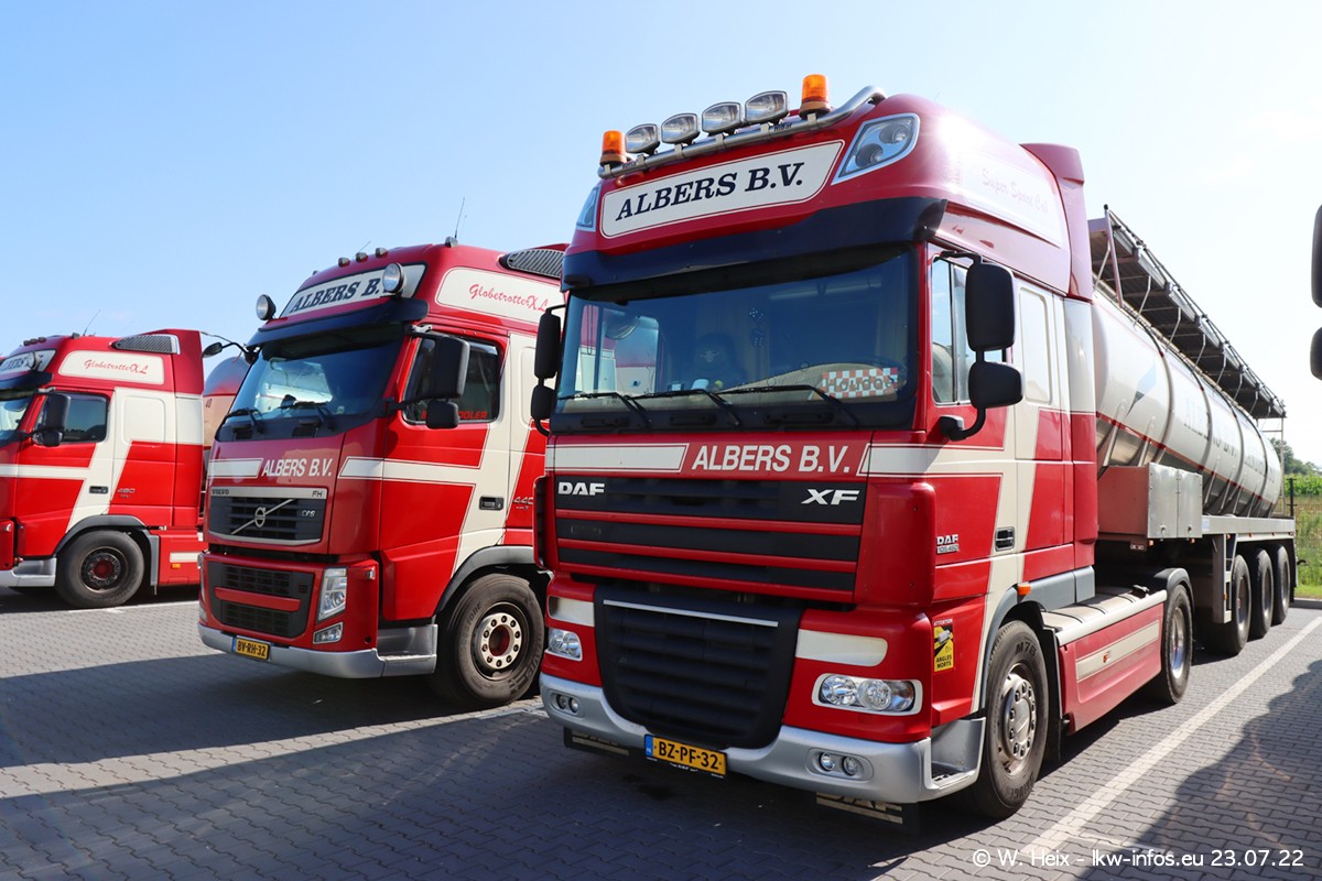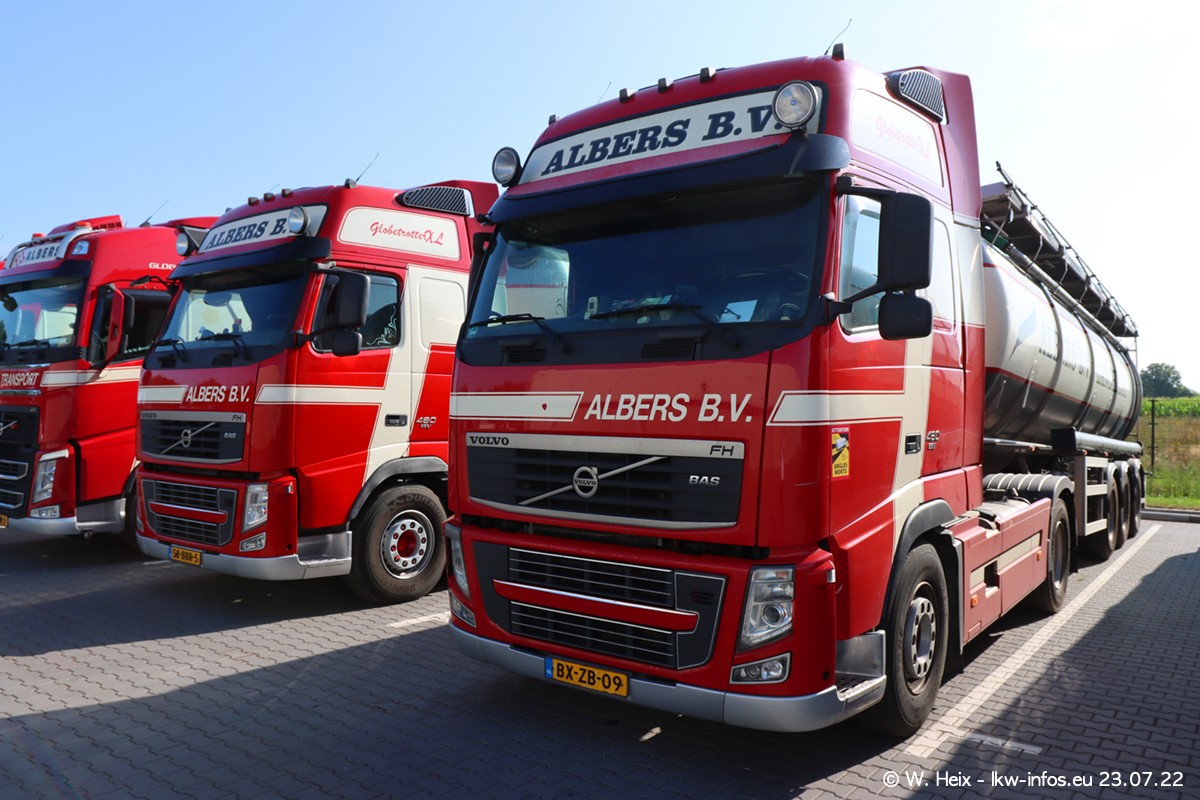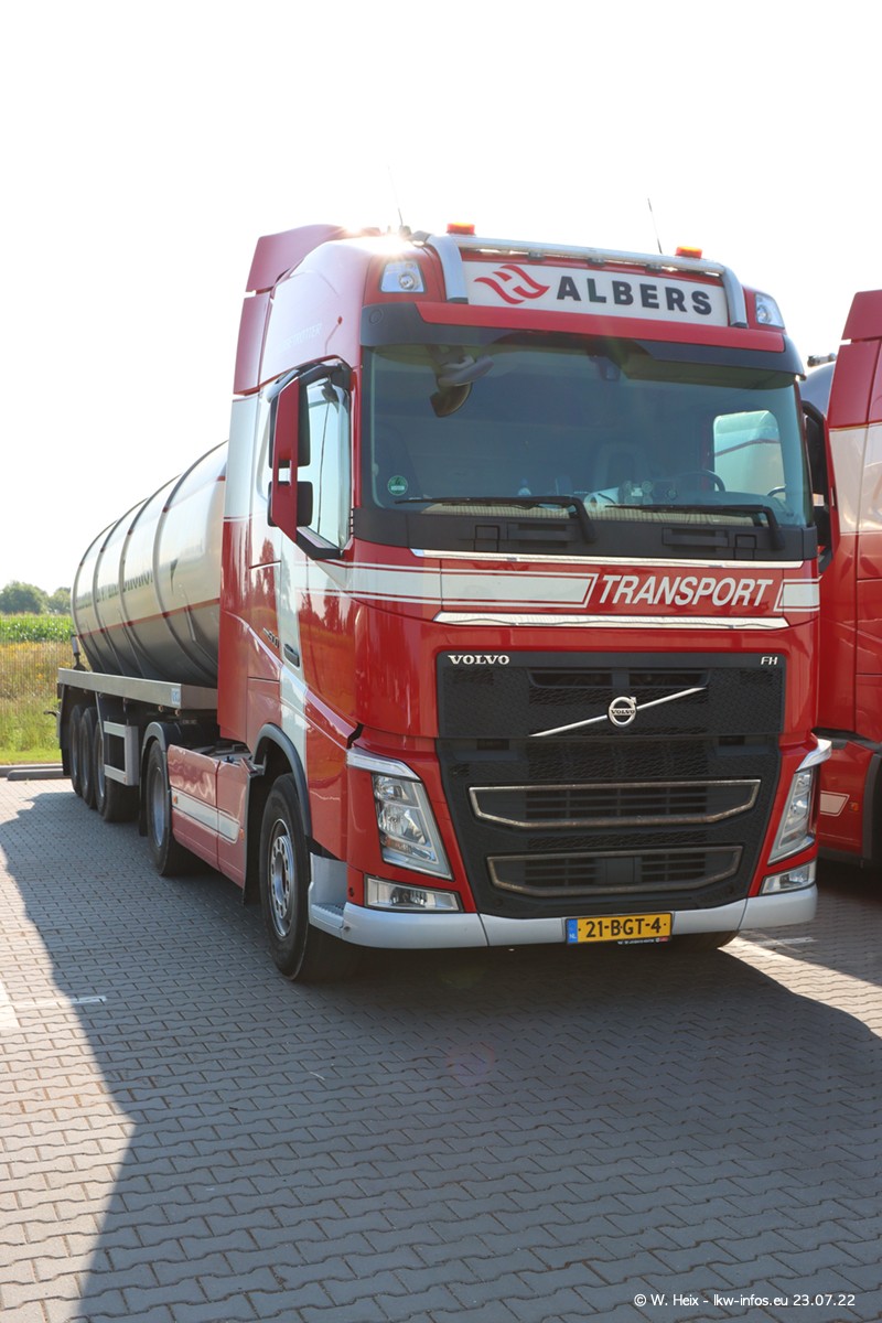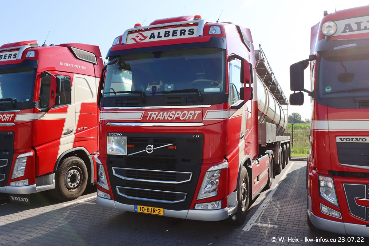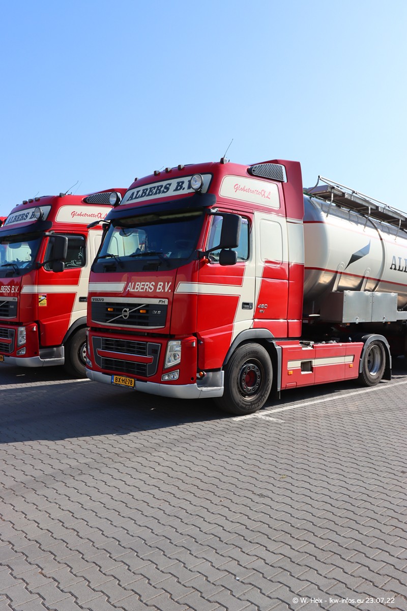 Ende 2021 ist der Fuhrpark von landhorst umgezogen nach Zeeland. Hier gibt es deutlich mehr Platz für die Fahrzeuge. Am Wochenende stehen alle LKW in einer Reihe, sortiert nach Hersteller und Alter. Ein großer Teil der LKW war zuhause. Schön, dass auch der alte VOLVO F10 samt passendem Auflieger mit auf dem Hof stand. Da die Fahrzeuge früh morgens wegen der Sonne genau falsch herum auf dem Gelände standen, war es etwas schwierig mit dem Fotografieren. Aber die Bilder sind trotzdem gut geworden.