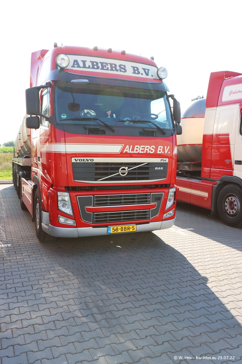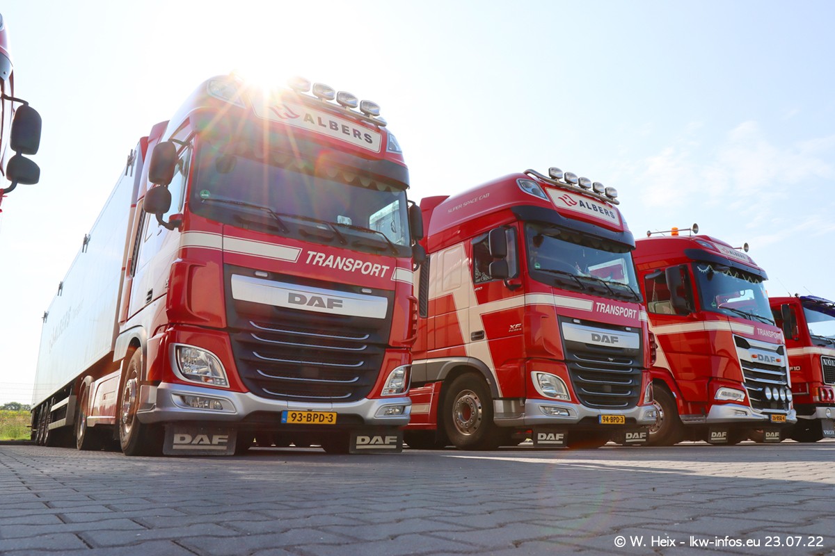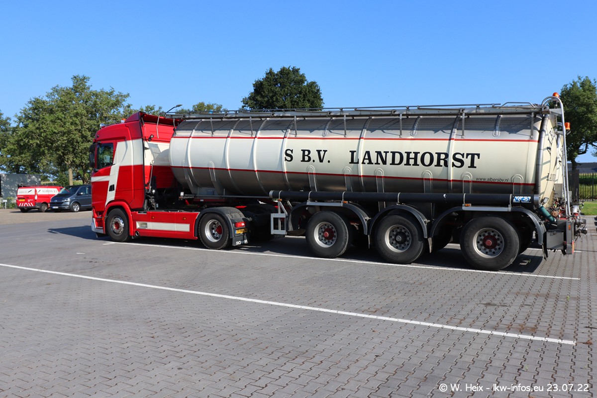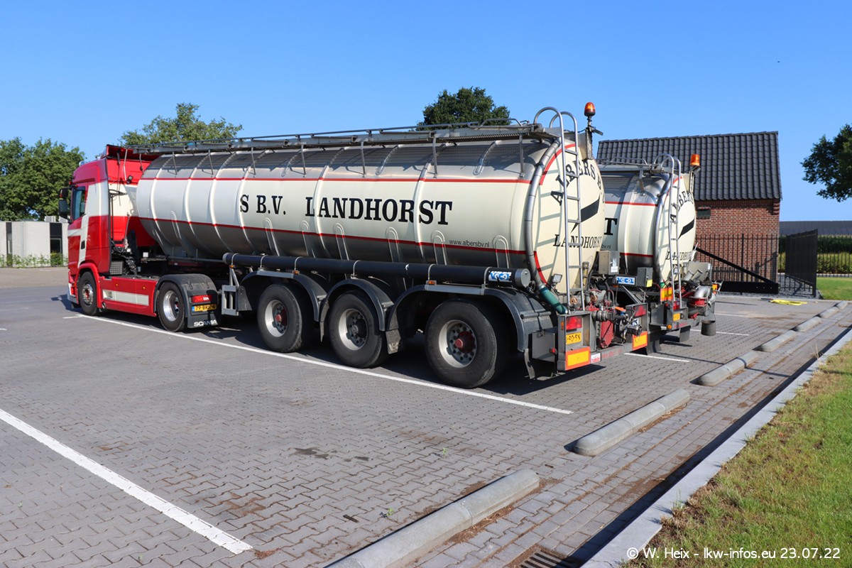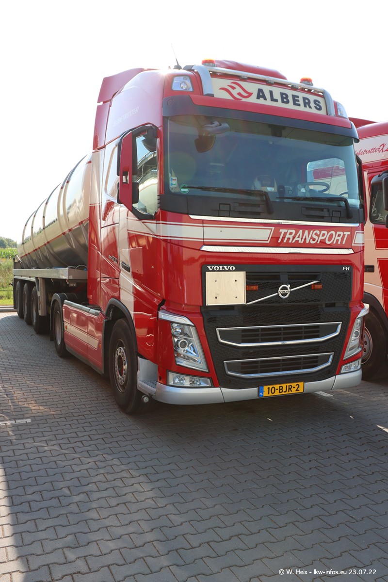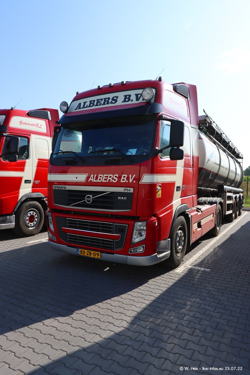 Ende 2021 ist der Fuhrpark von landhorst umgezogen nach Zeeland. Hier gibt es deutlich mehr Platz für die Fahrzeuge. Am Wochenende stehen alle LKW in einer Reihe, sortiert nach Hersteller und Alter. Ein großer Teil der LKW war zuhause. Schön, dass auch der alte VOLVO F10 samt passendem Auflieger mit auf dem Hof stand. Da die Fahrzeuge früh morgens wegen der Sonne genau falsch herum auf dem Gelände standen, war es etwas schwierig mit dem Fotografieren. Aber die Bilder sind trotzdem gut geworden.