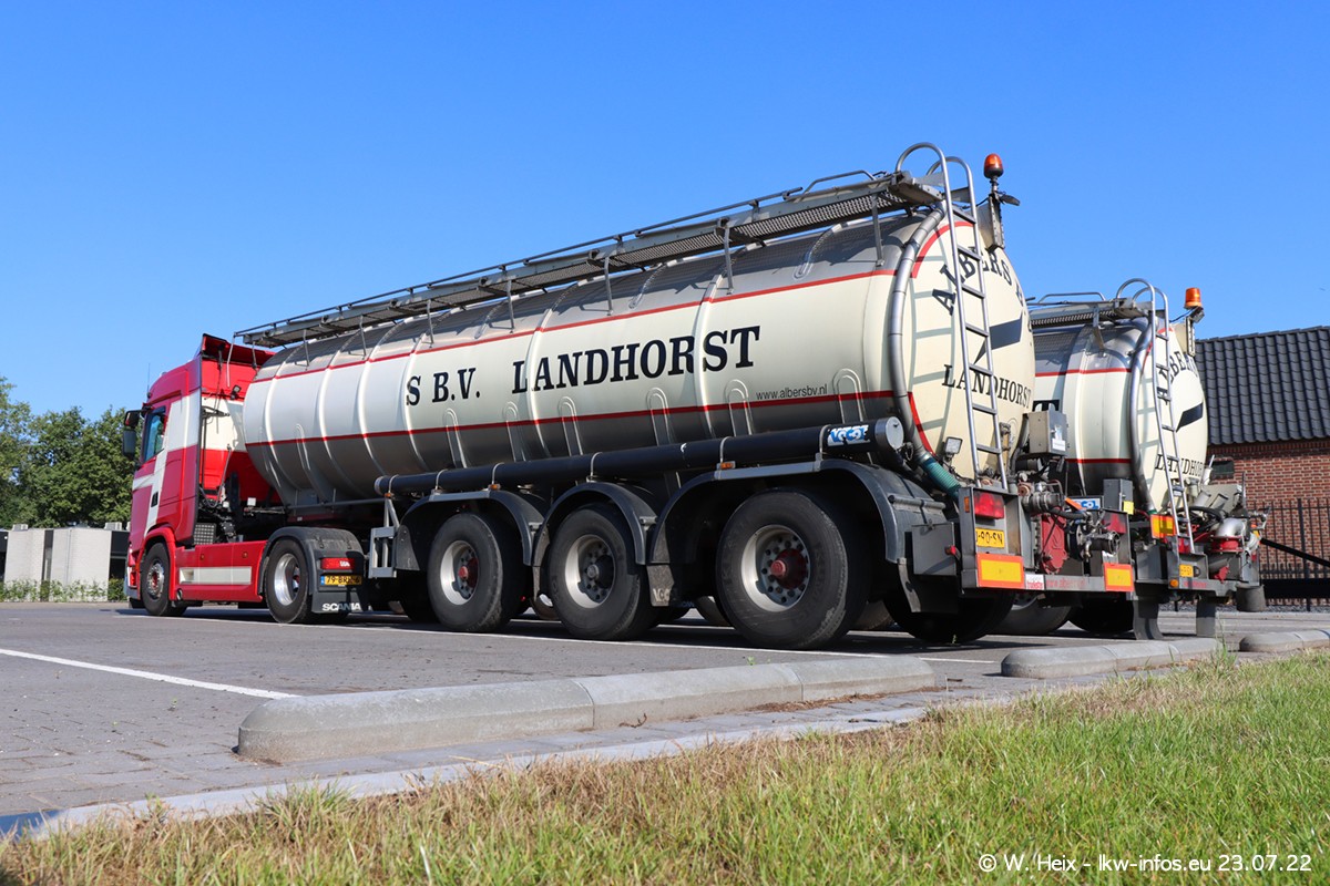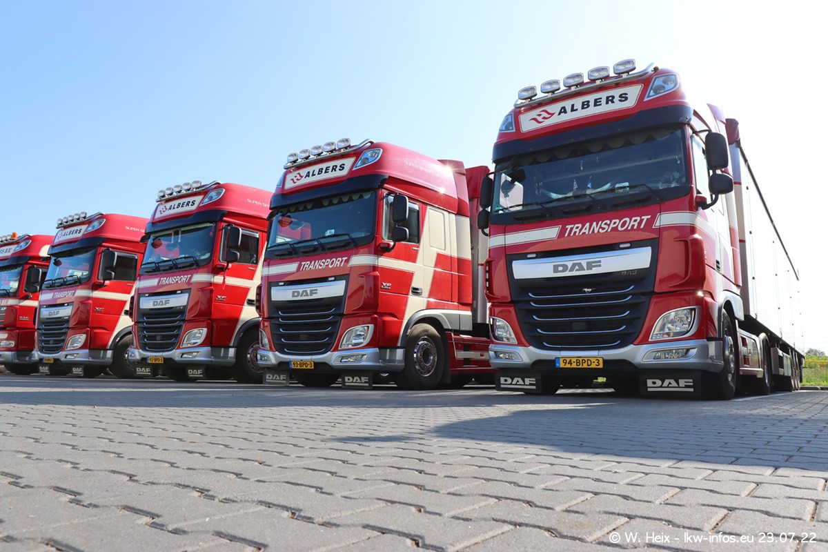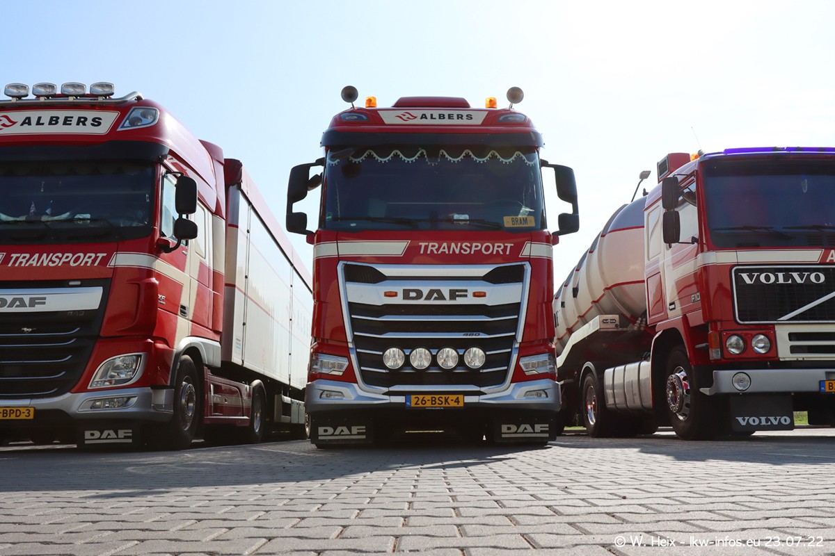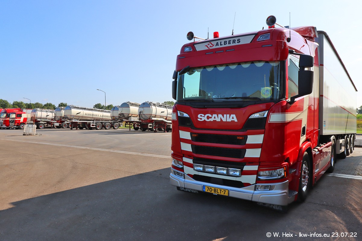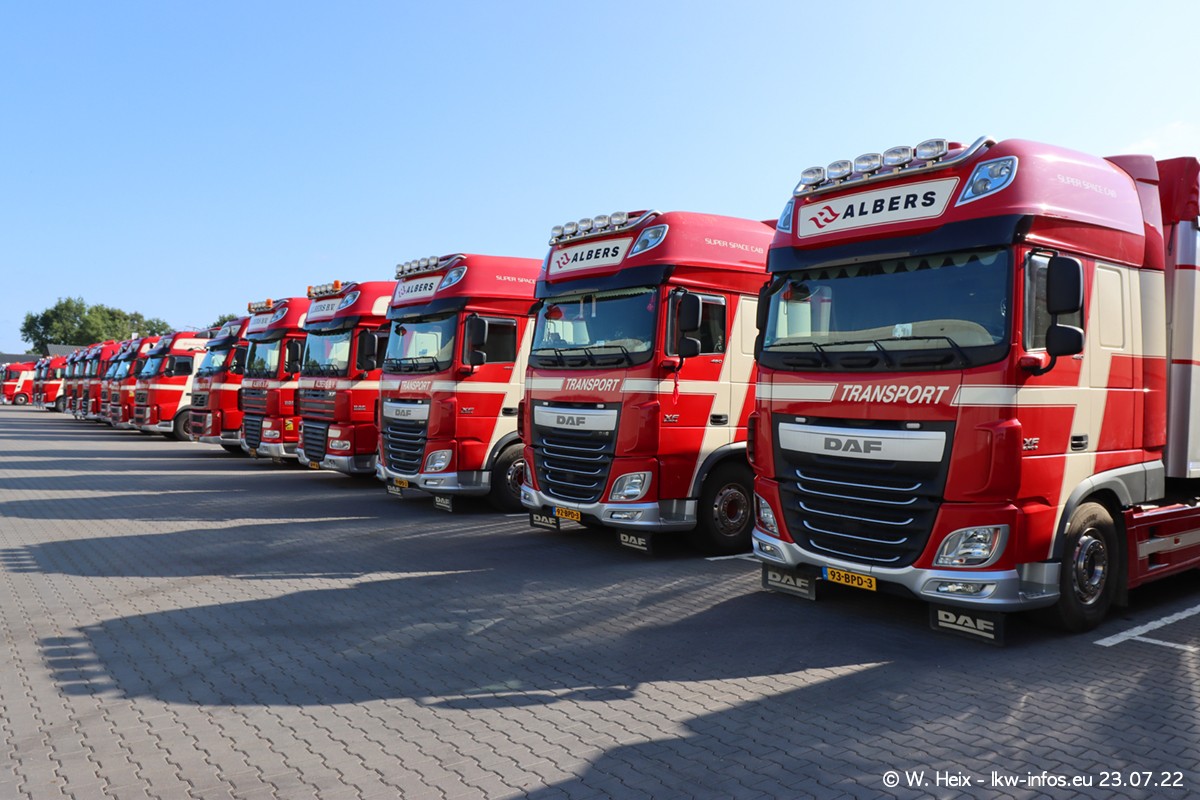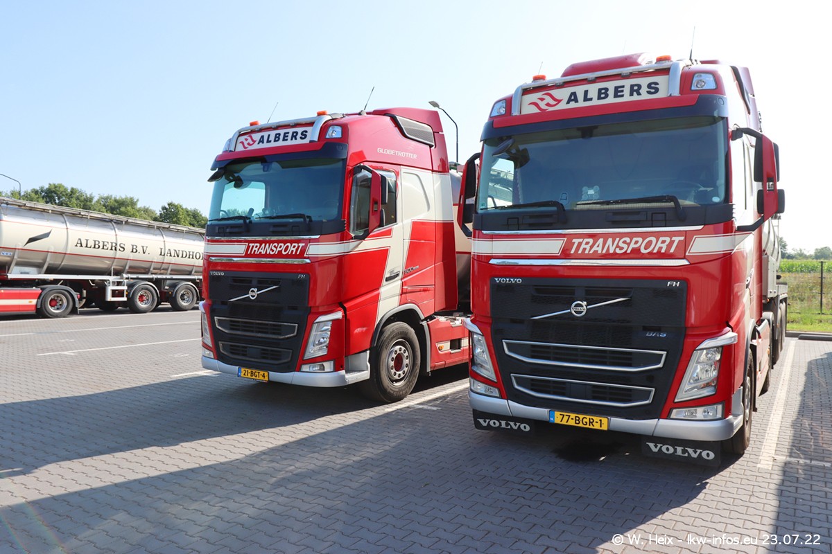 Ende 2021 ist der Fuhrpark von landhorst umgezogen nach Zeeland. Hier gibt es deutlich mehr Platz für die Fahrzeuge. Am Wochenende stehen alle LKW in einer Reihe, sortiert nach Hersteller und Alter. Ein großer Teil der LKW war zuhause. Schön, dass auch der alte VOLVO F10 samt passendem Auflieger mit auf dem Hof stand. Da die Fahrzeuge früh morgens wegen der Sonne genau falsch herum auf dem Gelände standen, war es etwas schwierig mit dem Fotografieren. Aber die Bilder sind trotzdem gut geworden.