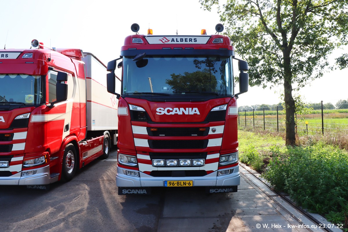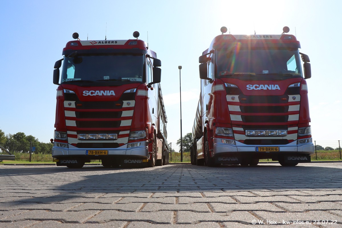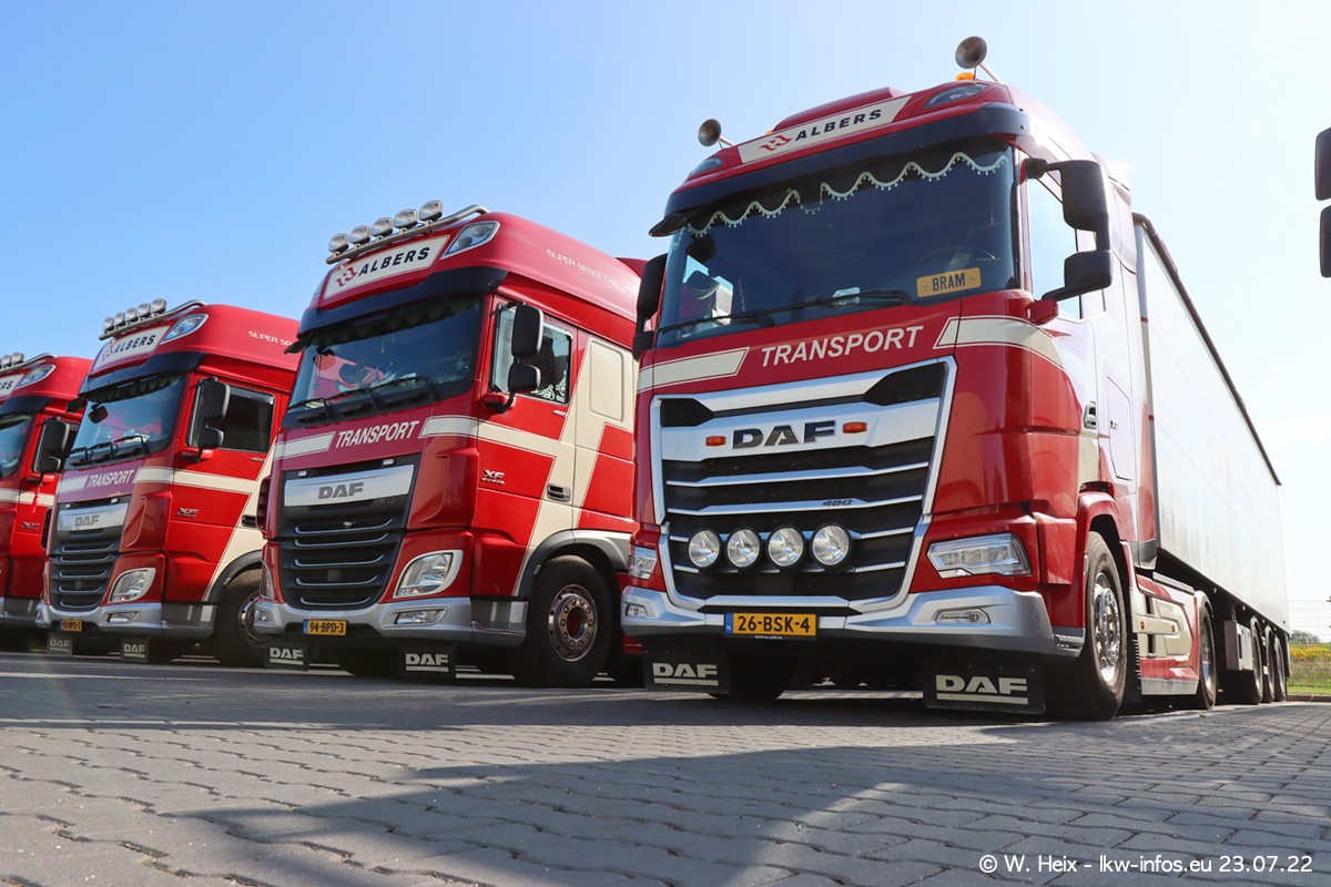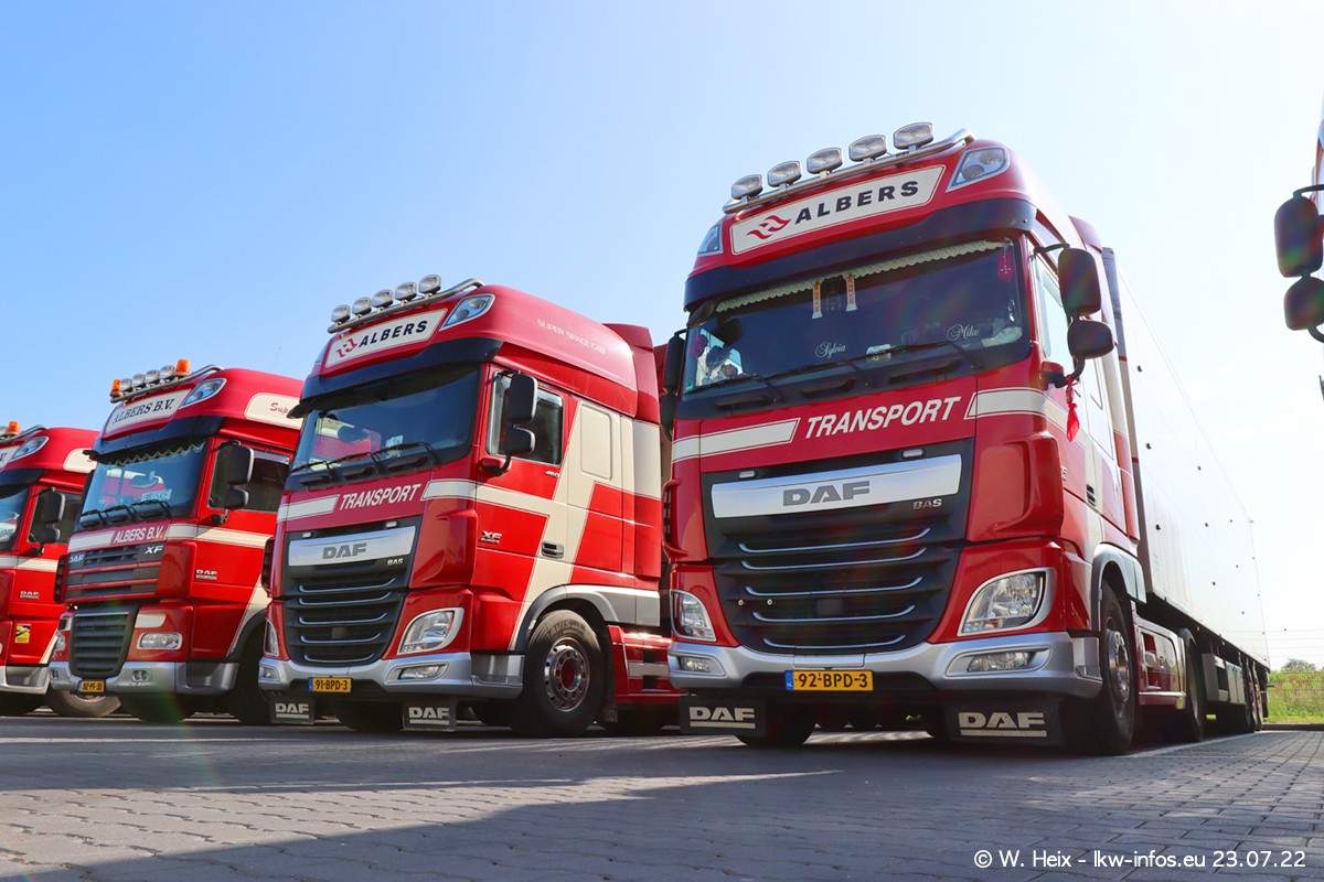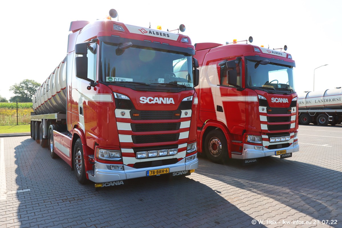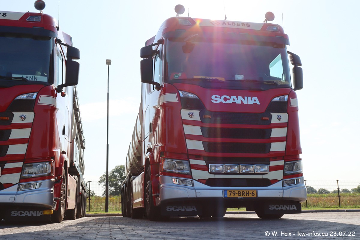 Ende 2021 ist der Fuhrpark von landhorst umgezogen nach Zeeland. Hier gibt es deutlich mehr Platz für die Fahrzeuge. Am Wochenende stehen alle LKW in einer Reihe, sortiert nach Hersteller und Alter. Ein großer Teil der LKW war zuhause. Schön, dass auch der alte VOLVO F10 samt passendem Auflieger mit auf dem Hof stand. Da die Fahrzeuge früh morgens wegen der Sonne genau falsch herum auf dem Gelände standen, war es etwas schwierig mit dem Fotografieren. Aber die Bilder sind trotzdem gut geworden.
