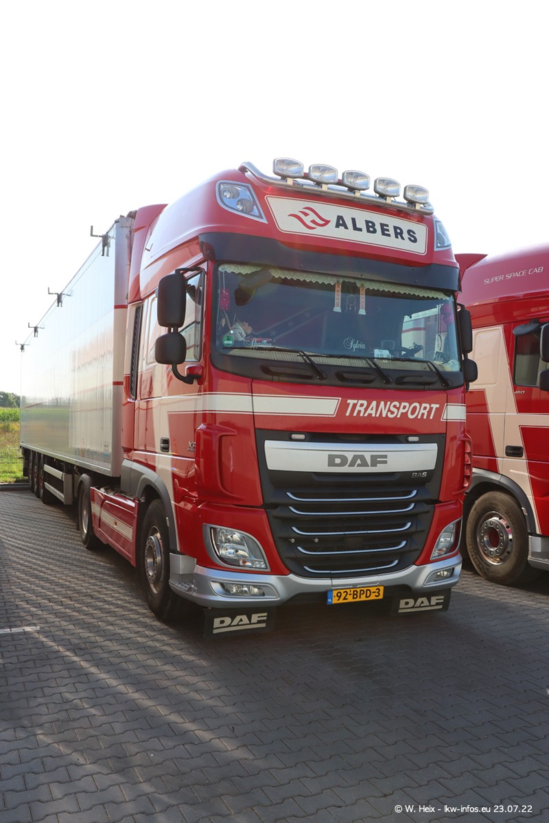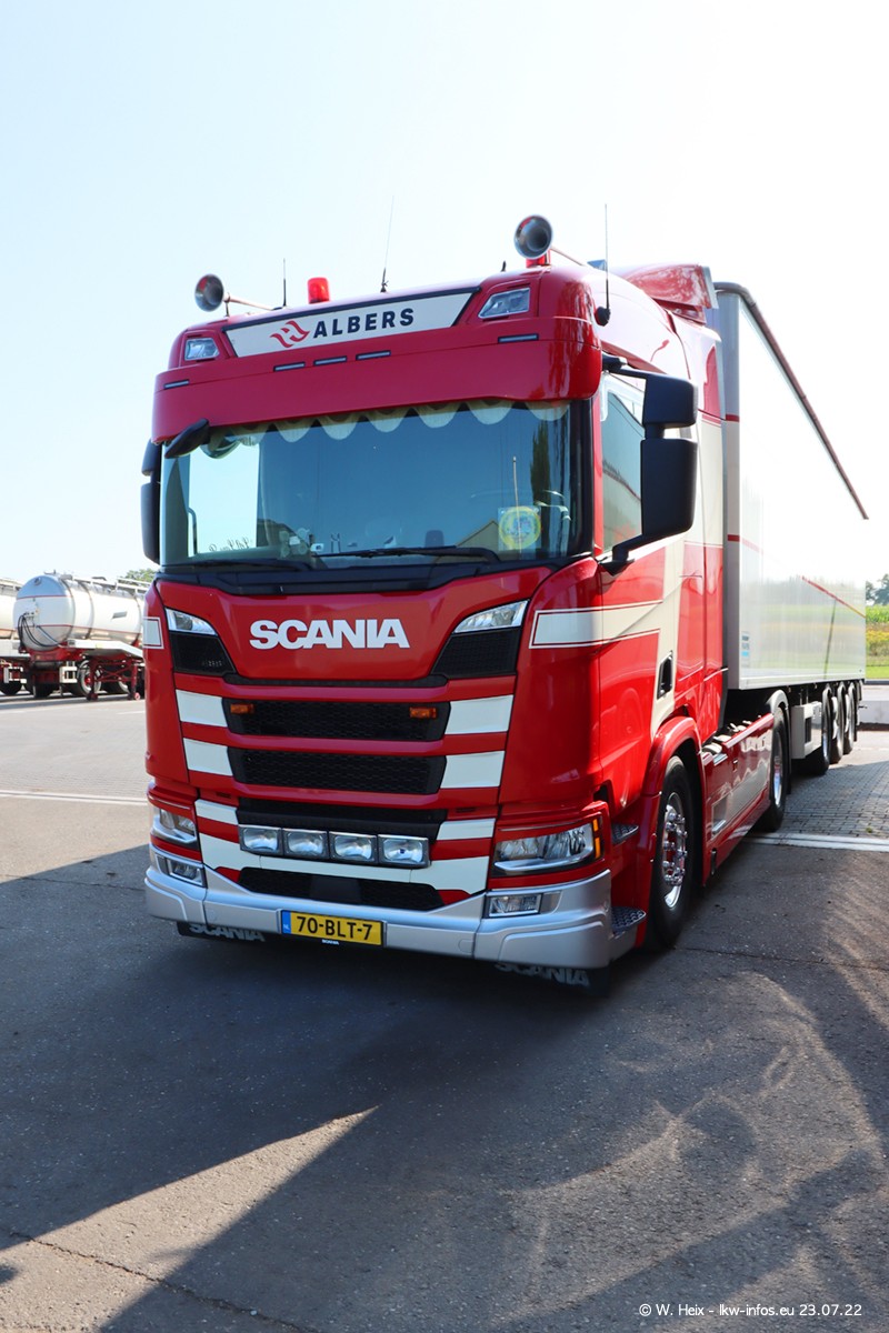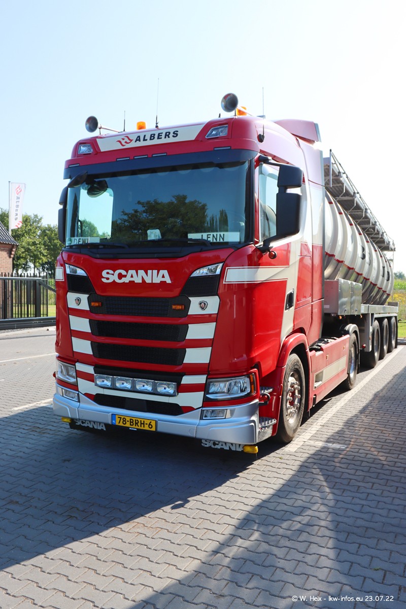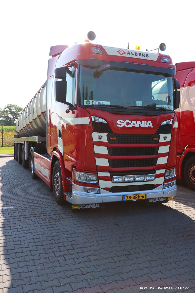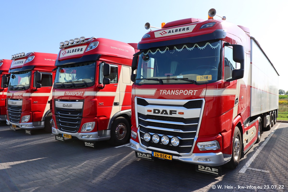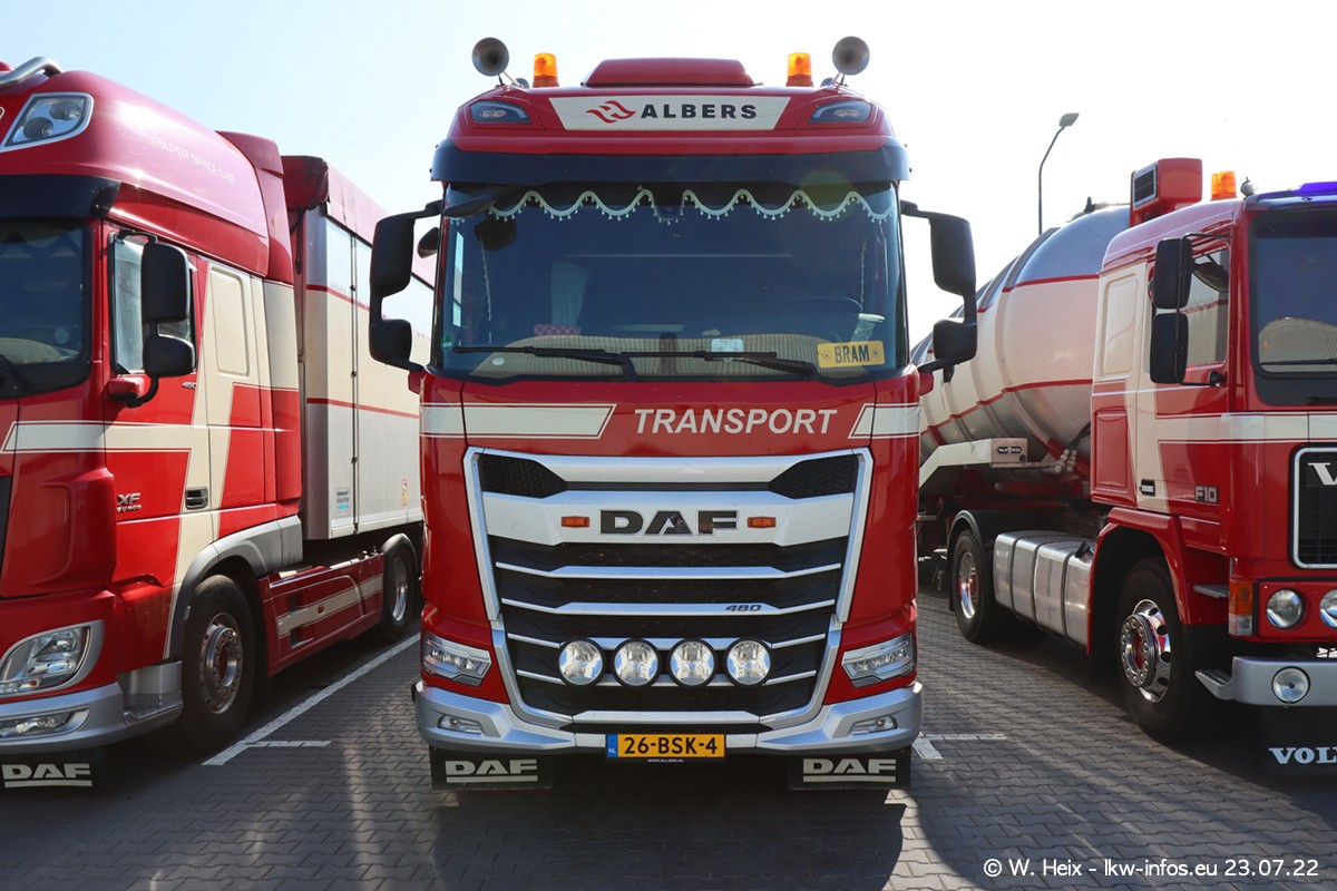 Ende 2021 ist der Fuhrpark von landhorst umgezogen nach Zeeland. Hier gibt es deutlich mehr Platz für die Fahrzeuge. Am Wochenende stehen alle LKW in einer Reihe, sortiert nach Hersteller und Alter. Ein großer Teil der LKW war zuhause. Schön, dass auch der alte VOLVO F10 samt passendem Auflieger mit auf dem Hof stand. Da die Fahrzeuge früh morgens wegen der Sonne genau falsch herum auf dem Gelände standen, war es etwas schwierig mit dem Fotografieren. Aber die Bilder sind trotzdem gut geworden.