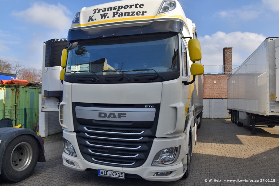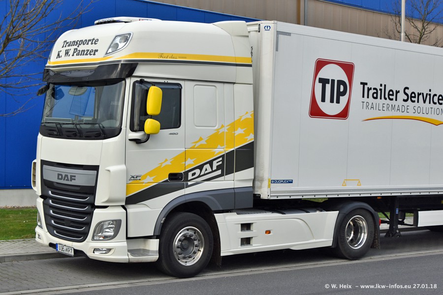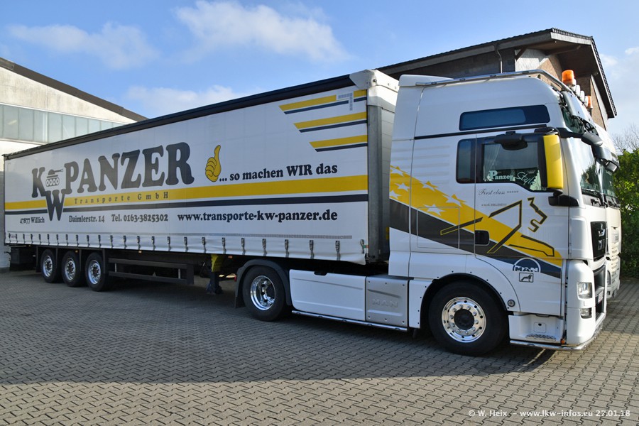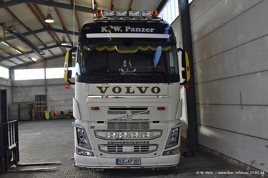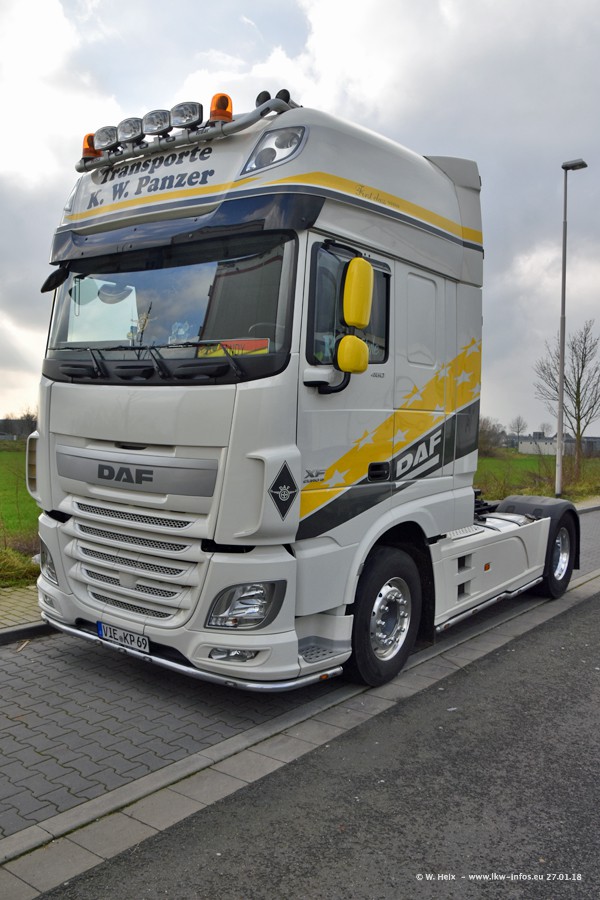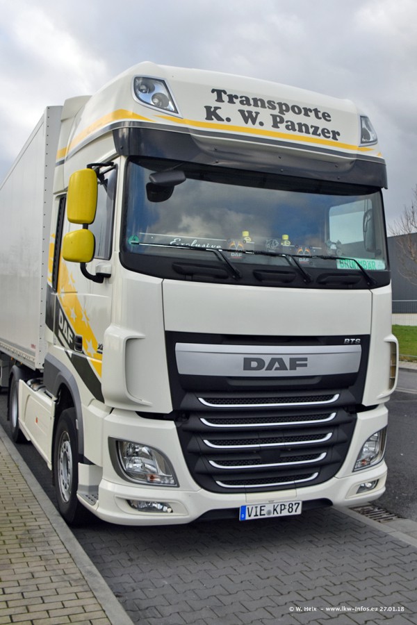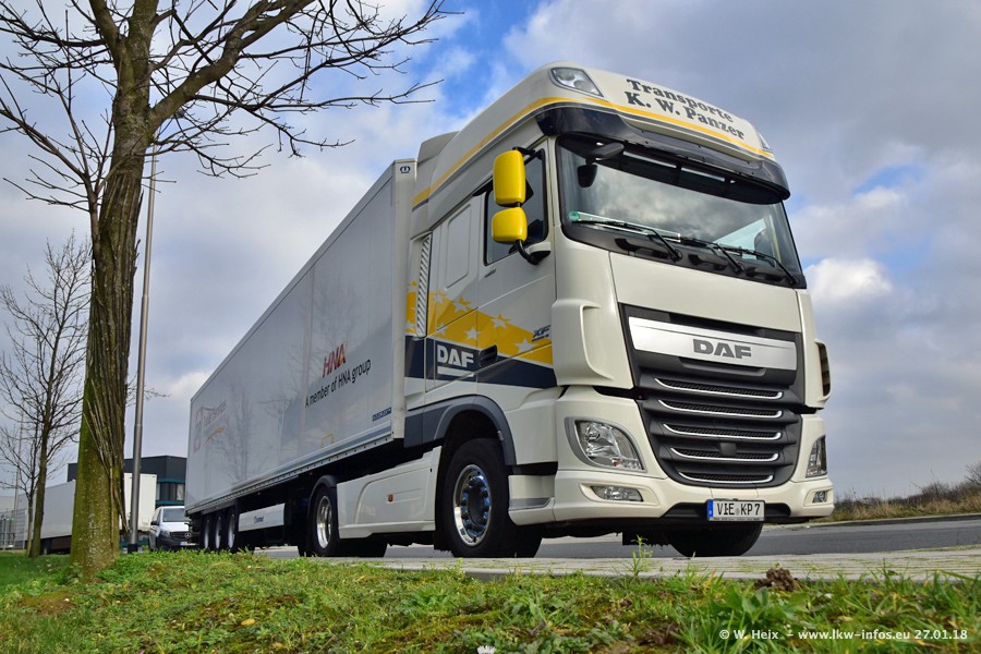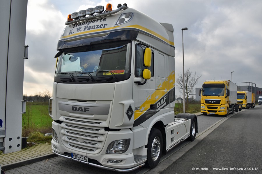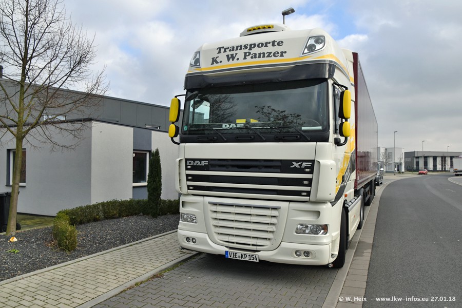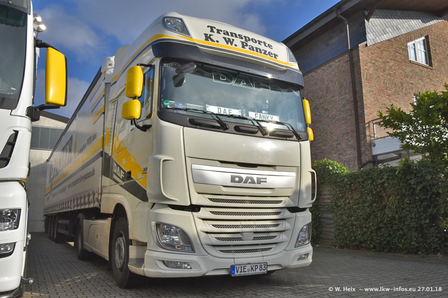 Der Fuhrpark besteht insgesamt aus rund 40 LKW. Das sind zwei Volvo FH 4 Euro, mehrere MAN TGX Euro 6 und DAF XF 105 / XF Euro 6. Da das Firmengelände für die Fahrzeuge viel zu klein ist, stehen die LKW an verschiedenen Stellen in Willich. Rund die Hälfte der LKW konnte ich fotografieren. Den MAN TGX 18.640 Euro 6, der auf den ersten Bildern zu sehen ist, gibt es als 1:87 Modell von Herpa. Die Modelle sind entweder über den Herpa Collectors Club oder direkt bei Panzer erhältlich, aber nicht im "normalen" Handel.