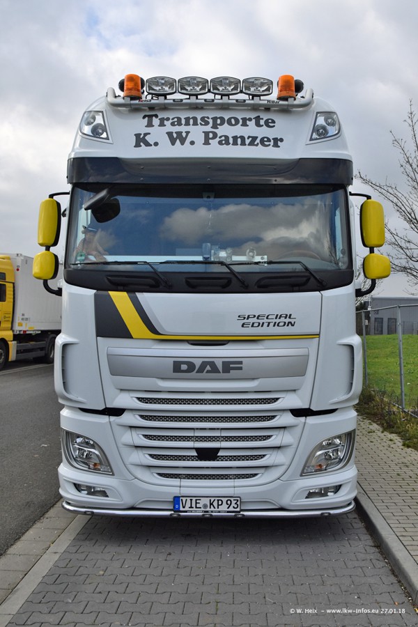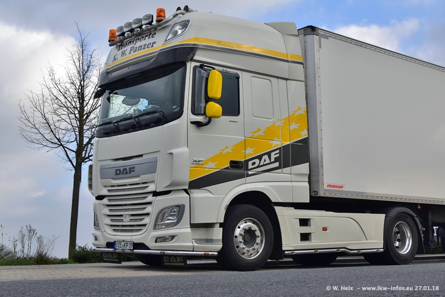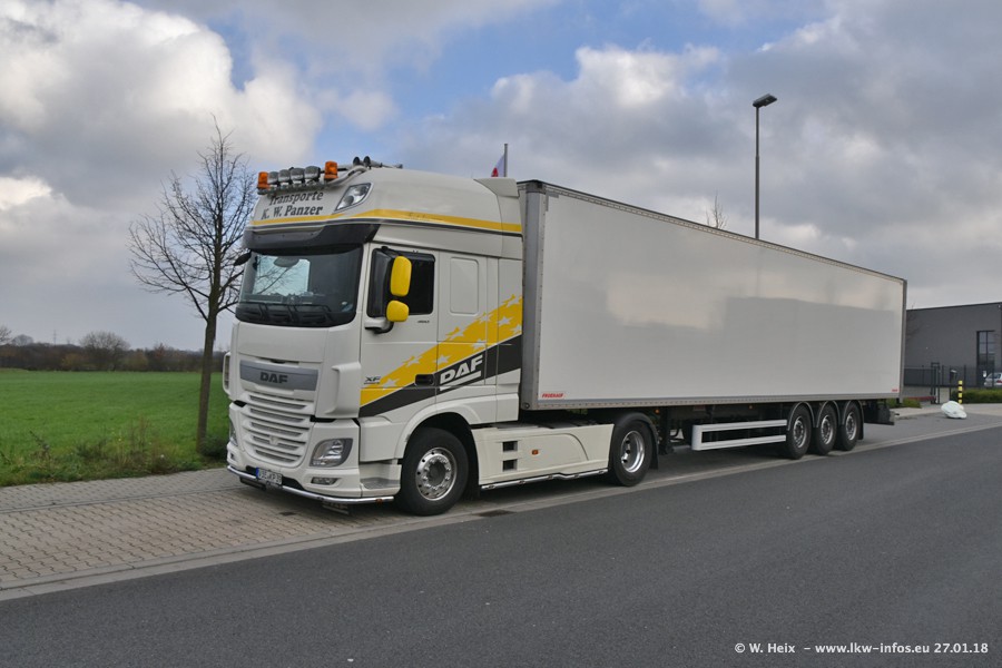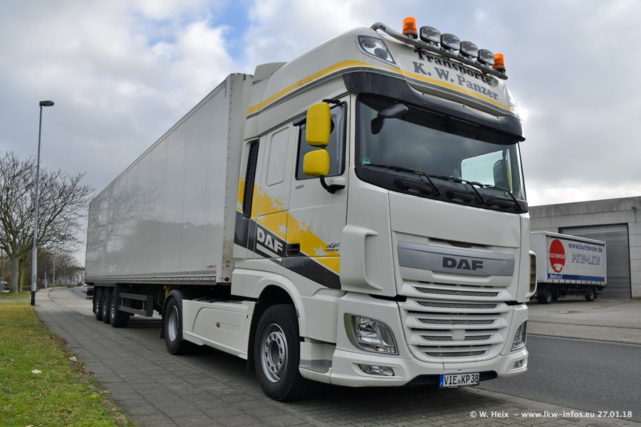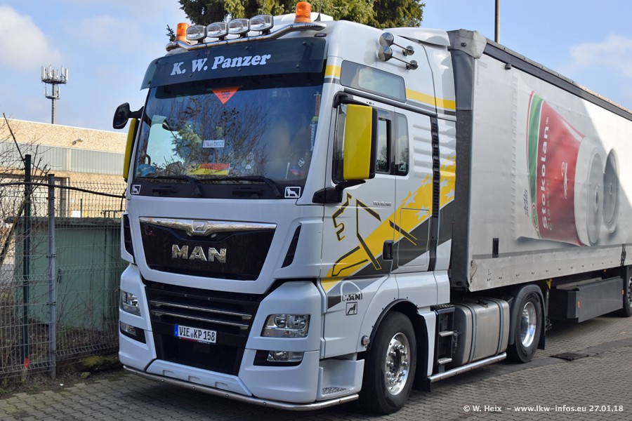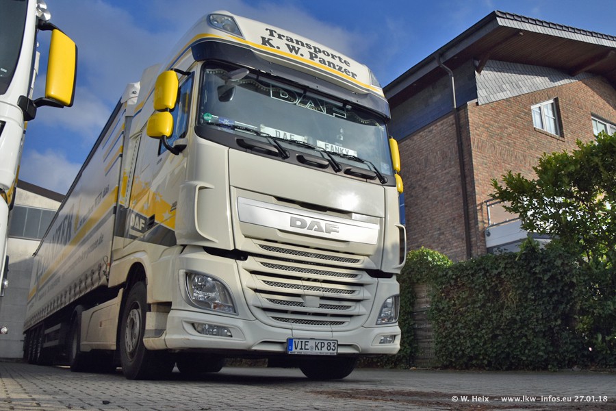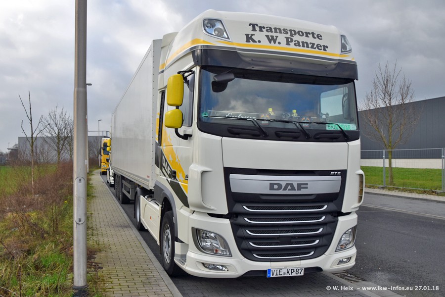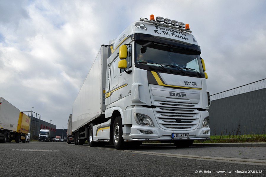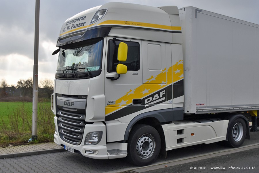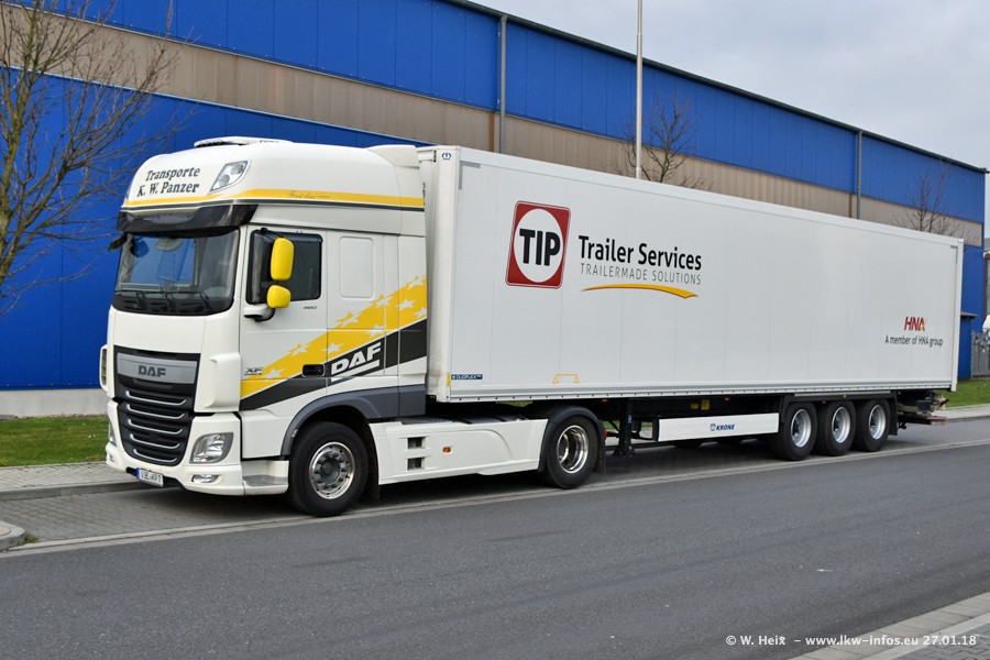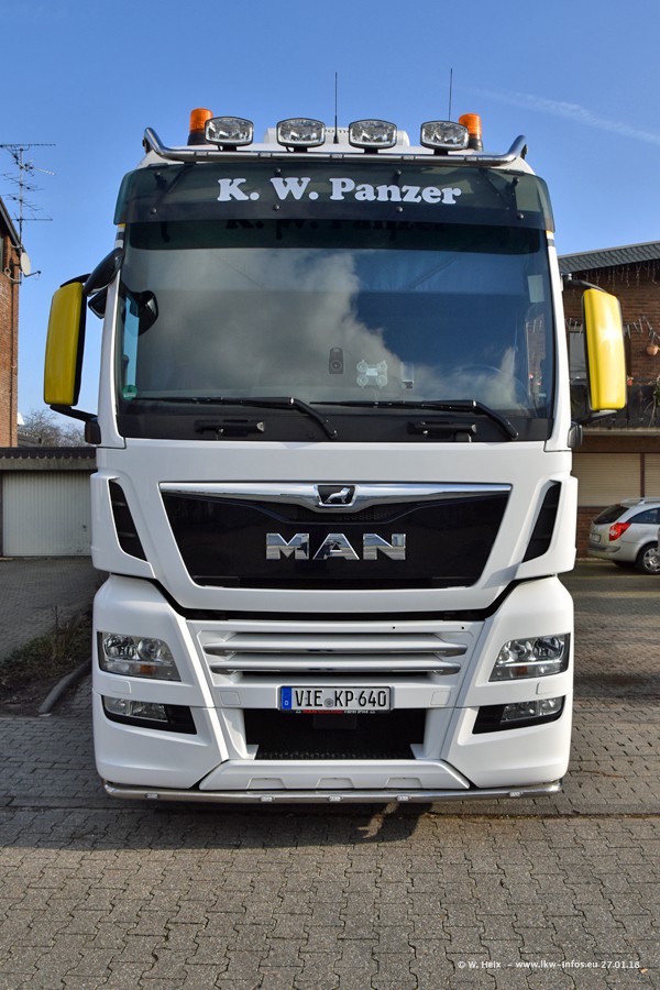 Der Fuhrpark besteht insgesamt aus rund 40 LKW. Das sind zwei Volvo FH 4 Euro, mehrere MAN TGX Euro 6 und DAF XF 105 / XF Euro 6. Da das Firmengelände für die Fahrzeuge viel zu klein ist, stehen die LKW an verschiedenen Stellen in Willich. Rund die Hälfte der LKW konnte ich fotografieren. Den MAN TGX 18.640 Euro 6, der auf den ersten Bildern zu sehen ist, gibt es als 1:87 Modell von Herpa. Die Modelle sind entweder über den Herpa Collectors Club oder direkt bei Panzer erhältlich, aber nicht im "normalen" Handel.