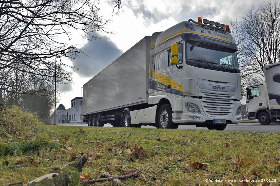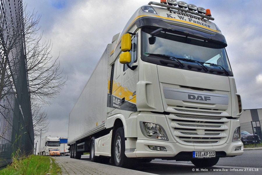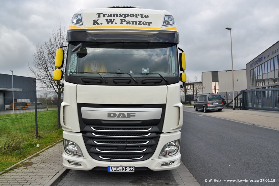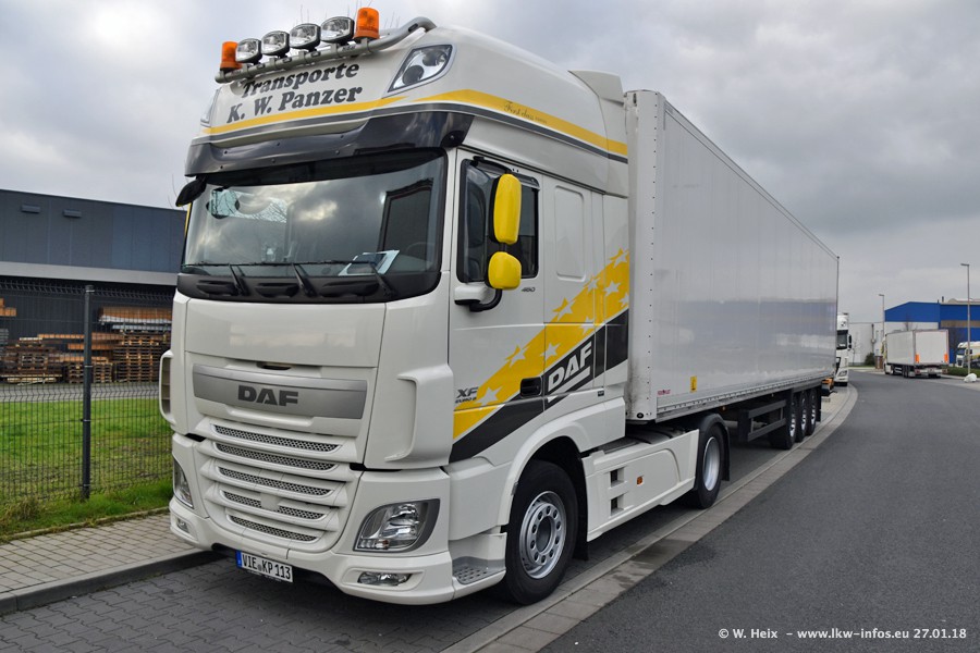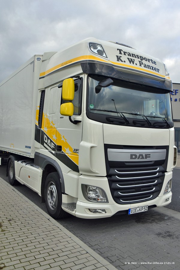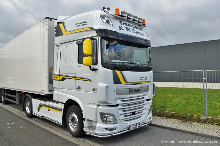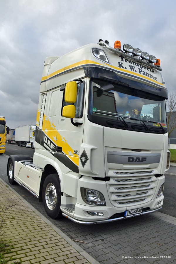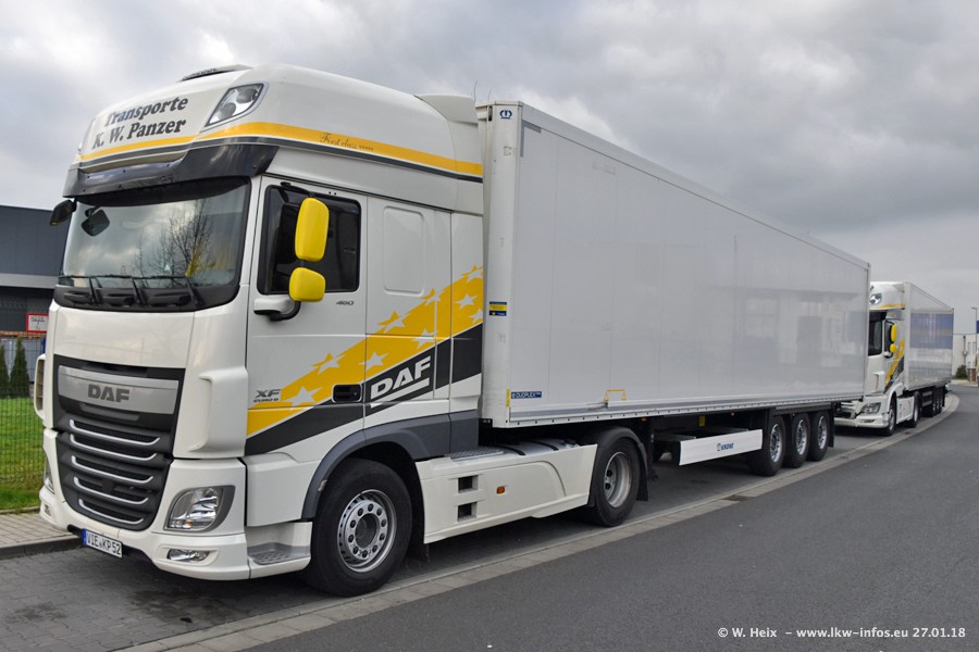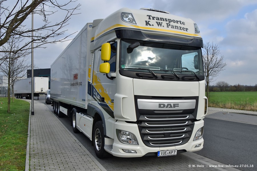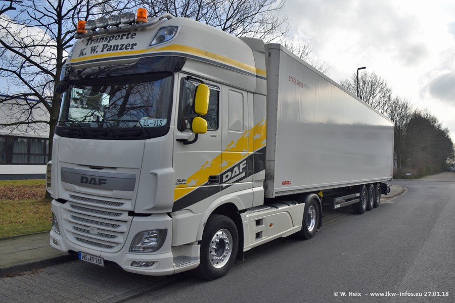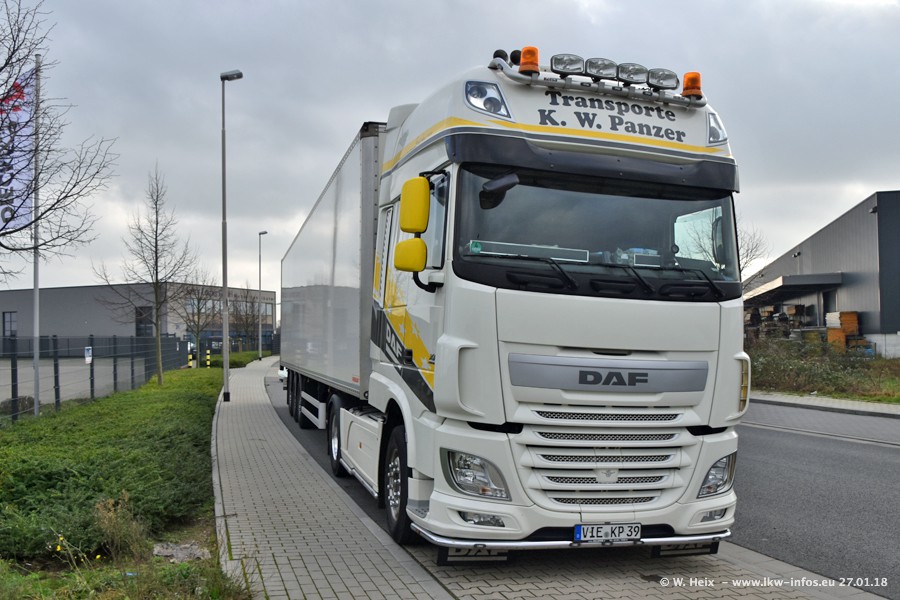 Der Fuhrpark besteht insgesamt aus rund 40 LKW. Das sind zwei Volvo FH 4 Euro, mehrere MAN TGX Euro 6 und DAF XF 105 / XF Euro 6. Da das Firmengelände für die Fahrzeuge viel zu klein ist, stehen die LKW an verschiedenen Stellen in Willich. Rund die Hälfte der LKW konnte ich fotografieren. Den MAN TGX 18.640 Euro 6, der auf den ersten Bildern zu sehen ist, gibt es als 1:87 Modell von Herpa. Die Modelle sind entweder über den Herpa Collectors Club oder direkt bei Panzer erhältlich, aber nicht im "normalen" Handel.