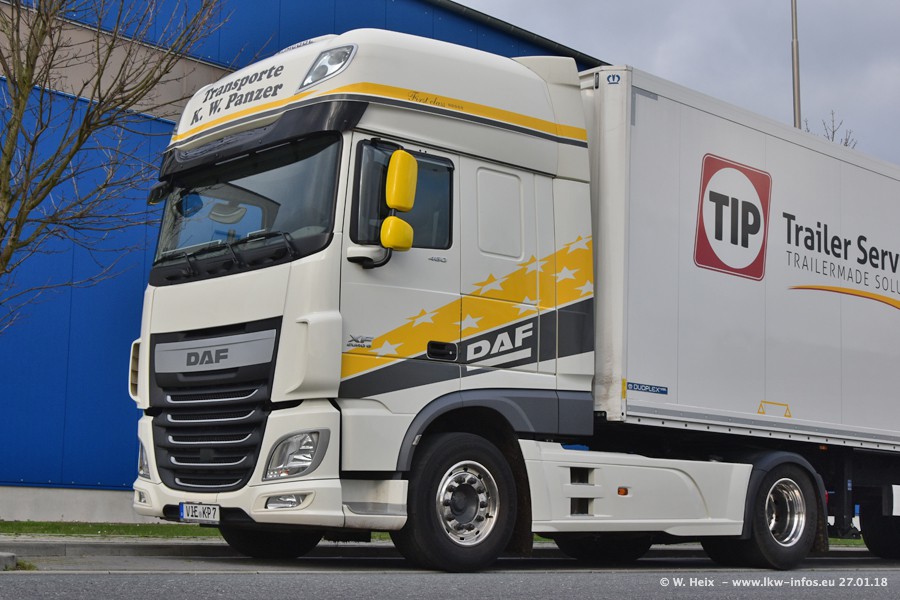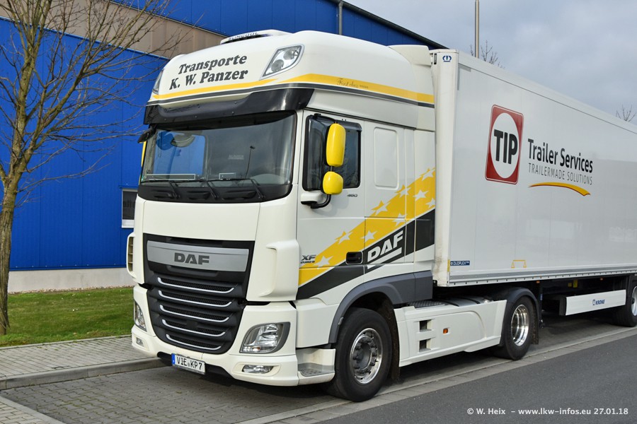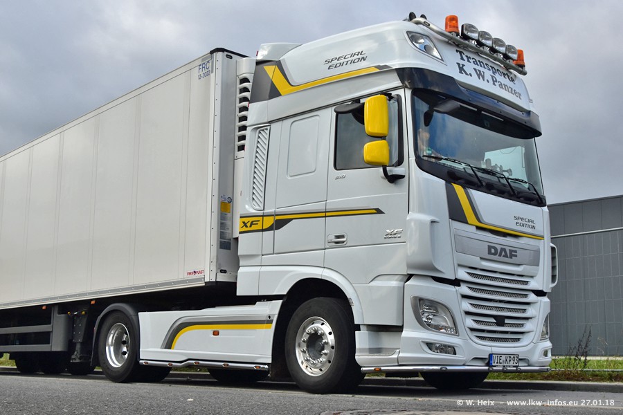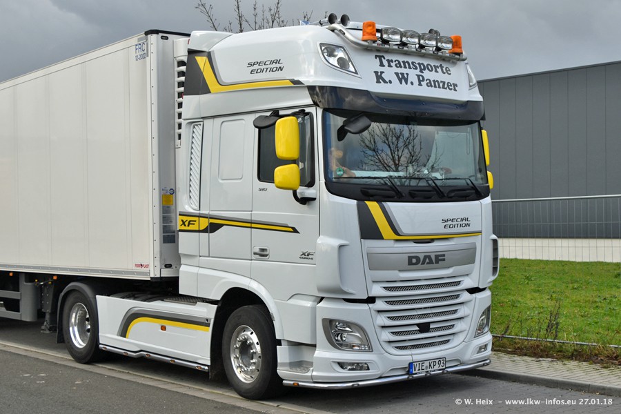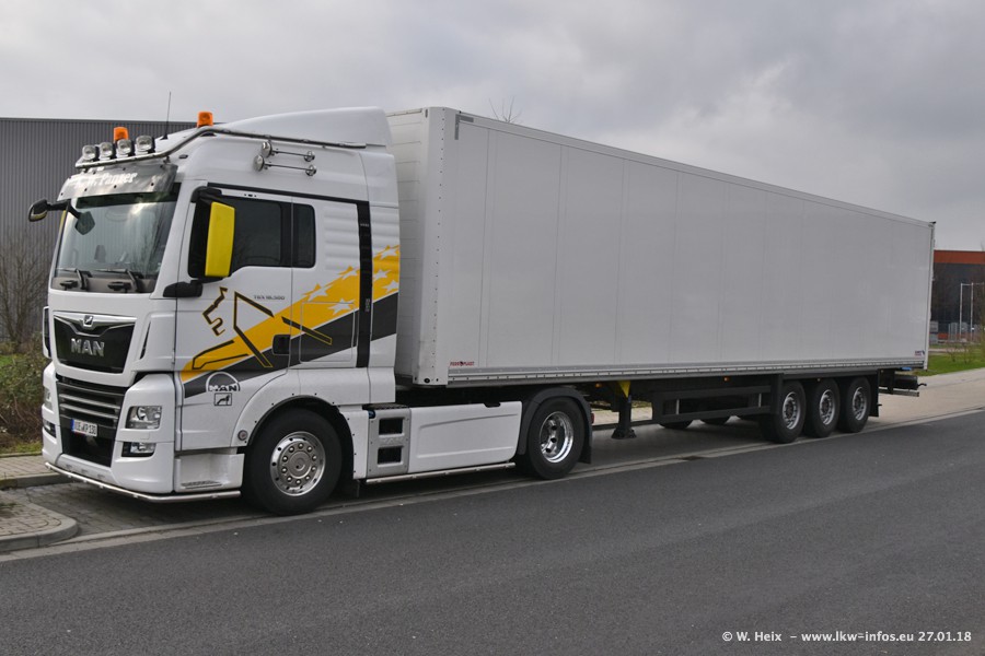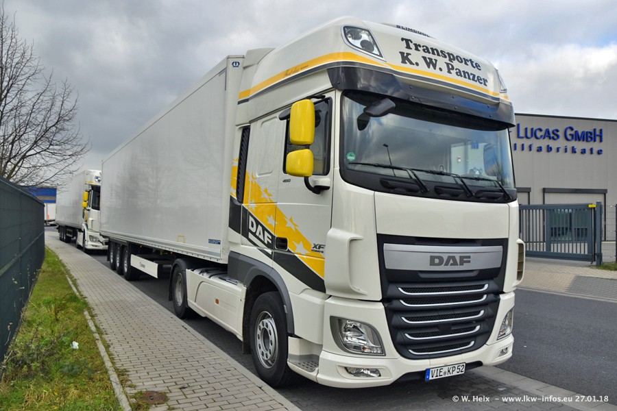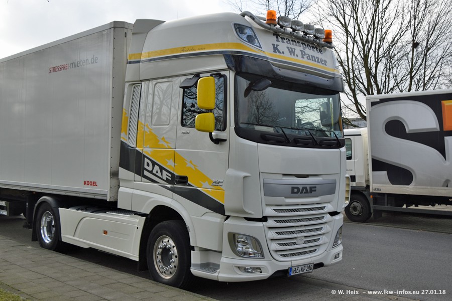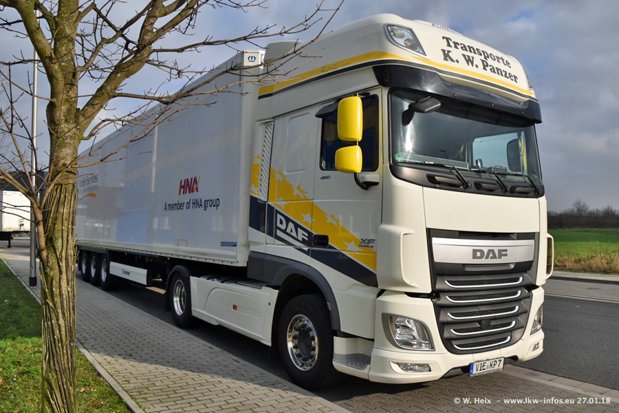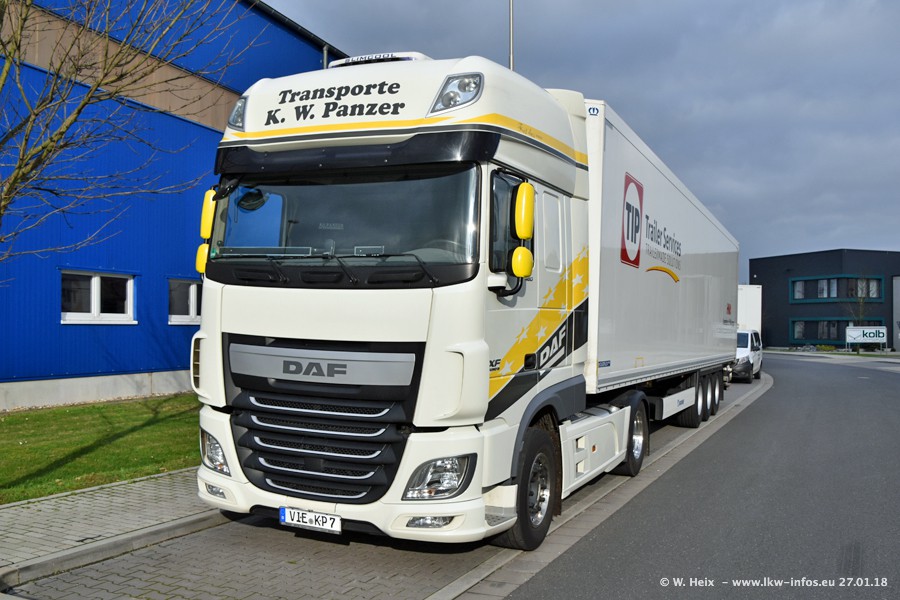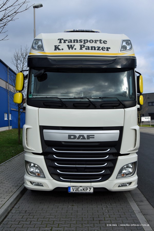 Der Fuhrpark besteht insgesamt aus rund 40 LKW. Das sind zwei Volvo FH 4 Euro, mehrere MAN TGX Euro 6 und DAF XF 105 / XF Euro 6. Da das Firmengelände für die Fahrzeuge viel zu klein ist, stehen die LKW an verschiedenen Stellen in Willich. Rund die Hälfte der LKW konnte ich fotografieren. Den MAN TGX 18.640 Euro 6, der auf den ersten Bildern zu sehen ist, gibt es als 1:87 Modell von Herpa. Die Modelle sind entweder über den Herpa Collectors Club oder direkt bei Panzer erhältlich, aber nicht im "normalen" Handel.