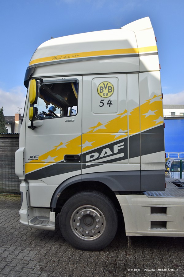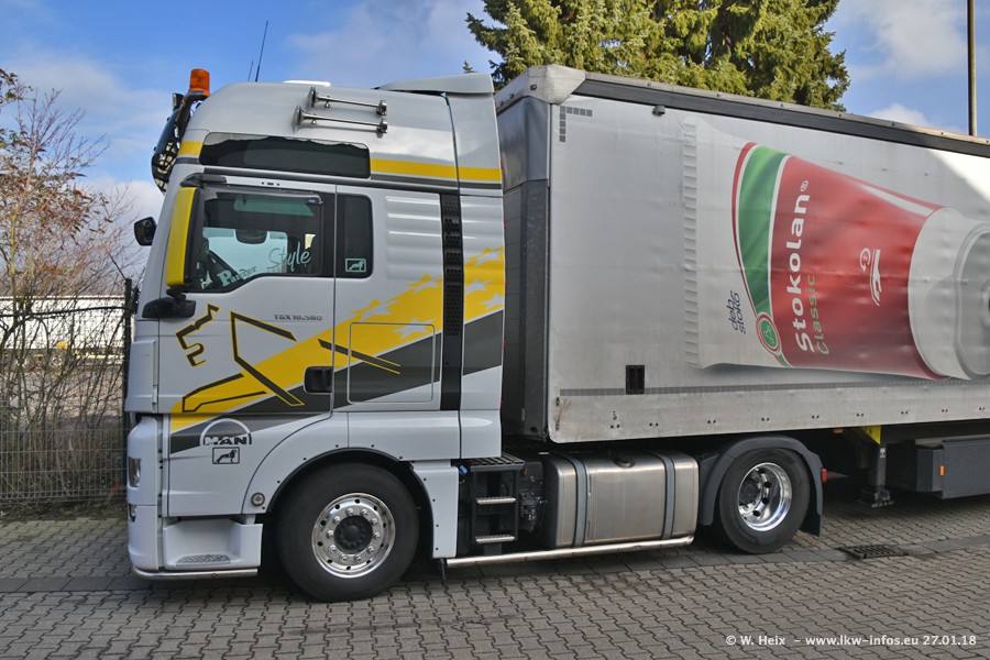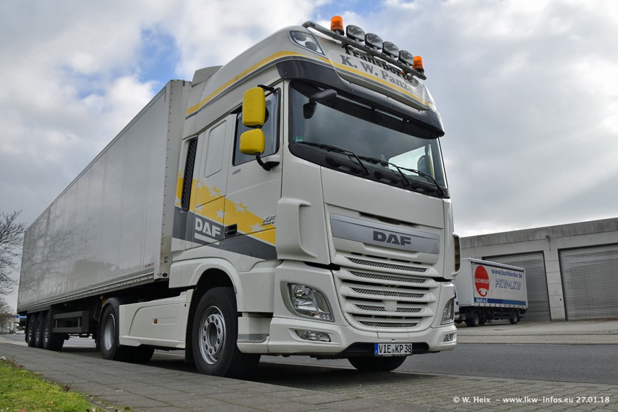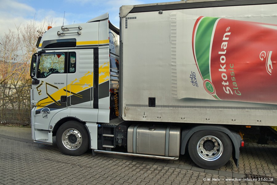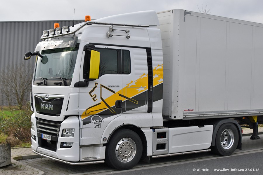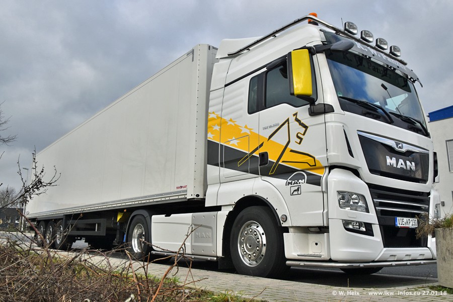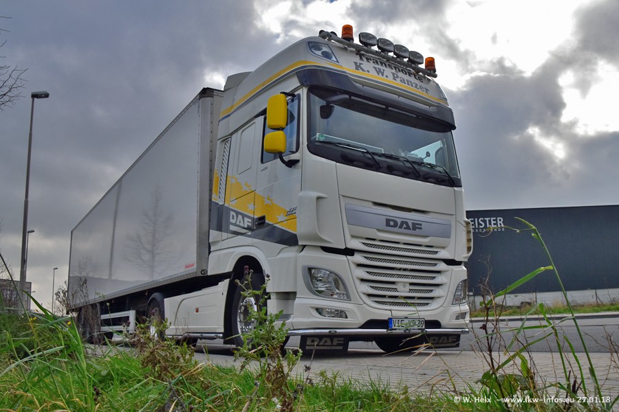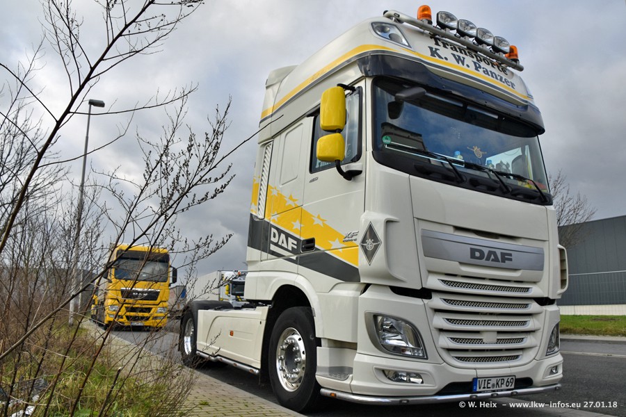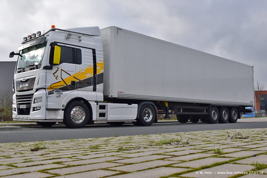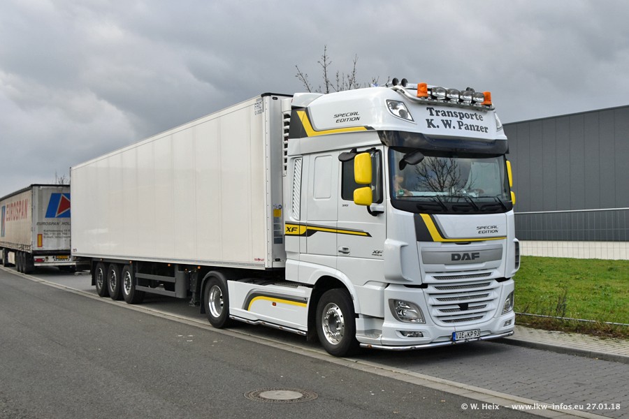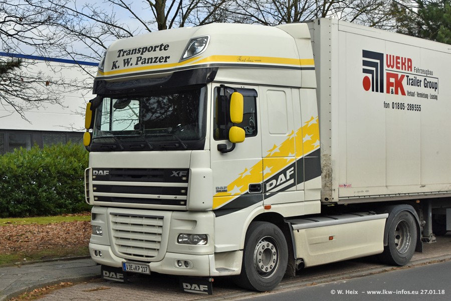 Der Fuhrpark besteht insgesamt aus rund 40 LKW. Das sind zwei Volvo FH 4 Euro, mehrere MAN TGX Euro 6 und DAF XF 105 / XF Euro 6. Da das Firmengelände für die Fahrzeuge viel zu klein ist, stehen die LKW an verschiedenen Stellen in Willich. Rund die Hälfte der LKW konnte ich fotografieren. Den MAN TGX 18.640 Euro 6, der auf den ersten Bildern zu sehen ist, gibt es als 1:87 Modell von Herpa. Die Modelle sind entweder über den Herpa Collectors Club oder direkt bei Panzer erhältlich, aber nicht im "normalen" Handel.