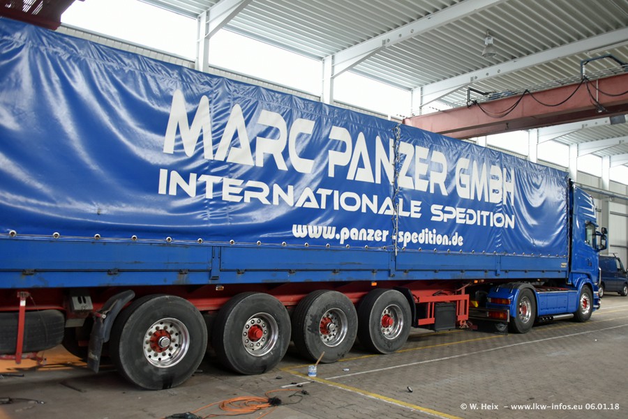 Die Firma Marc Panzer habe ich zum ersten Mal besucht. Vielen LKW-Fans ist Marc Panzer sicherlich durch die TV-Serie "Asphalt Cowboys", die auf DMAX läuft, bekannt. Der Fuhrpark besteht aktuell aus sechs Fahrzeugen. Das sind ein MAN TGX Euro 6 und fünf SCANIA aus verschiedenen Baureihen. Der Besuch wurde dann zu einem richtigen Fotoshooting in passender Umgebung.
