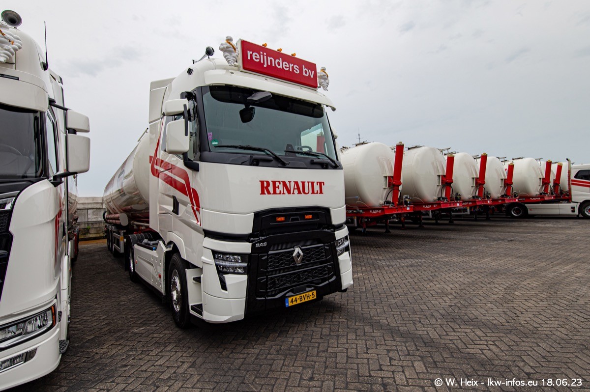 Inzwischen sind zwei der drei bestellten Renault T Evo fertig und im Einsatz. Wegen einer großen Baustelle auf dem Gelände stehen die LKW auf dem freien Platz verteilt und nicht in einer Reihe wie sonst. Das war für mich gut, so konnte ich ein paar schöne Fotos machen.