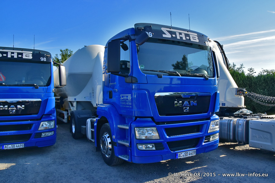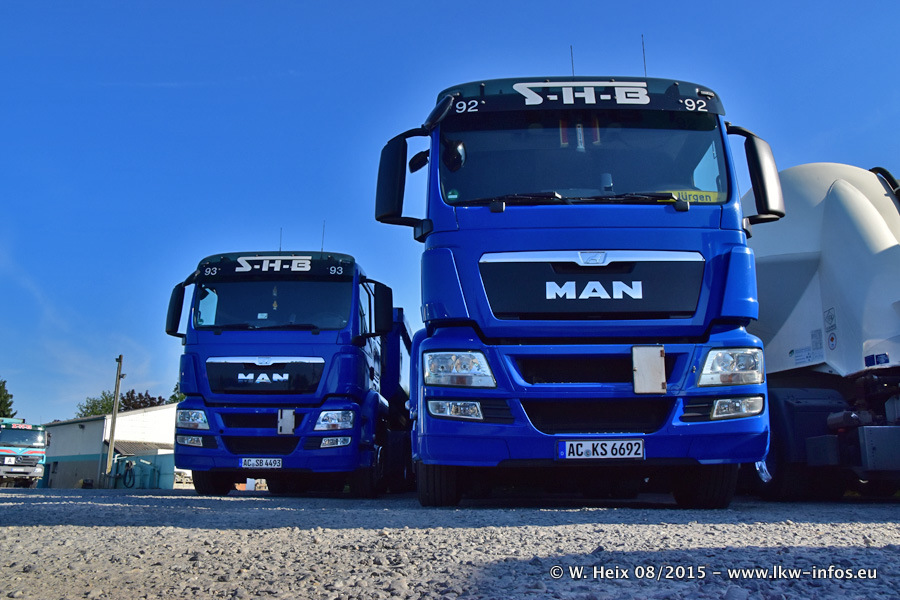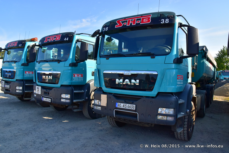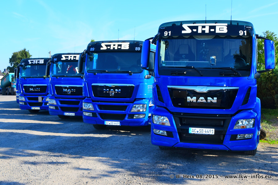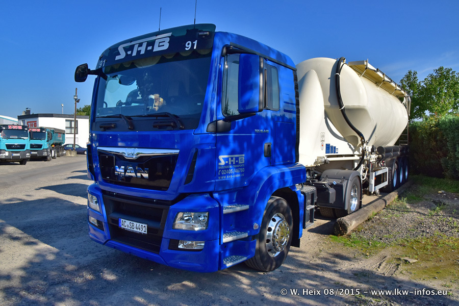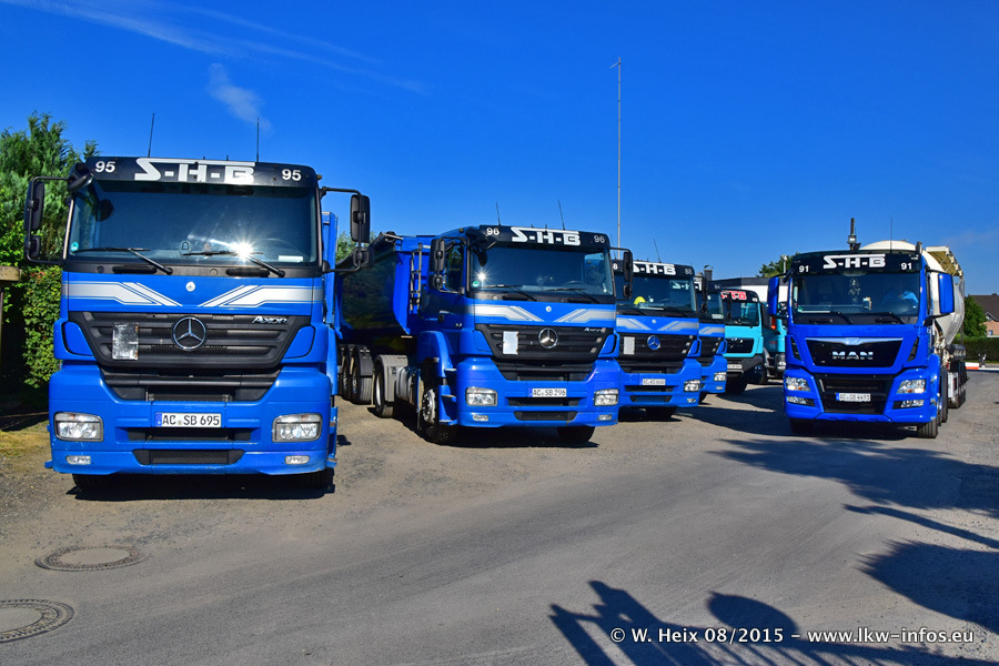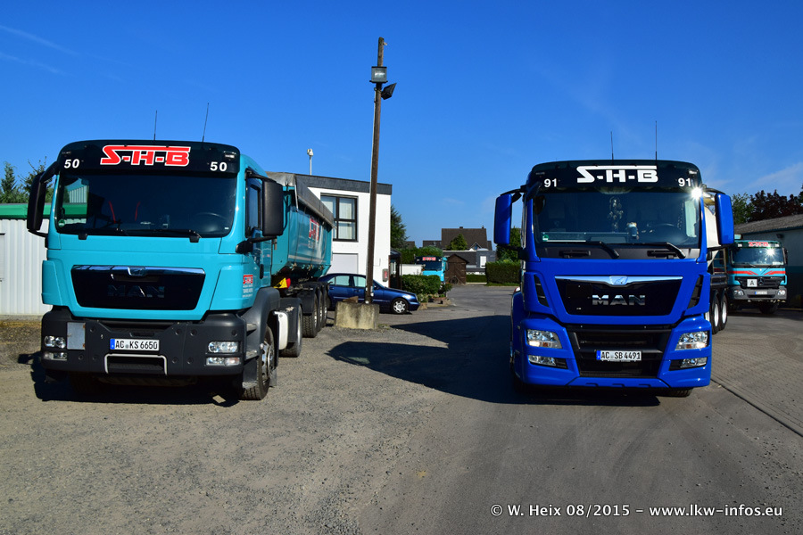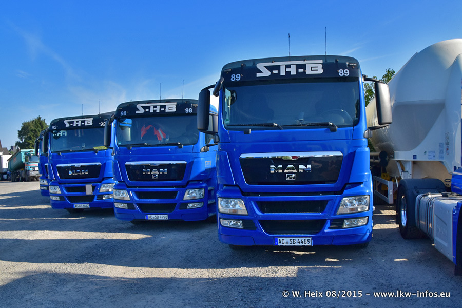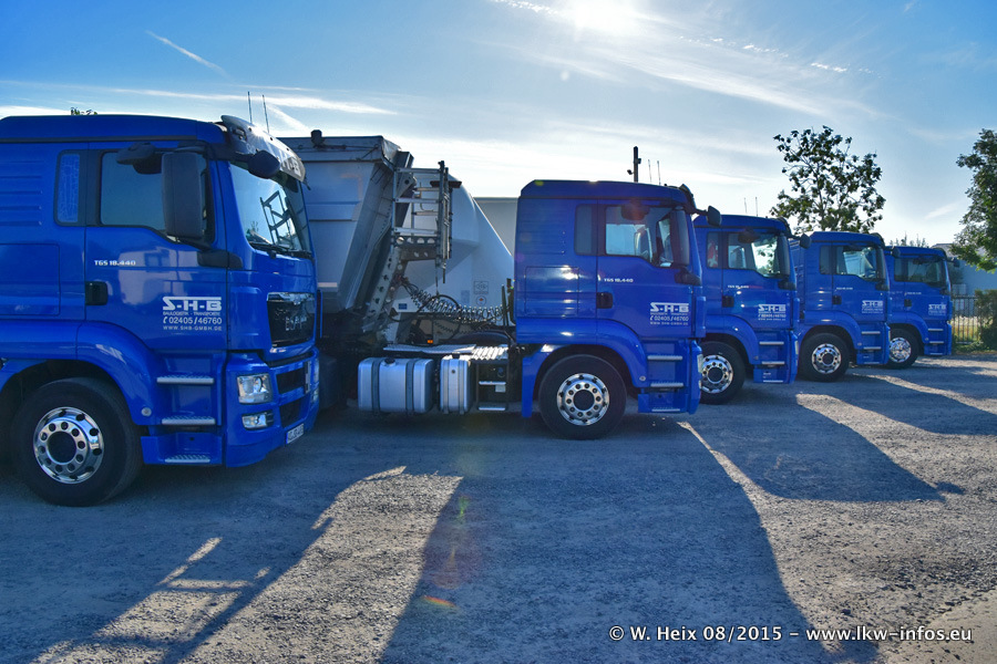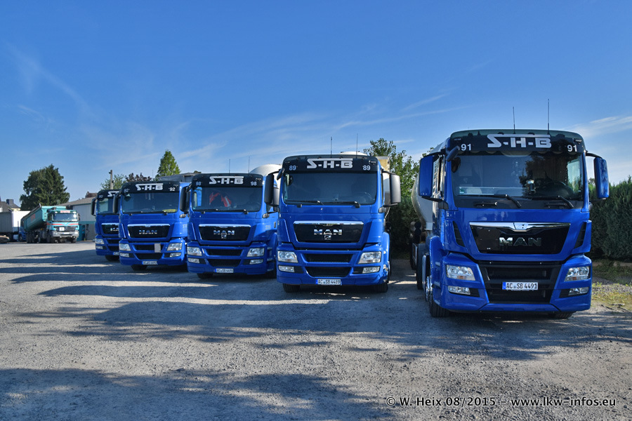 Nach drei Jahren Pause war ich wieder bei der Firma SHB in Würselen (Nähe Aachen) zu Besuch. In dieser Zeit hat sich natürlich viel verändert in Sachen Fuhrpark. Gab es 2012 noch jede Menge LKW von Mercedes-Benz sowie einen Renault Premium Route und einige DAF im Fuhrpark, so wurden in den letzten Jahren (fast) nur noch LKW von MAN gekauft. Dei ersten Euro-6-MAN sind inzwischen auch im Fuhrpark. Beim heutigen Besuch bei schönstem Sommerwetter fehlten zwar 10 der rund 60 LKW, aber man bekommt trotzdem einen guten Eindruck und überblick über den Fuhrpark von SHB.