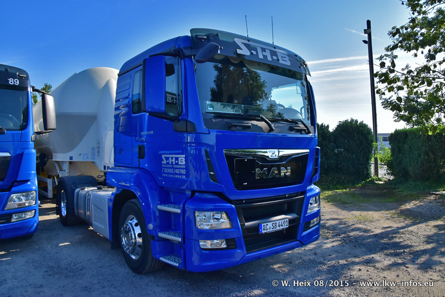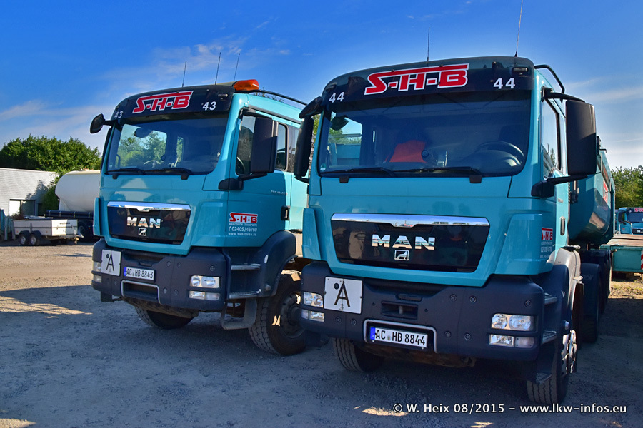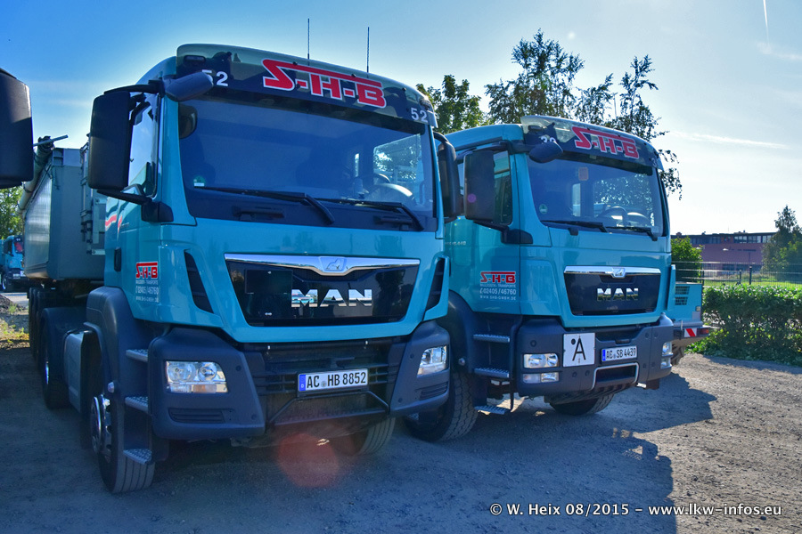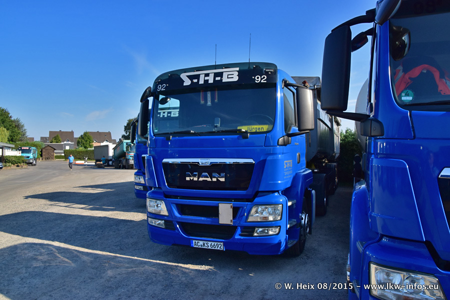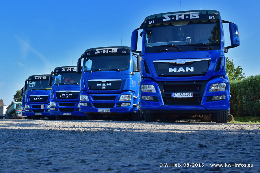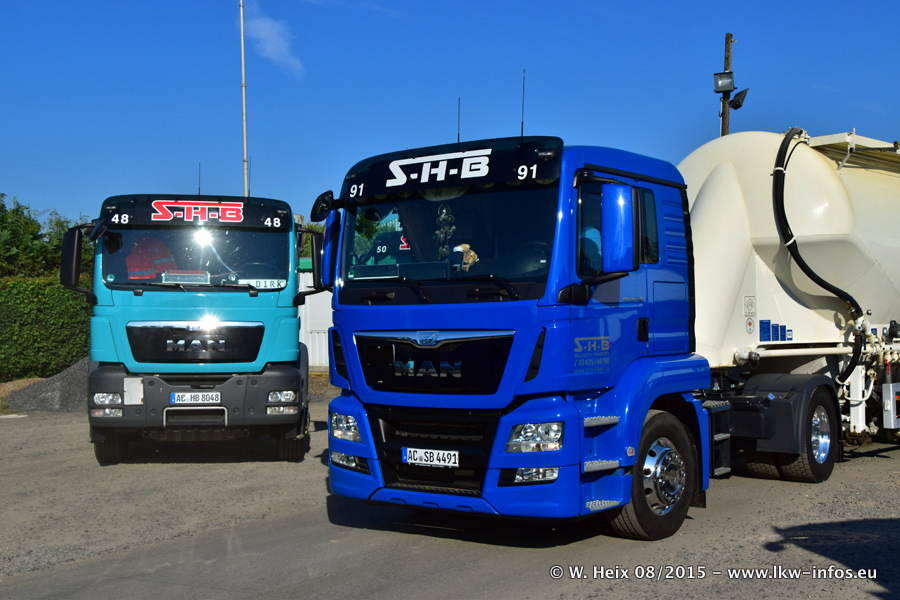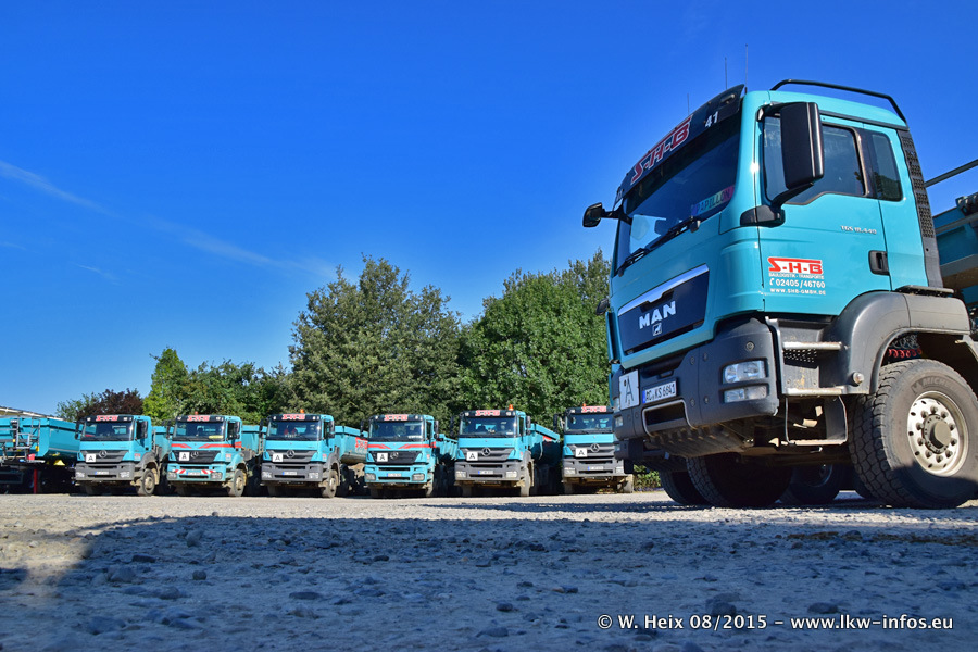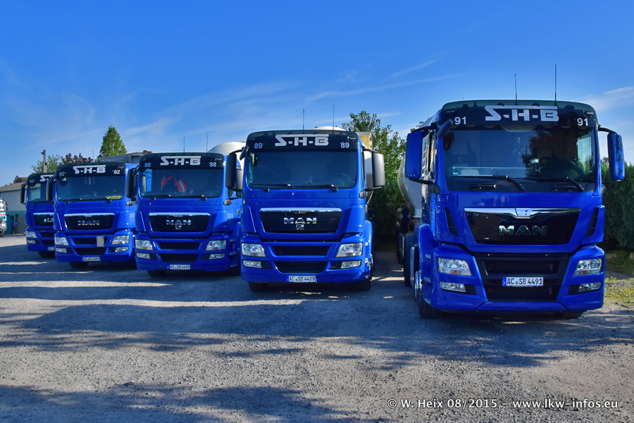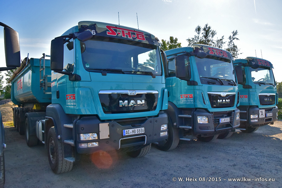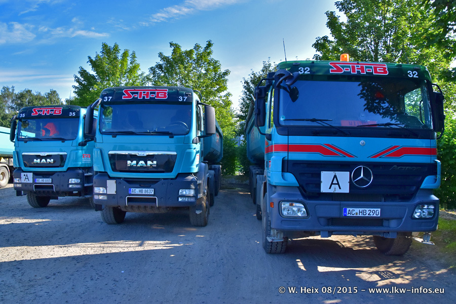 Nach drei Jahren Pause war ich wieder bei der Firma SHB in Würselen (Nähe Aachen) zu Besuch. In dieser Zeit hat sich natürlich viel verändert in Sachen Fuhrpark. Gab es 2012 noch jede Menge LKW von Mercedes-Benz sowie einen Renault Premium Route und einige DAF im Fuhrpark, so wurden in den letzten Jahren (fast) nur noch LKW von MAN gekauft. Dei ersten Euro-6-MAN sind inzwischen auch im Fuhrpark. Beim heutigen Besuch bei schönstem Sommerwetter fehlten zwar 10 der rund 60 LKW, aber man bekommt trotzdem einen guten Eindruck und überblick über den Fuhrpark von SHB.