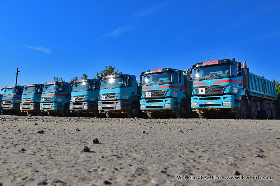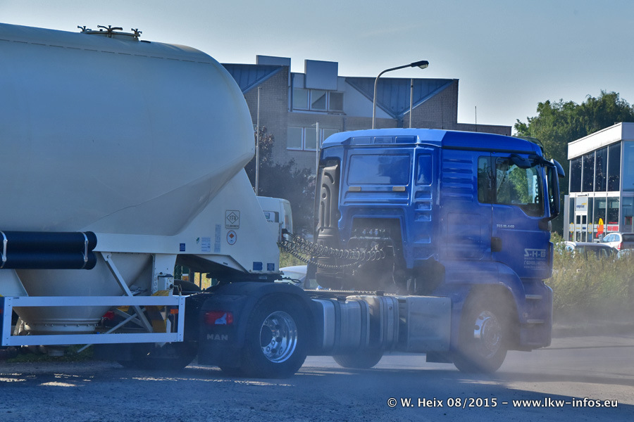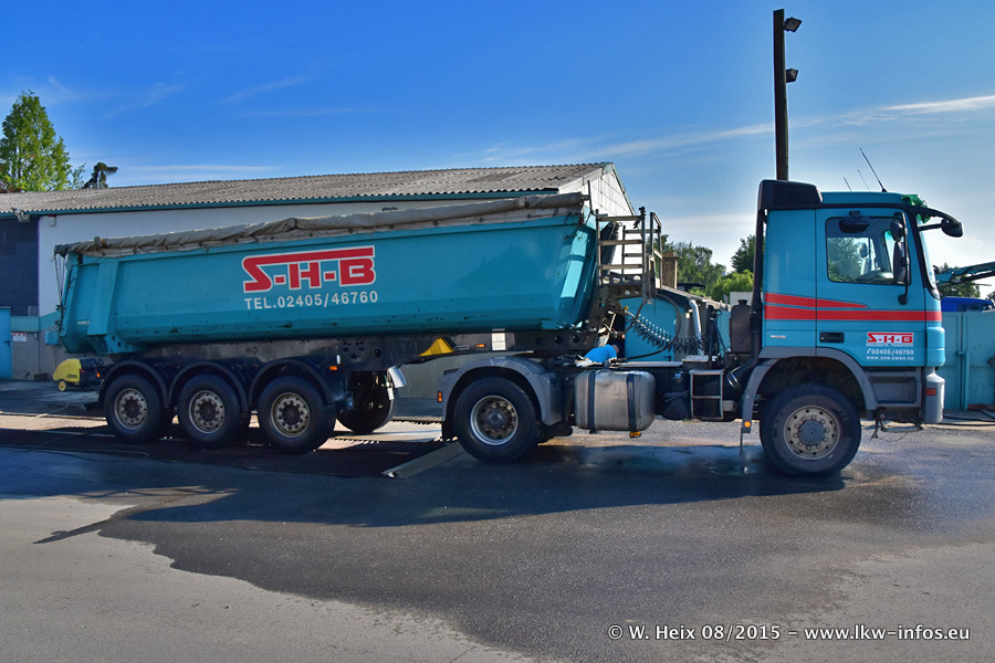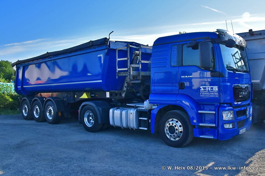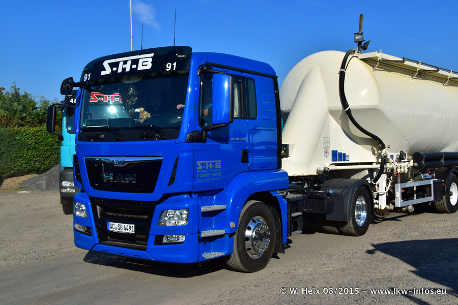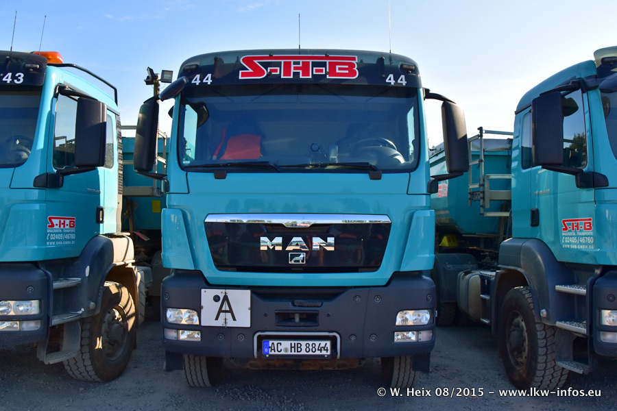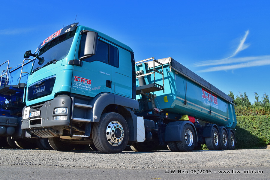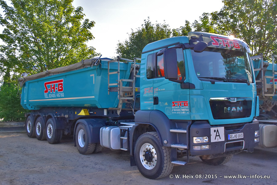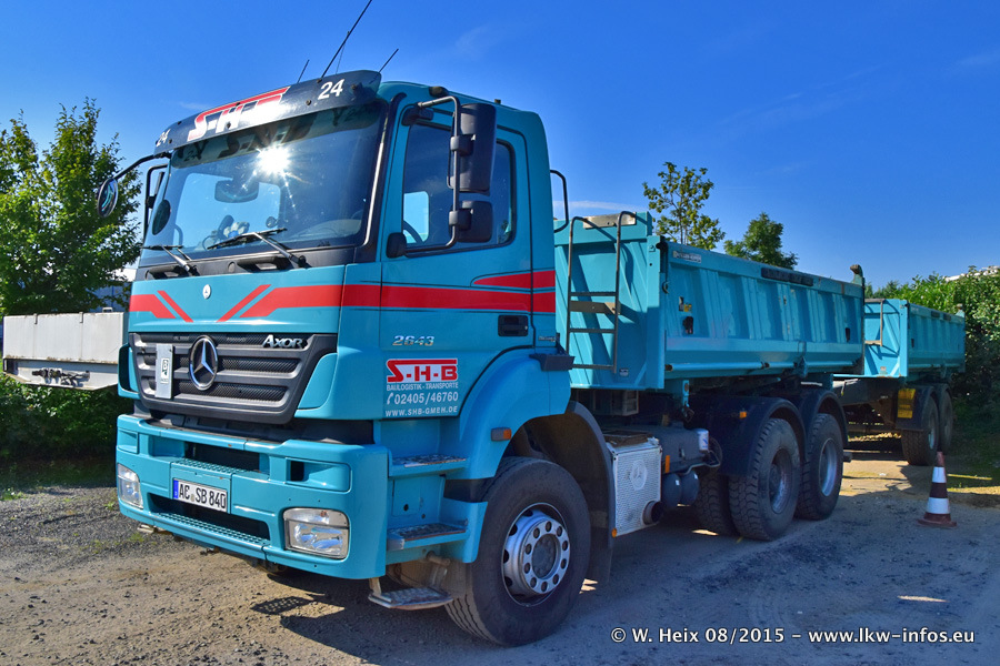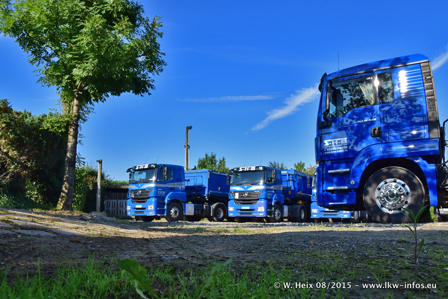 Nach drei Jahren Pause war ich wieder bei der Firma SHB in Würselen (Nähe Aachen) zu Besuch. In dieser Zeit hat sich natürlich viel verändert in Sachen Fuhrpark. Gab es 2012 noch jede Menge LKW von Mercedes-Benz sowie einen Renault Premium Route und einige DAF im Fuhrpark, so wurden in den letzten Jahren (fast) nur noch LKW von MAN gekauft. Dei ersten Euro-6-MAN sind inzwischen auch im Fuhrpark. Beim heutigen Besuch bei schönstem Sommerwetter fehlten zwar 10 der rund 60 LKW, aber man bekommt trotzdem einen guten Eindruck und überblick über den Fuhrpark von SHB.