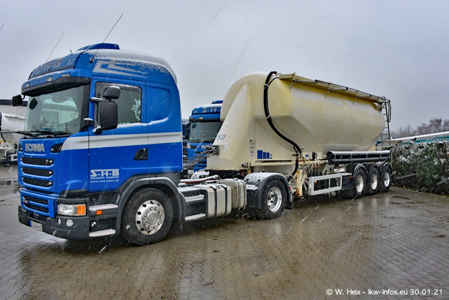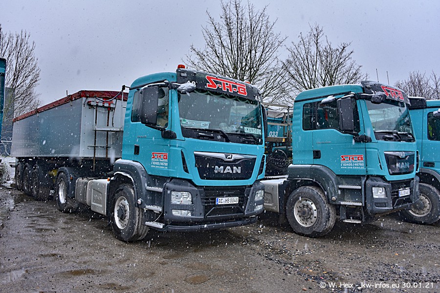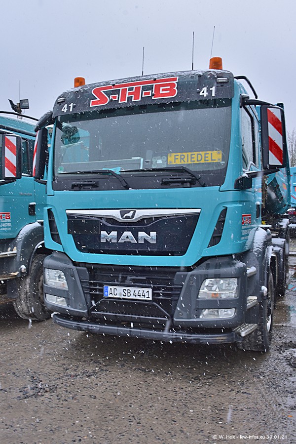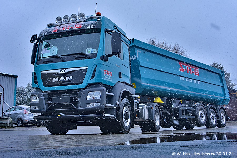 Auf dieser Fototour bin ich vom Winterwetter mit Schneefall überrascht worden. Aber trotzdem sind viele schöne Bilder entstanden, auch wenn es nass und dunkel war. Die ersten beiden von insgesamt sieben MAN TGS (alte Baureihe) standen auf dem Hof. In den nächsten Tagen kommen dann die "restlichen". Dazu gibt es auch sieben neue Kippauflieger. Alle neuen Fahrzeuge ersten alte. Wenn alle neuen LKW da sind, werde ich die Firma SHB bei besserem Wetter nochmal besuchen.