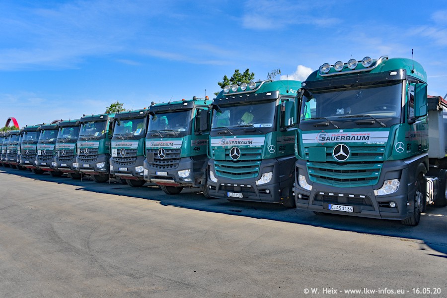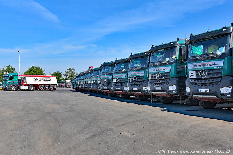 Dieser Besuch war kombiniert mit dem zweiten großen Fotoshooting nach dem ersten im Juni 2018 (siehe Teil 6). Vor und nach dem Fotoshooting habe ich den kompletten Fuhrpark fotografiert. Das Team von Sauerbaum hatte sich am Freitag bis abends 22:00 Uhr (!!) die Zeit genommen, alle LKW nach Hersteller und Baureihe auf dem Hof nebeneinander zu parken. Sowas erlebt man sehr selten! Nach dem Fotoshooting waren auch die Fahrer/LKW zurück, die am Samstag noch arbeiten mussten. Insgesamt gibt es inwzischen vier neue Mercedes-Benz New Actros 4, weitere neue LKW werden im Laufe des Jahres noch kommen.