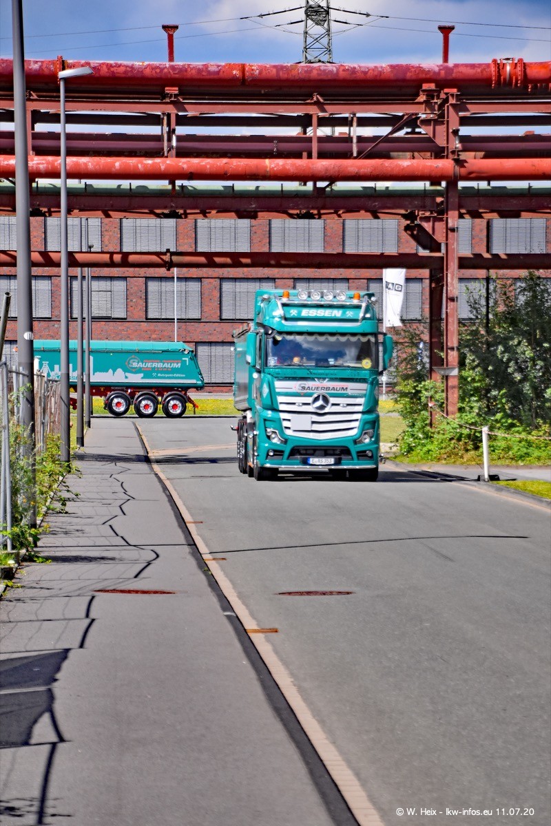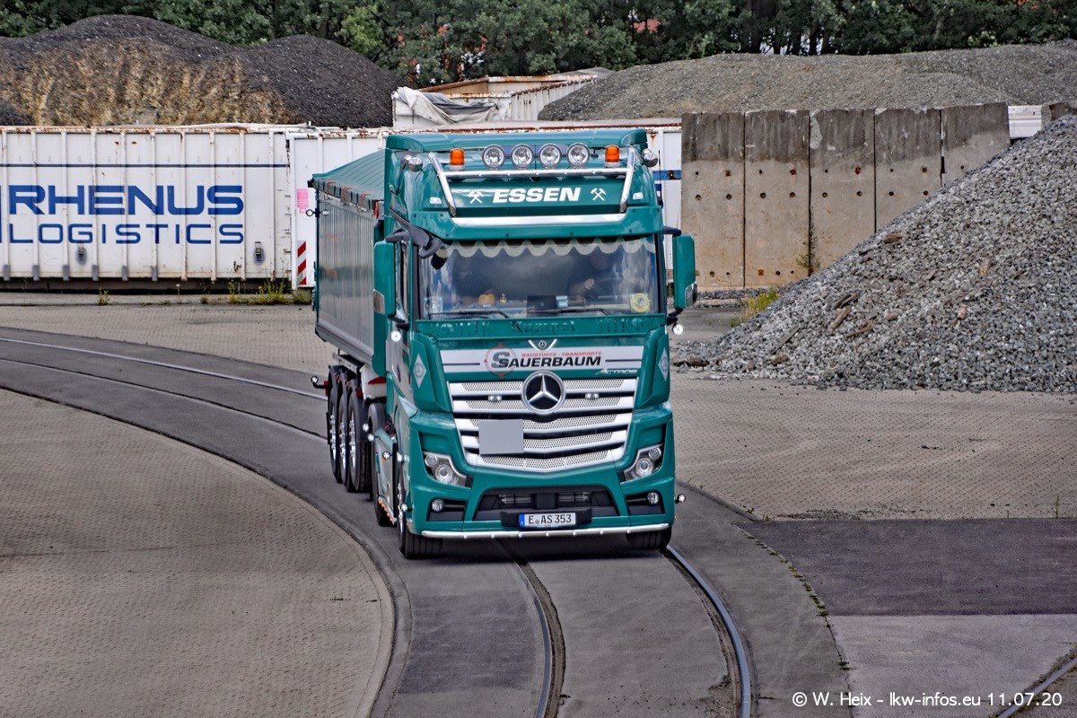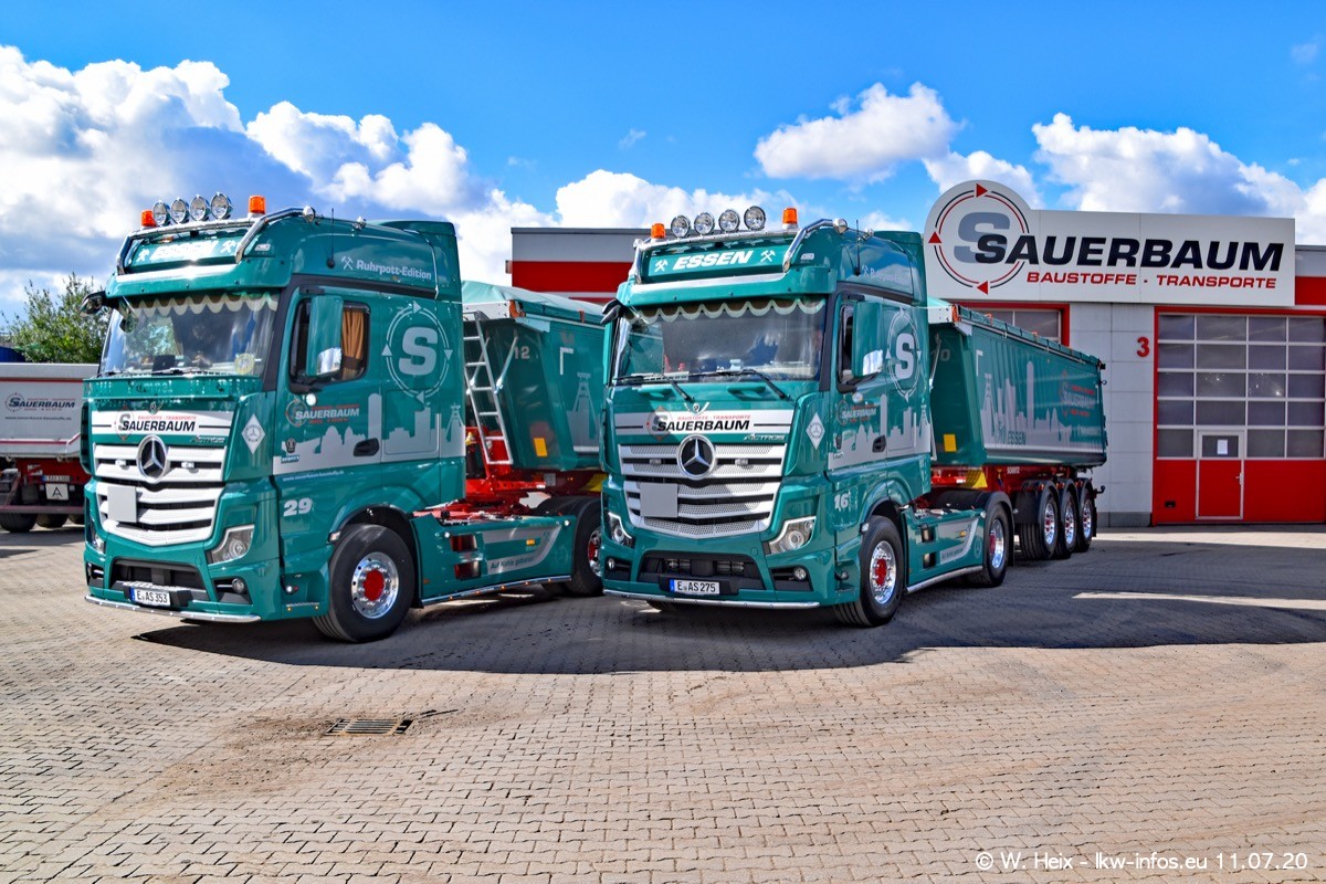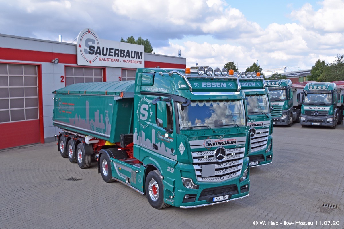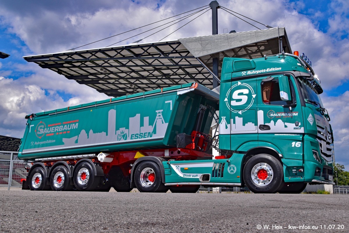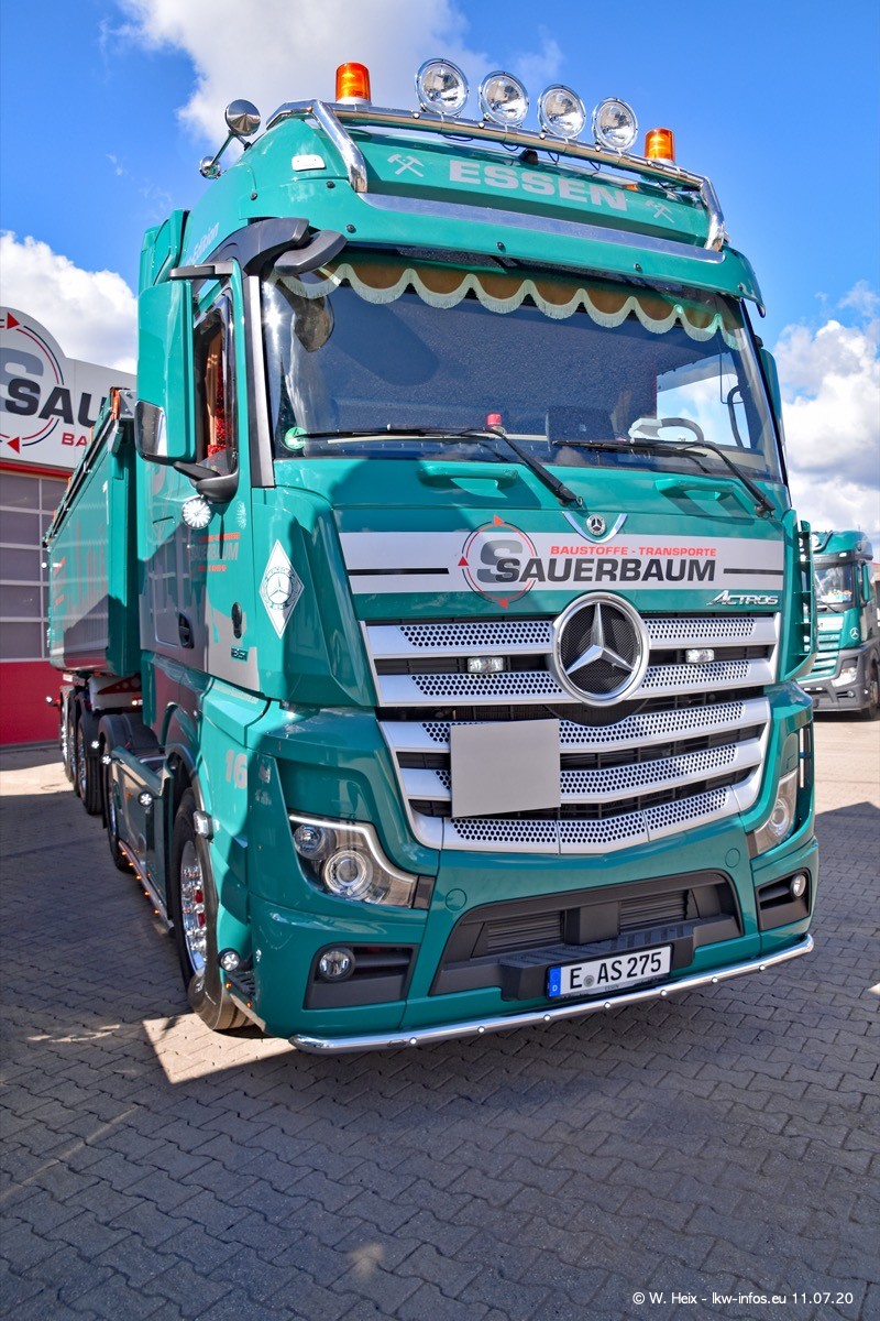 Am 11. Juli hatte mich die Firma Sauerbaum erneut zu einem Fotoshooting eingeladen. Ab Montag werden zwei besondere neue Mercedes-Benz Actros 4 auf den Straßen Europas unterwegs sein. Bei den beiden Actros handelt sich um das neue Modell, allerdings mit Außenspiegel. Beide haben einen 510 PS starken Motor und sind komplett ausgestattet. Die "Ruhrpott Edition Sauerbaum" soll die Heimatverbundenheit zur Stadt Essen dokumentieren. Von außen sind beide Fahrzeuge aufwändig gestaltet, komplett (samt der neuen Schmitz-Cargobull Auflieger) in grün lackiert und mit viel Zubehör (Lampen etc.) versehen. Dieses Fotoshooting wurde ausschießlich mit diesen beiden neuen LKW gemacht und zwar an passenden und bekannten Plätzen in Essen: auf dem Gelände der Zeche Zollverein (UNESCO Weltkuturerbe), vor dem Fussballstadion und natürlich wieder im Stadthafen.
