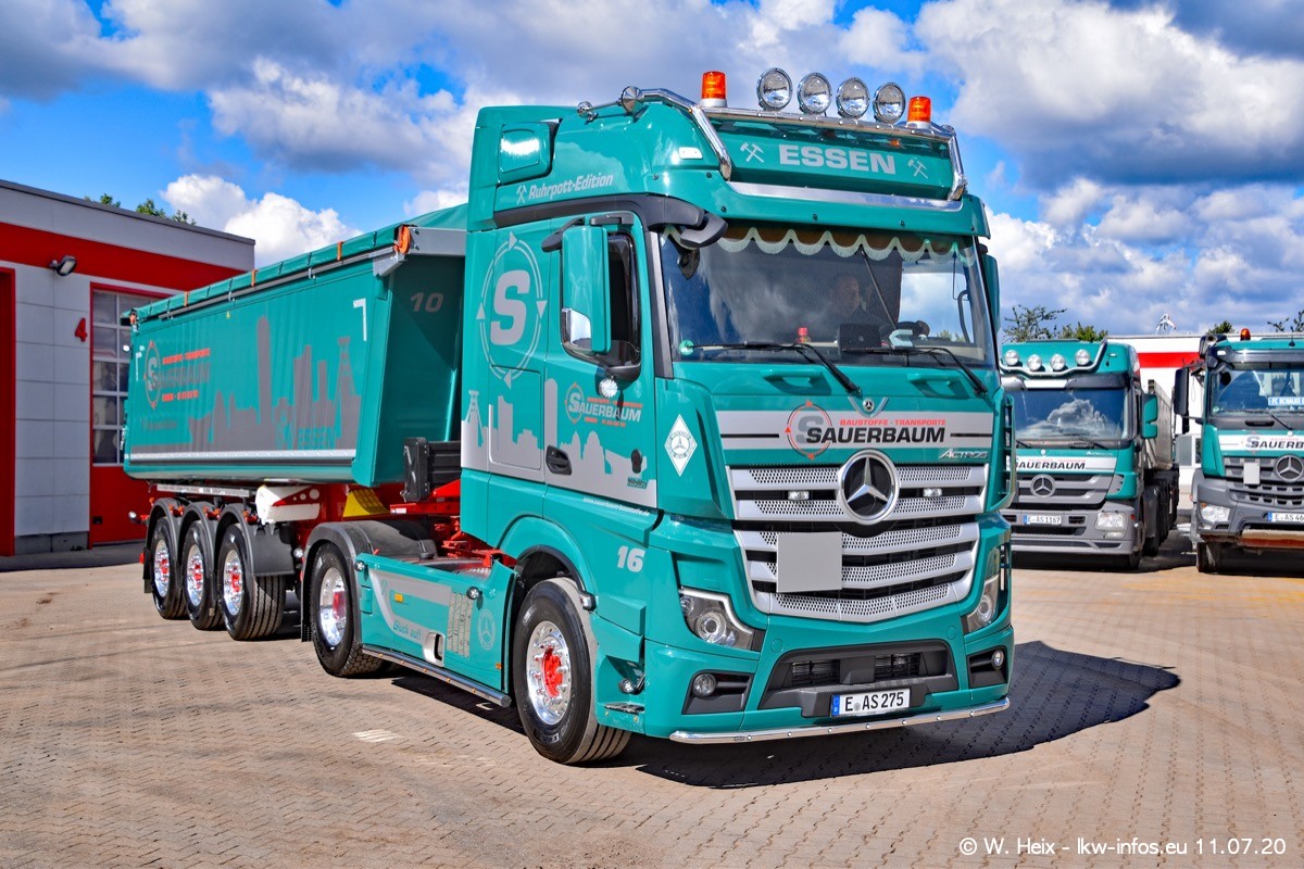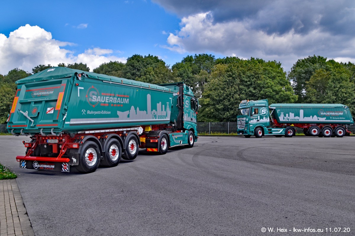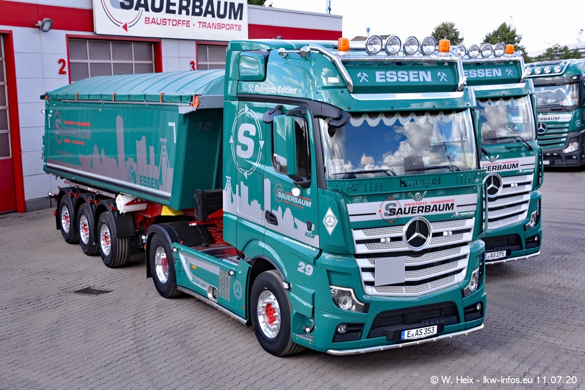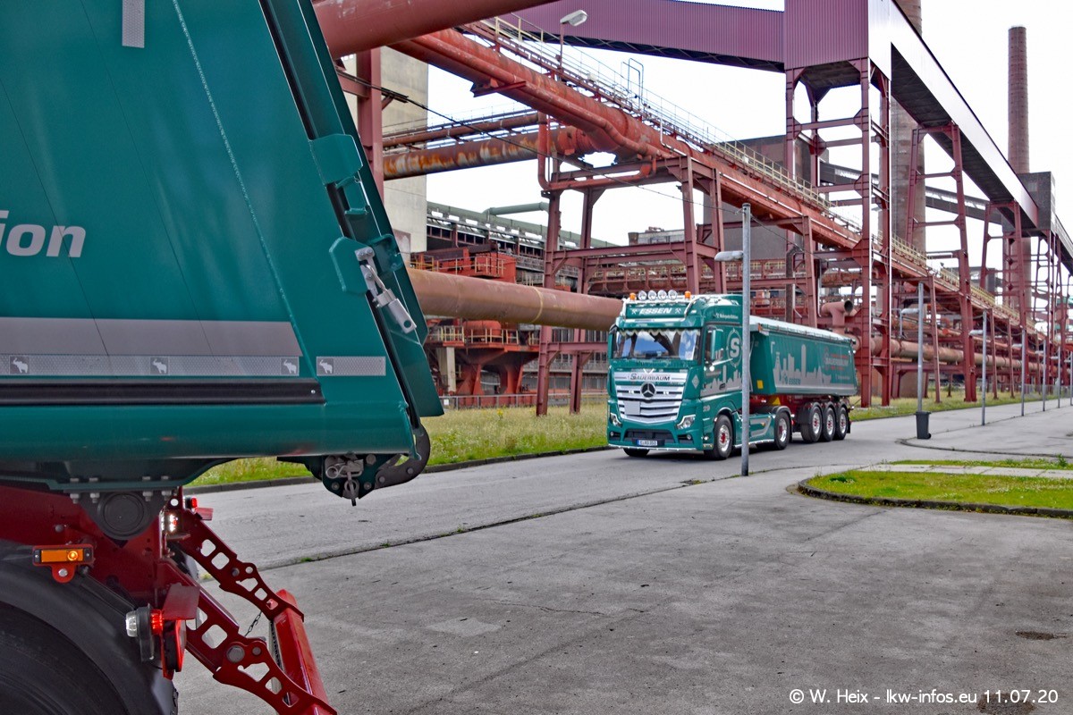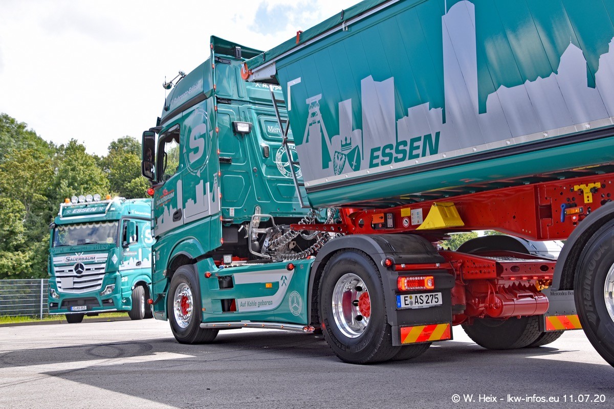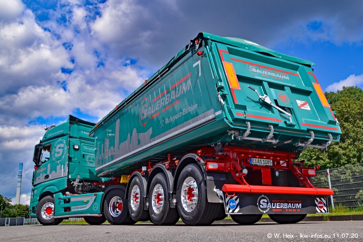 Am 11. Juli hatte mich die Firma Sauerbaum erneut zu einem Fotoshooting eingeladen. Ab Montag werden zwei besondere neue Mercedes-Benz Actros 4 auf den Straßen Europas unterwegs sein. Bei den beiden Actros handelt sich um das neue Modell, allerdings mit Außenspiegel. Beide haben einen 510 PS starken Motor und sind komplett ausgestattet. Die "Ruhrpott Edition Sauerbaum" soll die Heimatverbundenheit zur Stadt Essen dokumentieren. Von außen sind beide Fahrzeuge aufwändig gestaltet, komplett (samt der neuen Schmitz-Cargobull Auflieger) in grün lackiert und mit viel Zubehör (Lampen etc.) versehen. Dieses Fotoshooting wurde ausschießlich mit diesen beiden neuen LKW gemacht und zwar an passenden und bekannten Plätzen in Essen: auf dem Gelände der Zeche Zollverein (UNESCO Weltkuturerbe), vor dem Fussballstadion und natürlich wieder im Stadthafen.