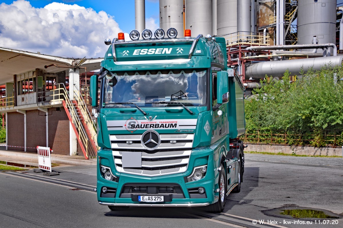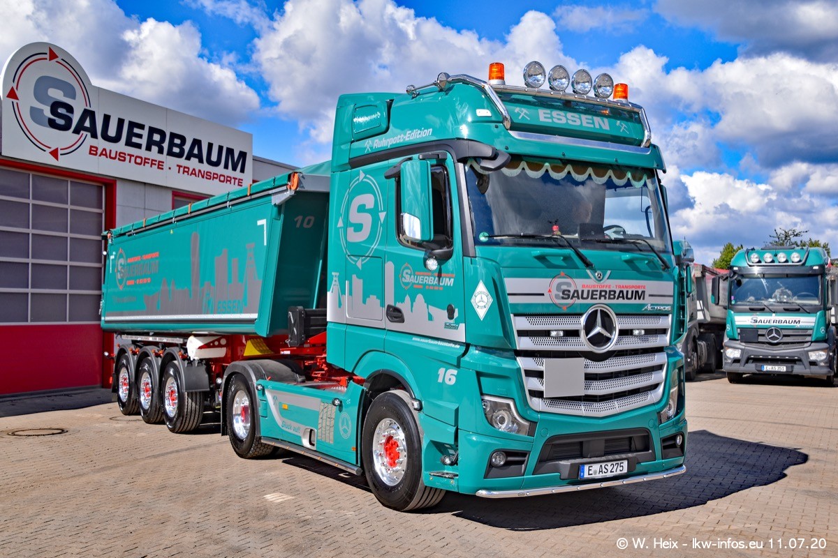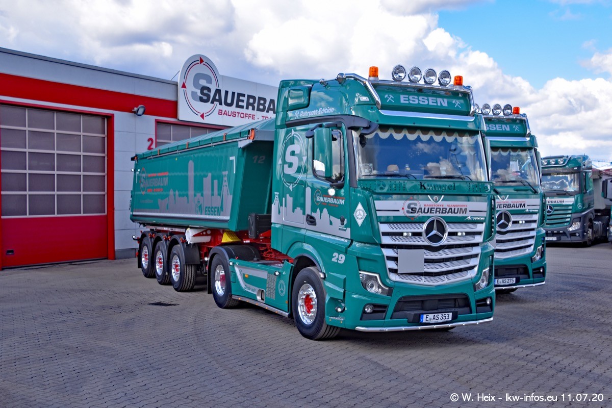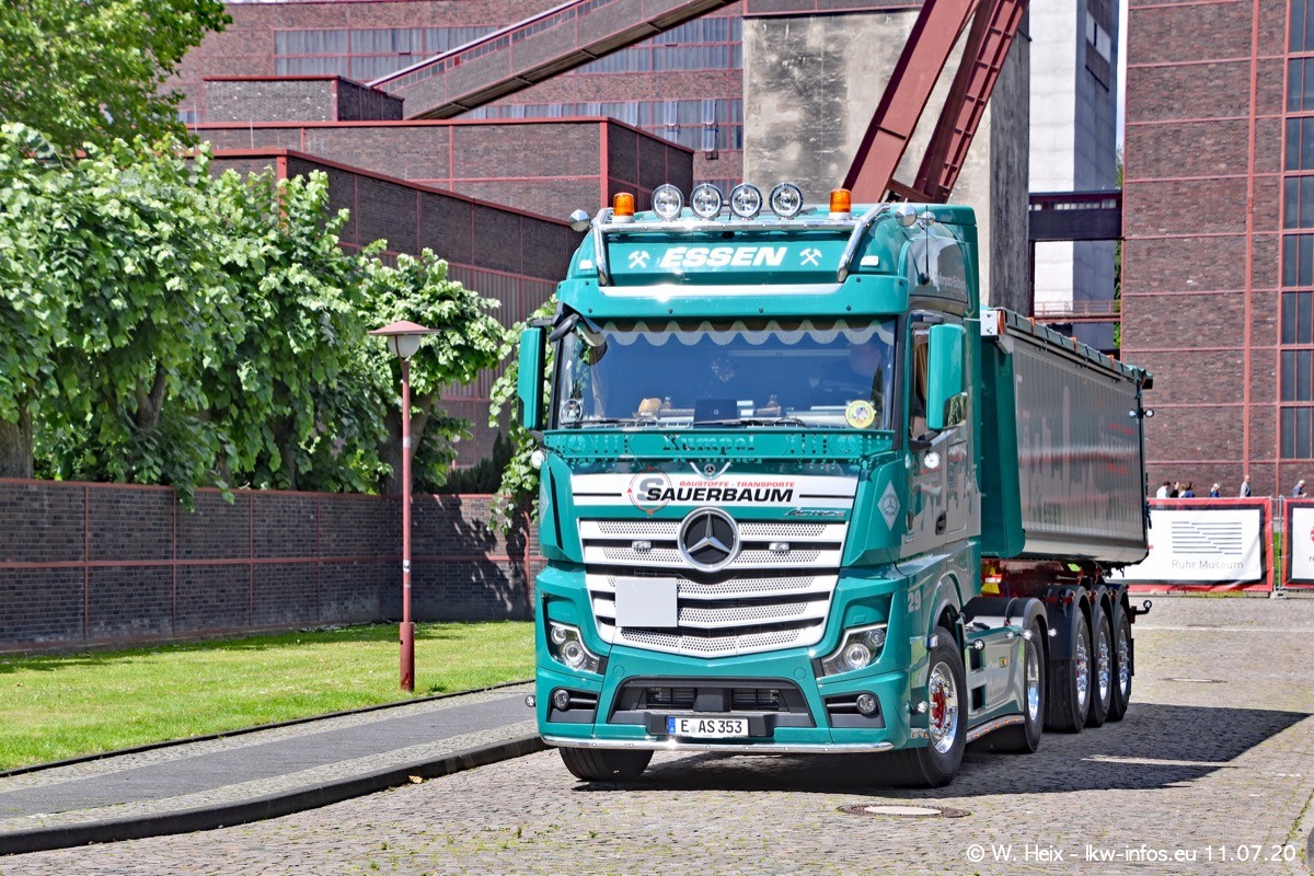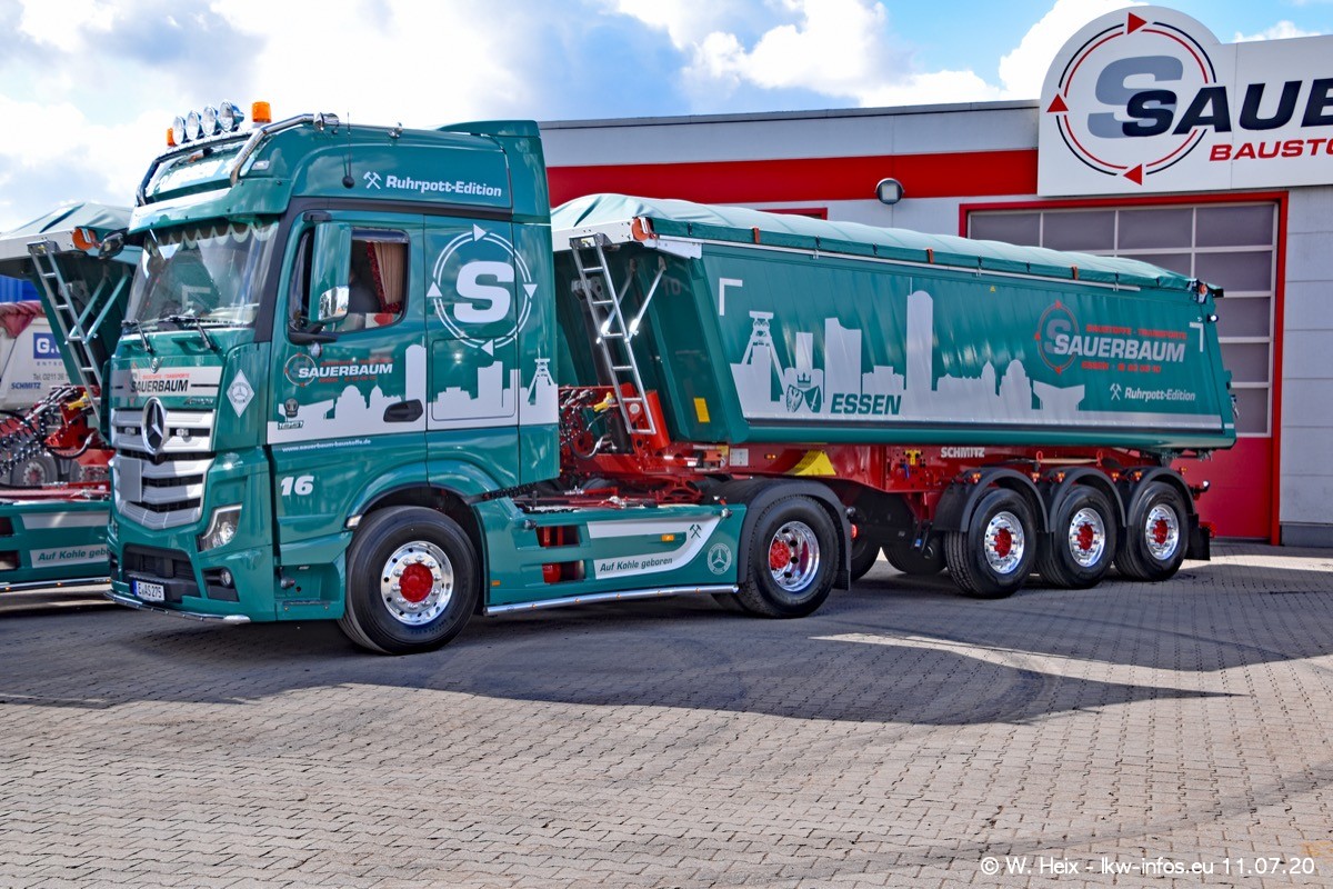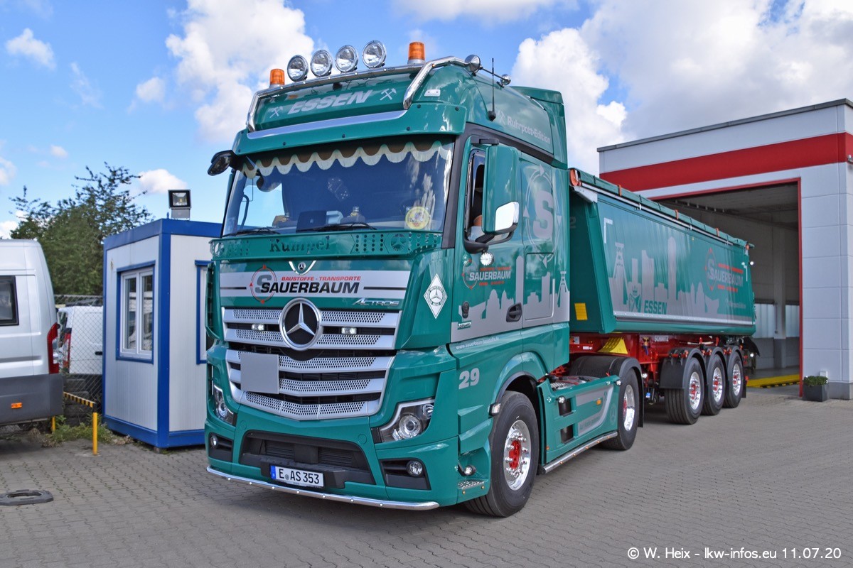 Am 11. Juli hatte mich die Firma Sauerbaum erneut zu einem Fotoshooting eingeladen. Ab Montag werden zwei besondere neue Mercedes-Benz Actros 4 auf den Straßen Europas unterwegs sein. Bei den beiden Actros handelt sich um das neue Modell, allerdings mit Außenspiegel. Beide haben einen 510 PS starken Motor und sind komplett ausgestattet. Die "Ruhrpott Edition Sauerbaum" soll die Heimatverbundenheit zur Stadt Essen dokumentieren. Von außen sind beide Fahrzeuge aufwändig gestaltet, komplett (samt der neuen Schmitz-Cargobull Auflieger) in grün lackiert und mit viel Zubehör (Lampen etc.) versehen. Dieses Fotoshooting wurde ausschießlich mit diesen beiden neuen LKW gemacht und zwar an passenden und bekannten Plätzen in Essen: auf dem Gelände der Zeche Zollverein (UNESCO Weltkuturerbe), vor dem Fussballstadion und natürlich wieder im Stadthafen.