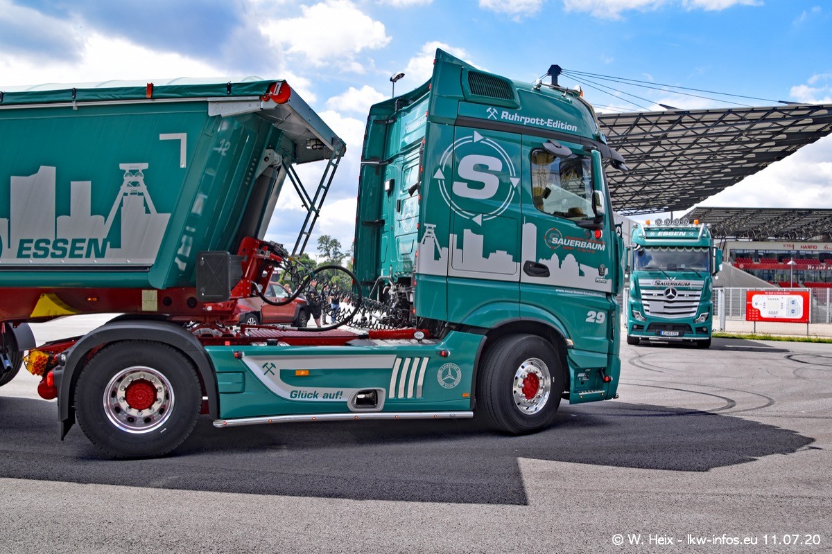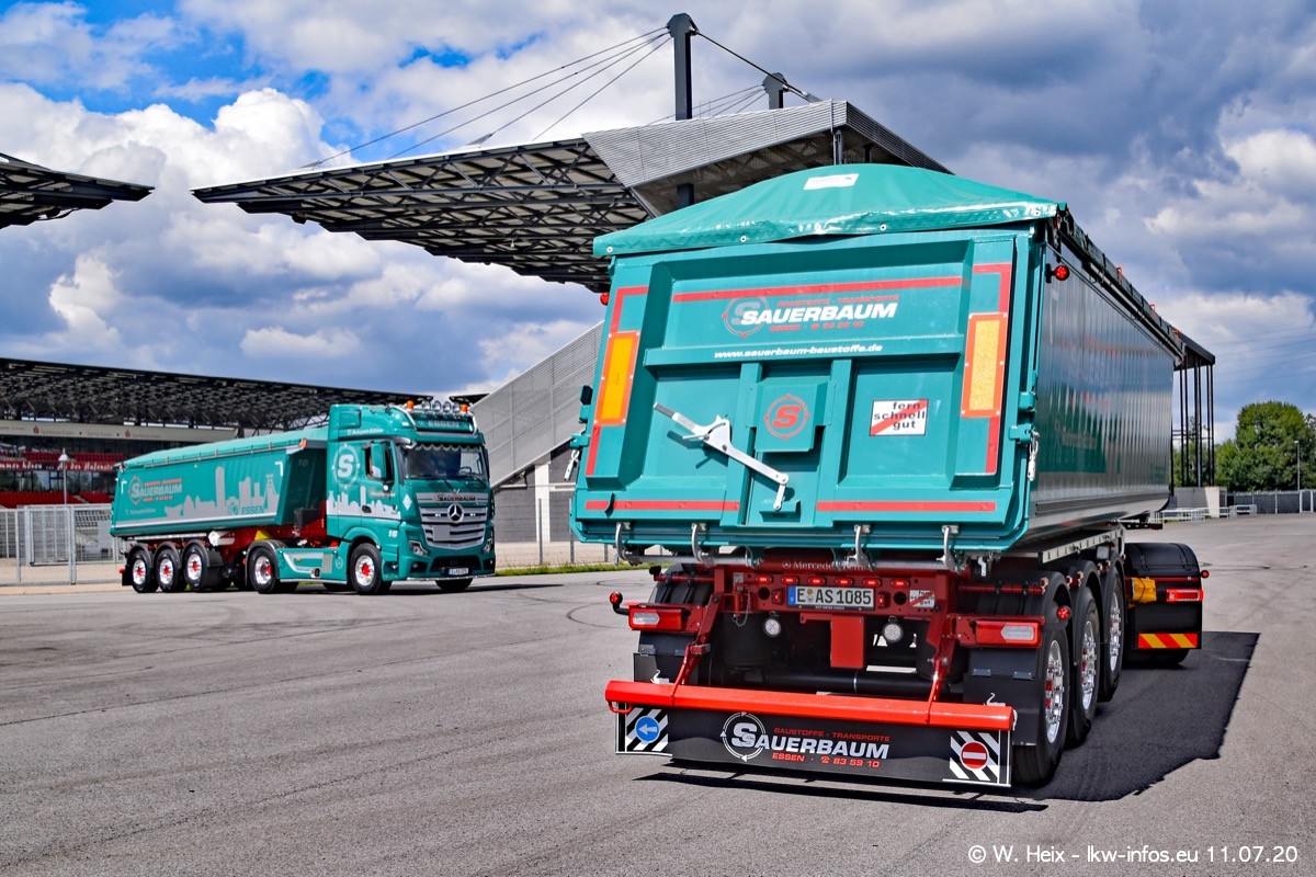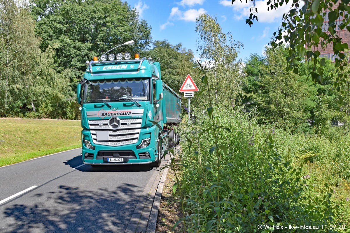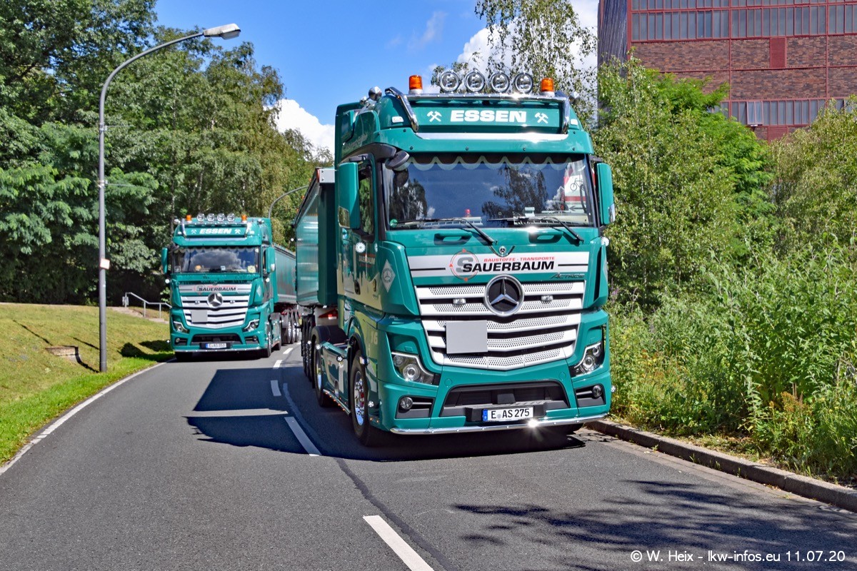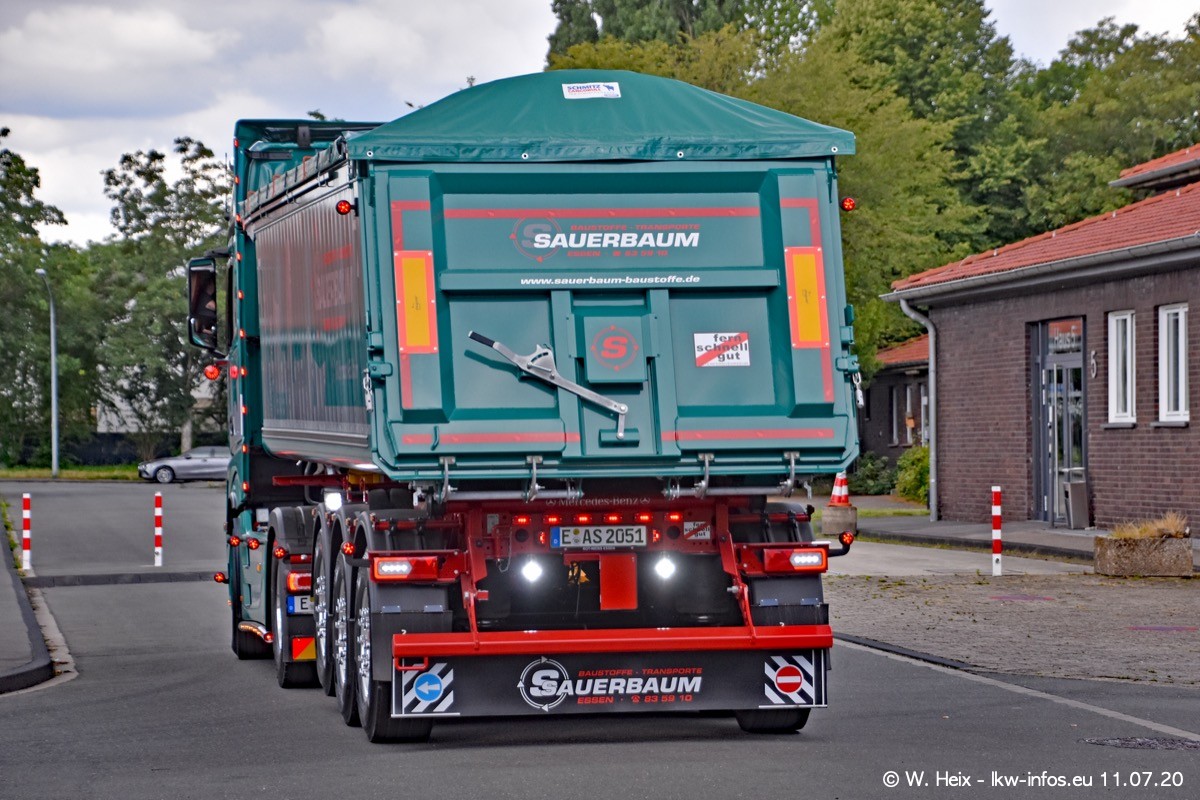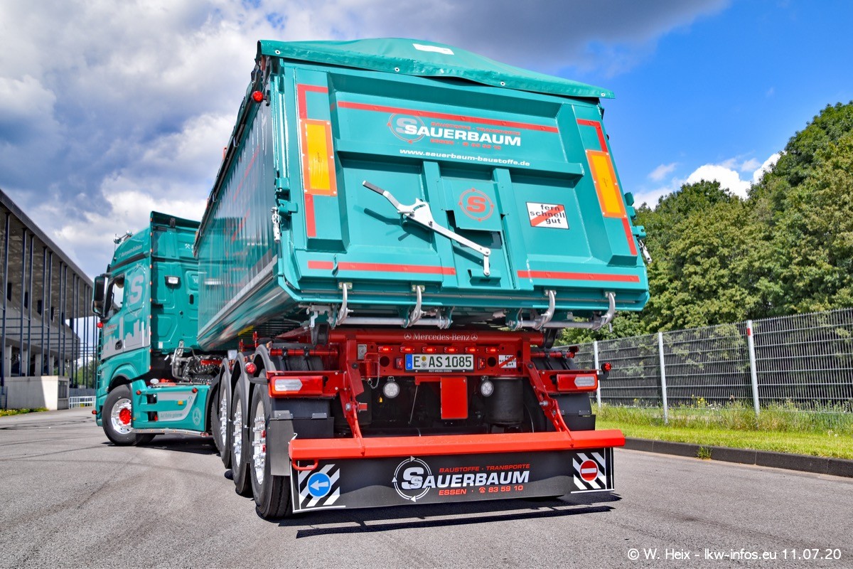 Am 11. Juli hatte mich die Firma Sauerbaum erneut zu einem Fotoshooting eingeladen. Ab Montag werden zwei besondere neue Mercedes-Benz Actros 4 auf den Straßen Europas unterwegs sein. Bei den beiden Actros handelt sich um das neue Modell, allerdings mit Außenspiegel. Beide haben einen 510 PS starken Motor und sind komplett ausgestattet. Die "Ruhrpott Edition Sauerbaum" soll die Heimatverbundenheit zur Stadt Essen dokumentieren. Von außen sind beide Fahrzeuge aufwändig gestaltet, komplett (samt der neuen Schmitz-Cargobull Auflieger) in grün lackiert und mit viel Zubehör (Lampen etc.) versehen. Dieses Fotoshooting wurde ausschießlich mit diesen beiden neuen LKW gemacht und zwar an passenden und bekannten Plätzen in Essen: auf dem Gelände der Zeche Zollverein (UNESCO Weltkuturerbe), vor dem Fussballstadion und natürlich wieder im Stadthafen.