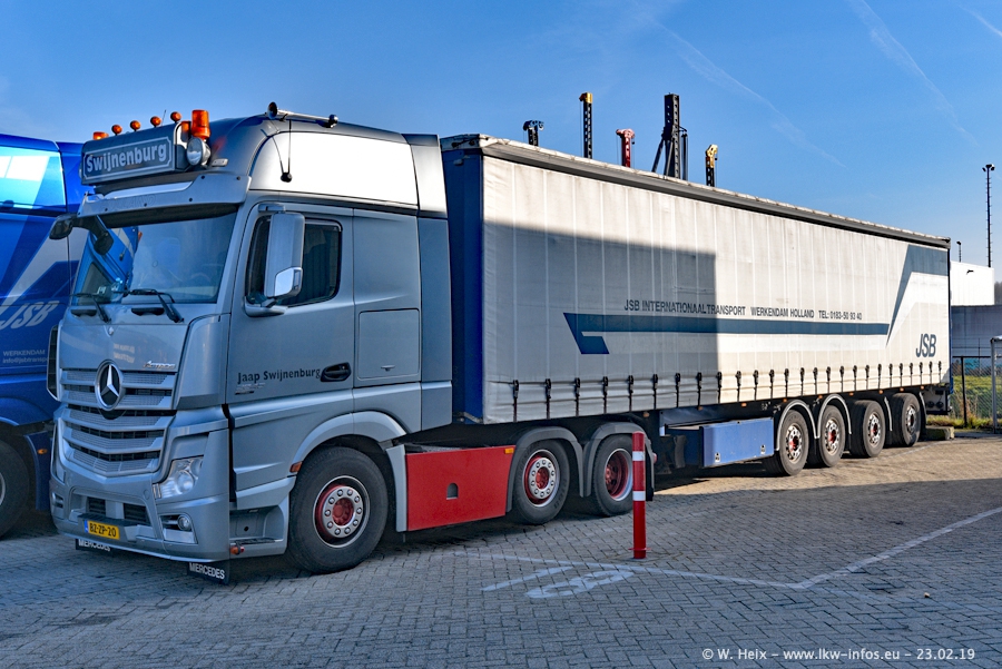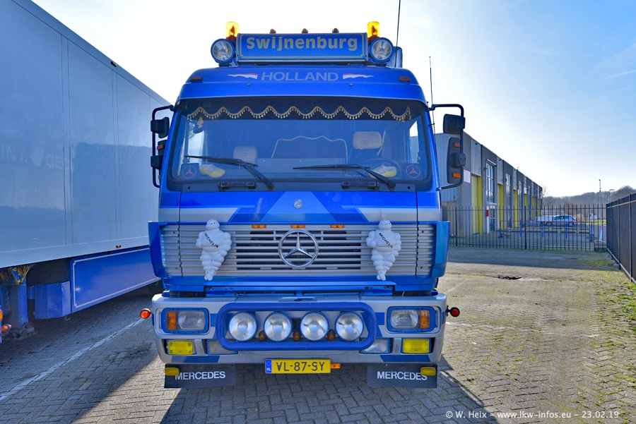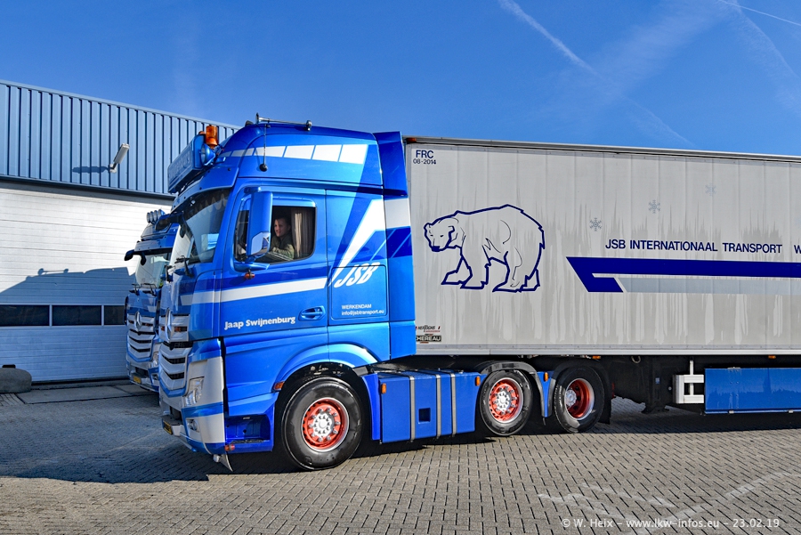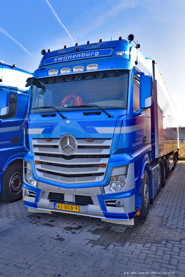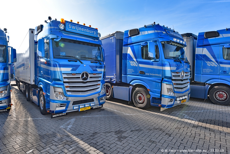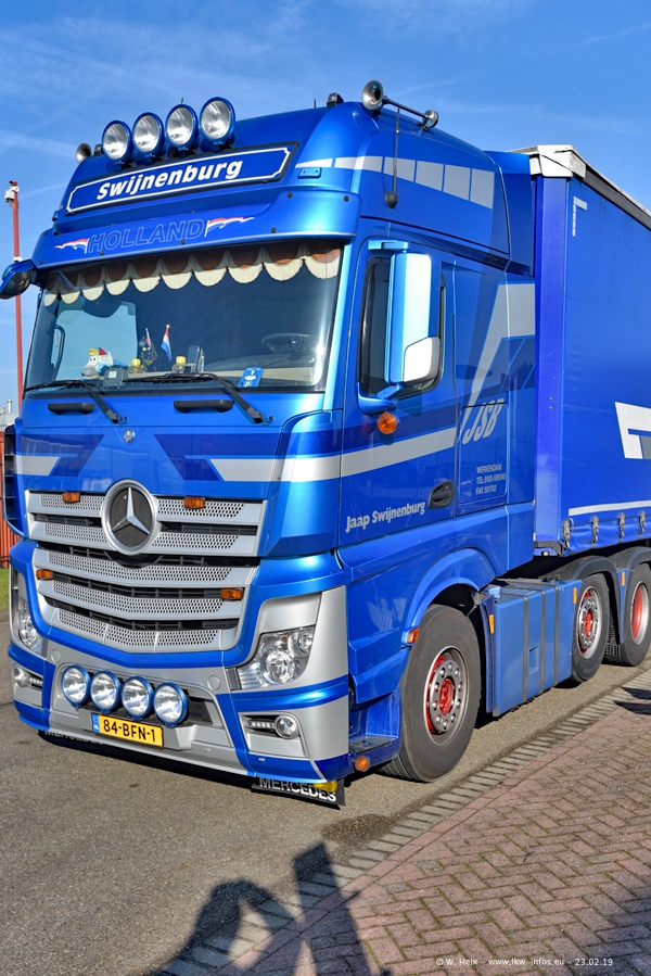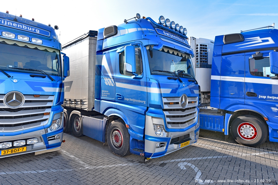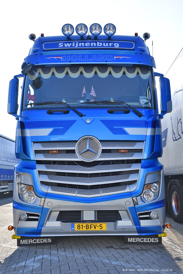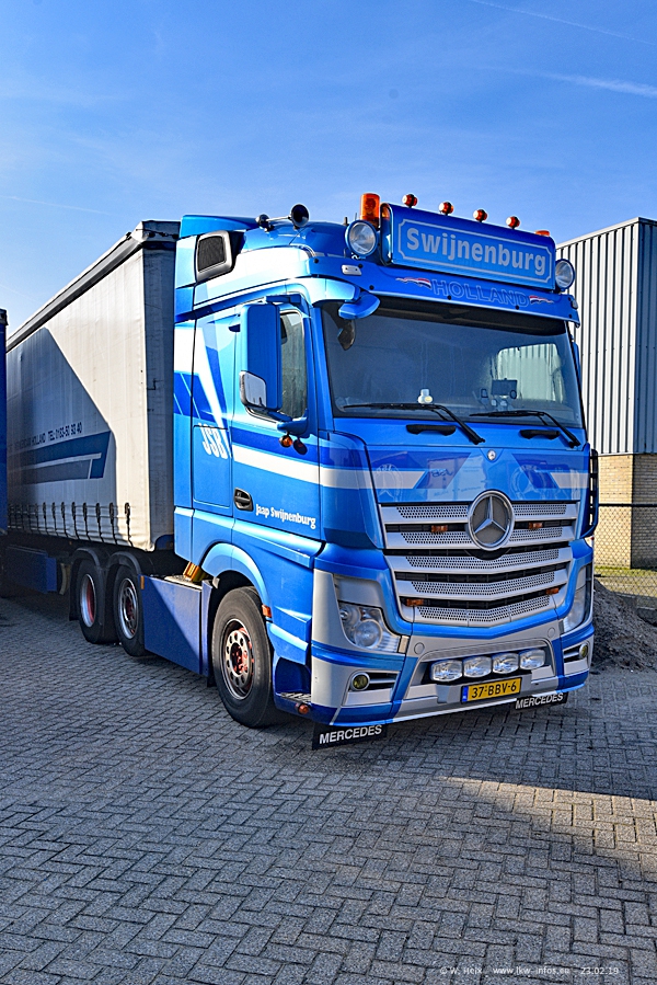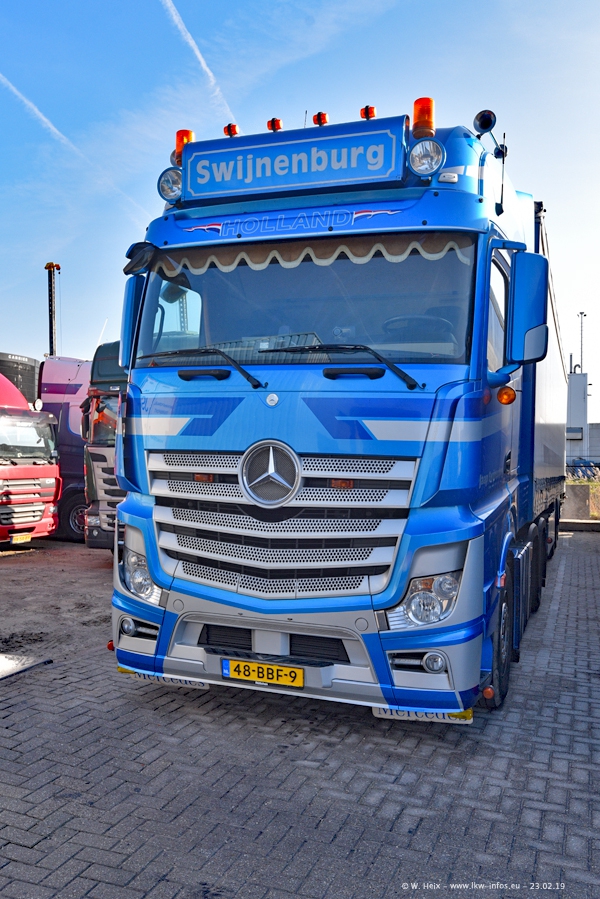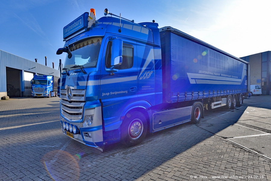 Mein letzter Besuch bei JSB Swijnenburg war im Jahr 2014. In den letzten fünf Jahren hat sich entsprechend viel verändert im Fuhrpark, der aus ca. 30 LKW besetht. Das sind ausschließlich Zugmaschinen der Actros-Baureihe. Inzwischen sind das fast alles Actros 4. Dazu kommt noch ein SK 1948 der ersten Generation, der vor ca. 5-6 Jahren restauriert wurde. Ob diese Zugmaschine noch eingesetzt wird, weiß ich nicht. Der SK stand beim Besuch ganz vorne in der Reihe vor den ganzen Actros.