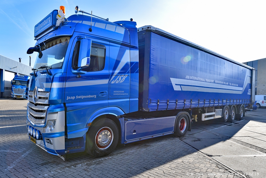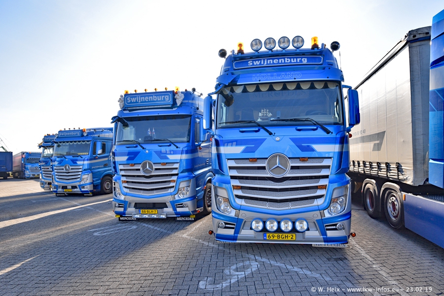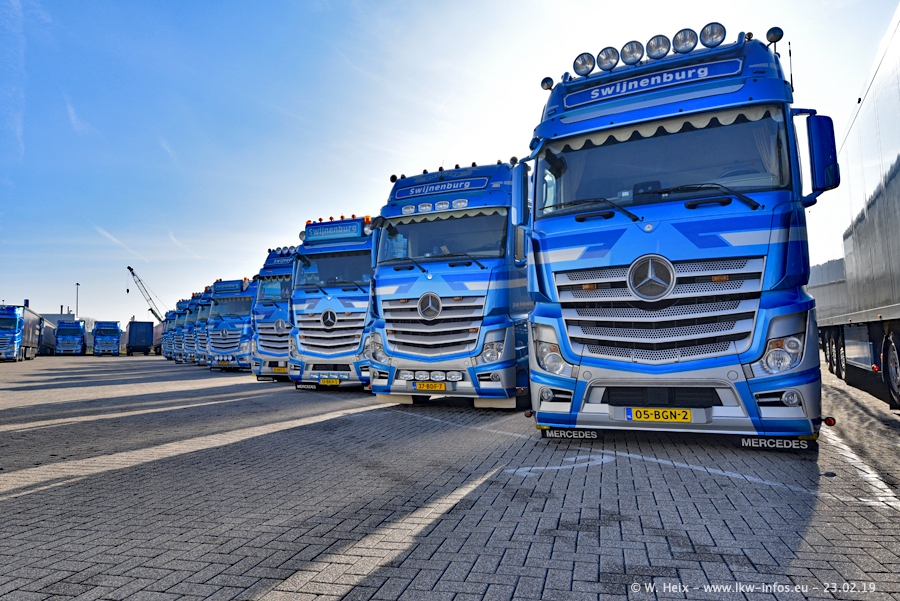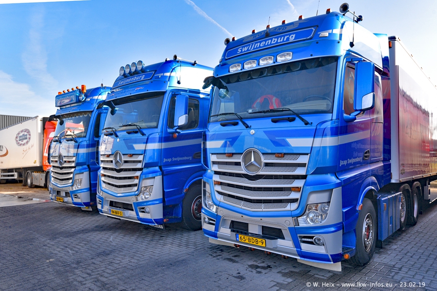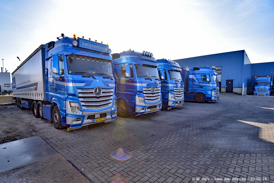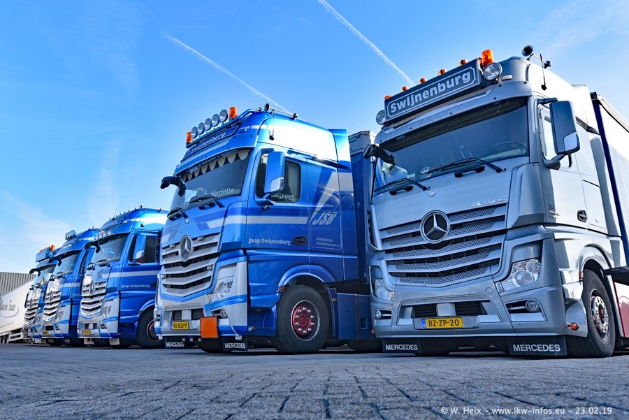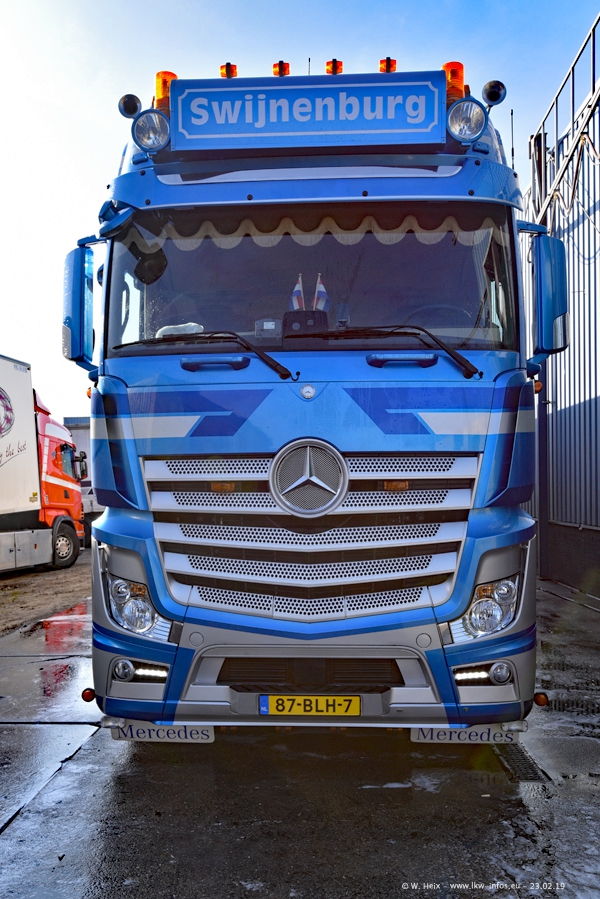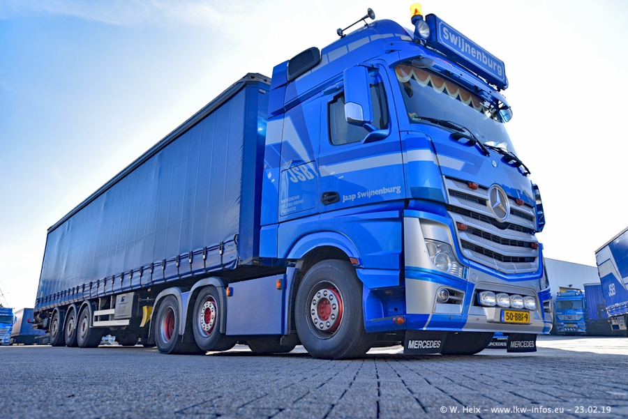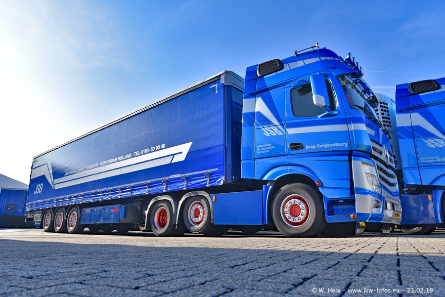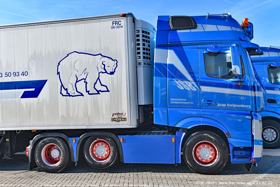 Mein letzter Besuch bei JSB Swijnenburg war im Jahr 2014. In den letzten fünf Jahren hat sich entsprechend viel verändert im Fuhrpark, der aus ca. 30 LKW besetht. Das sind ausschließlich Zugmaschinen der Actros-Baureihe. Inzwischen sind das fast alles Actros 4. Dazu kommt noch ein SK 1948 der ersten Generation, der vor ca. 5-6 Jahren restauriert wurde. Ob diese Zugmaschine noch eingesetzt wird, weiß ich nicht. Der SK stand beim Besuch ganz vorne in der Reihe vor den ganzen Actros.