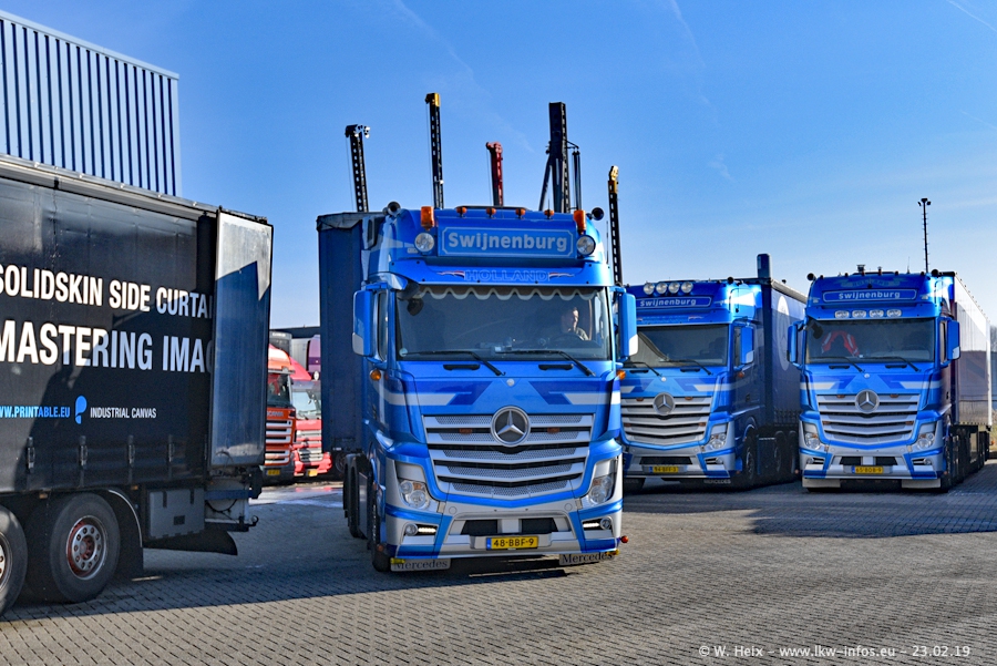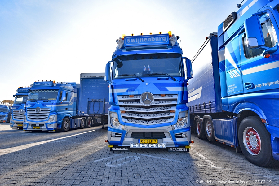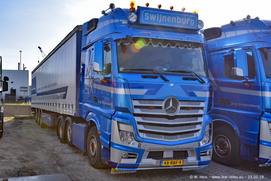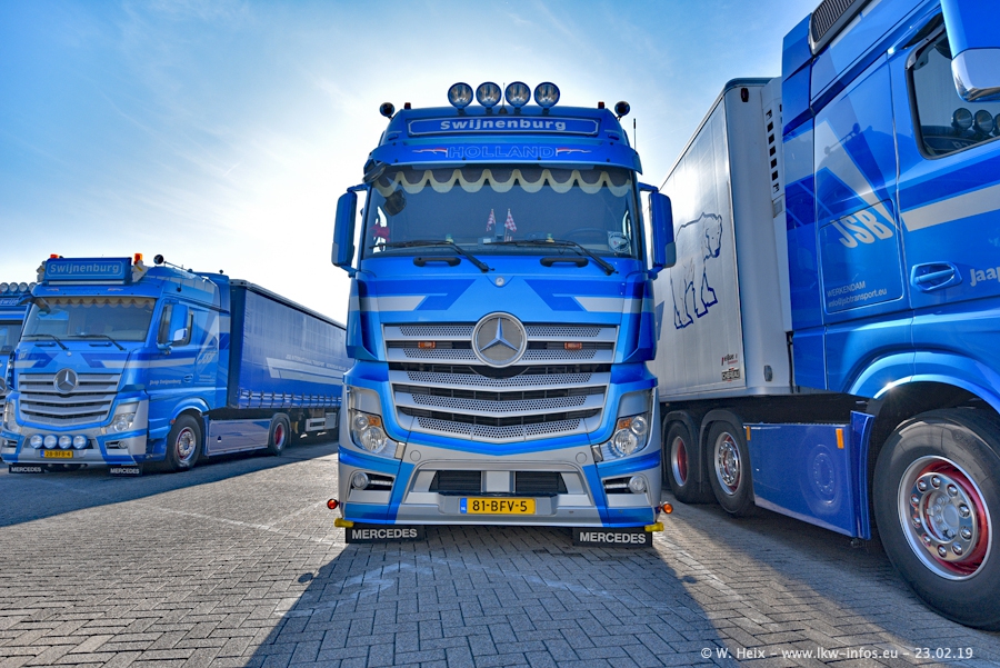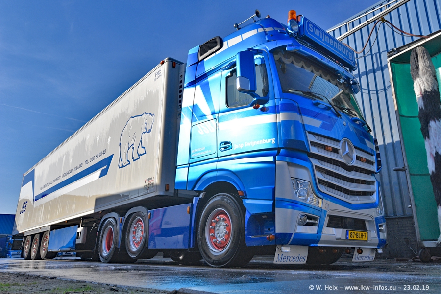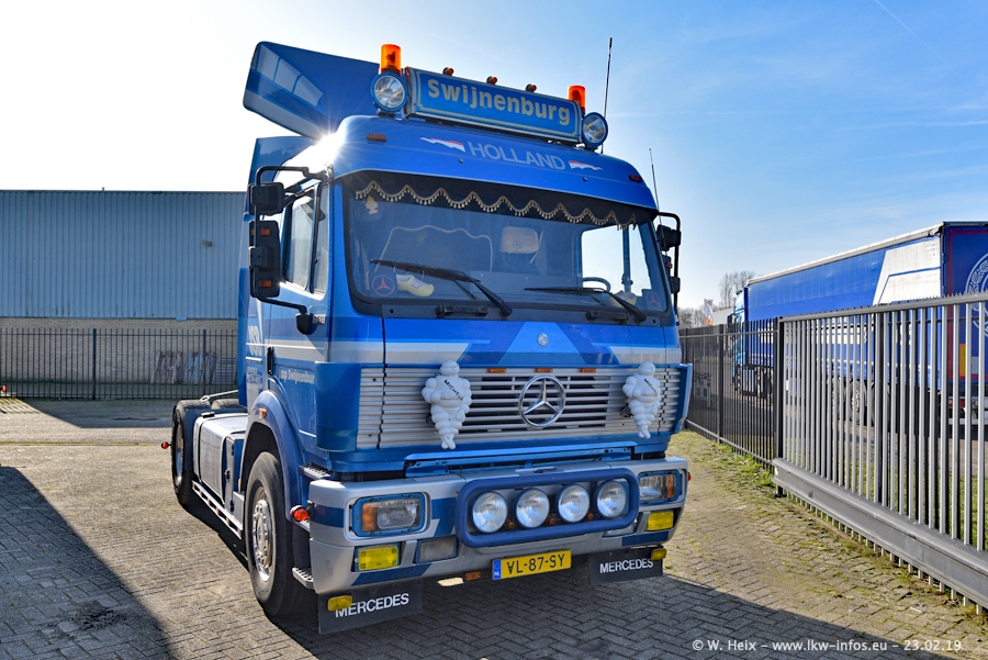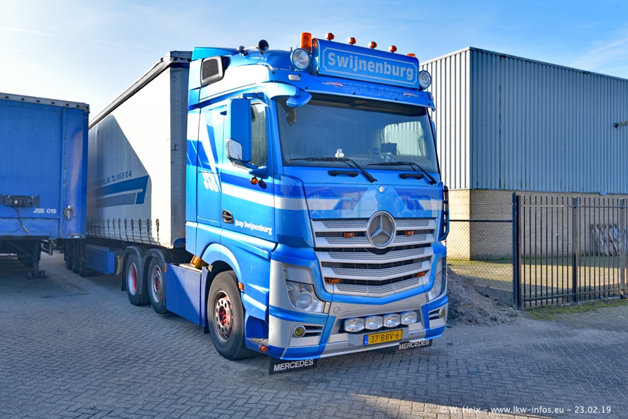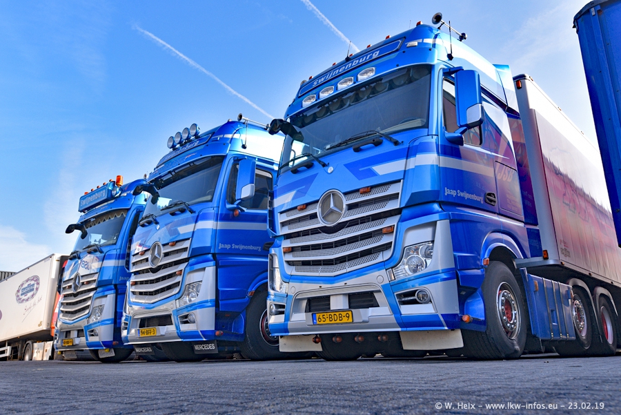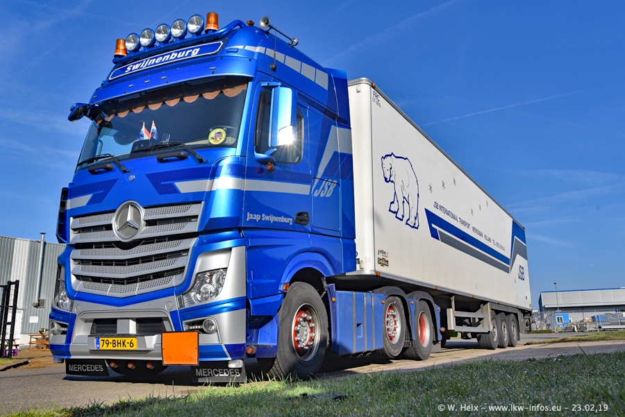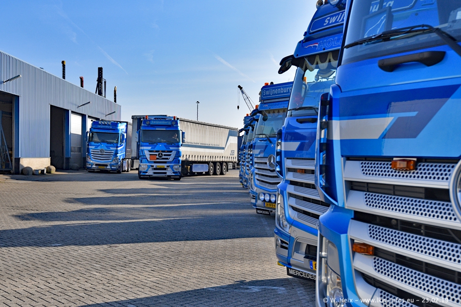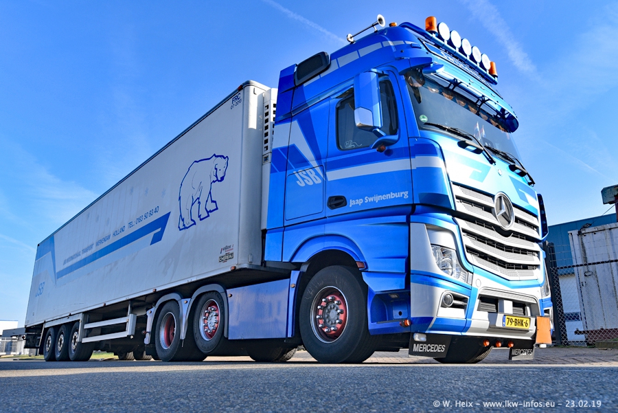 Mein letzter Besuch bei JSB Swijnenburg war im Jahr 2014. In den letzten fünf Jahren hat sich entsprechend viel verändert im Fuhrpark, der aus ca. 30 LKW besetht. Das sind ausschließlich Zugmaschinen der Actros-Baureihe. Inzwischen sind das fast alles Actros 4. Dazu kommt noch ein SK 1948 der ersten Generation, der vor ca. 5-6 Jahren restauriert wurde. Ob diese Zugmaschine noch eingesetzt wird, weiß ich nicht. Der SK stand beim Besuch ganz vorne in der Reihe vor den ganzen Actros.