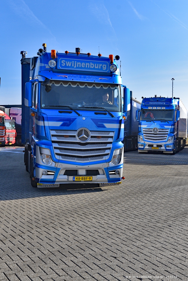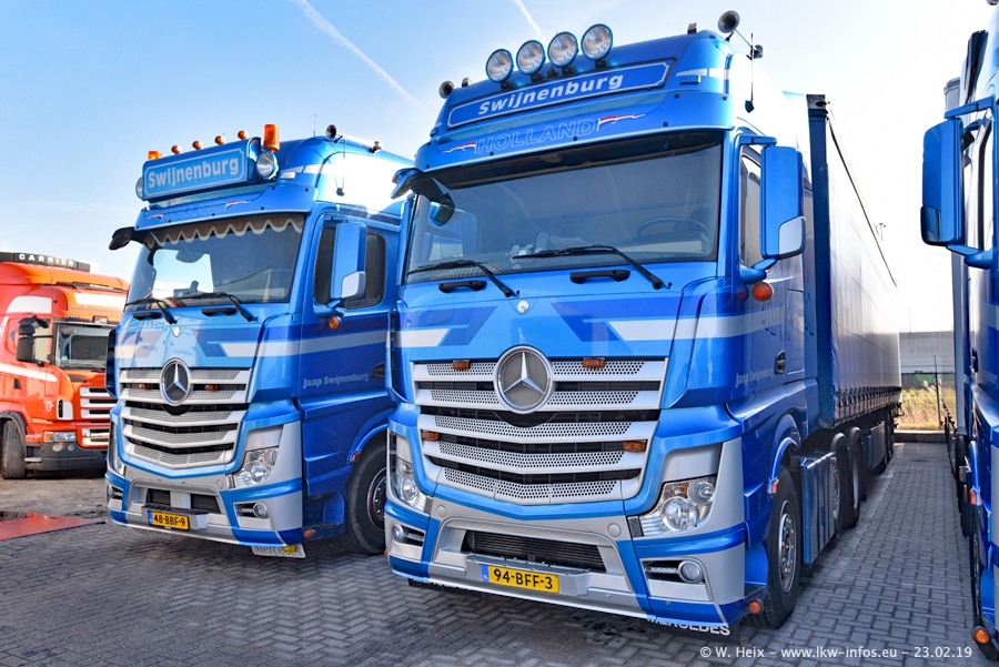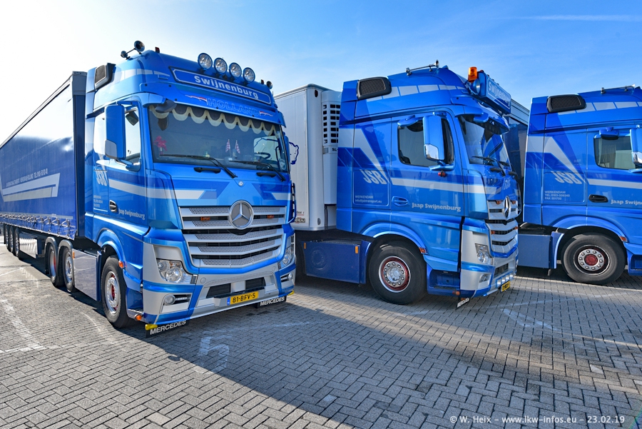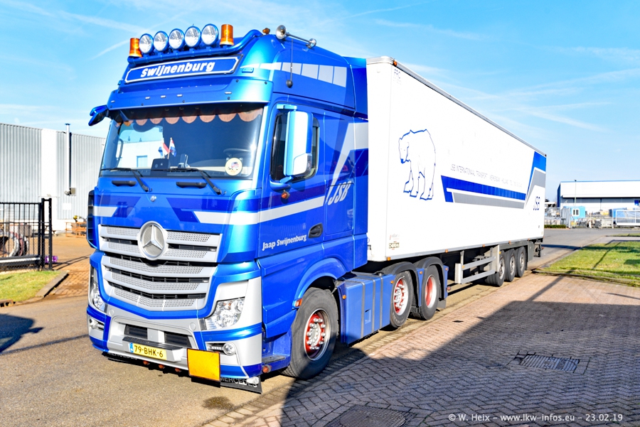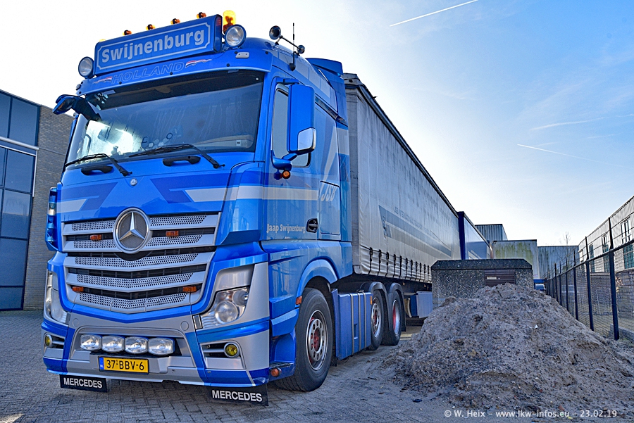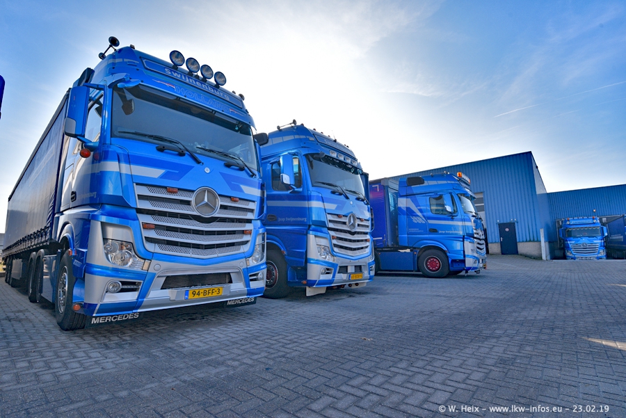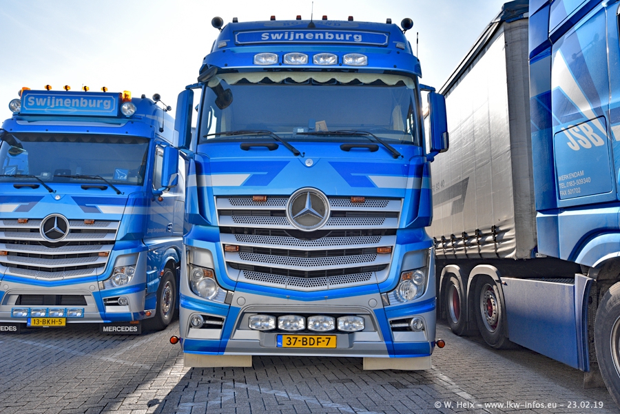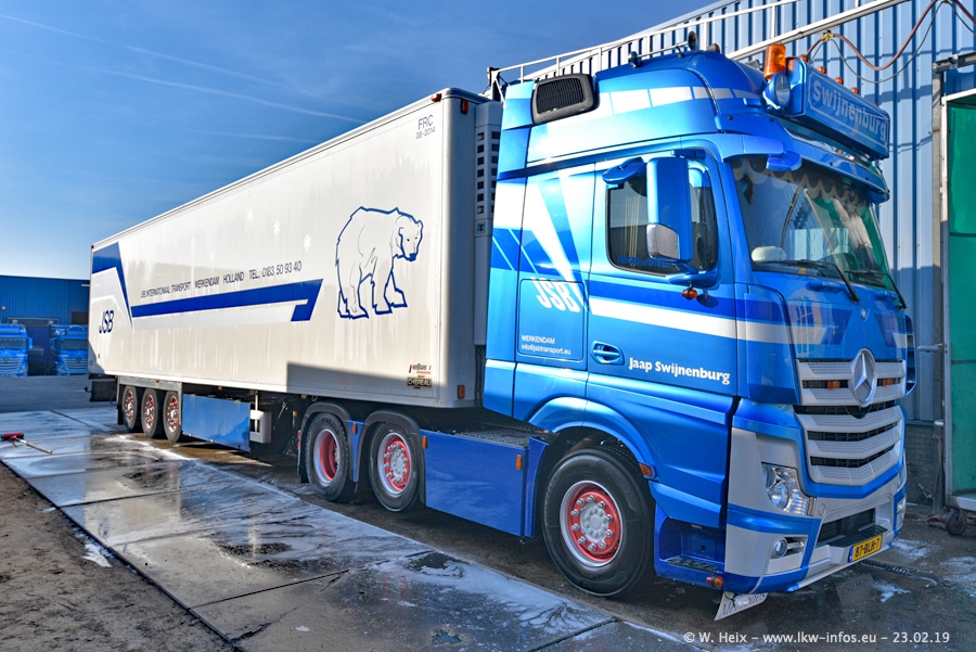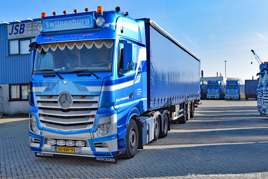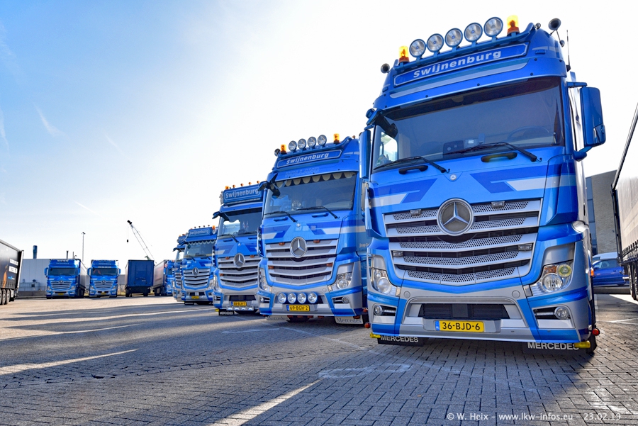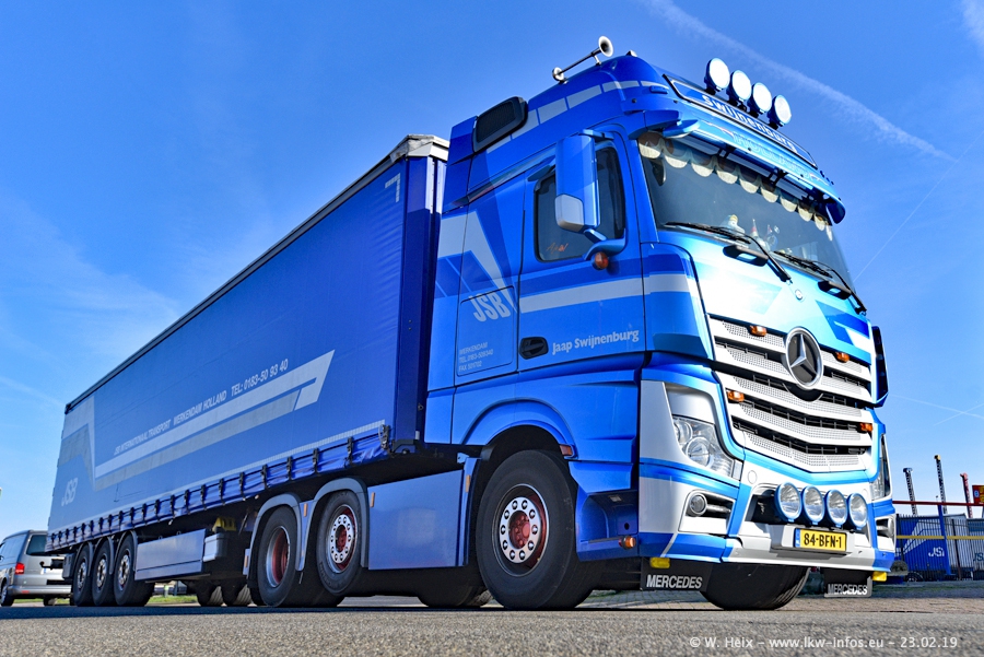 Mein letzter Besuch bei JSB Swijnenburg war im Jahr 2014. In den letzten fünf Jahren hat sich entsprechend viel verändert im Fuhrpark, der aus ca. 30 LKW besetht. Das sind ausschließlich Zugmaschinen der Actros-Baureihe. Inzwischen sind das fast alles Actros 4. Dazu kommt noch ein SK 1948 der ersten Generation, der vor ca. 5-6 Jahren restauriert wurde. Ob diese Zugmaschine noch eingesetzt wird, weiß ich nicht. Der SK stand beim Besuch ganz vorne in der Reihe vor den ganzen Actros.