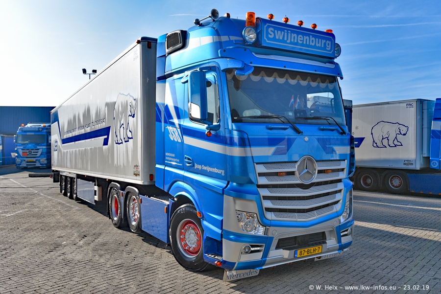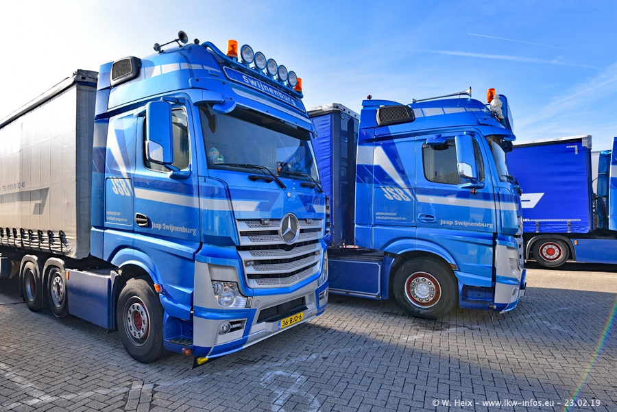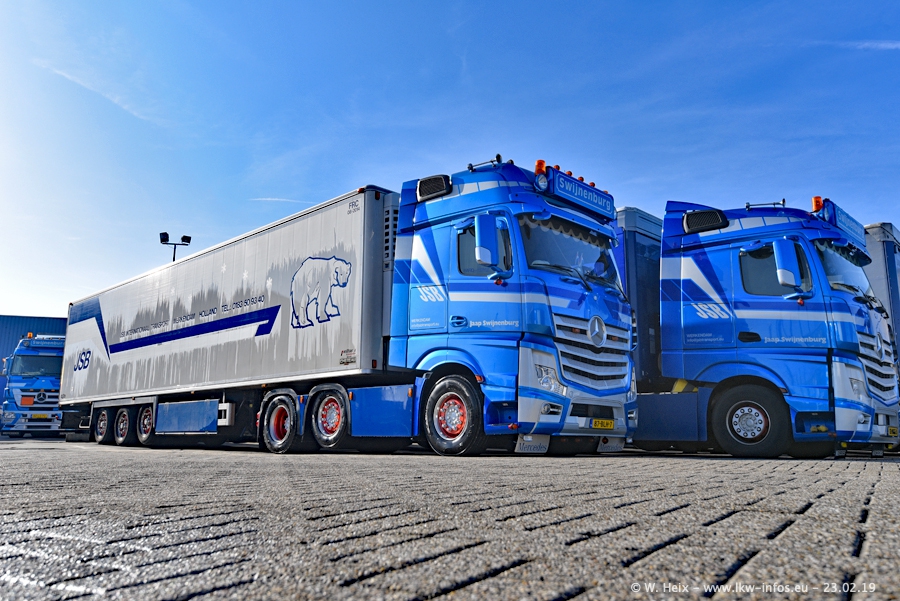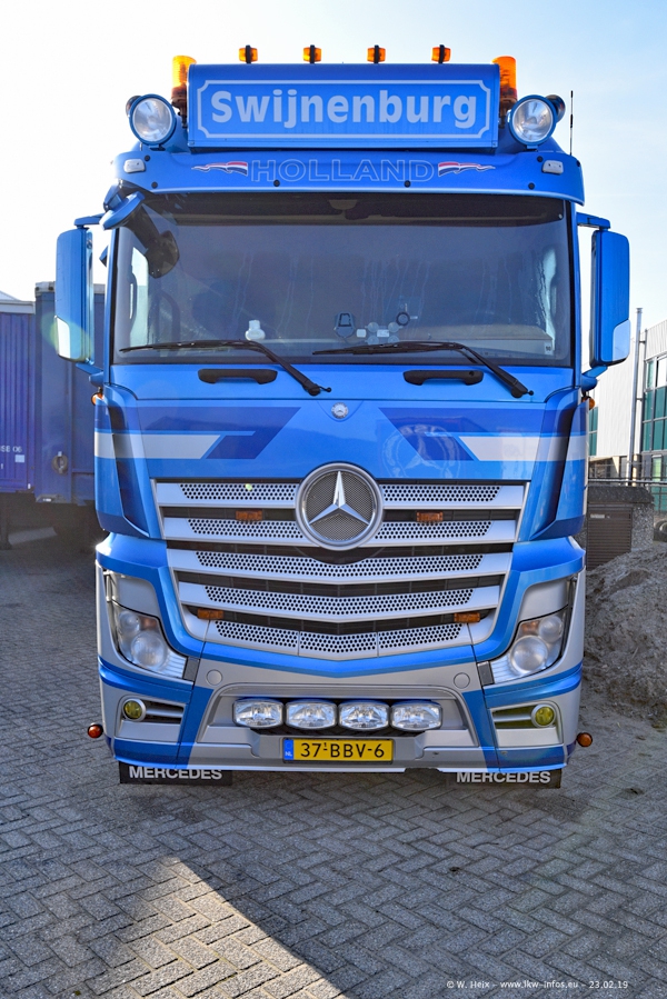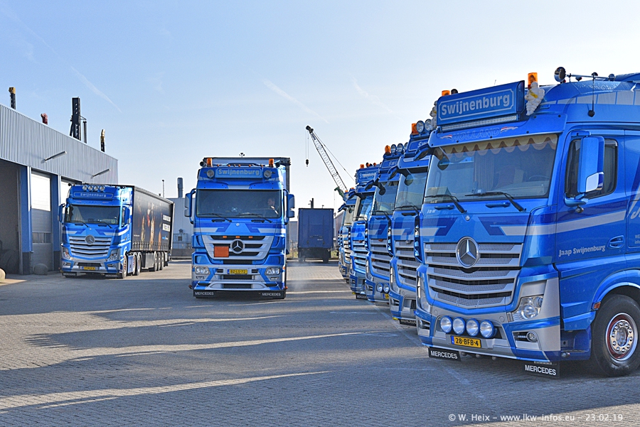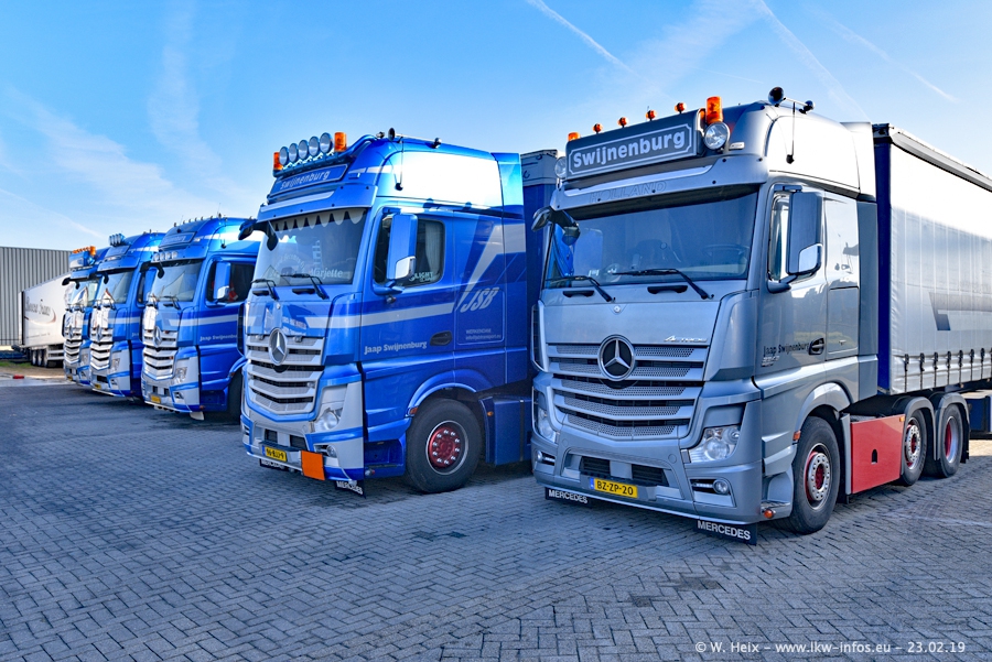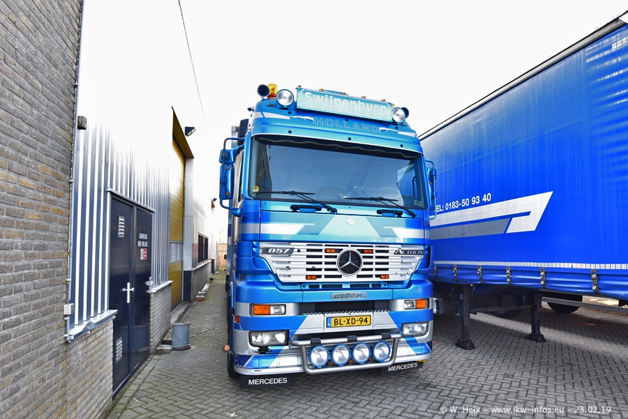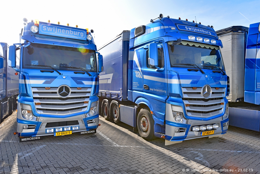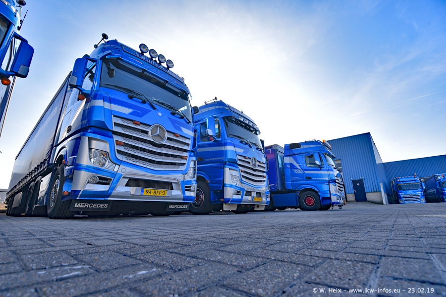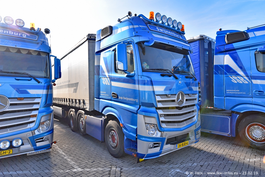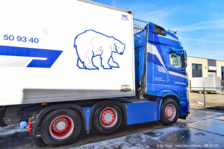 Mein letzter Besuch bei JSB Swijnenburg war im Jahr 2014. In den letzten fünf Jahren hat sich entsprechend viel verändert im Fuhrpark, der aus ca. 30 LKW besetht. Das sind ausschließlich Zugmaschinen der Actros-Baureihe. Inzwischen sind das fast alles Actros 4. Dazu kommt noch ein SK 1948 der ersten Generation, der vor ca. 5-6 Jahren restauriert wurde. Ob diese Zugmaschine noch eingesetzt wird, weiß ich nicht. Der SK stand beim Besuch ganz vorne in der Reihe vor den ganzen Actros.