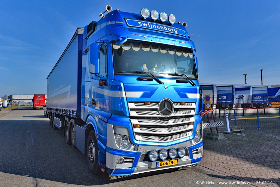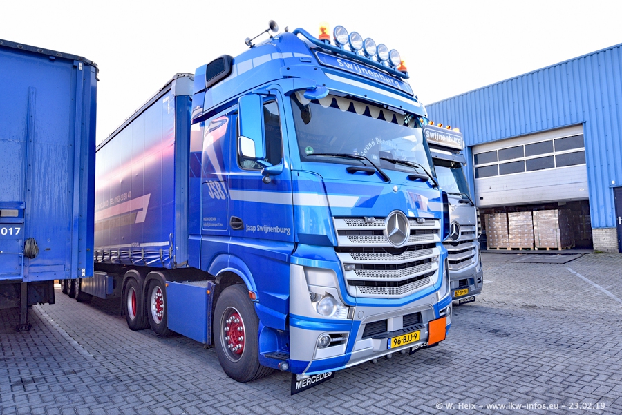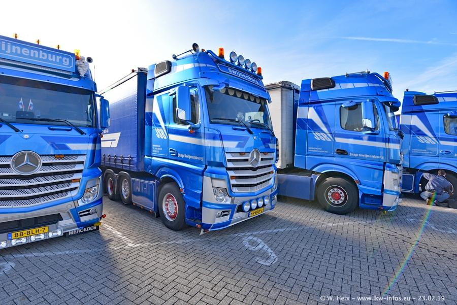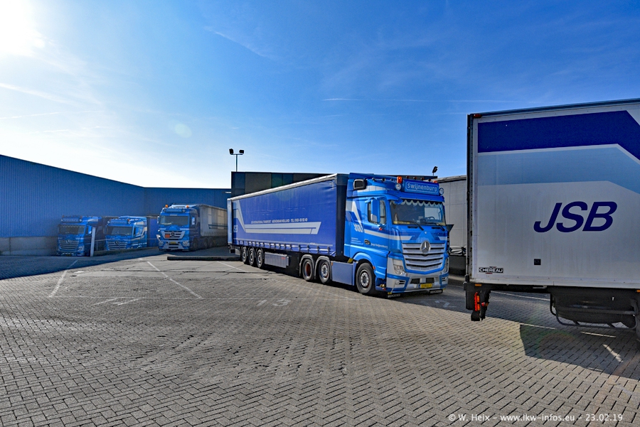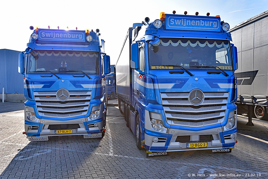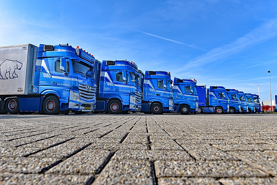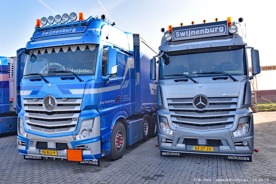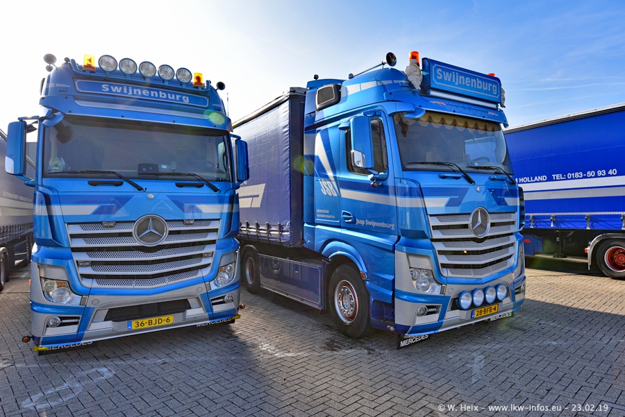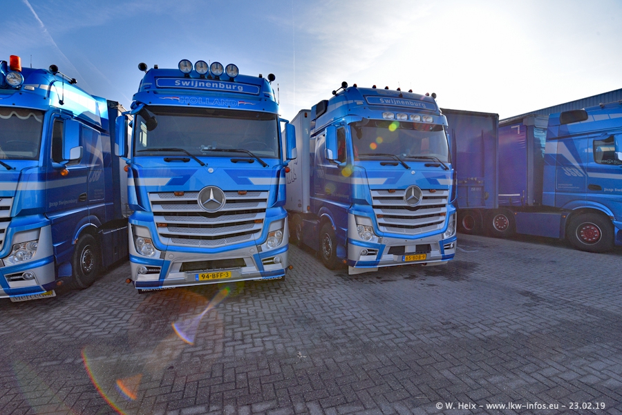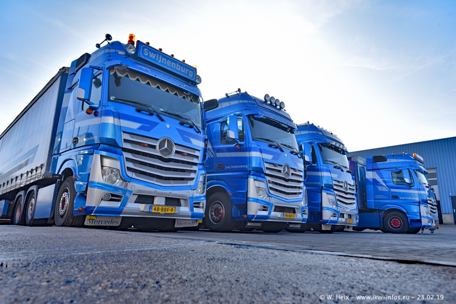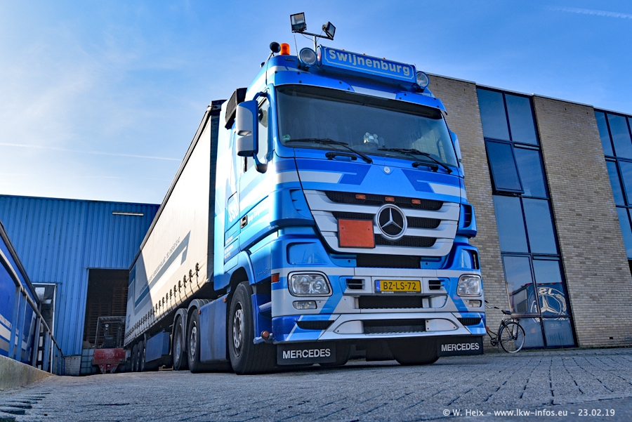 Mein letzter Besuch bei JSB Swijnenburg war im Jahr 2014. In den letzten fünf Jahren hat sich entsprechend viel verändert im Fuhrpark, der aus ca. 30 LKW besetht. Das sind ausschließlich Zugmaschinen der Actros-Baureihe. Inzwischen sind das fast alles Actros 4. Dazu kommt noch ein SK 1948 der ersten Generation, der vor ca. 5-6 Jahren restauriert wurde. Ob diese Zugmaschine noch eingesetzt wird, weiß ich nicht. Der SK stand beim Besuch ganz vorne in der Reihe vor den ganzen Actros.